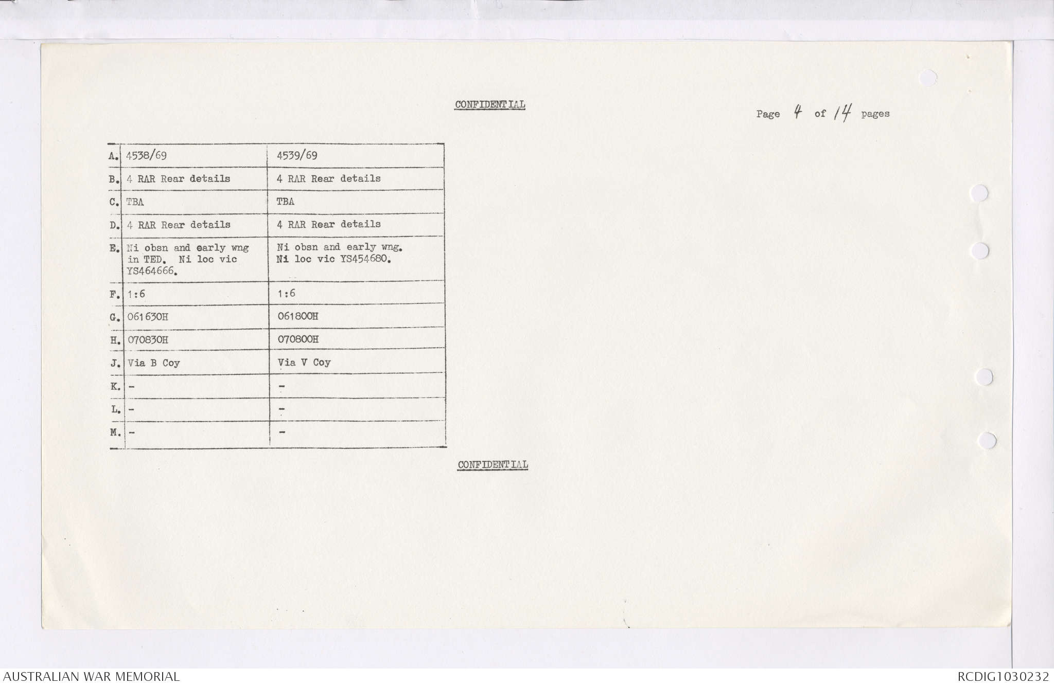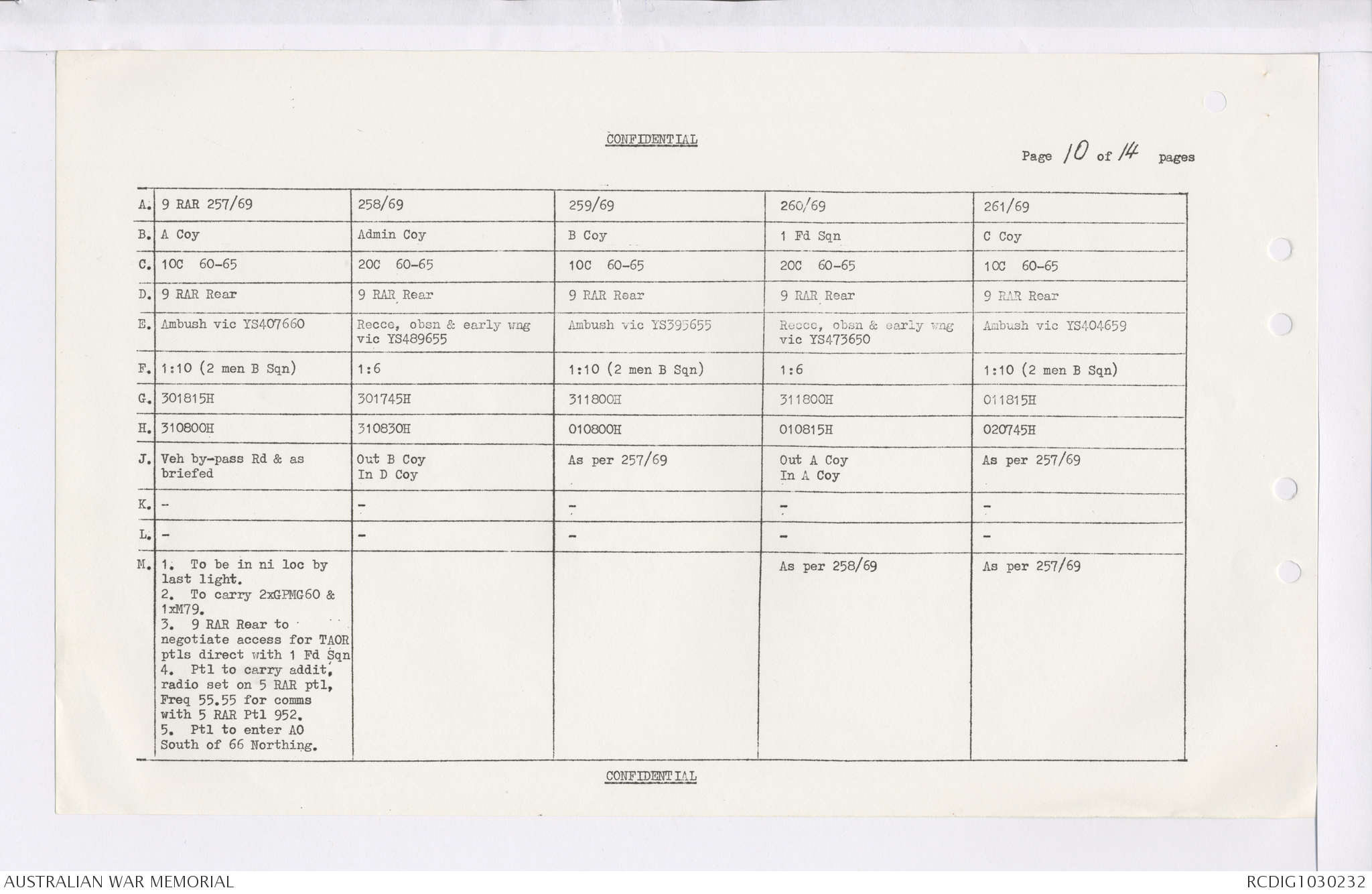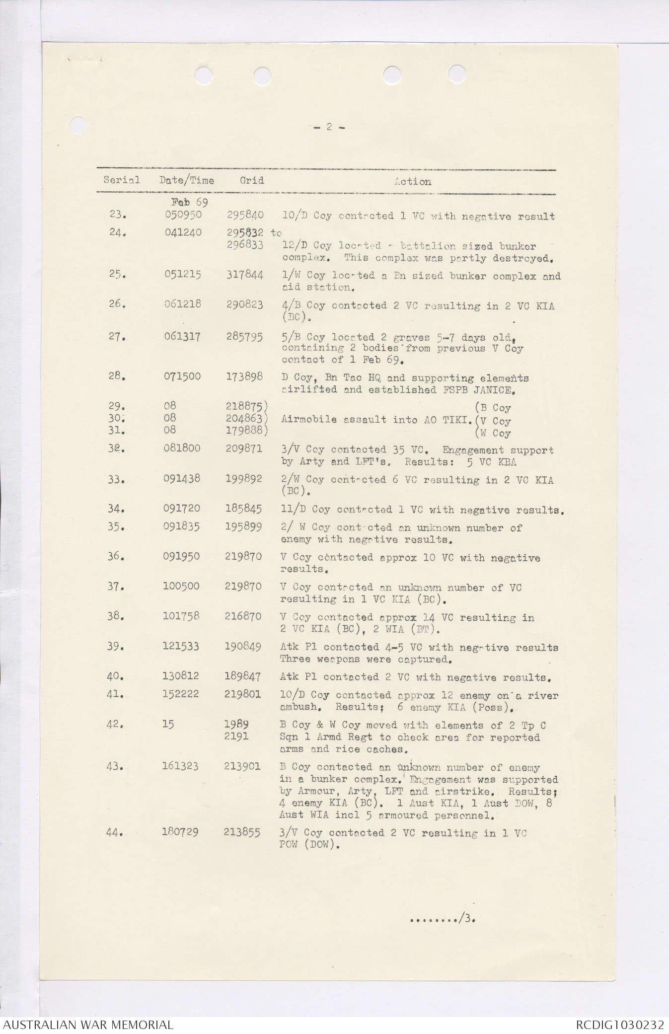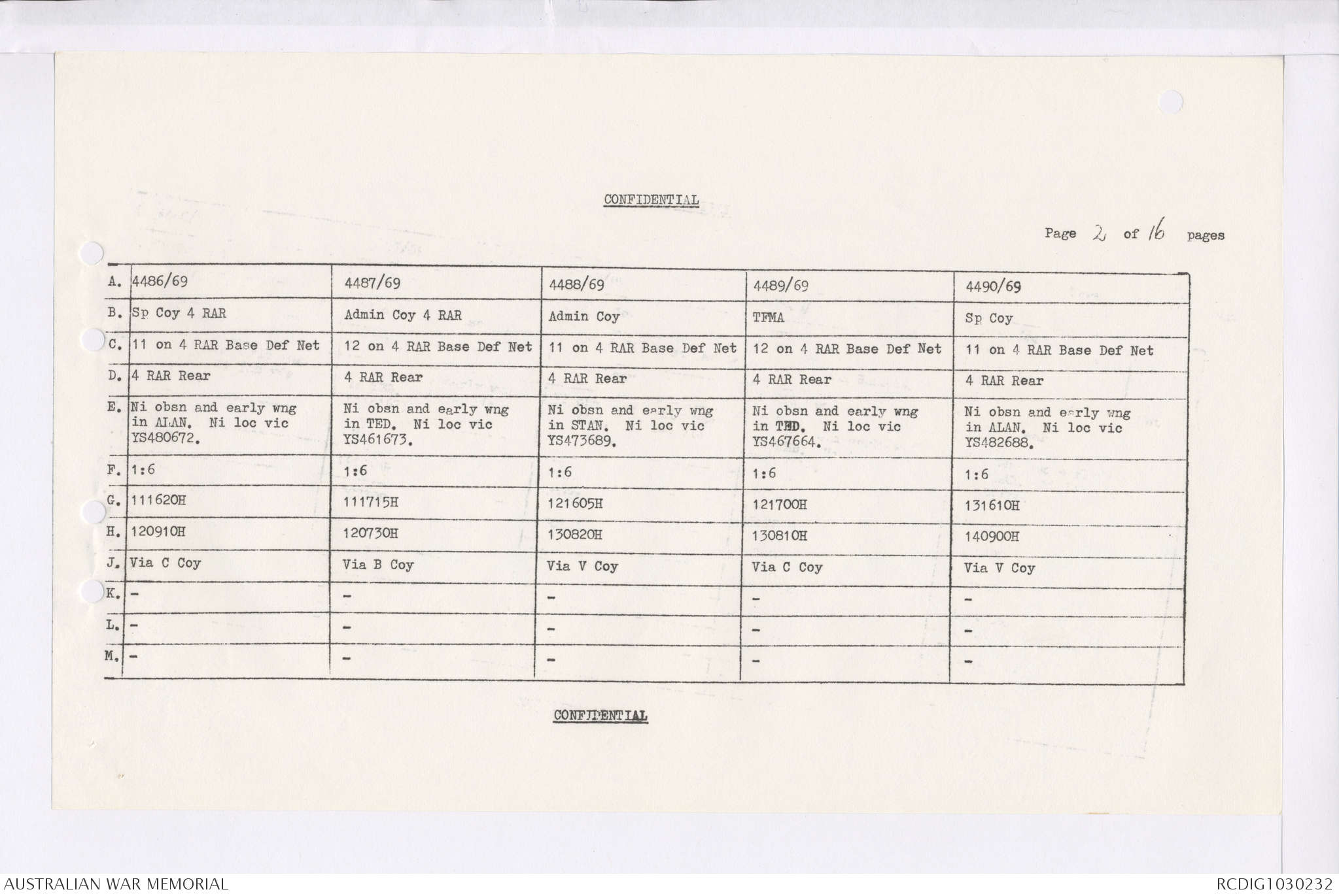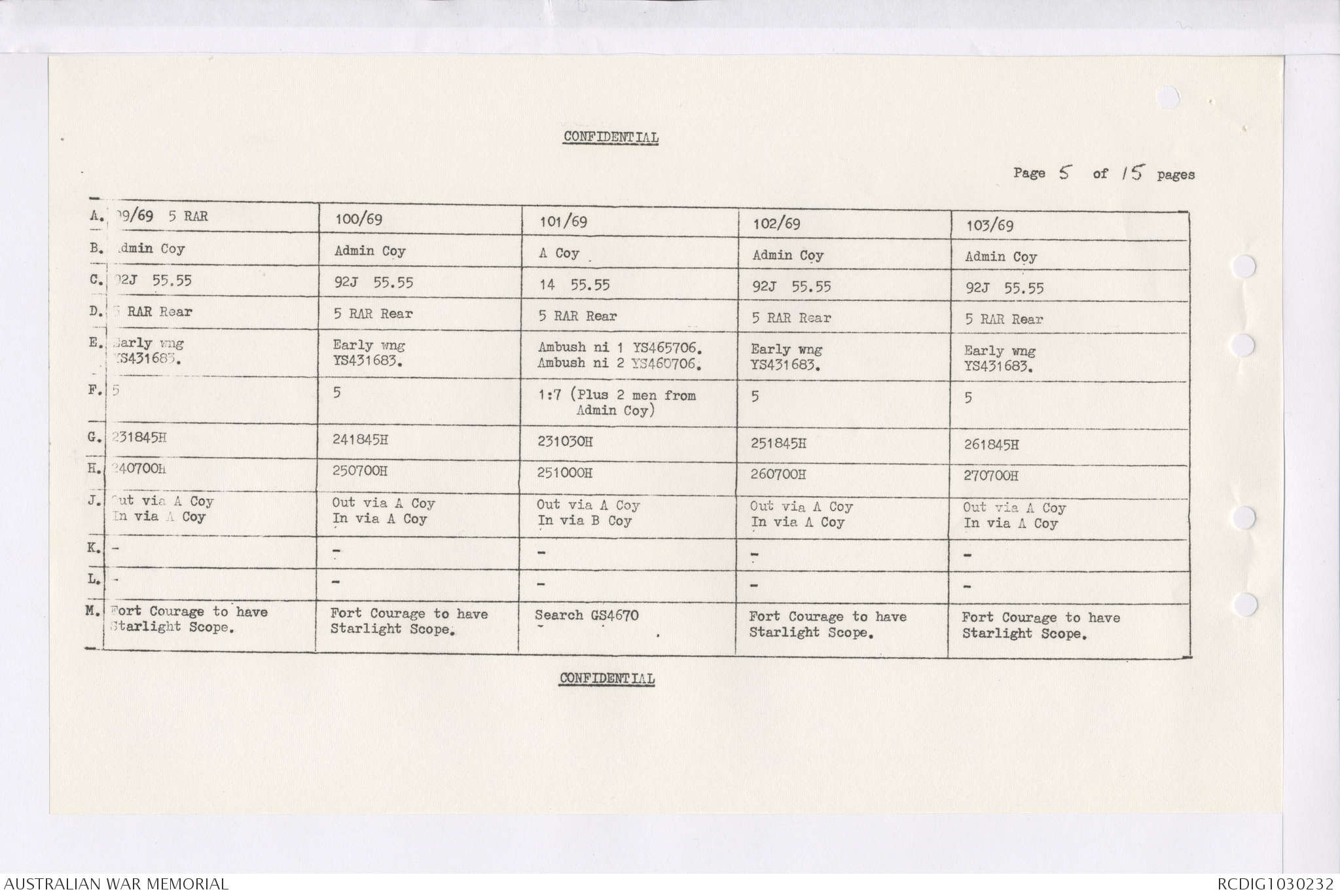 AWM95 7/4/37 - 1-31 March 1969, Narrative, Duty Officer's log, Annexes