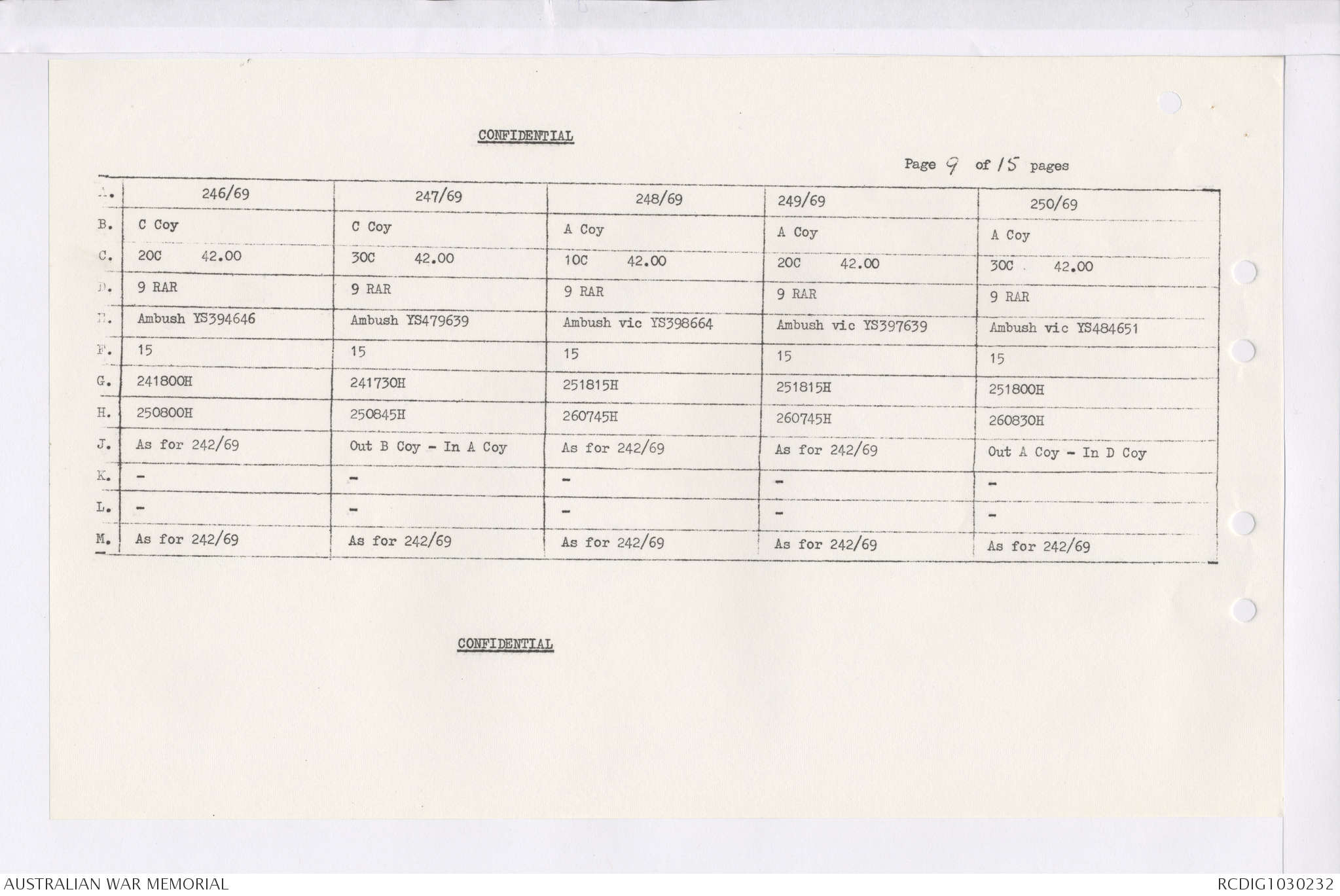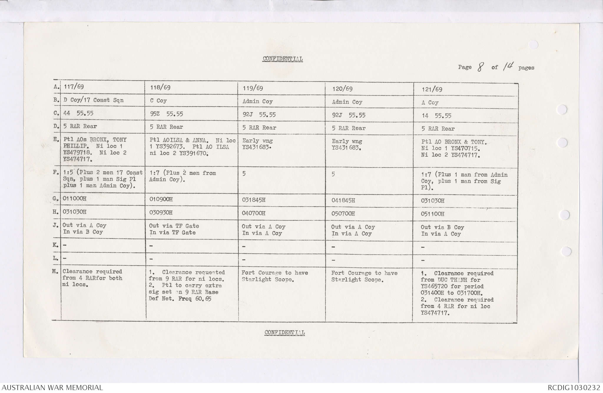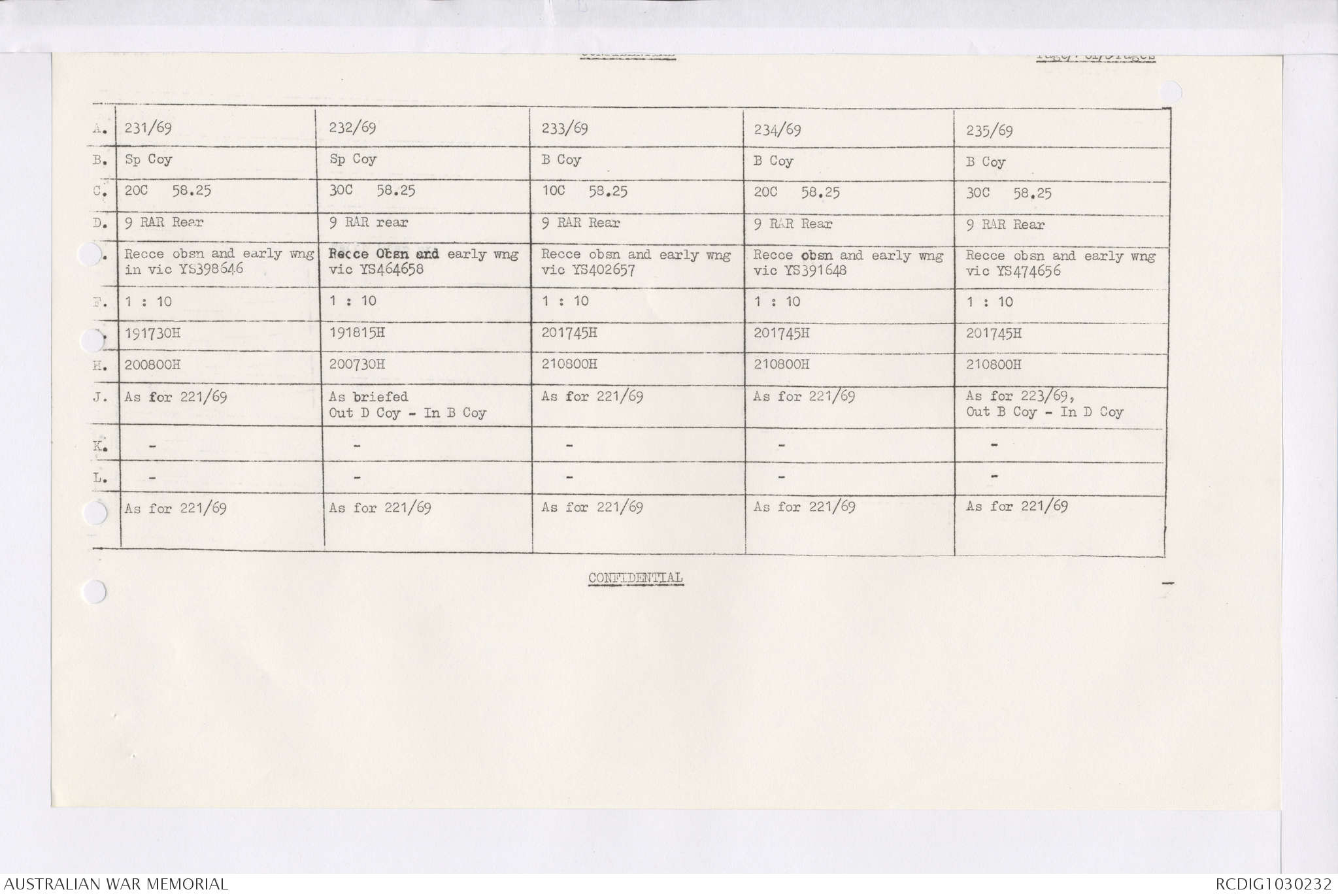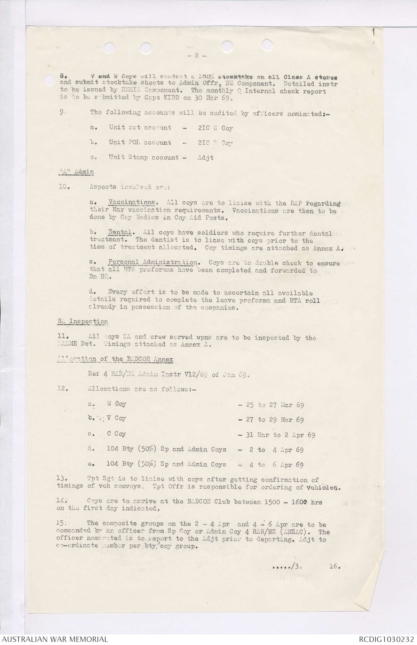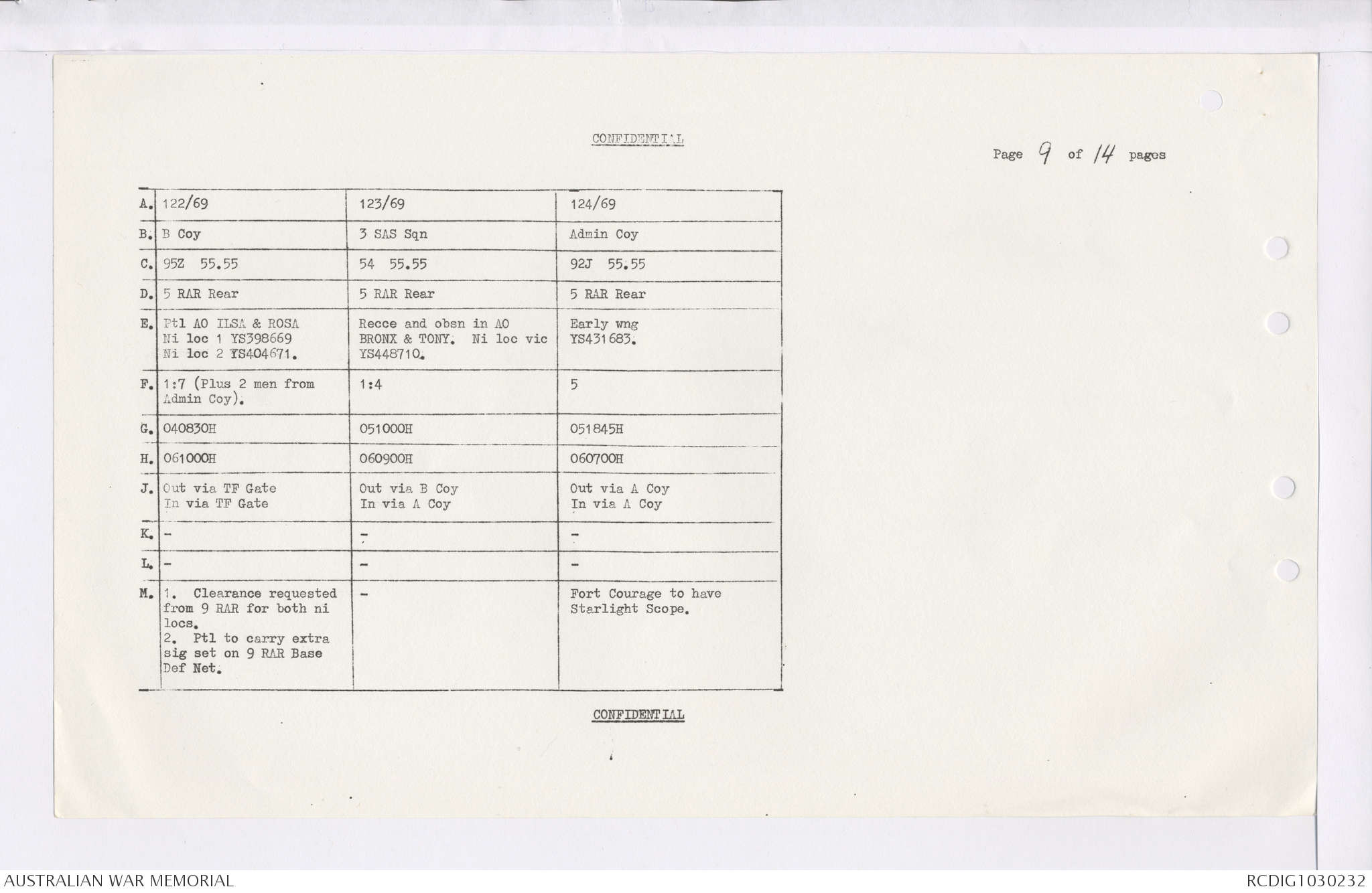 AWM95 7/4/37 - 1-31 March 1969, Narrative, Duty Officer's log, Annexes