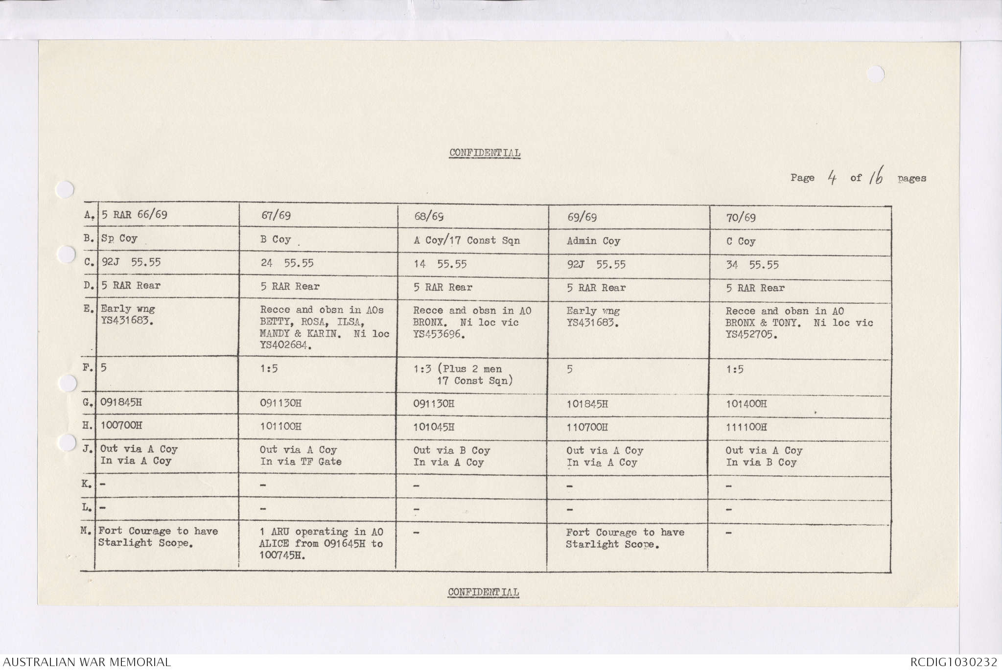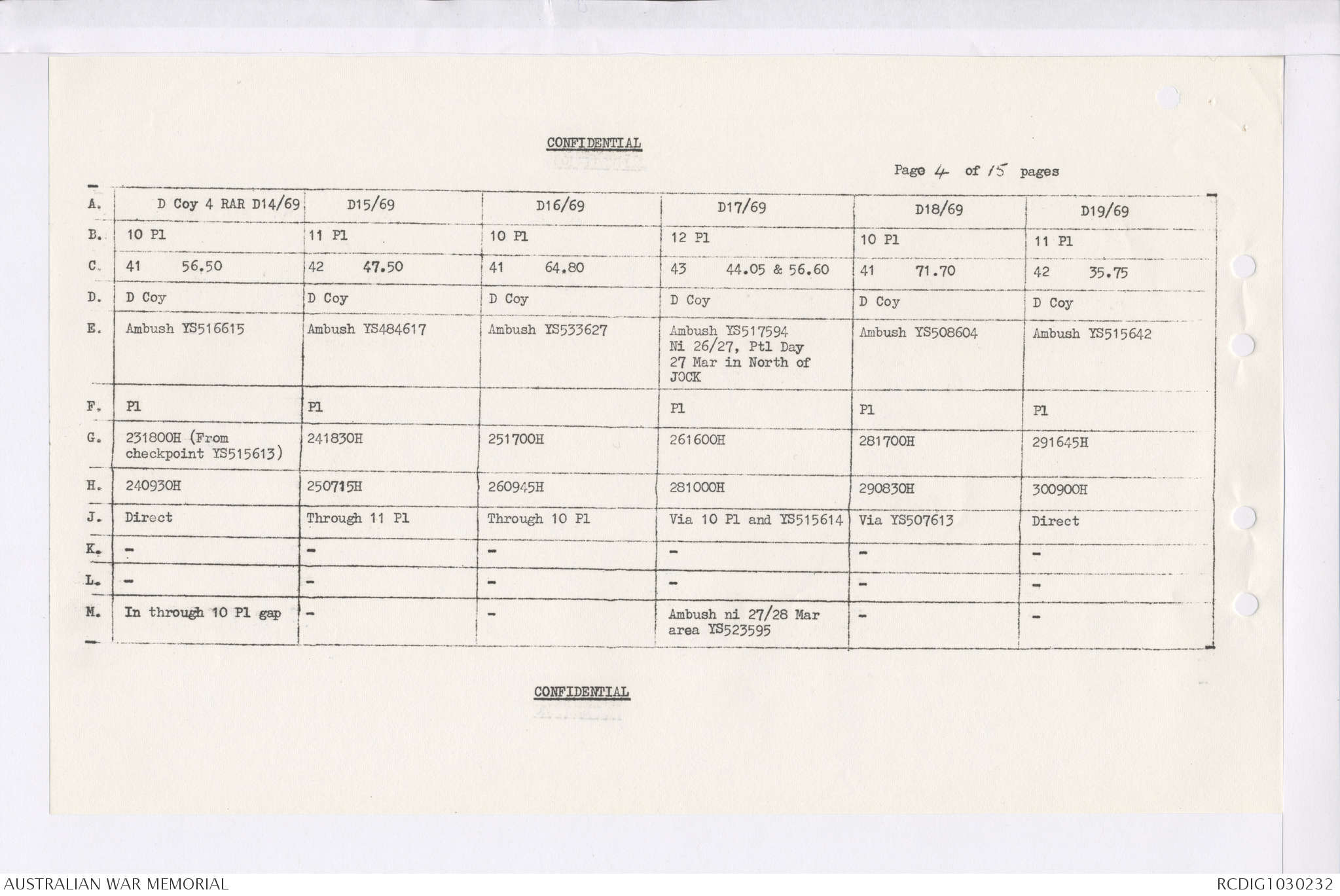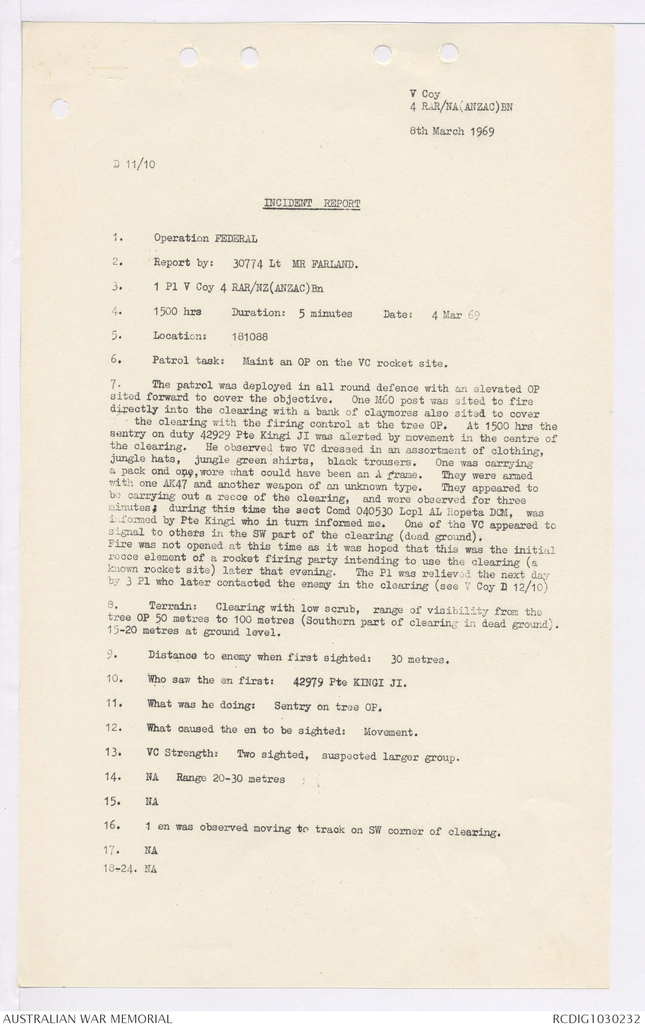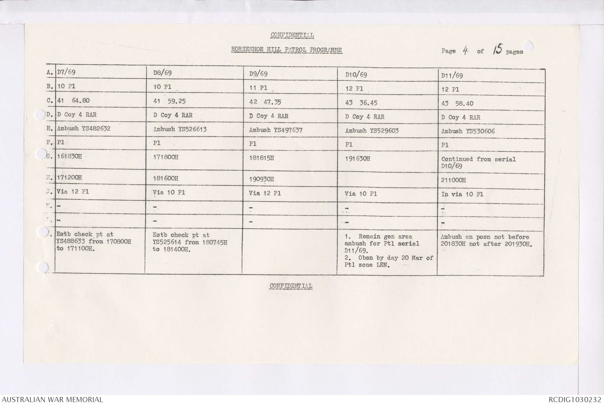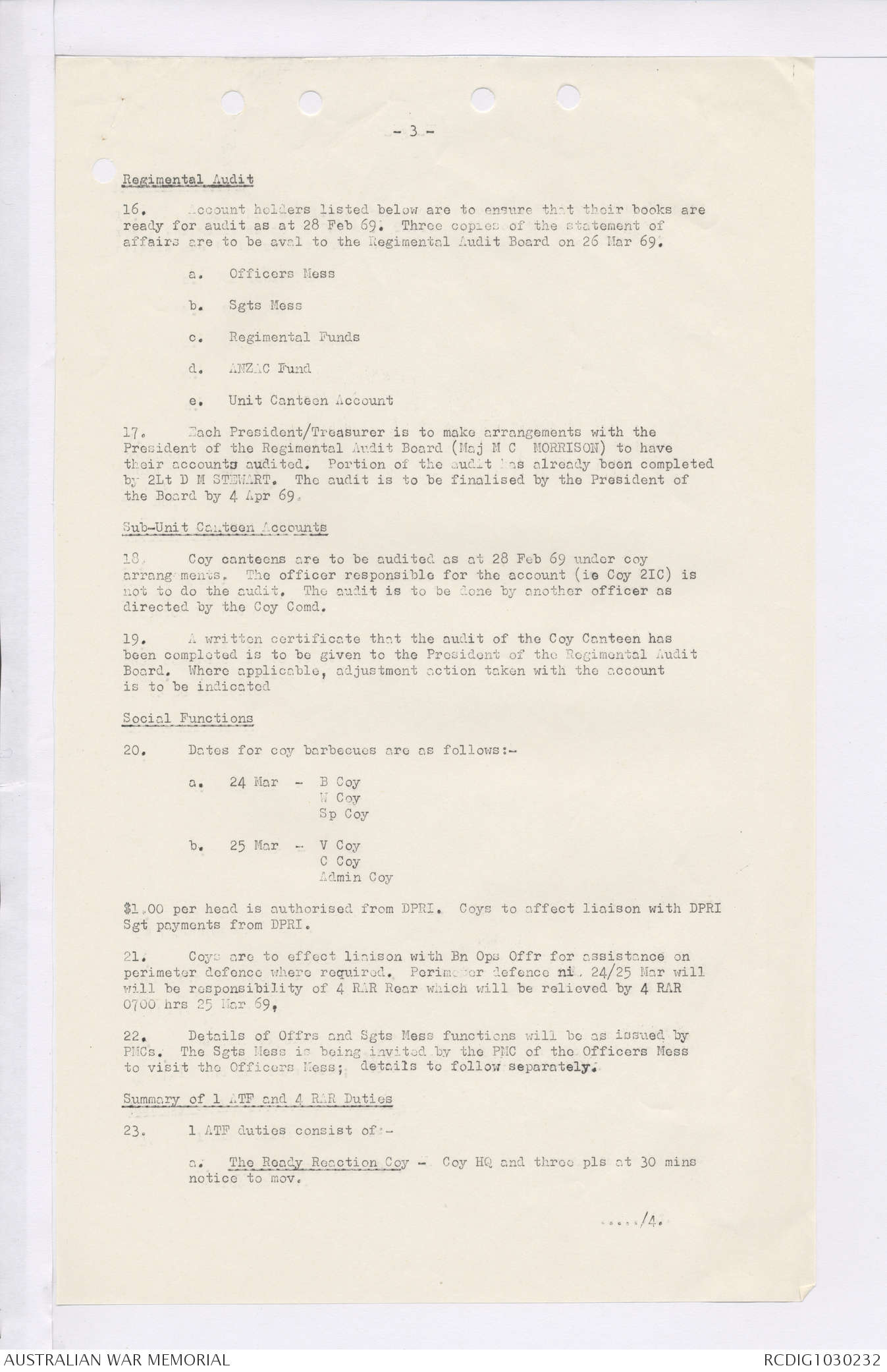 AWM95 7/4/37 - 1-31 March 1969, Narrative, Duty Officer's log, Annexes