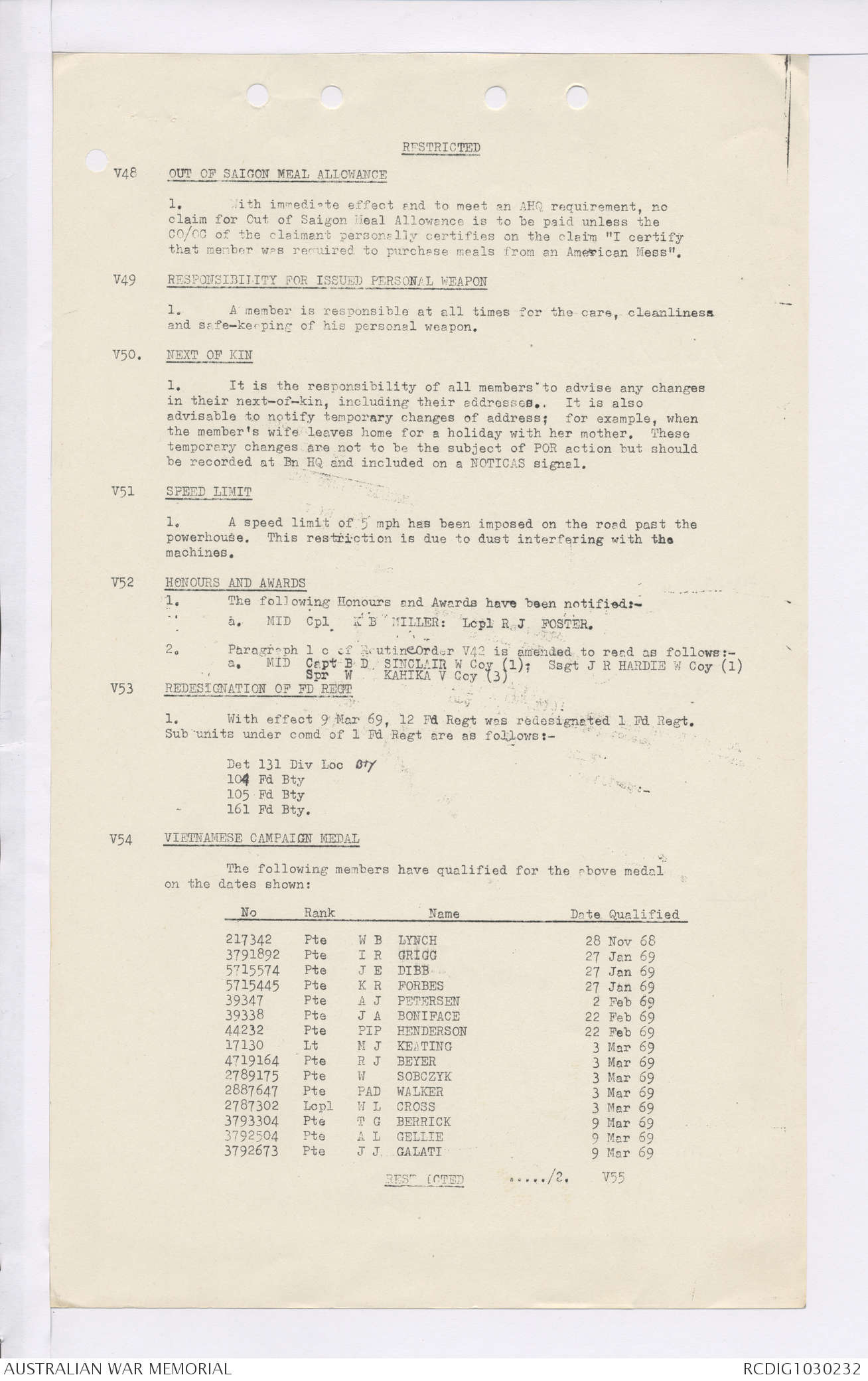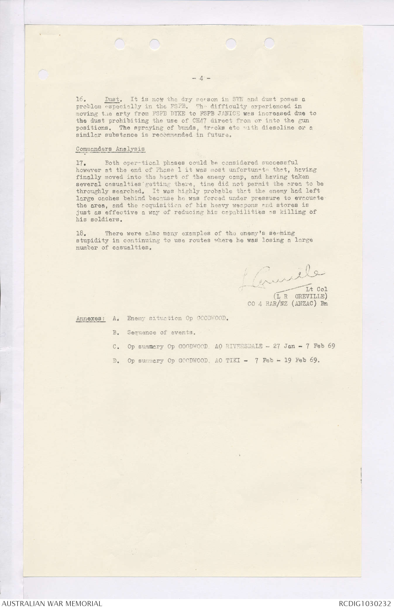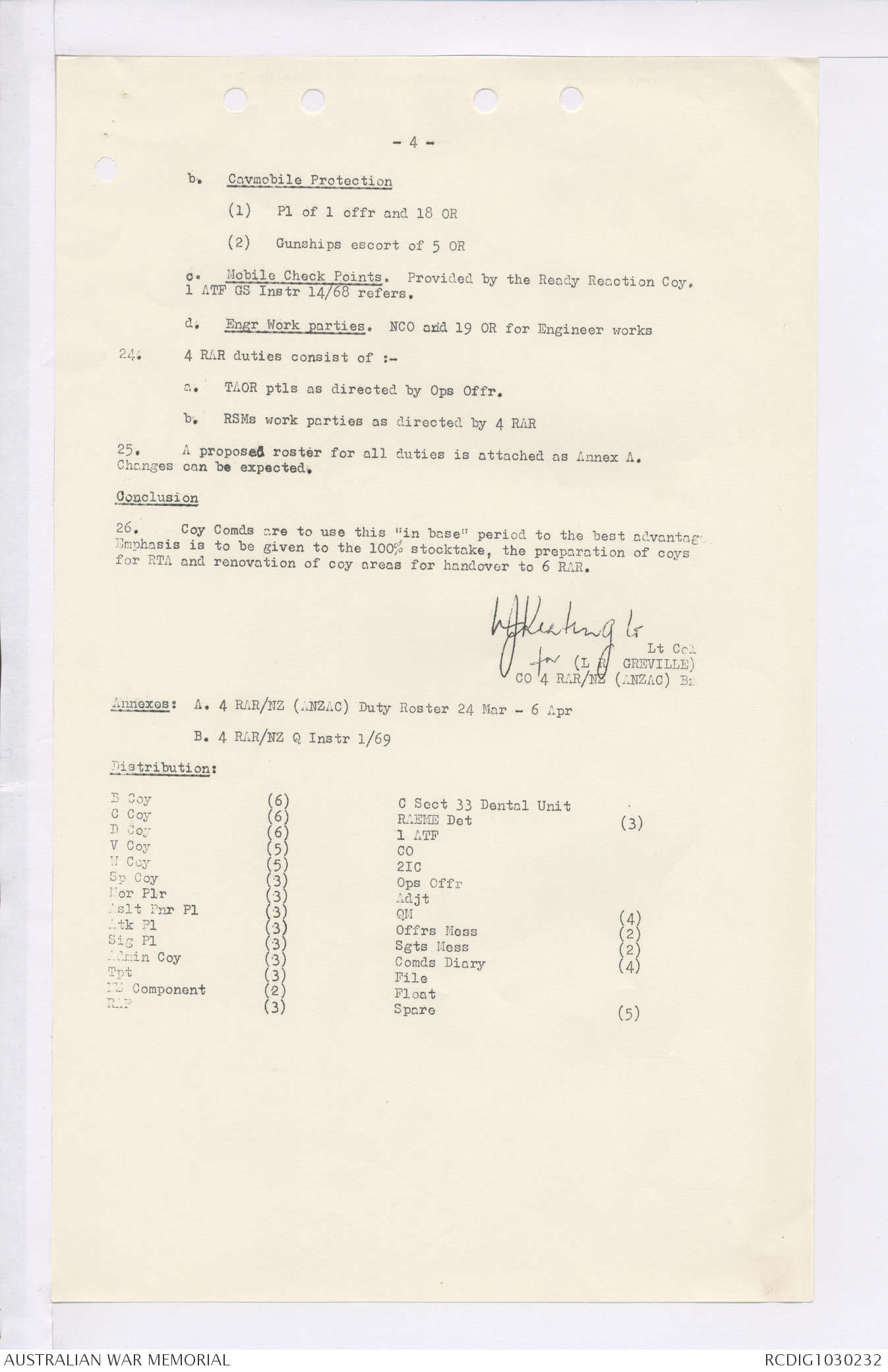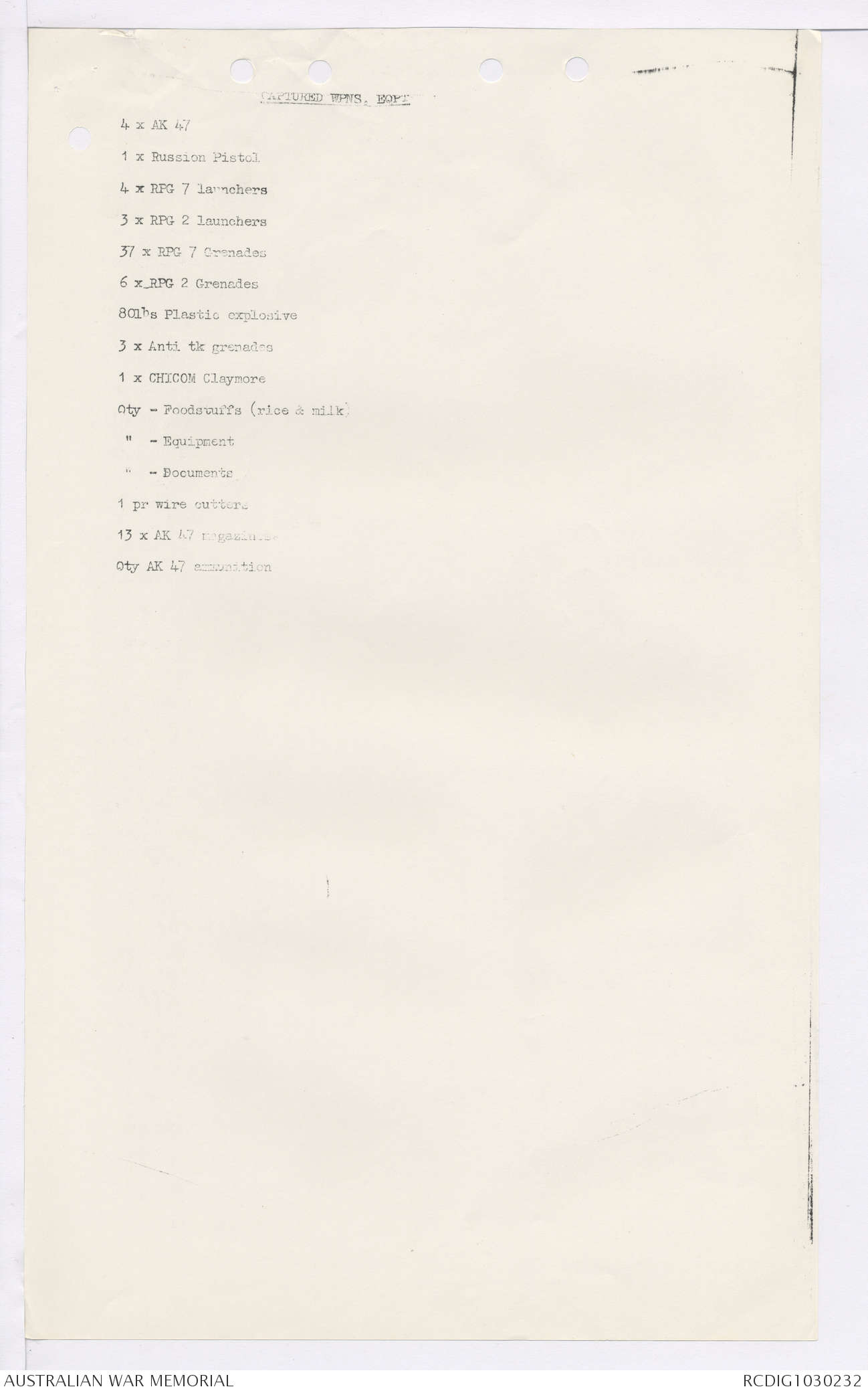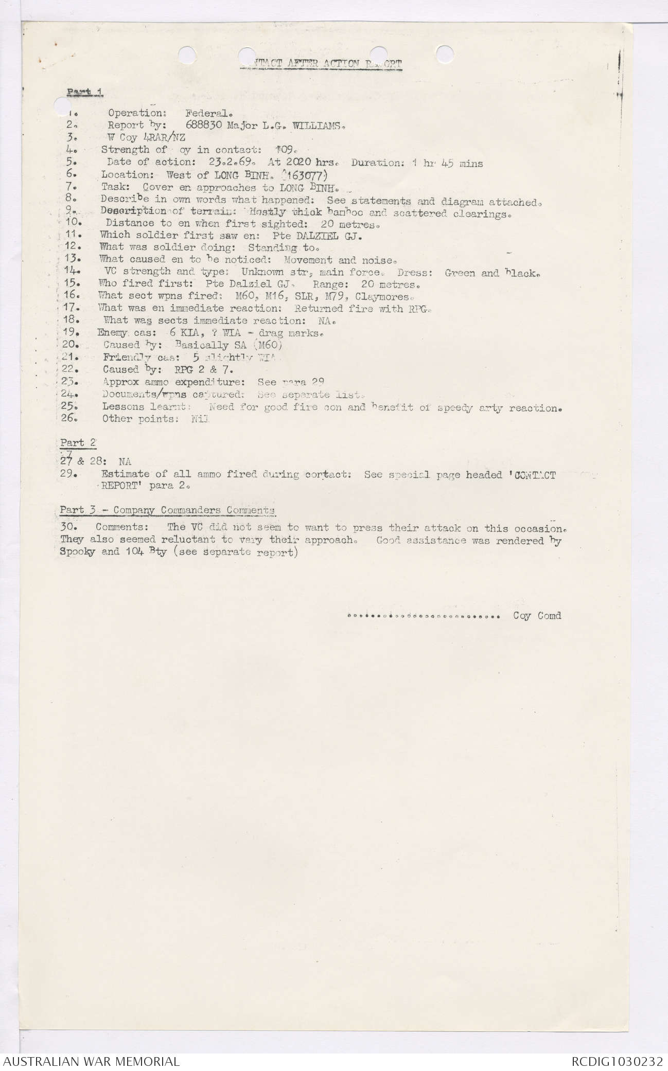 AWM95 7/4/37 - 1-31 March 1969, Narrative, Duty Officer's log, Annexes