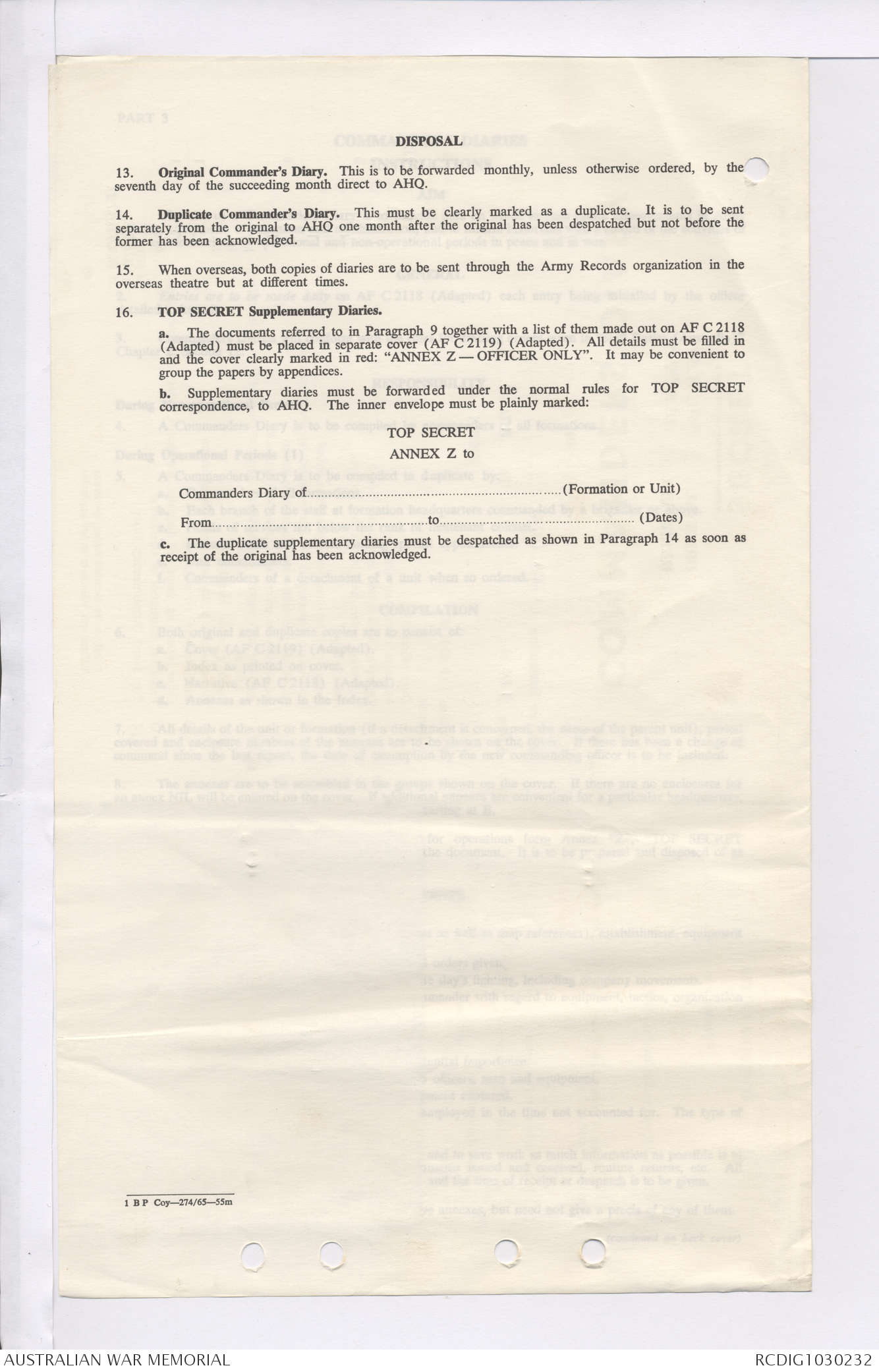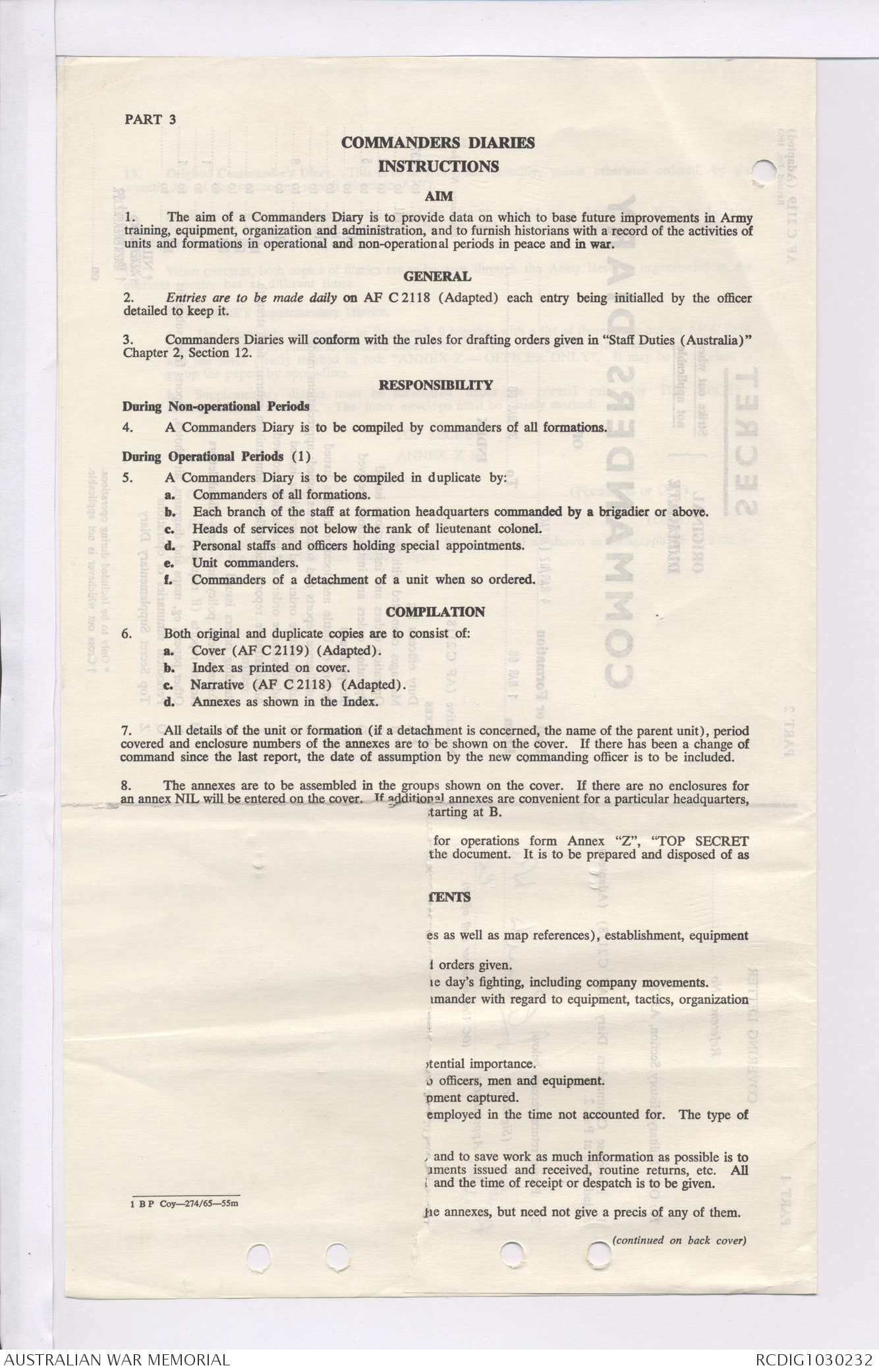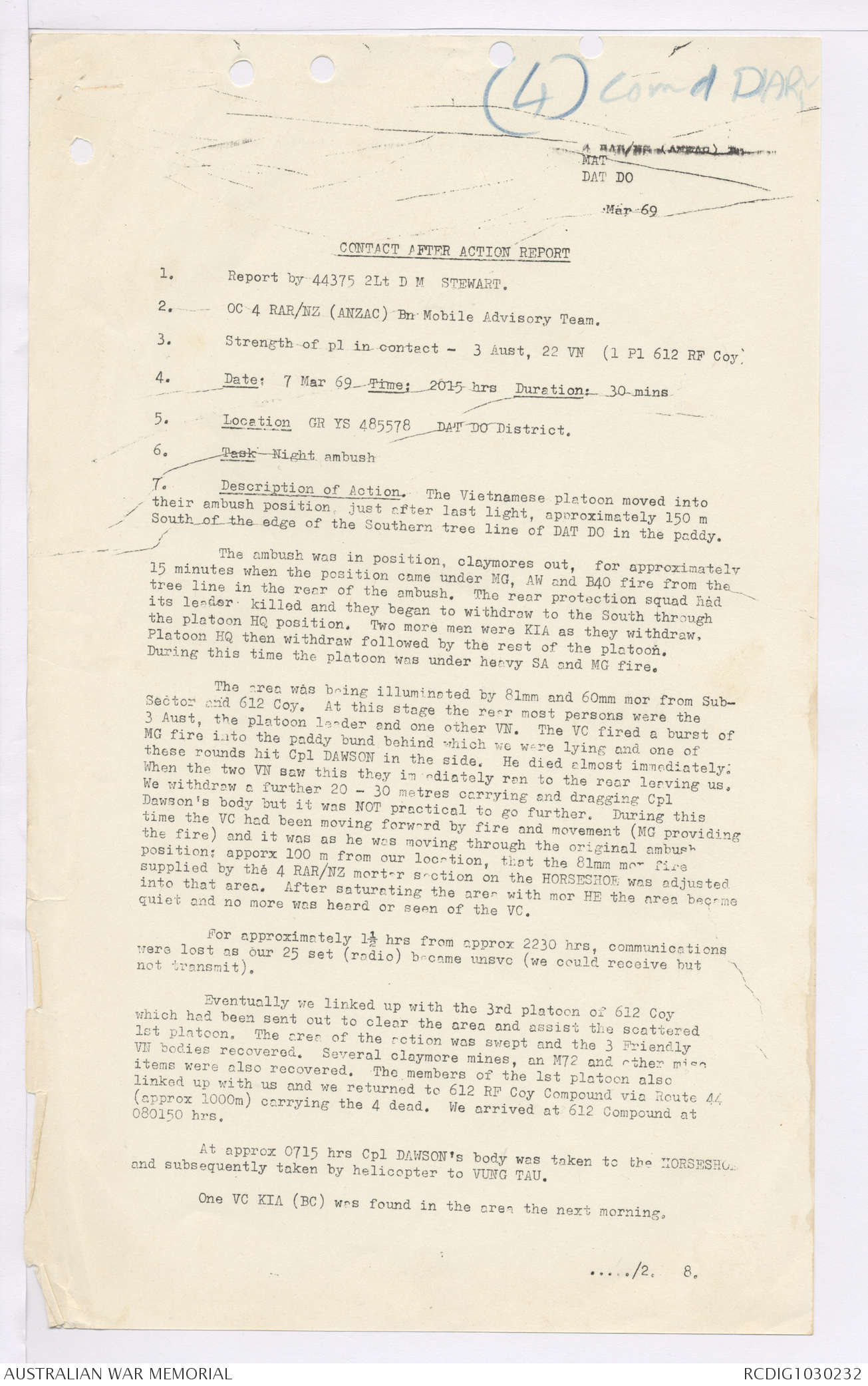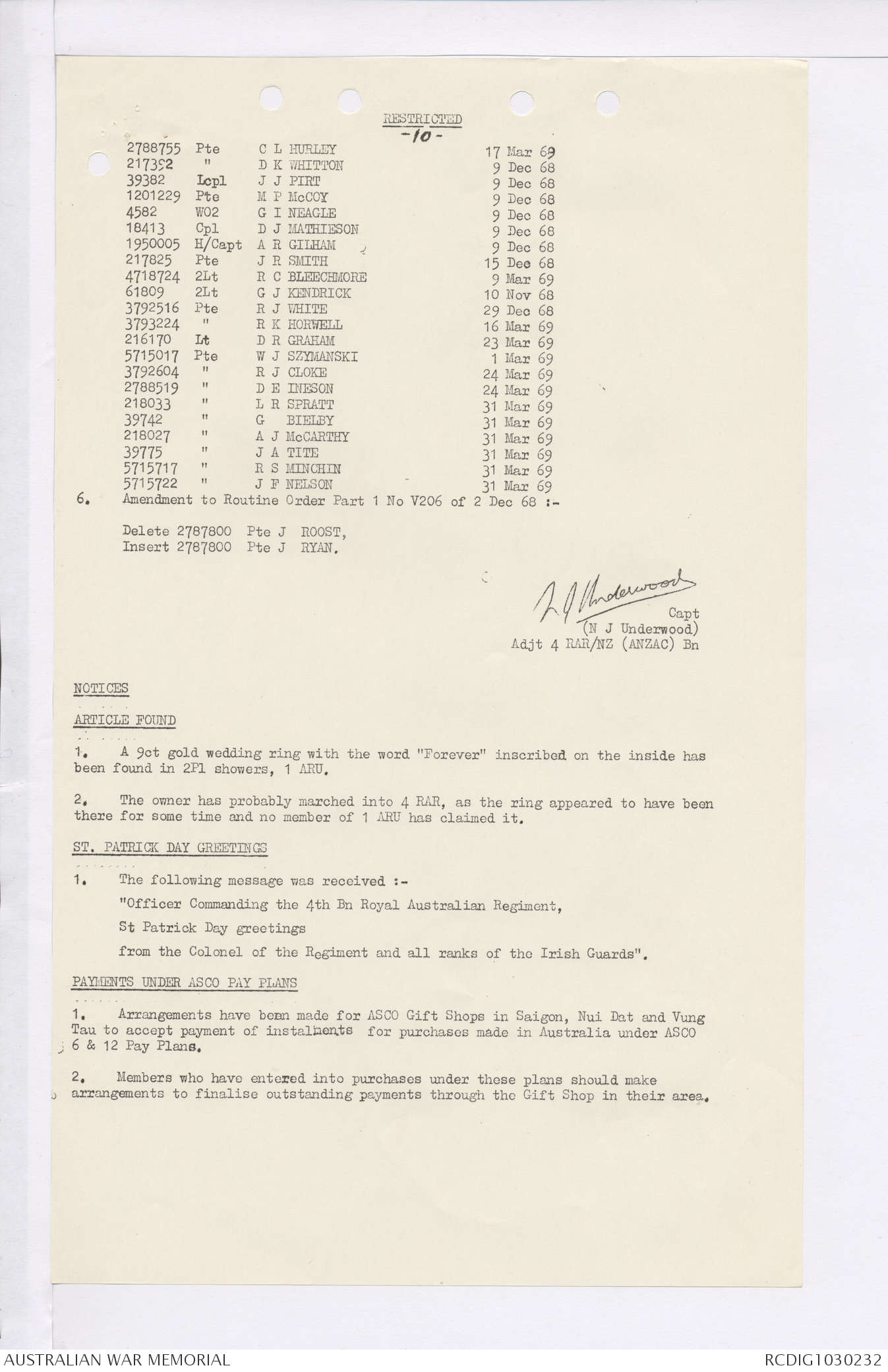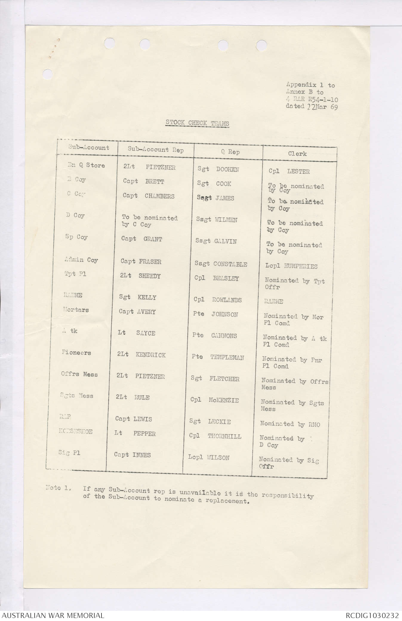 AWM95 7/4/37 - 1-31 March 1969, Narrative, Duty Officer's log, Annexes