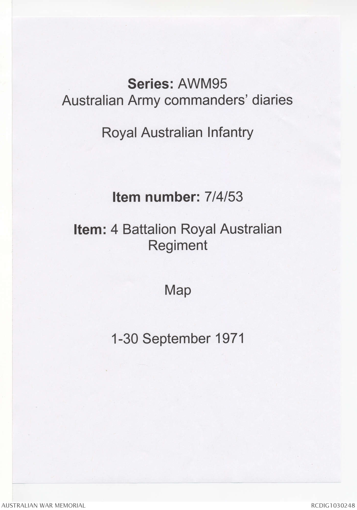 | Collection number | AWM95 7/4/53 |