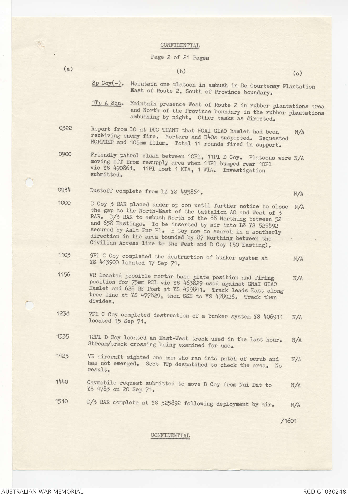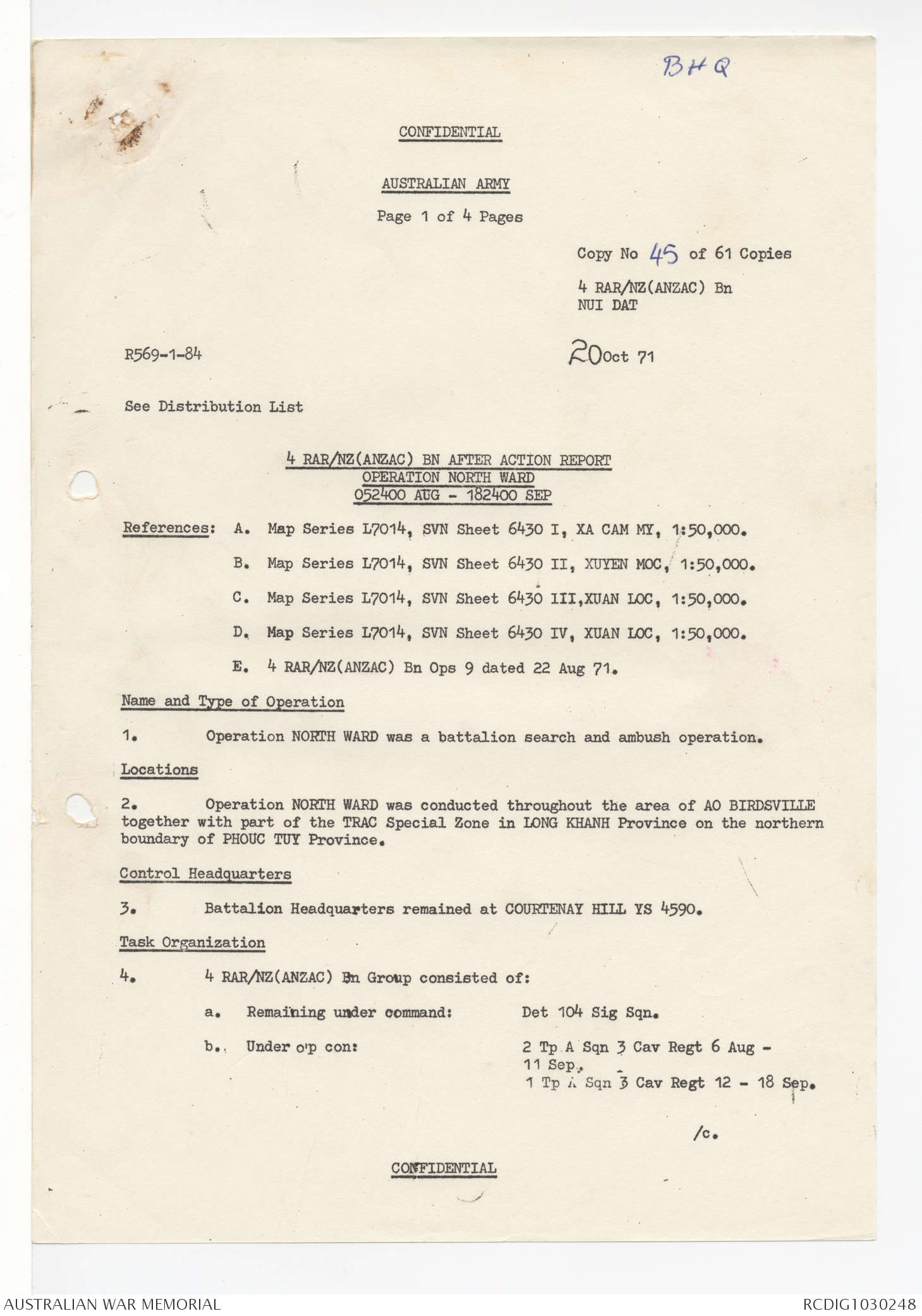 AWM95 7/4/53 - 1-30 September 1971, Map