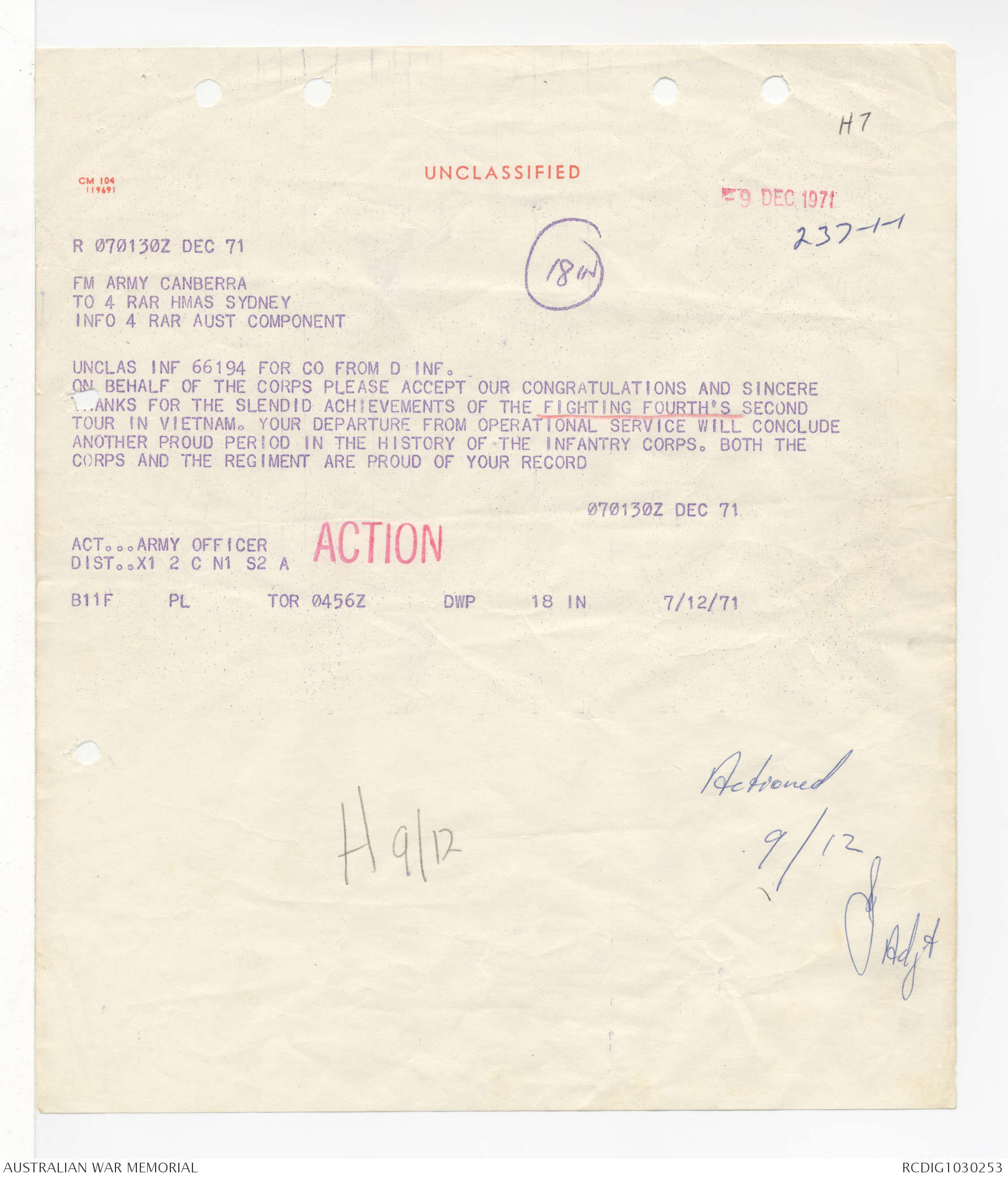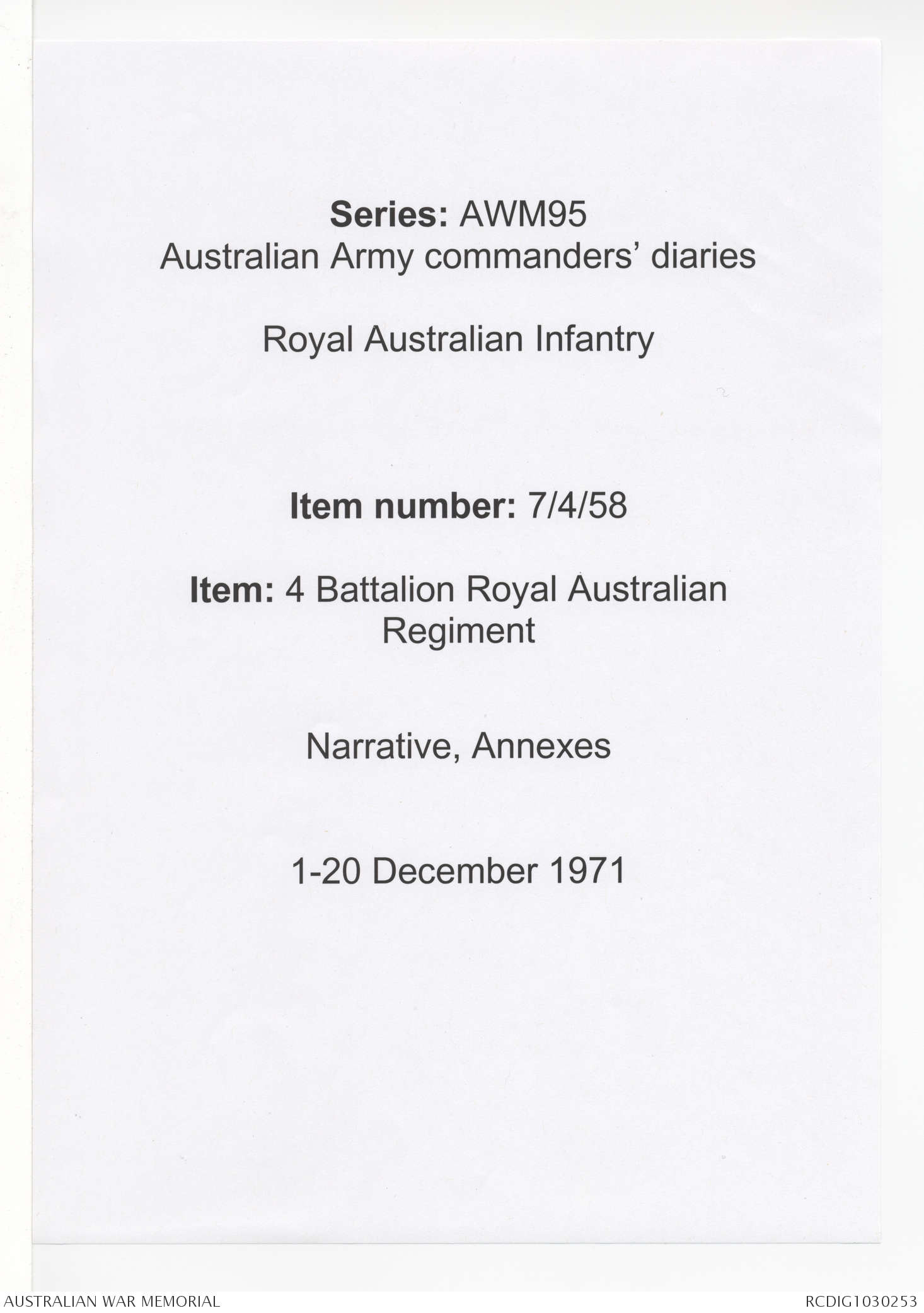 - AWM95 Subclass 7/4 - 4 Battalion Royal Australian Regiment