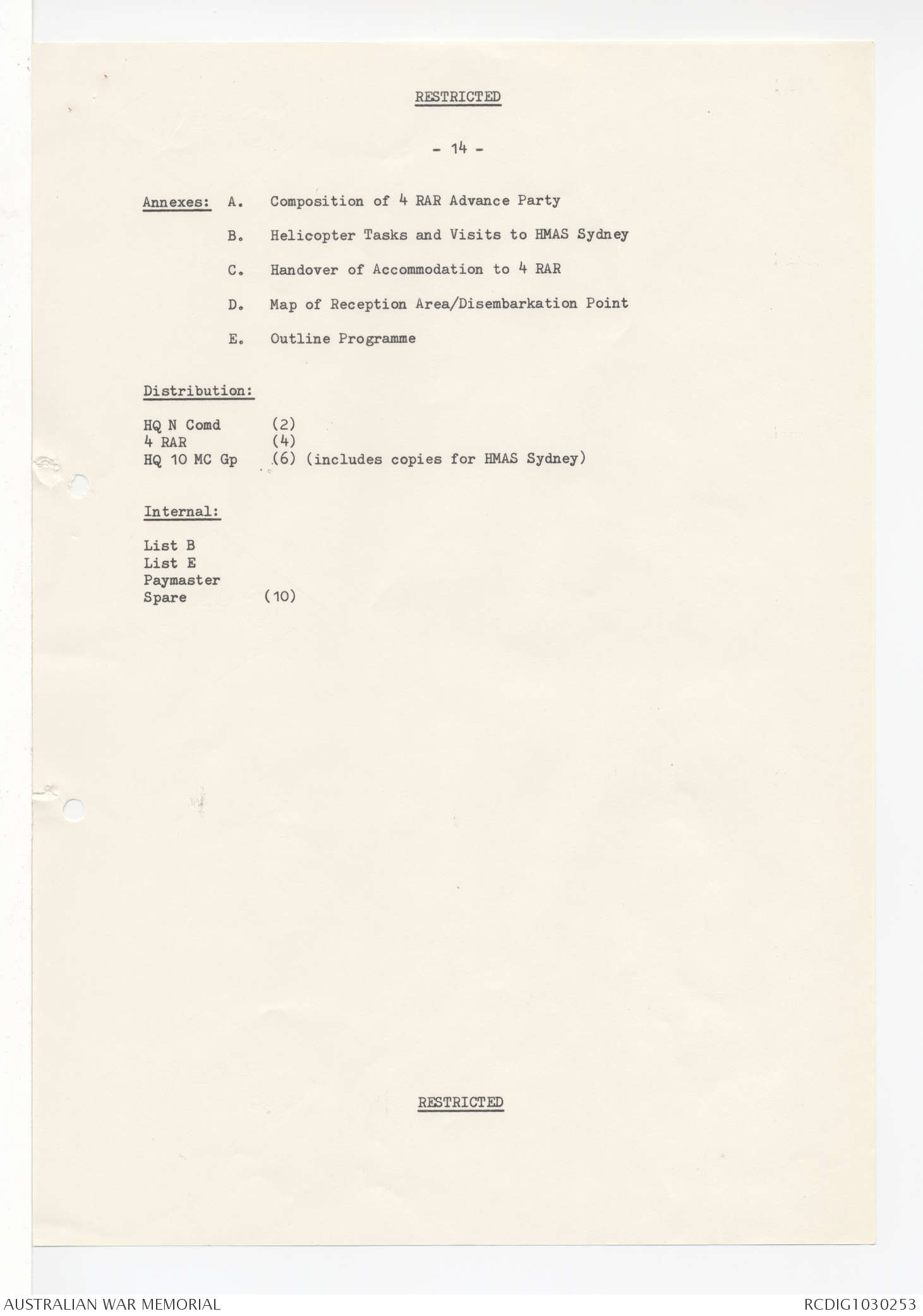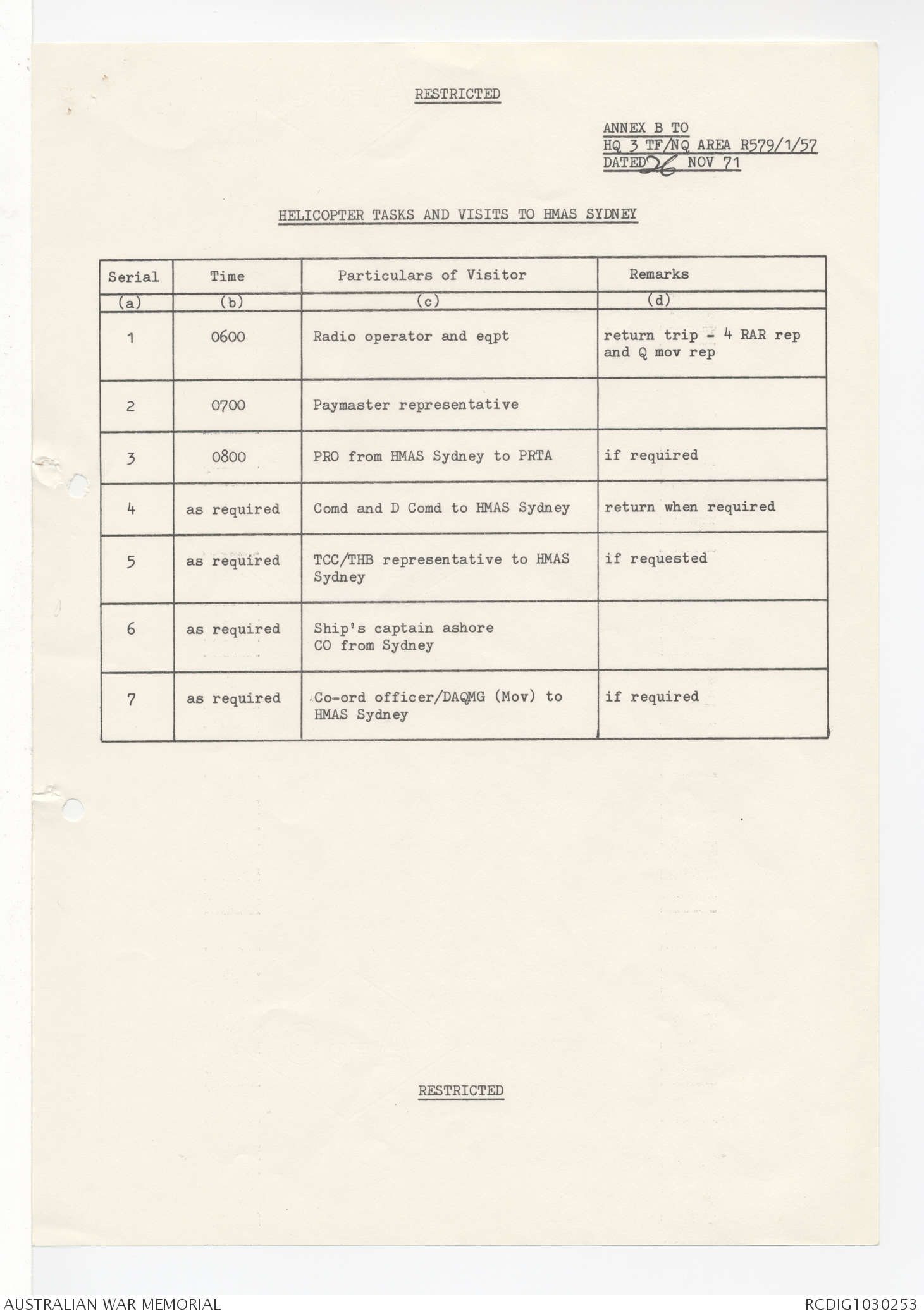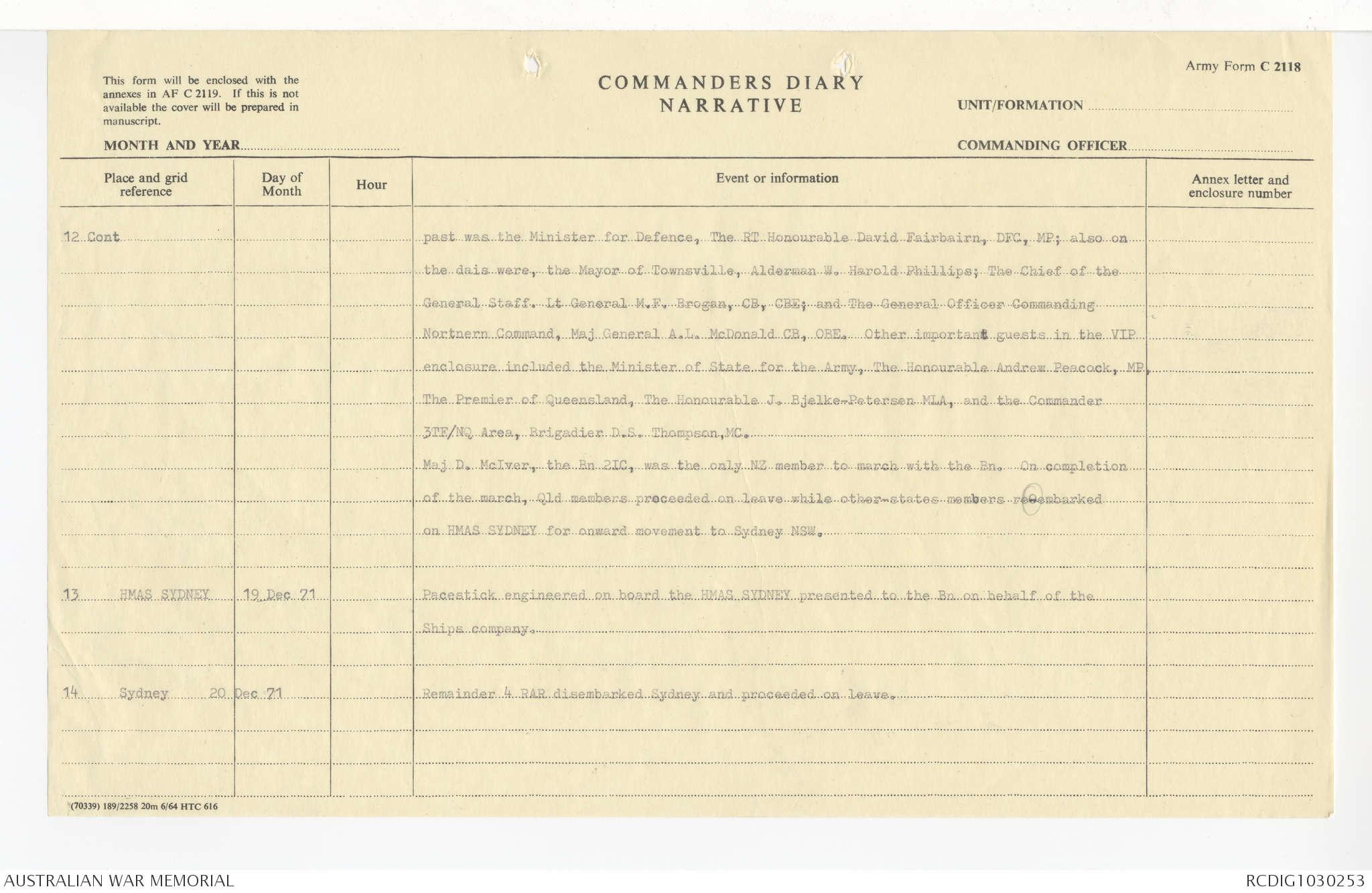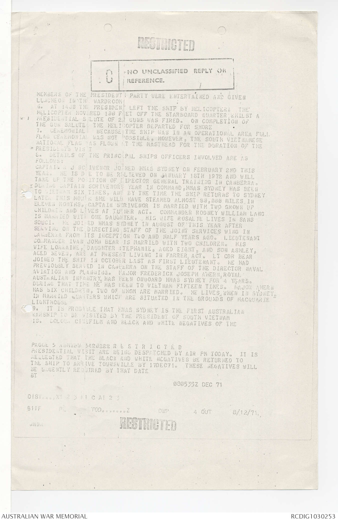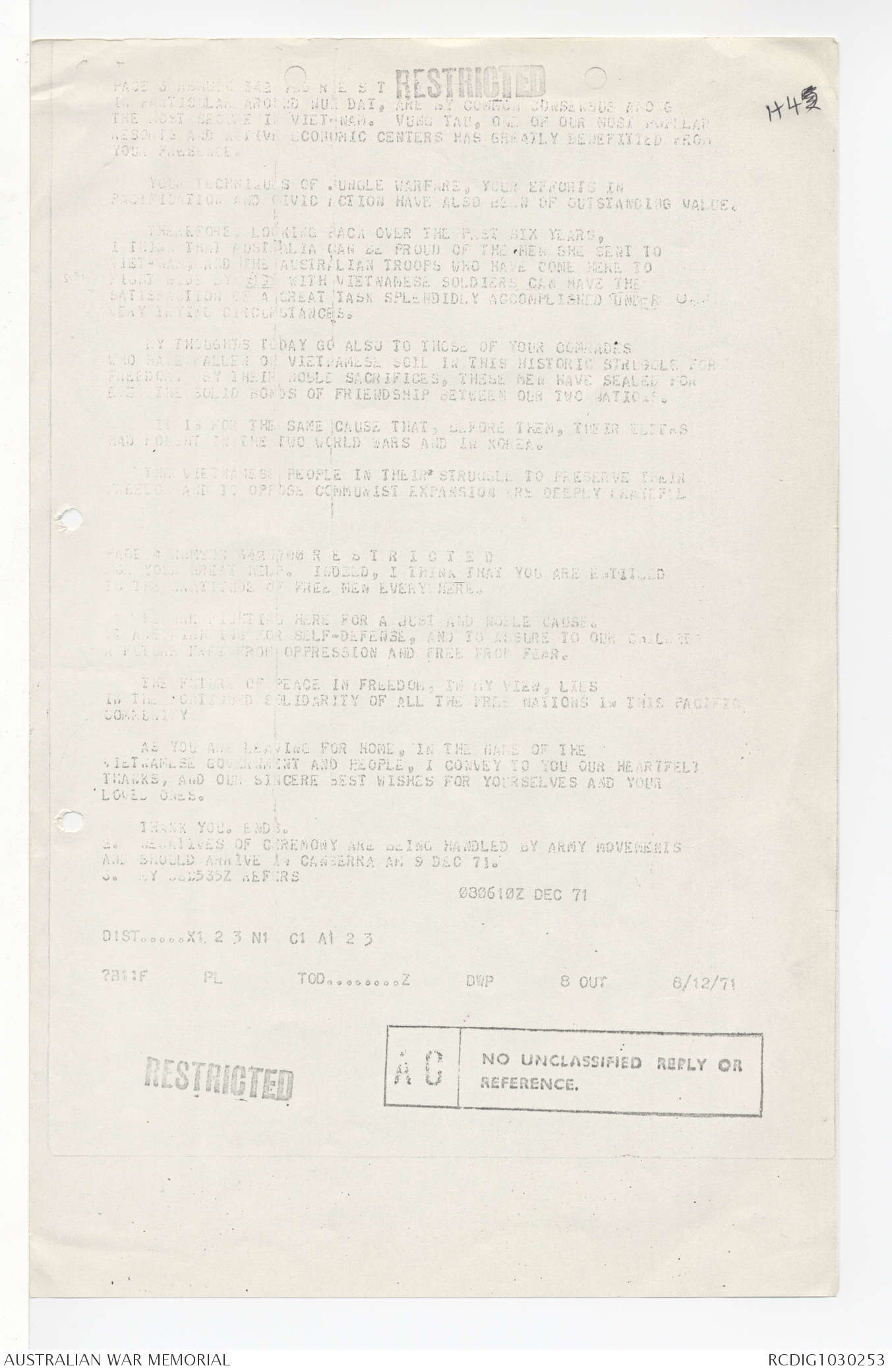 AWM95 7/4/58 - 1-20 December 1971, Narrative, Annexes