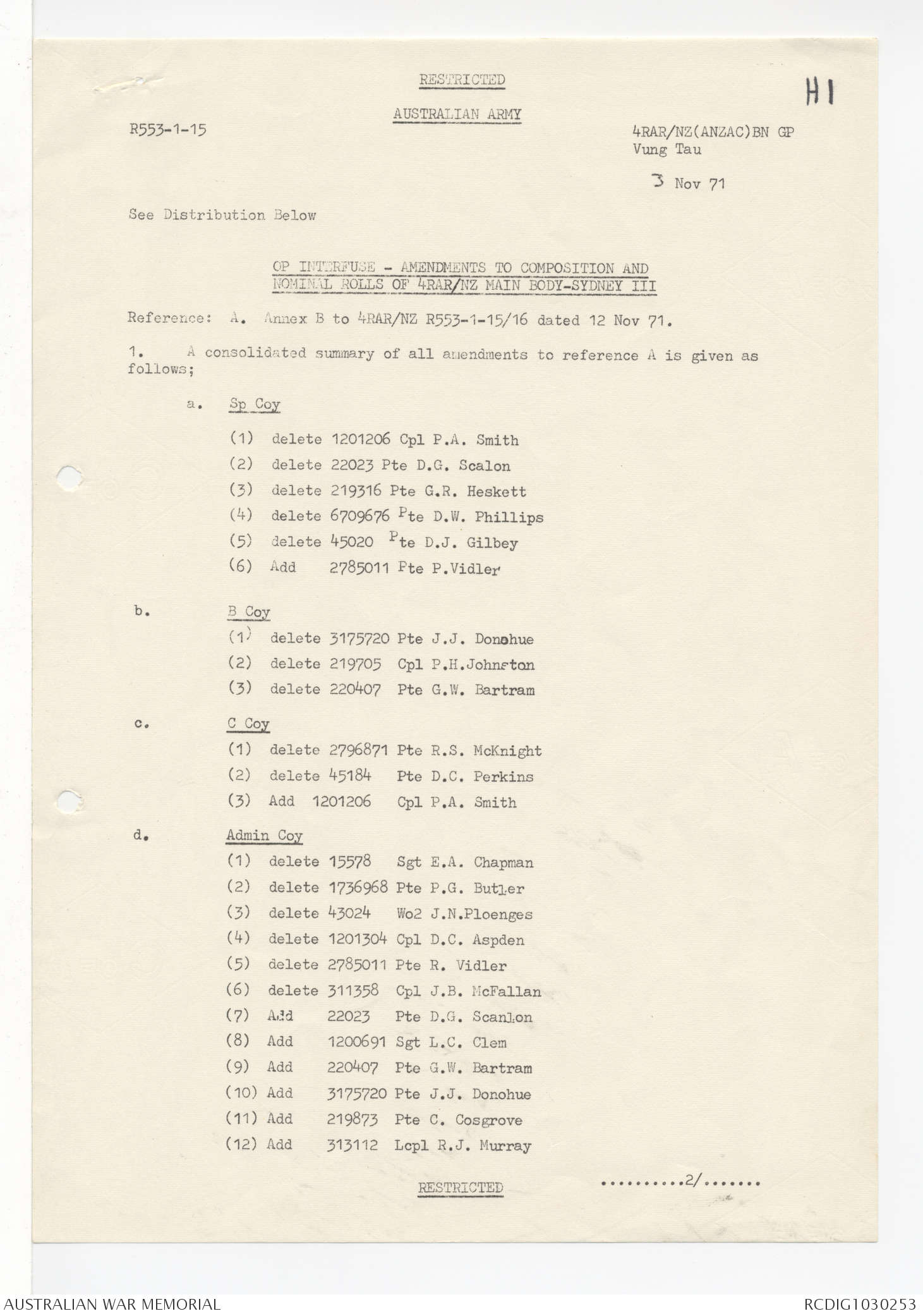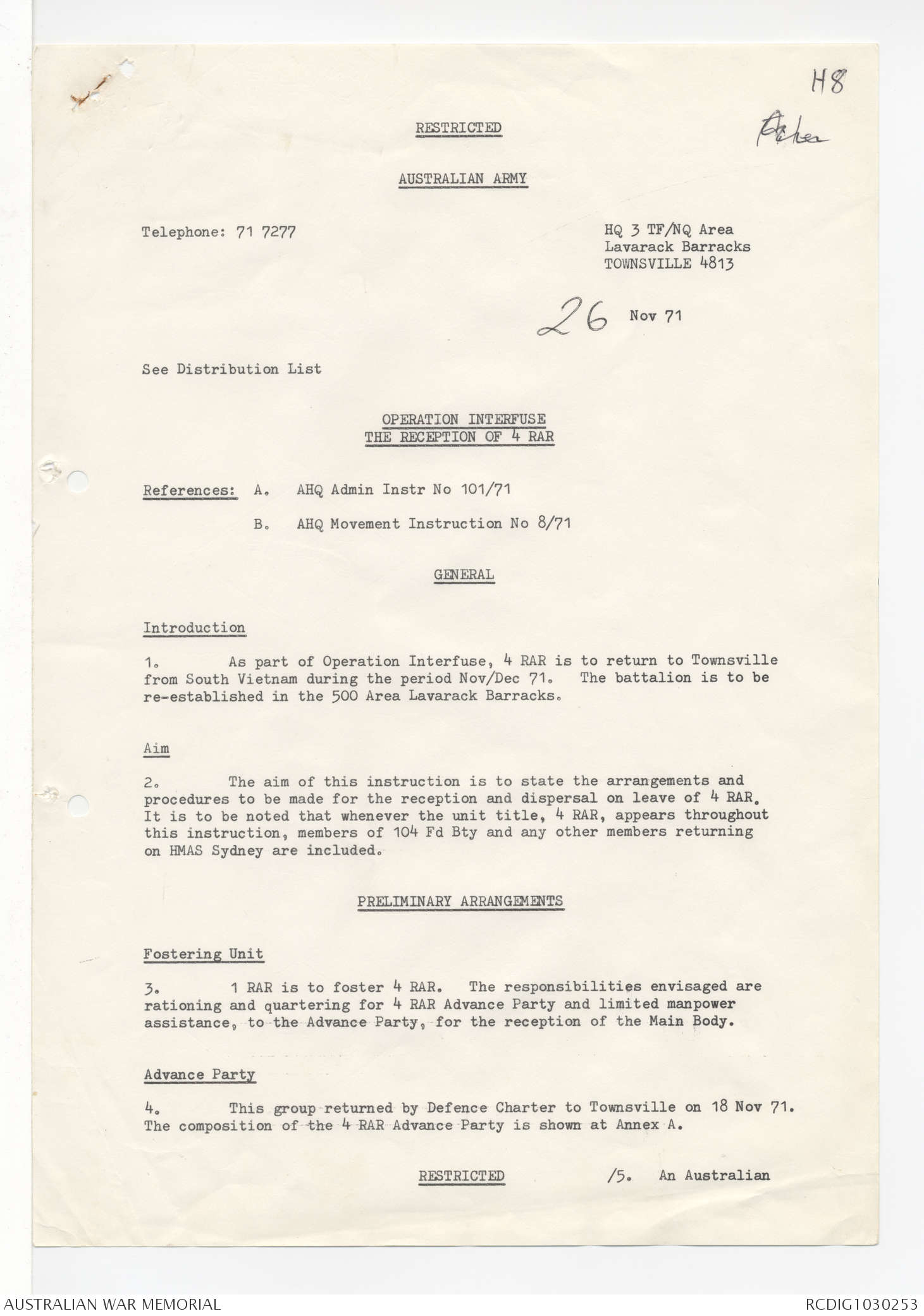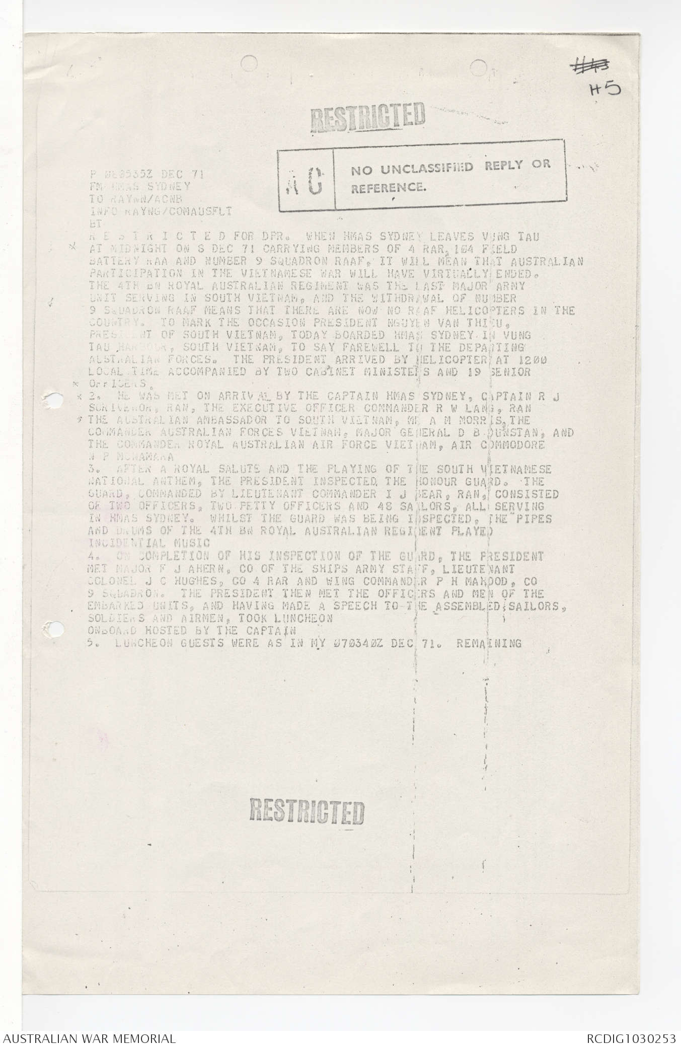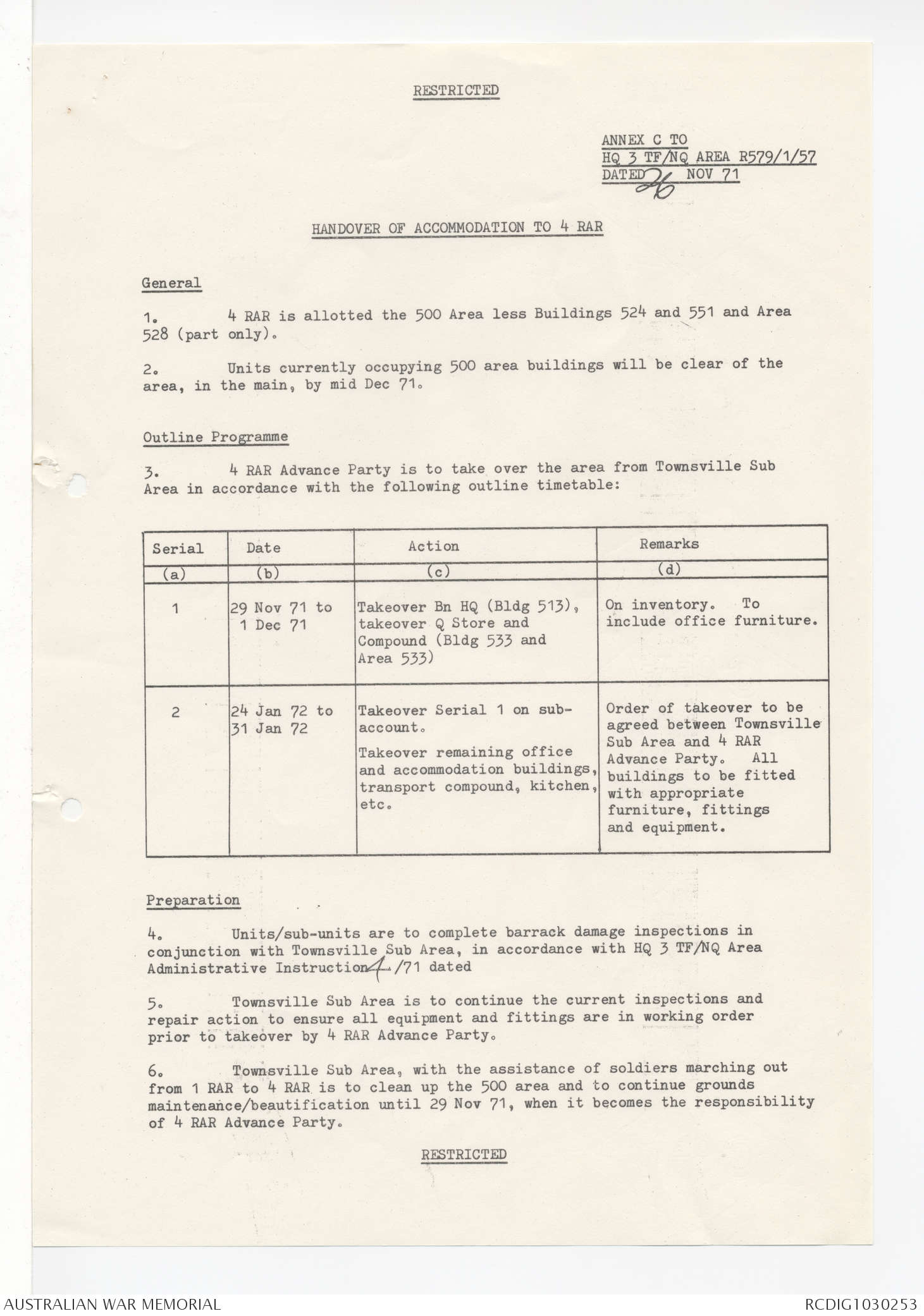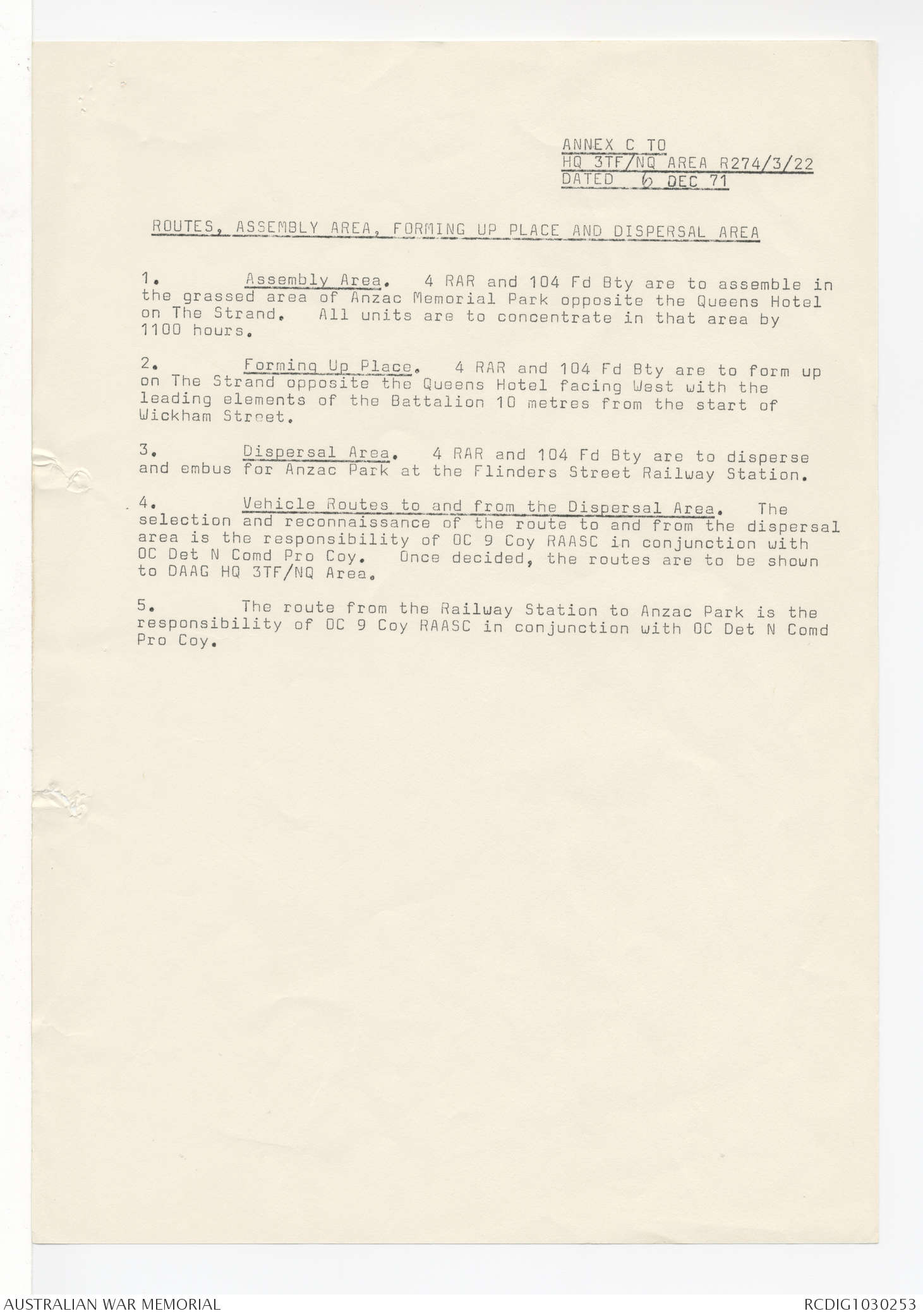 AWM95 7/4/58 - 1-20 December 1971, Narrative, Annexes