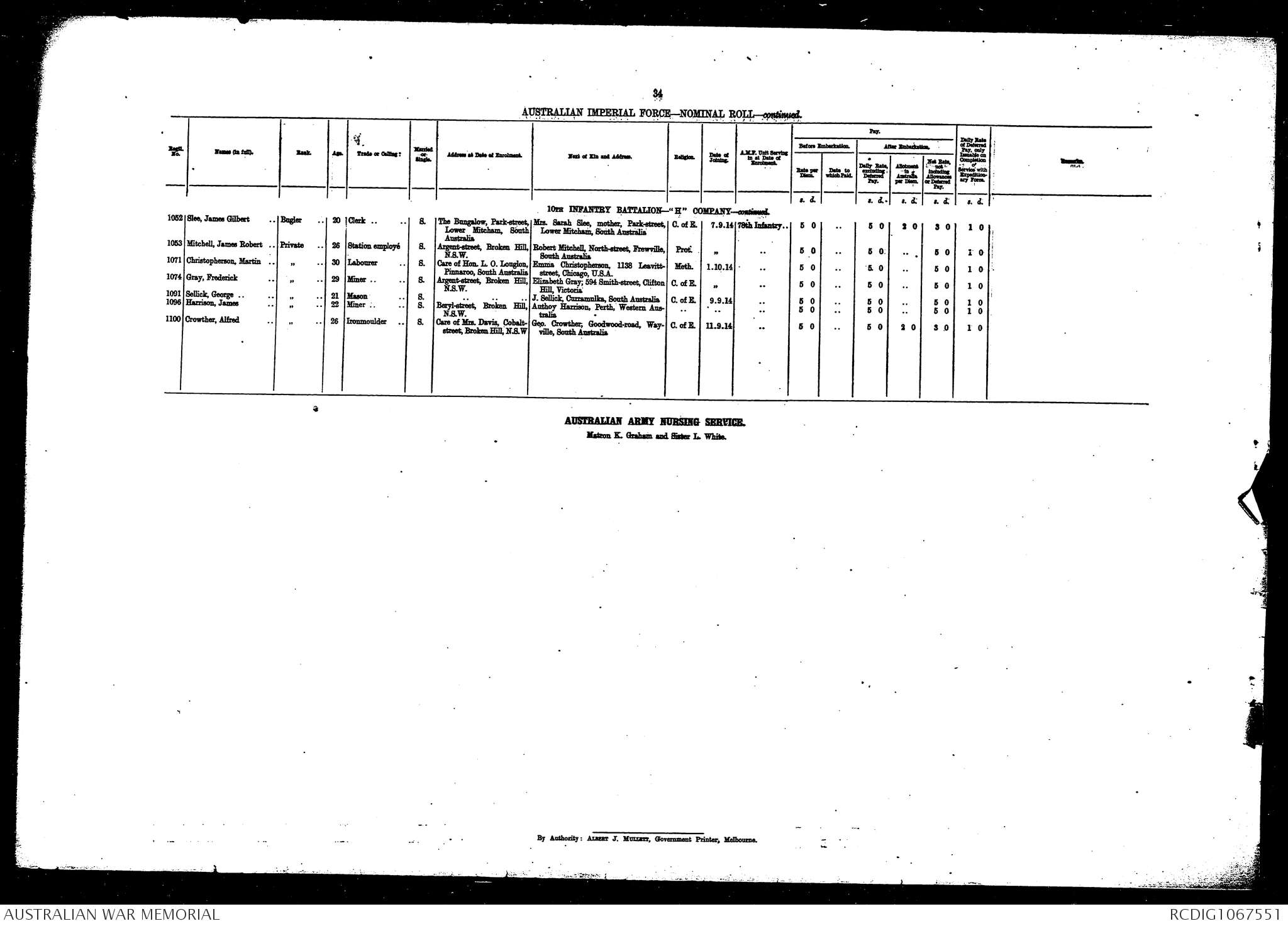 AWM8 23/27/1 - 10 Infantry Battalion (October 1914)