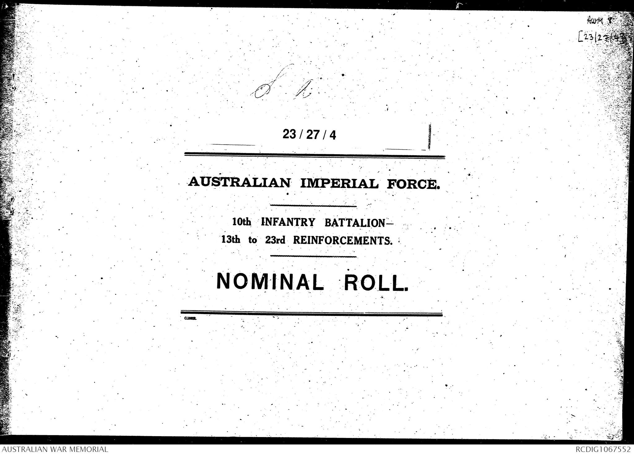 AWM8 23/27/4 - 10 Infantry Battalion - 13 to 23 Reinforcements (January-November 1916)