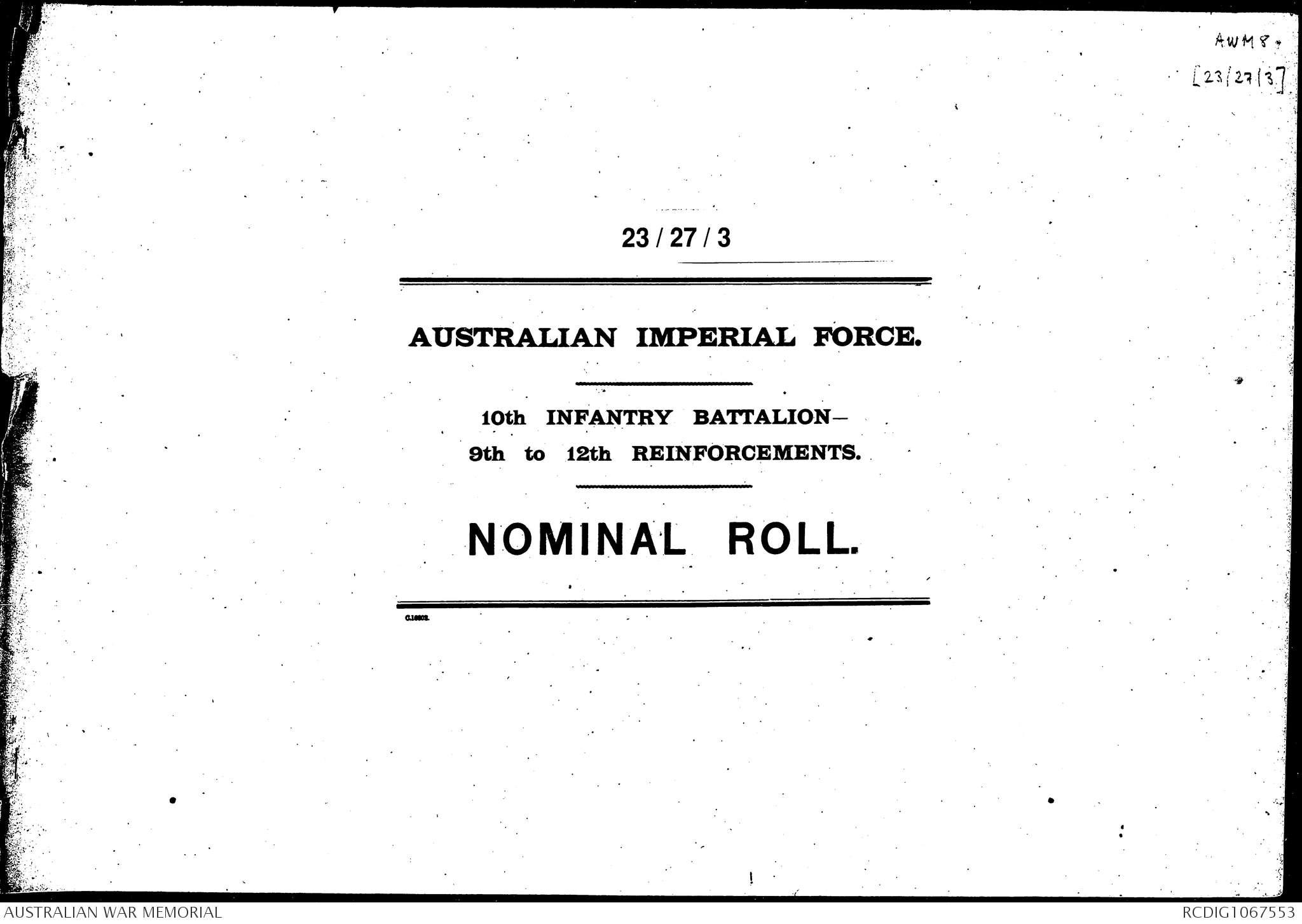 | Collection number | AWM8 23/27/3 |