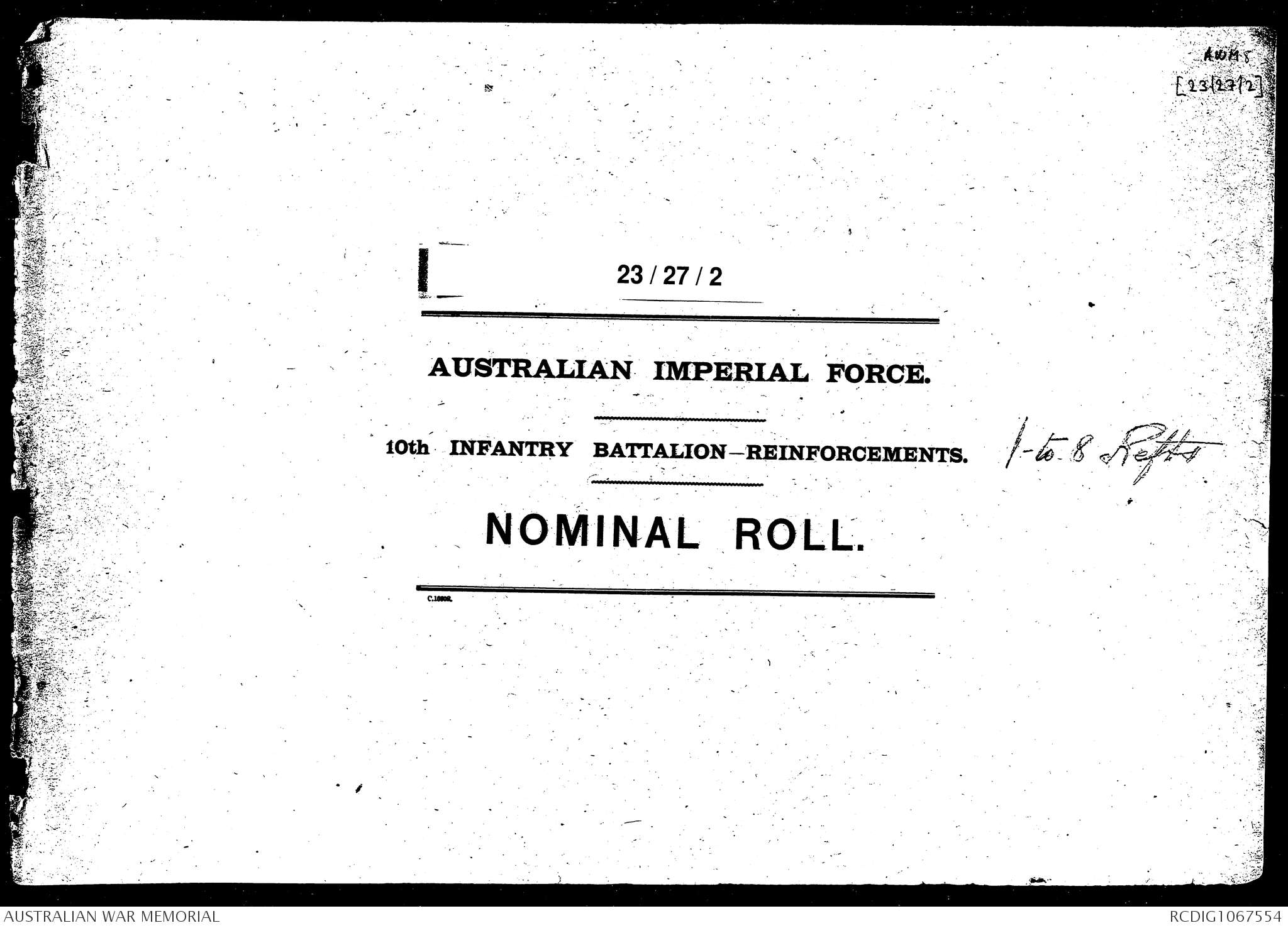 AWM8 23/27/2 - 10 Infantry Battalion - 1 to 8 Reinforcements (December 1914 - September 1915)
