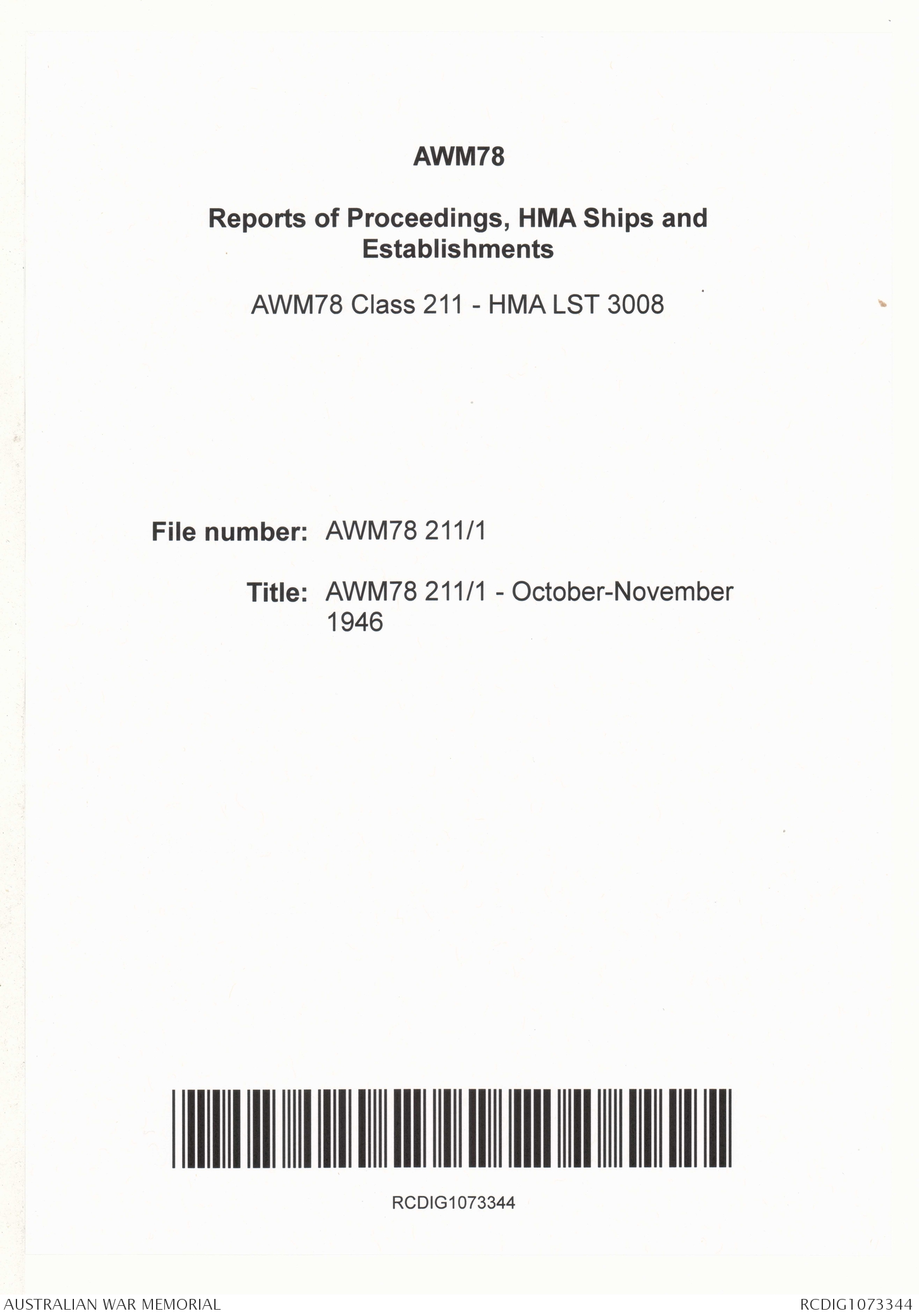 | Collection number | AWM78 211/1 |