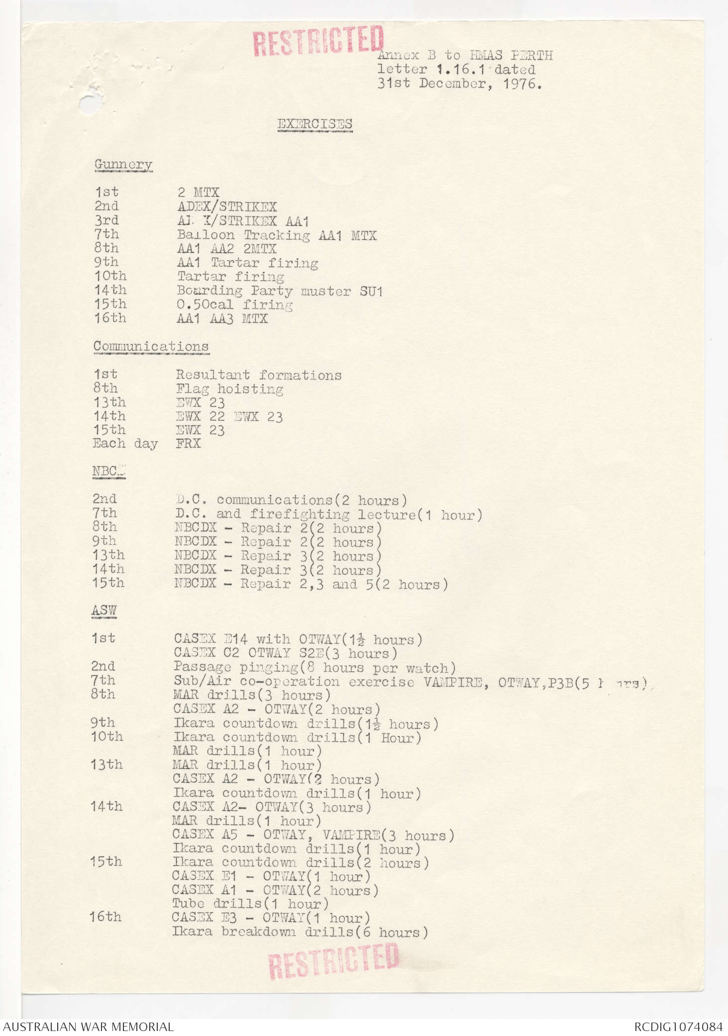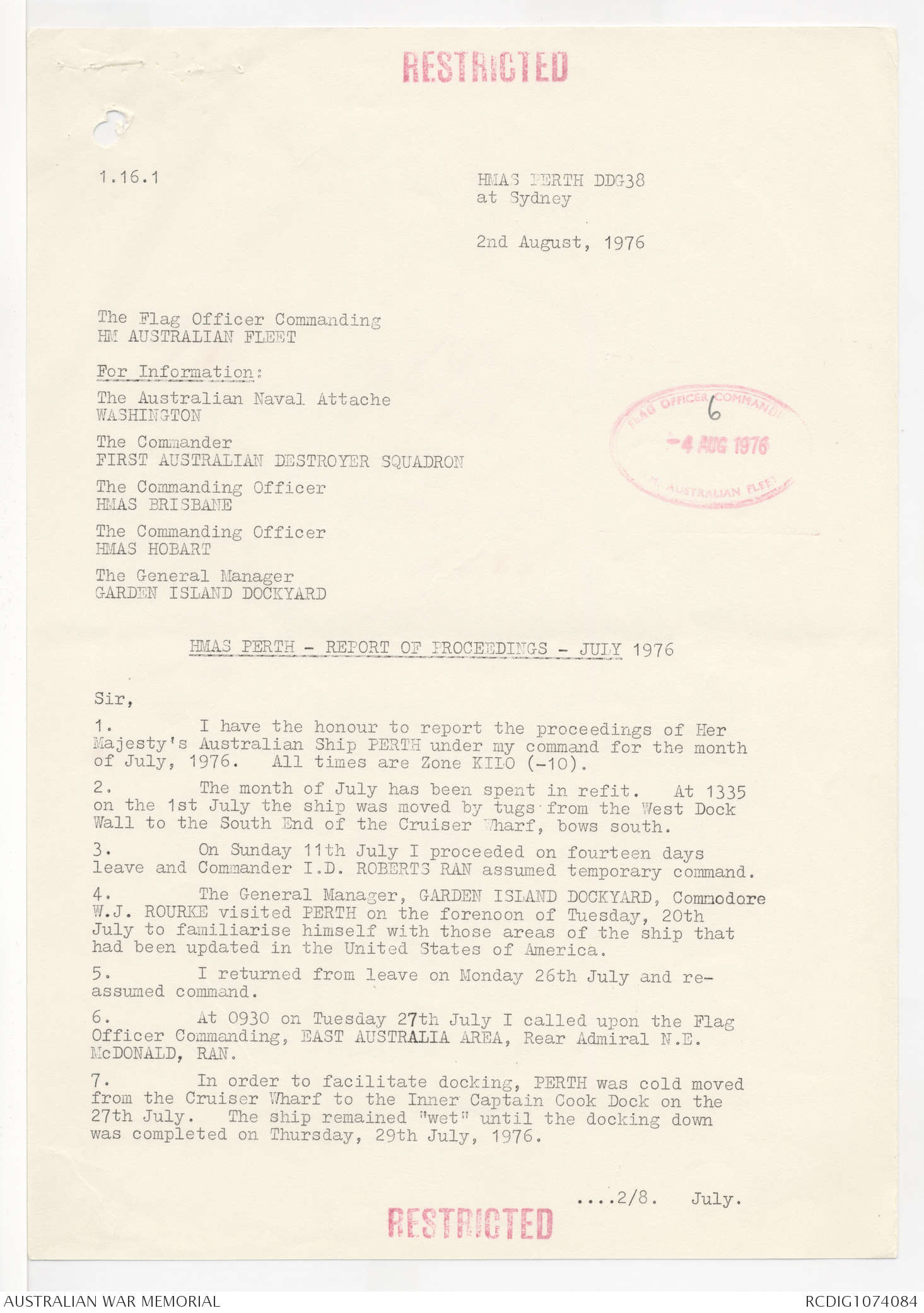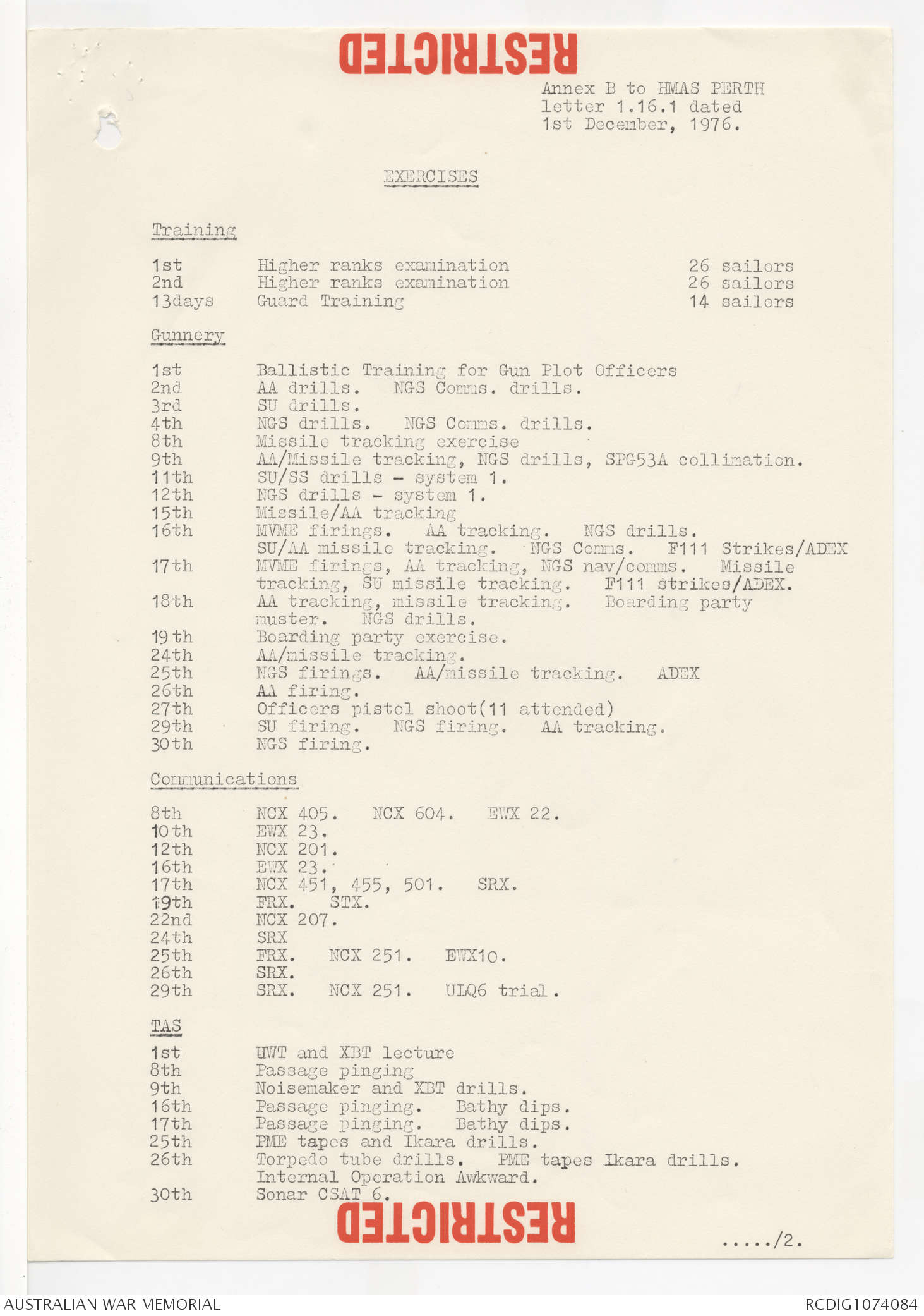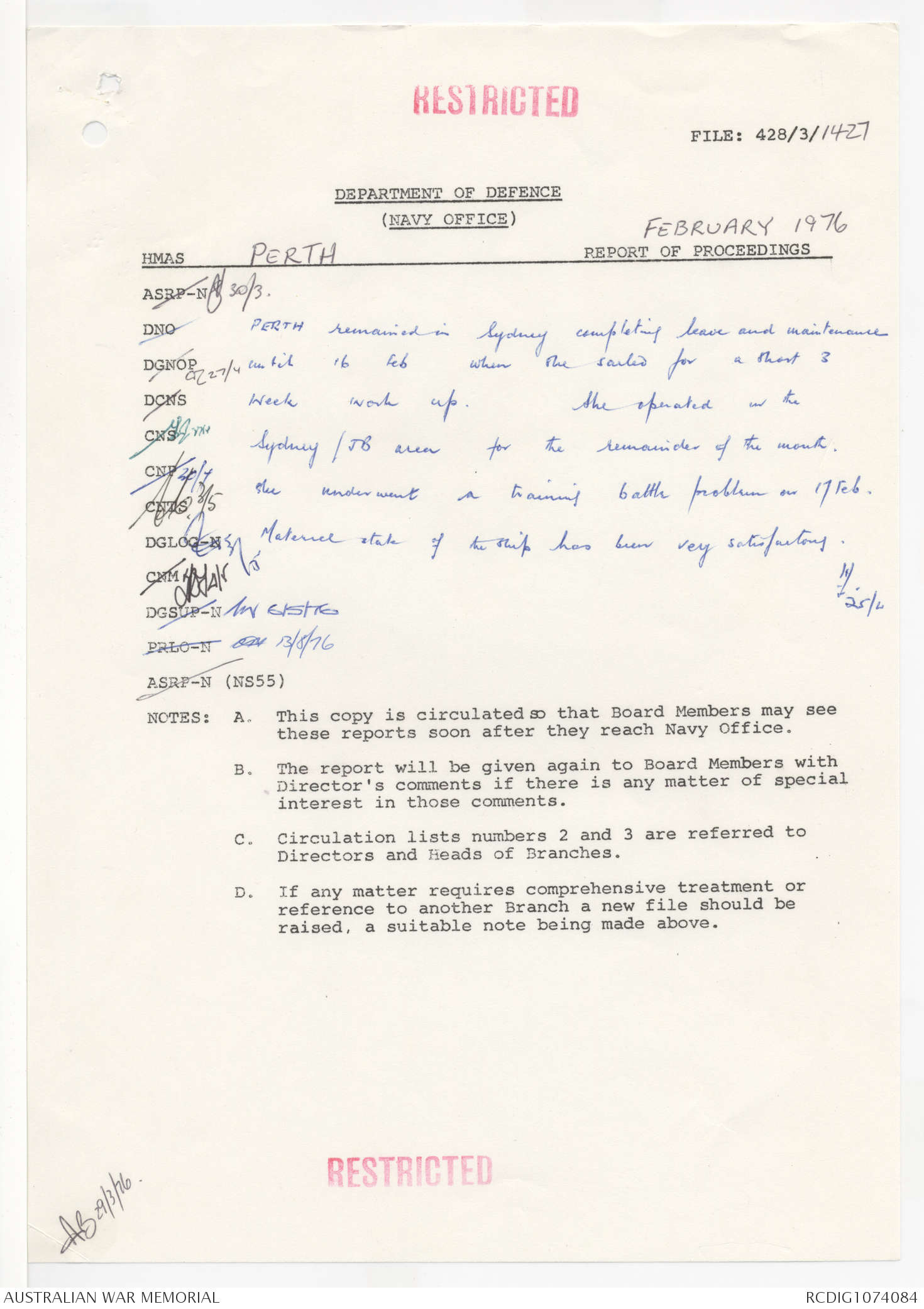 - AWM78 Class 292 - HMAS PERTH (I and II)