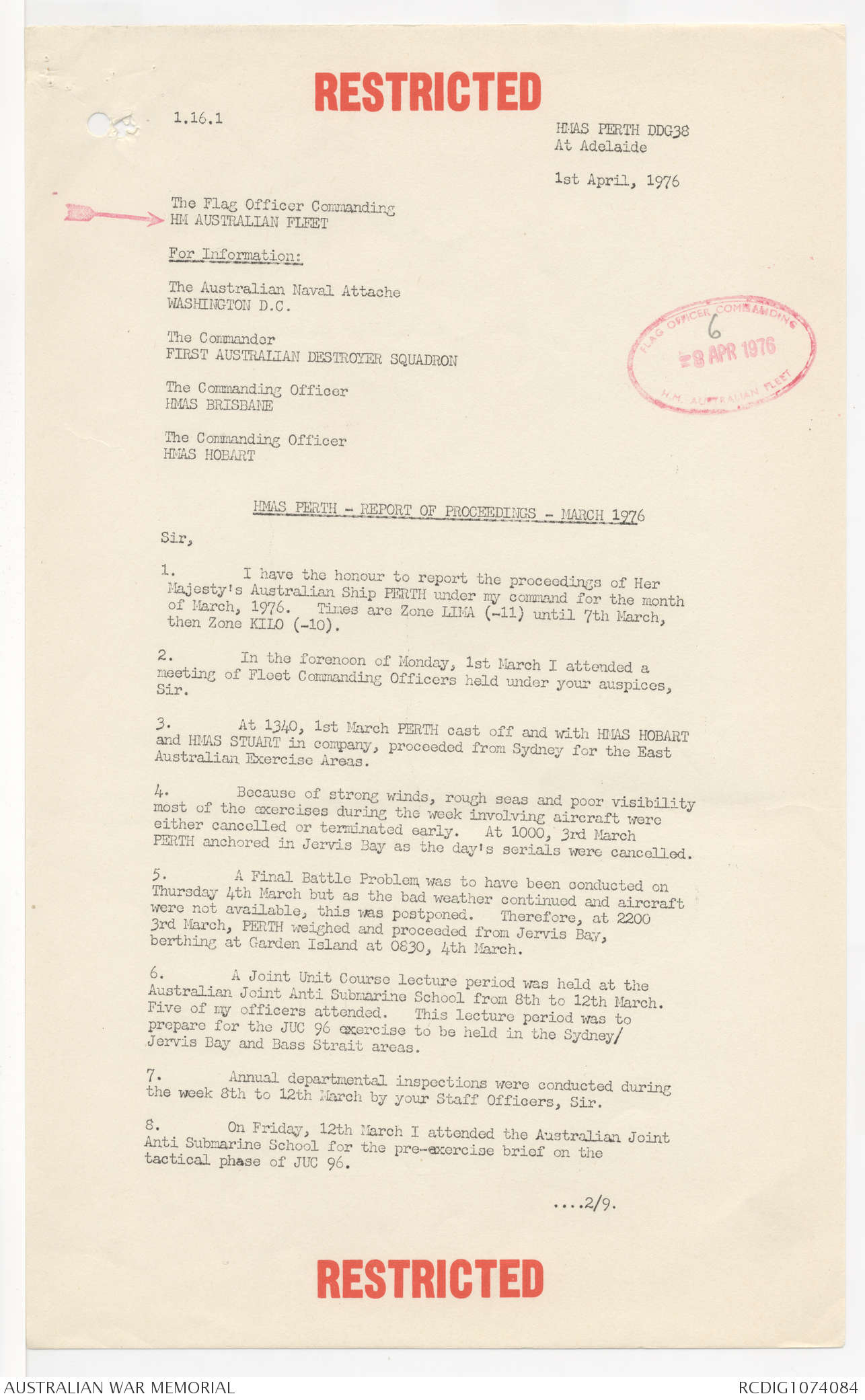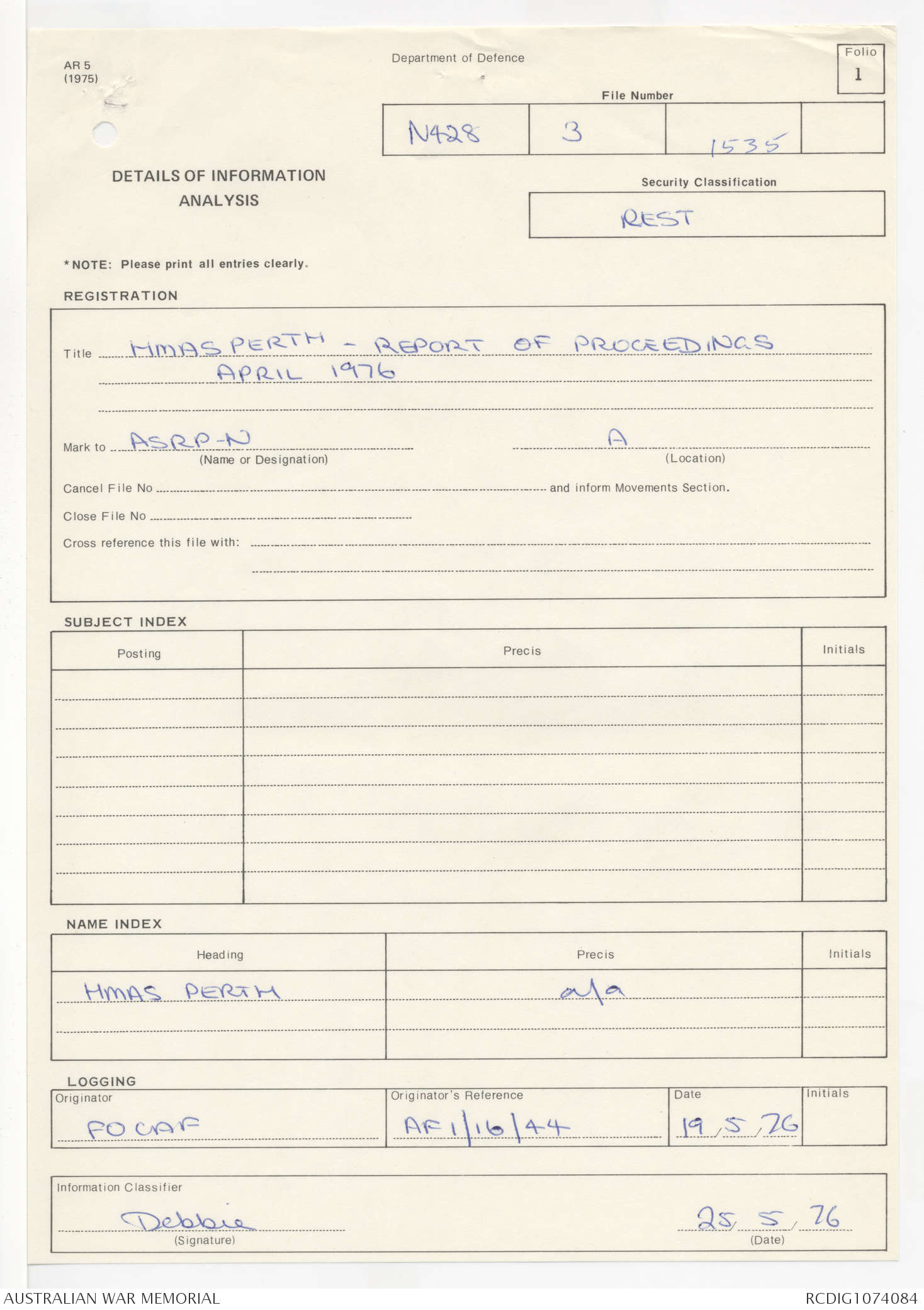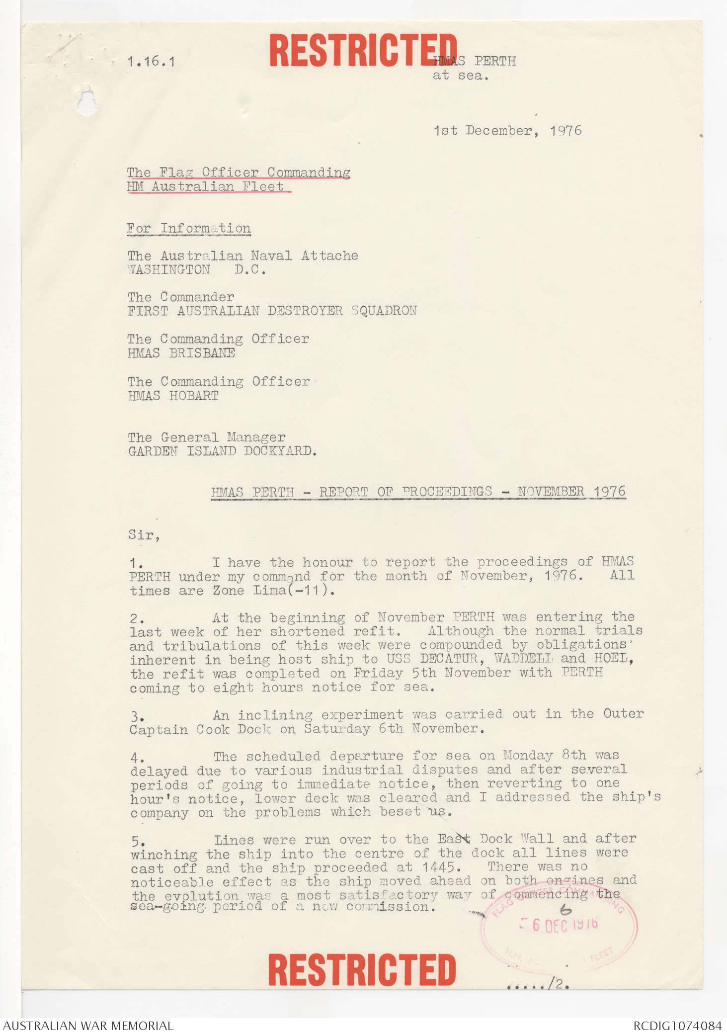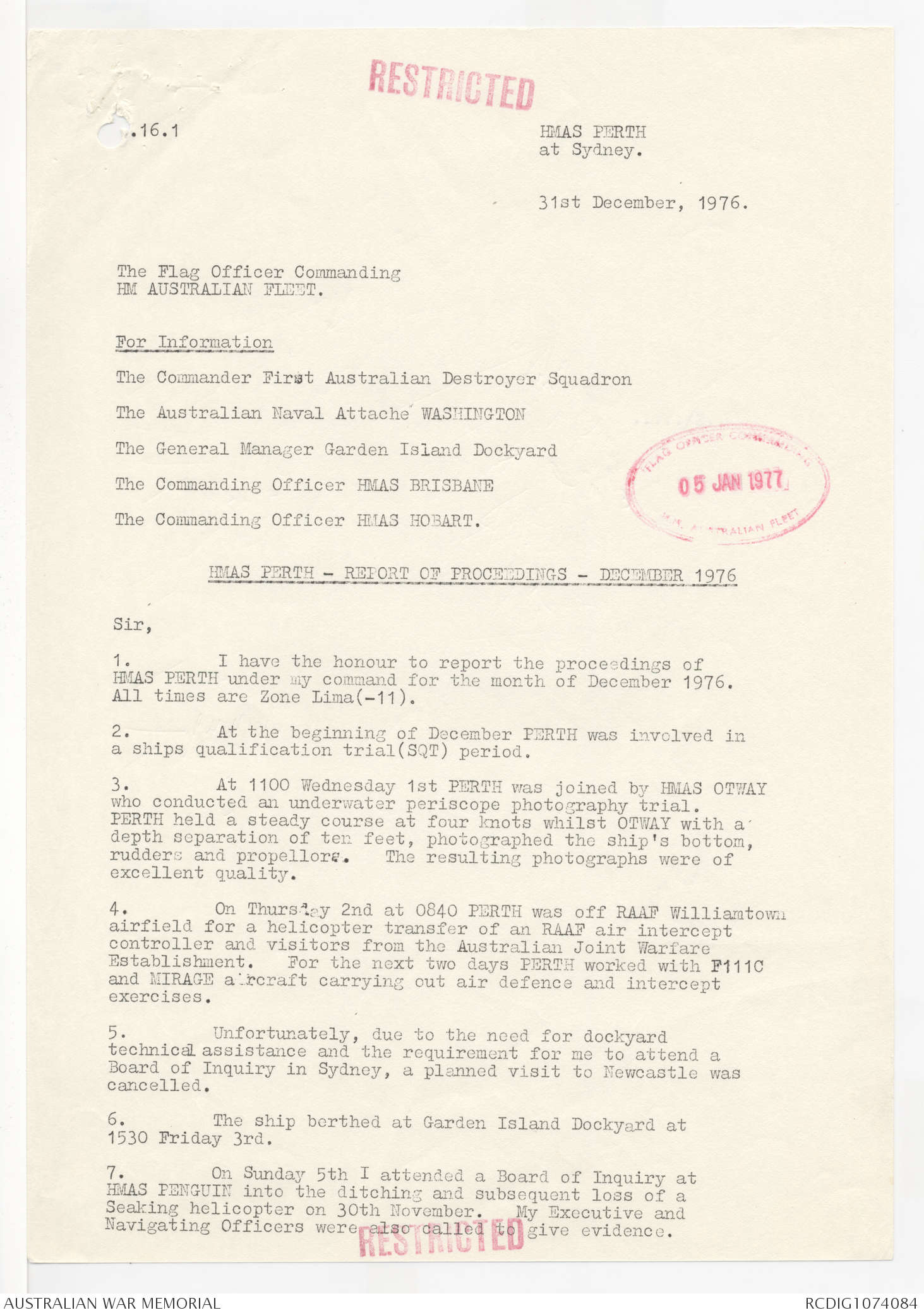 - AWM78 Class 292 - HMAS PERTH (I and II)