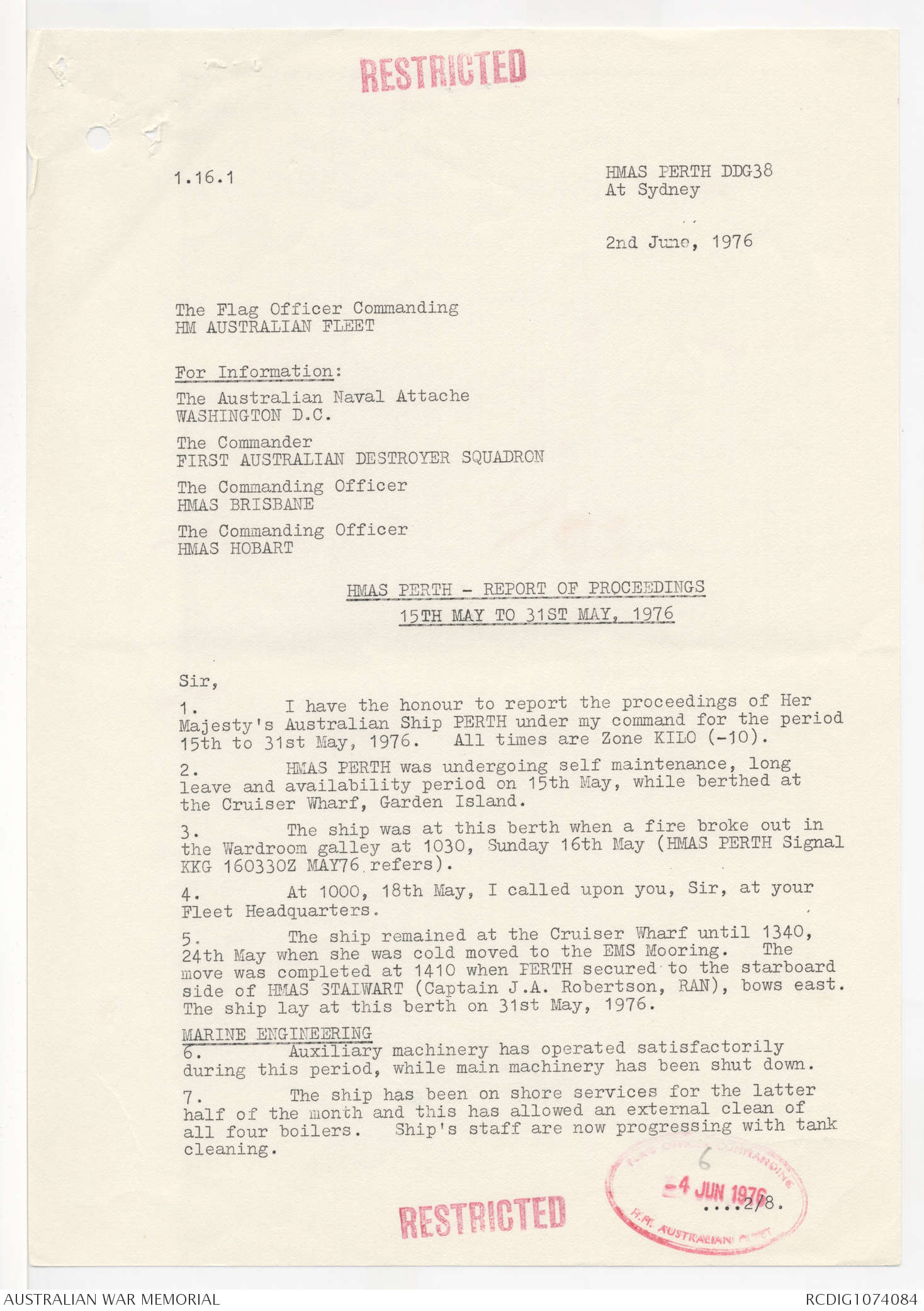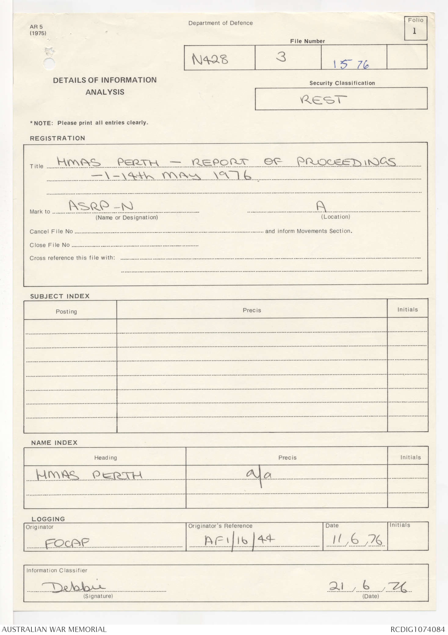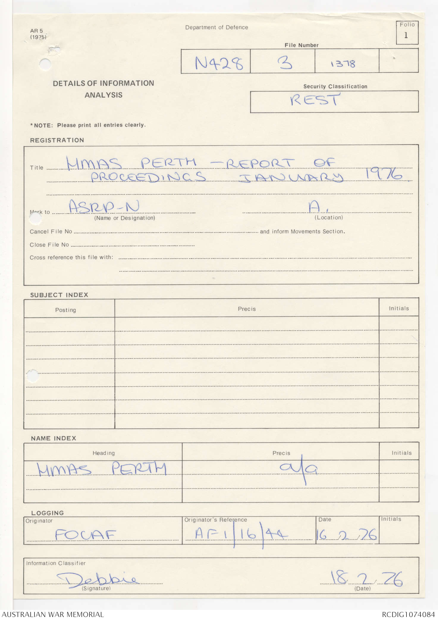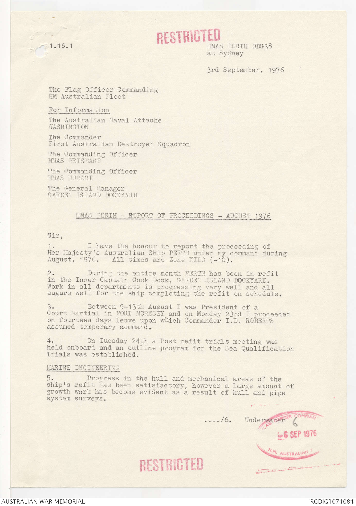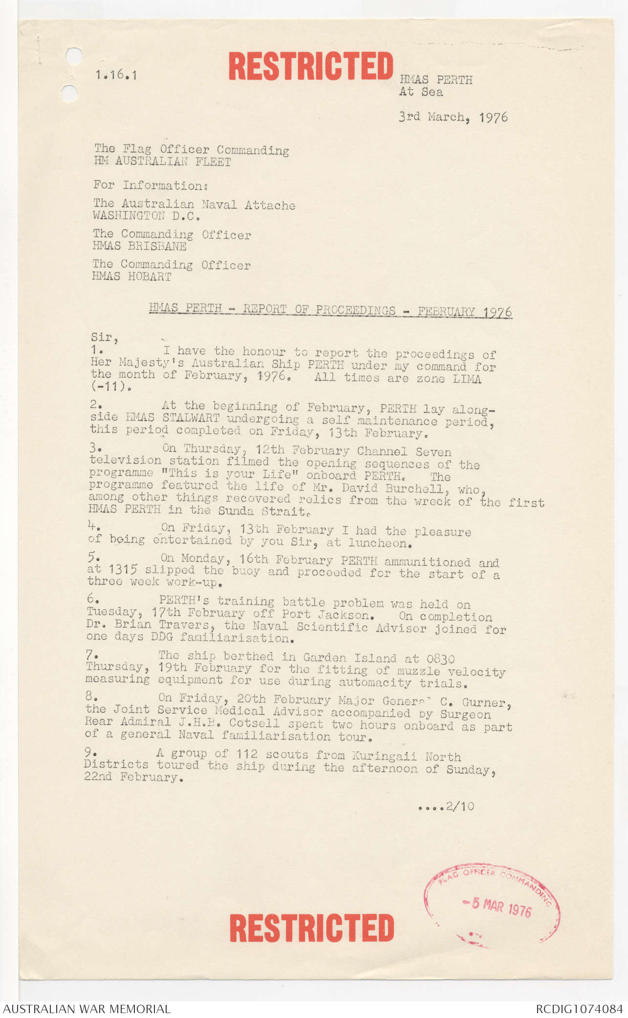 - AWM78 Class 292 - HMAS PERTH (I and II)