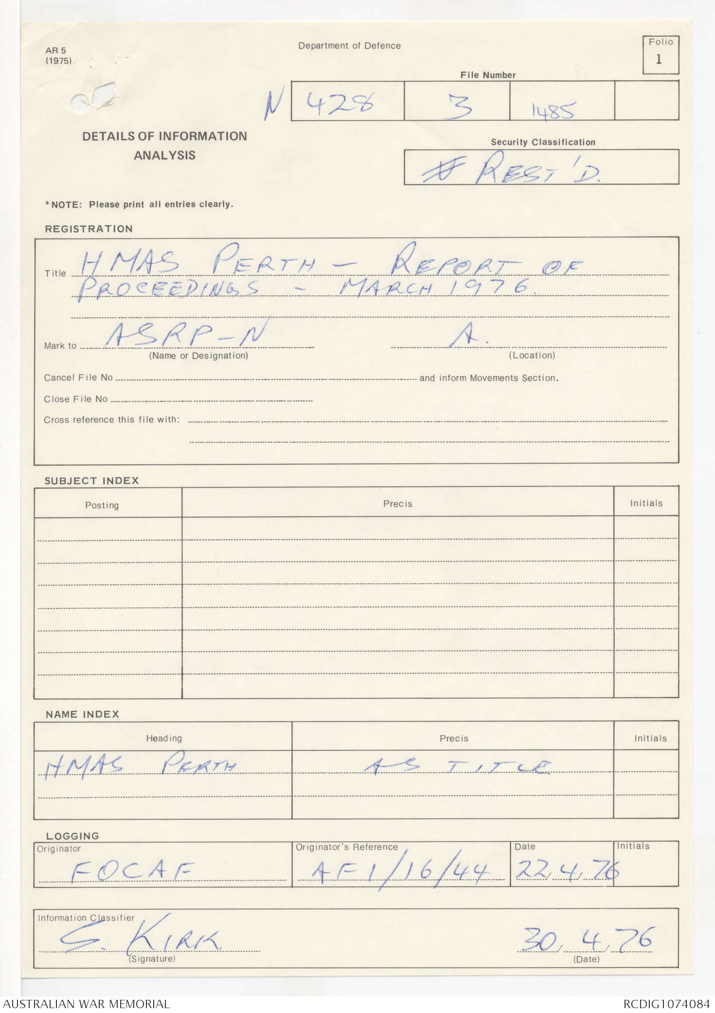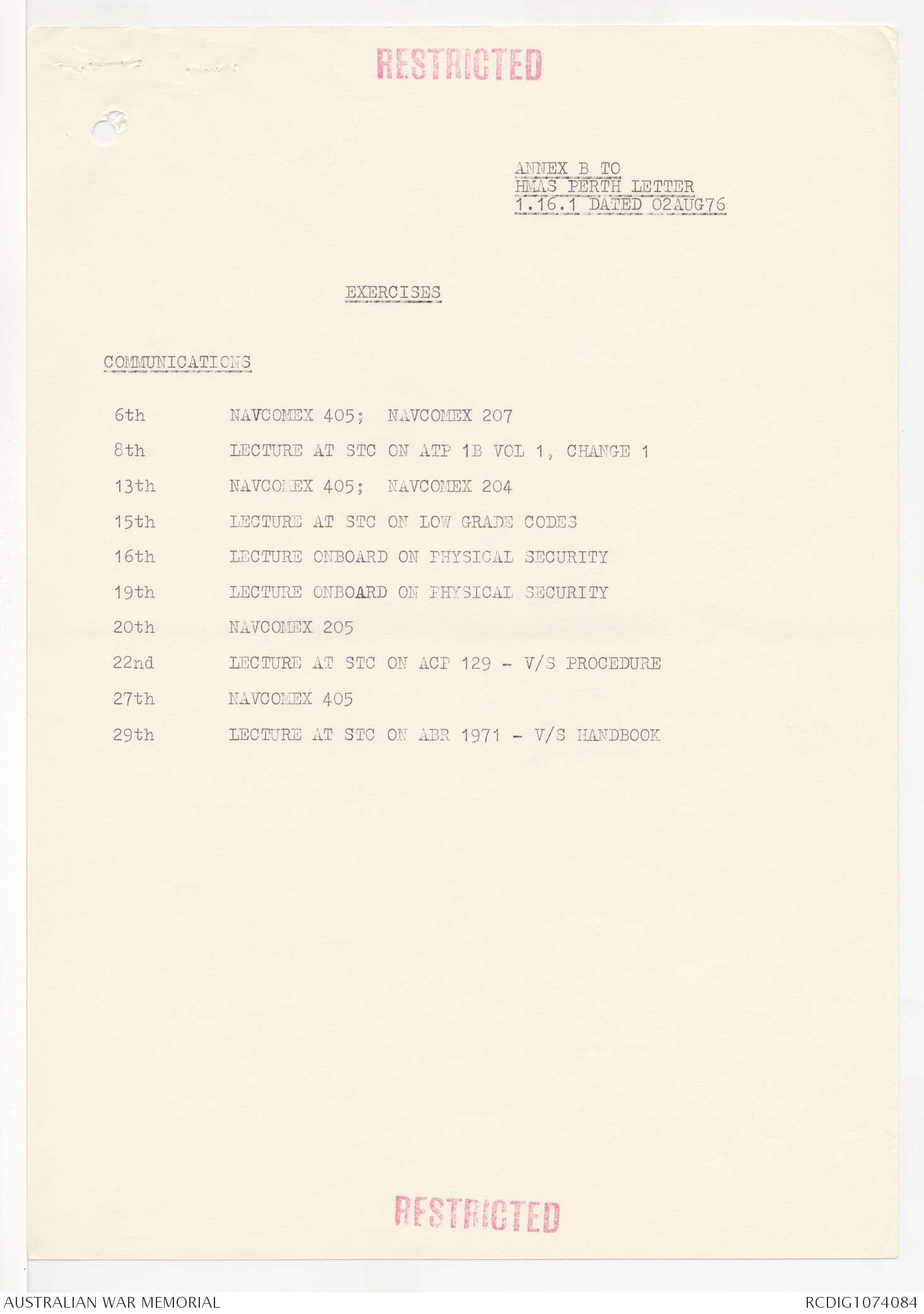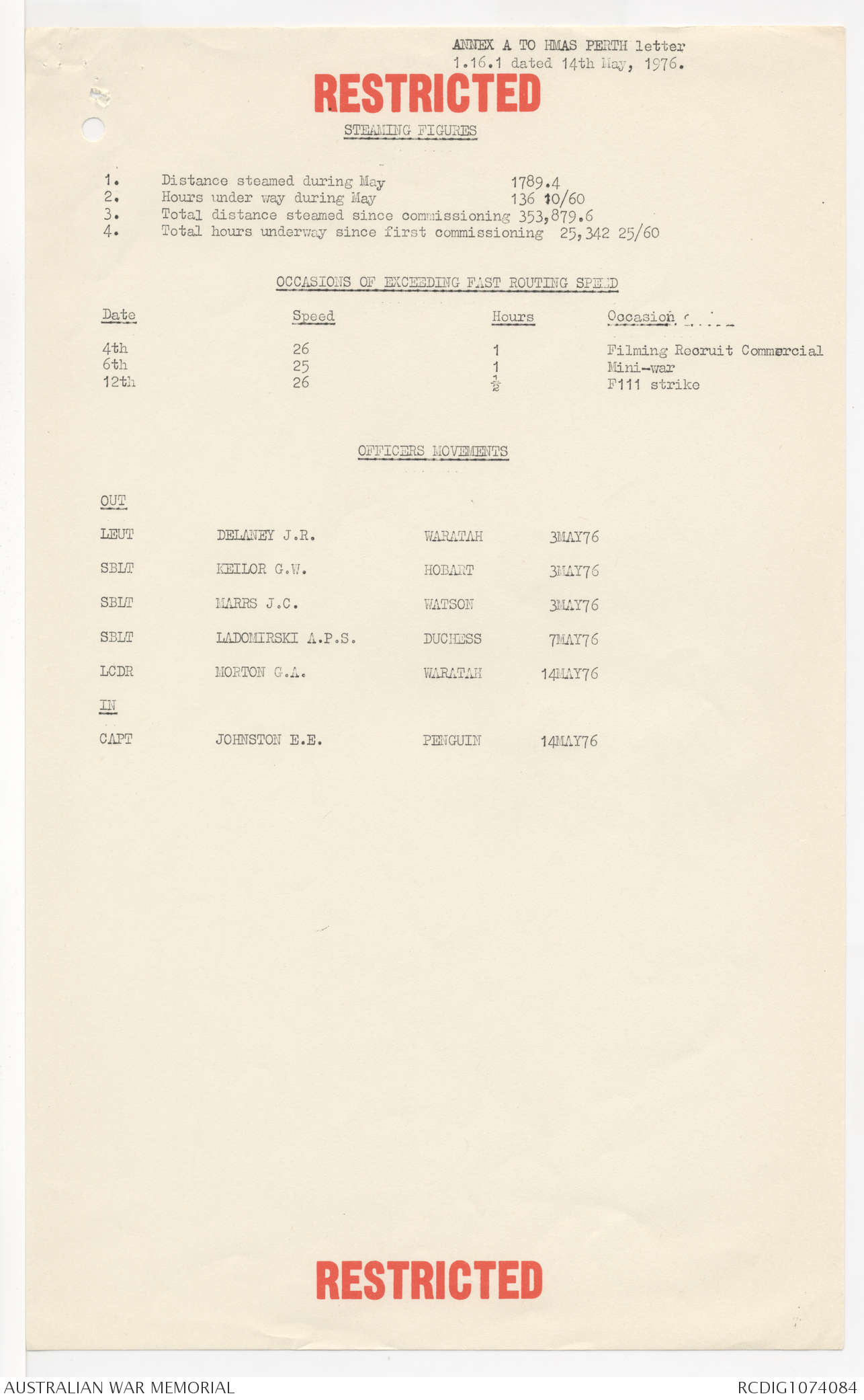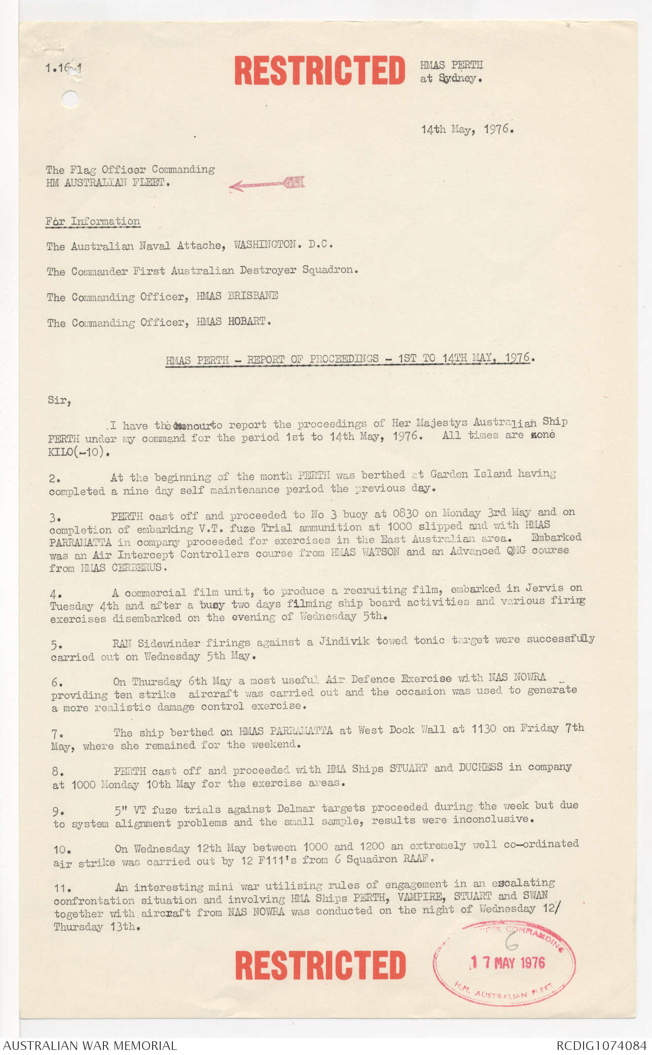 - AWM78 Class 292 - HMAS PERTH (I and II)