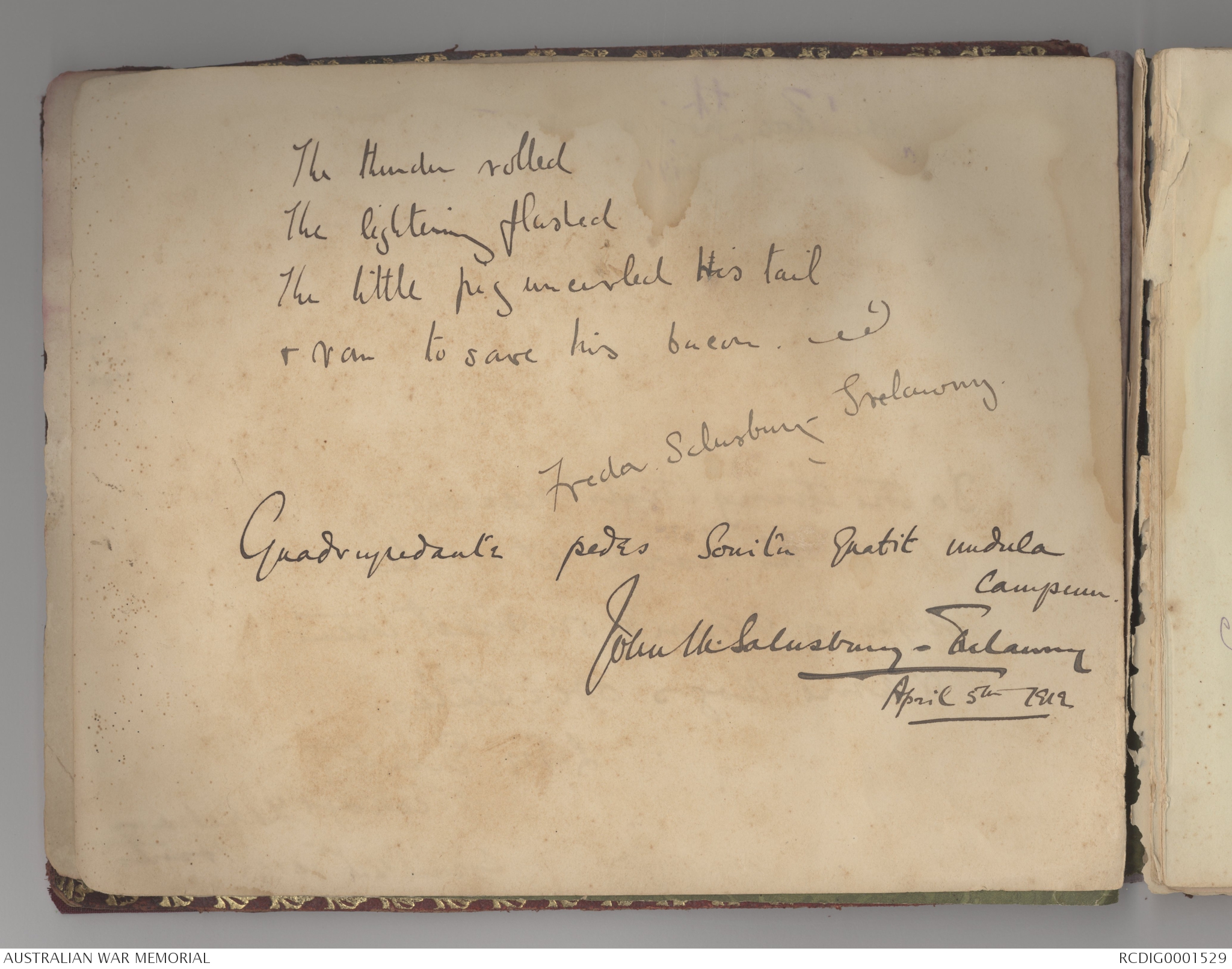 Autograph book of Mary Anne 'Bessie' Pocock, 1900 - June 1919