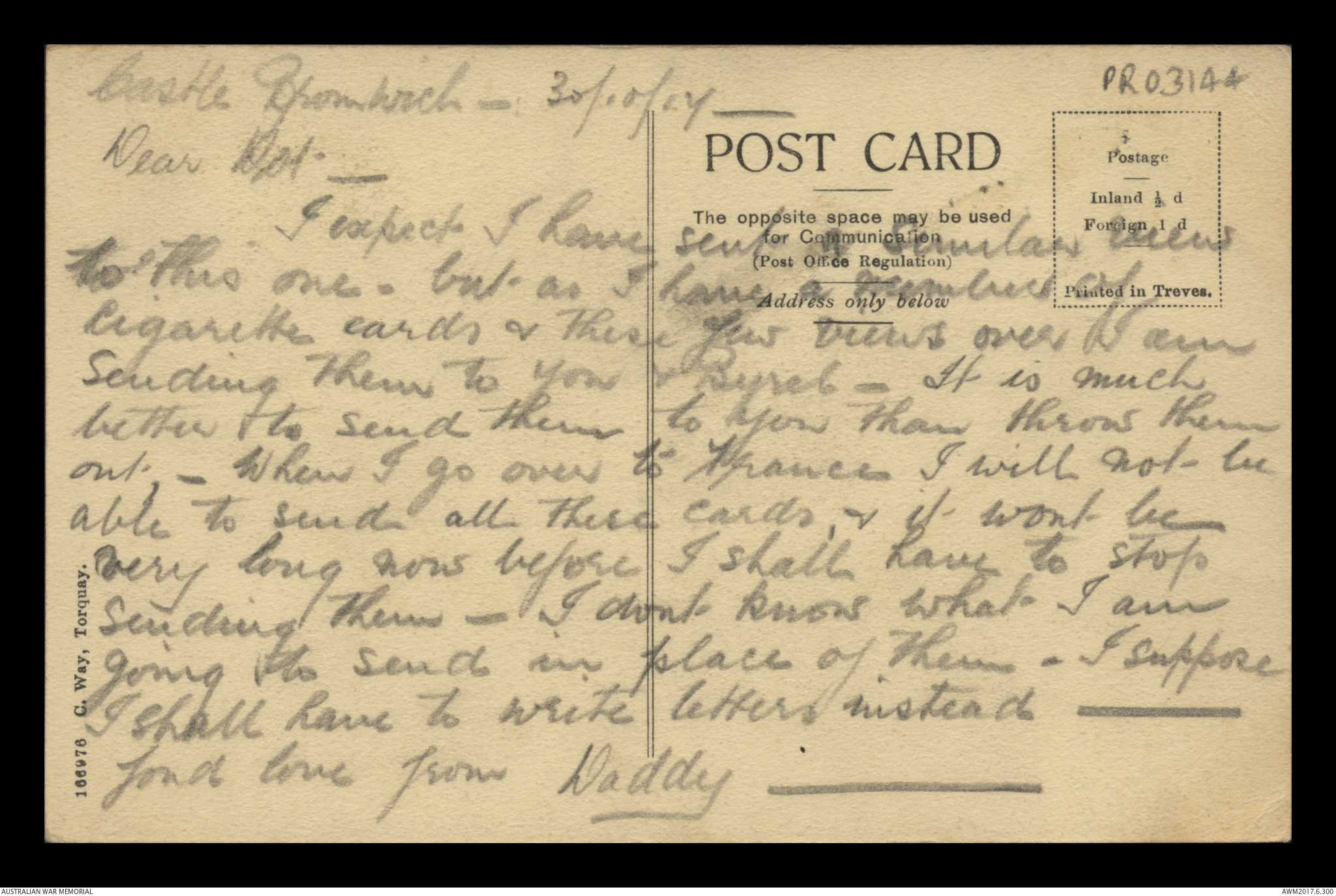 Postcard from Frederick Ewart Ryder to Dorothy Ryder, c. May 1917;