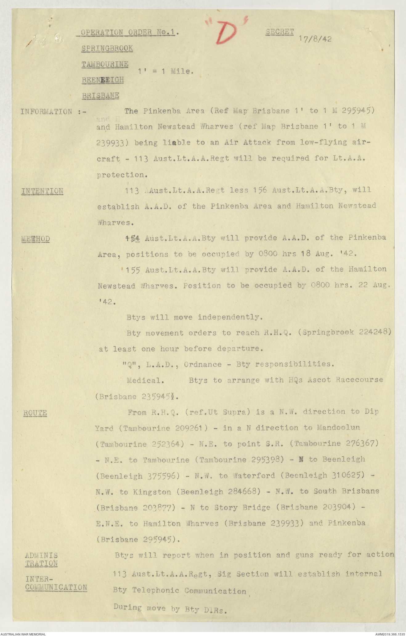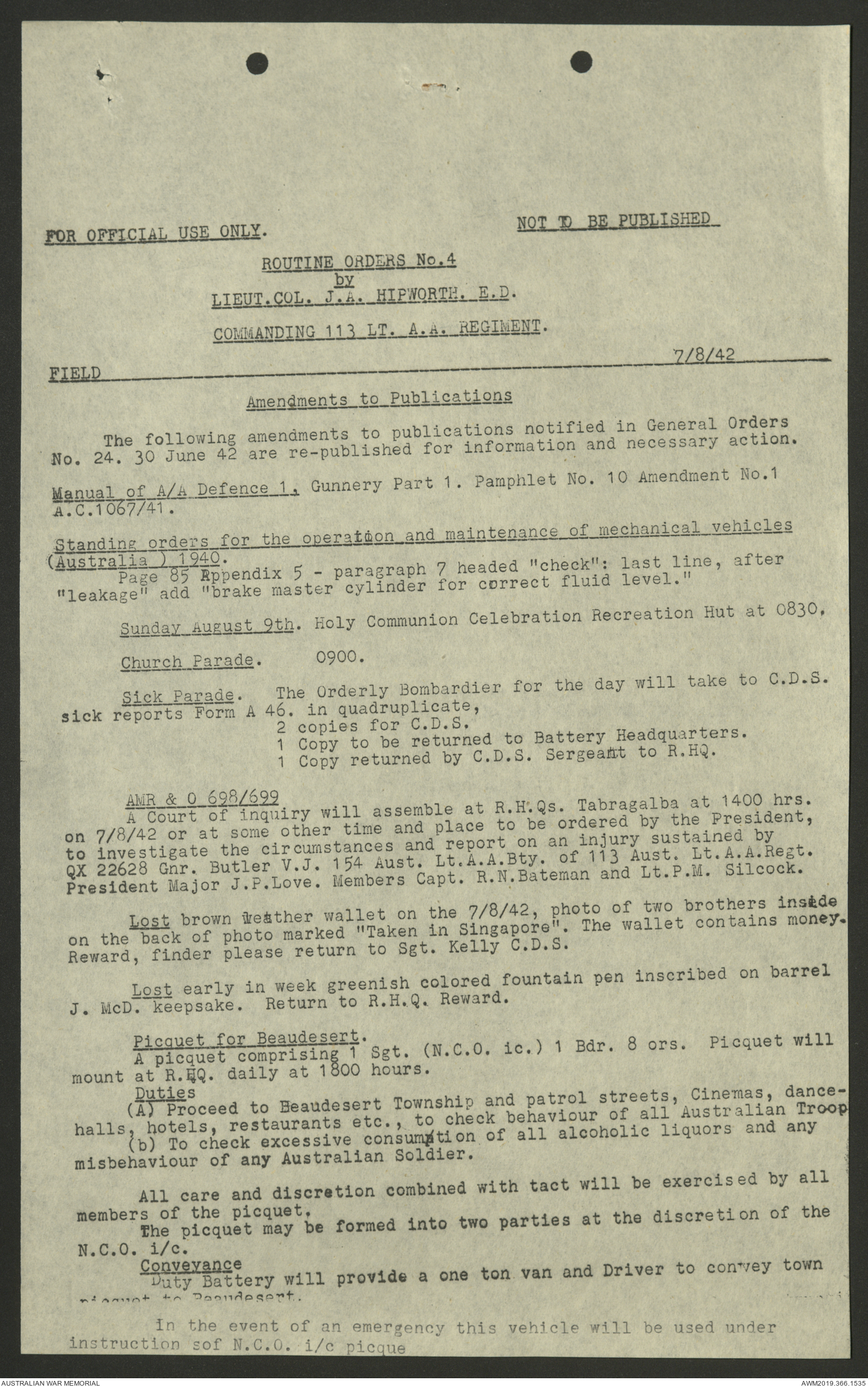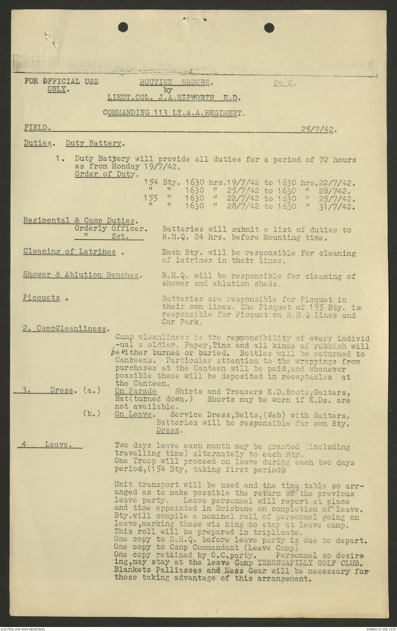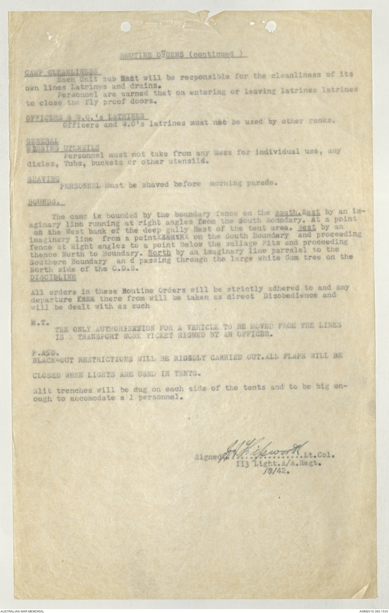 AWM52 4/11/9/1 - [Unit War Diaries, 1939-45 War] 113 Australian Light Anti-Aircraft Regiment, June - August 1942