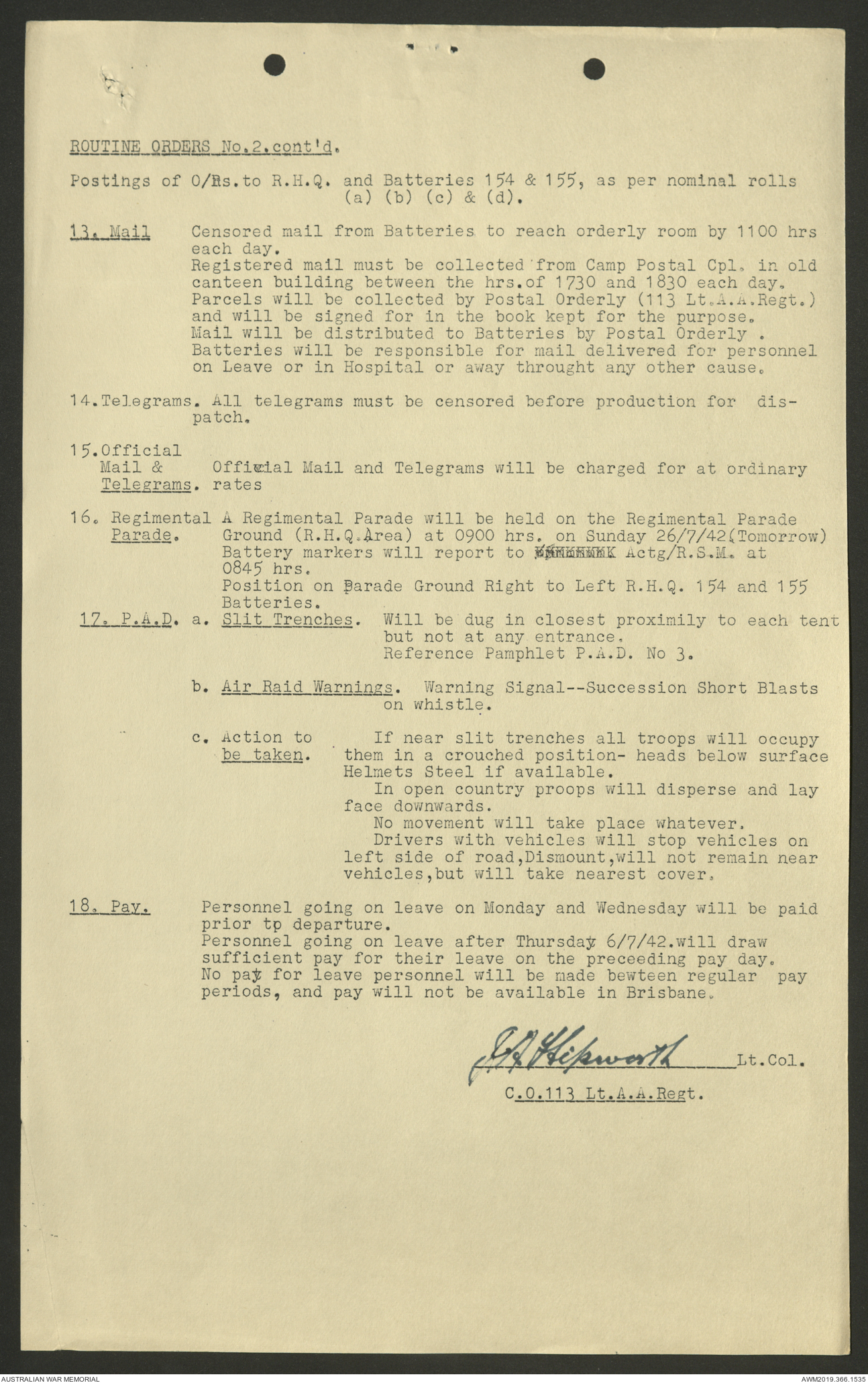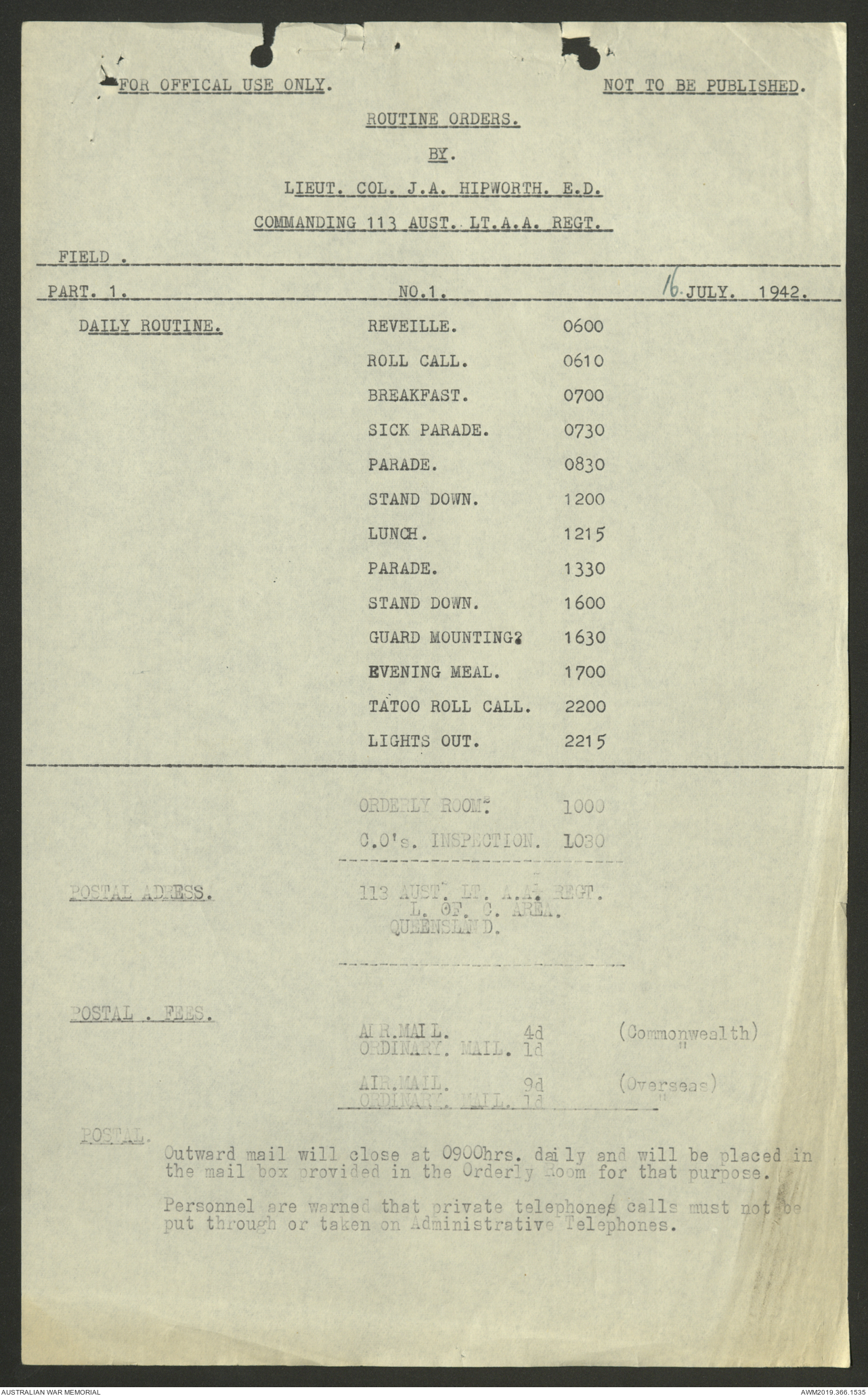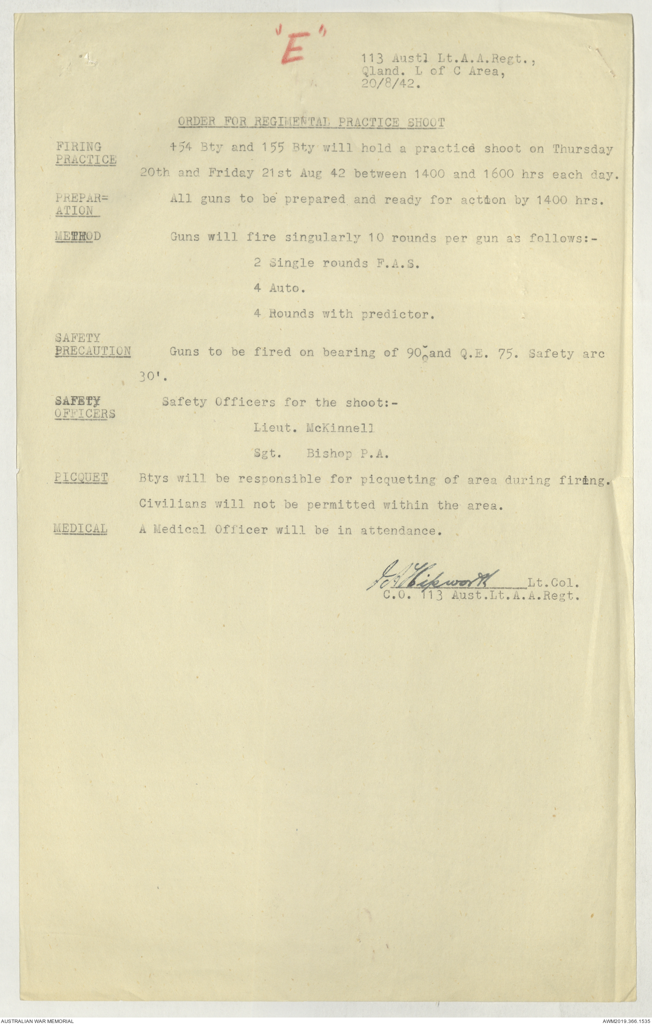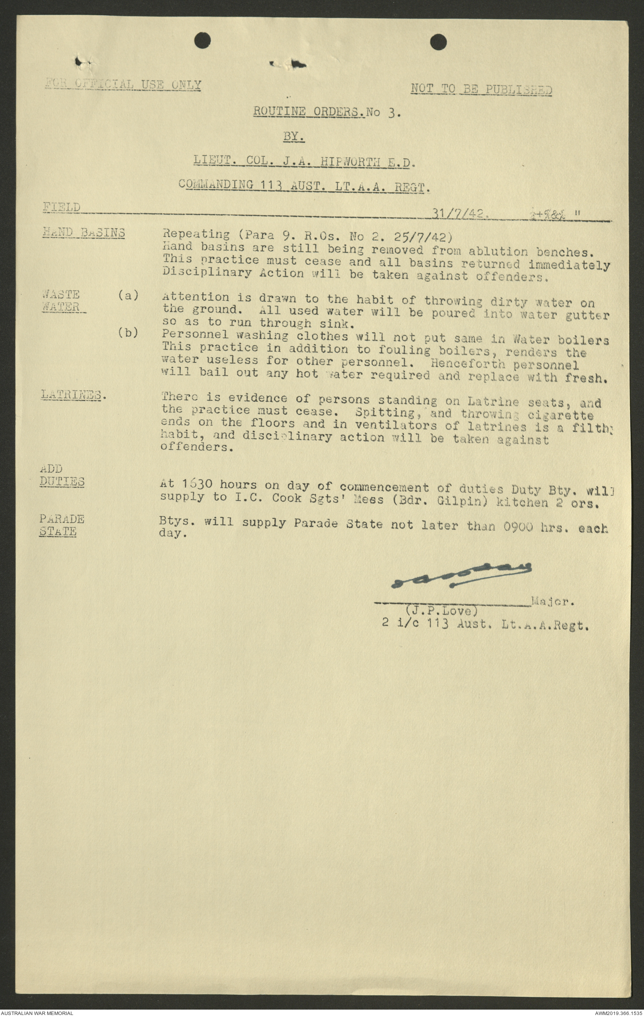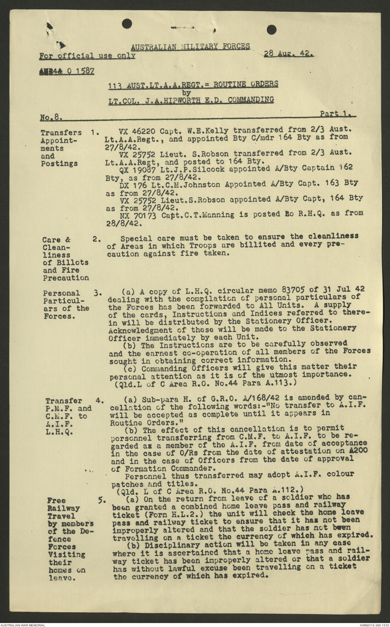 AWM52 4/11/9/1 - [Unit War Diaries, 1939-45 War] 113 Australian Light Anti-Aircraft Regiment, June - August 1942