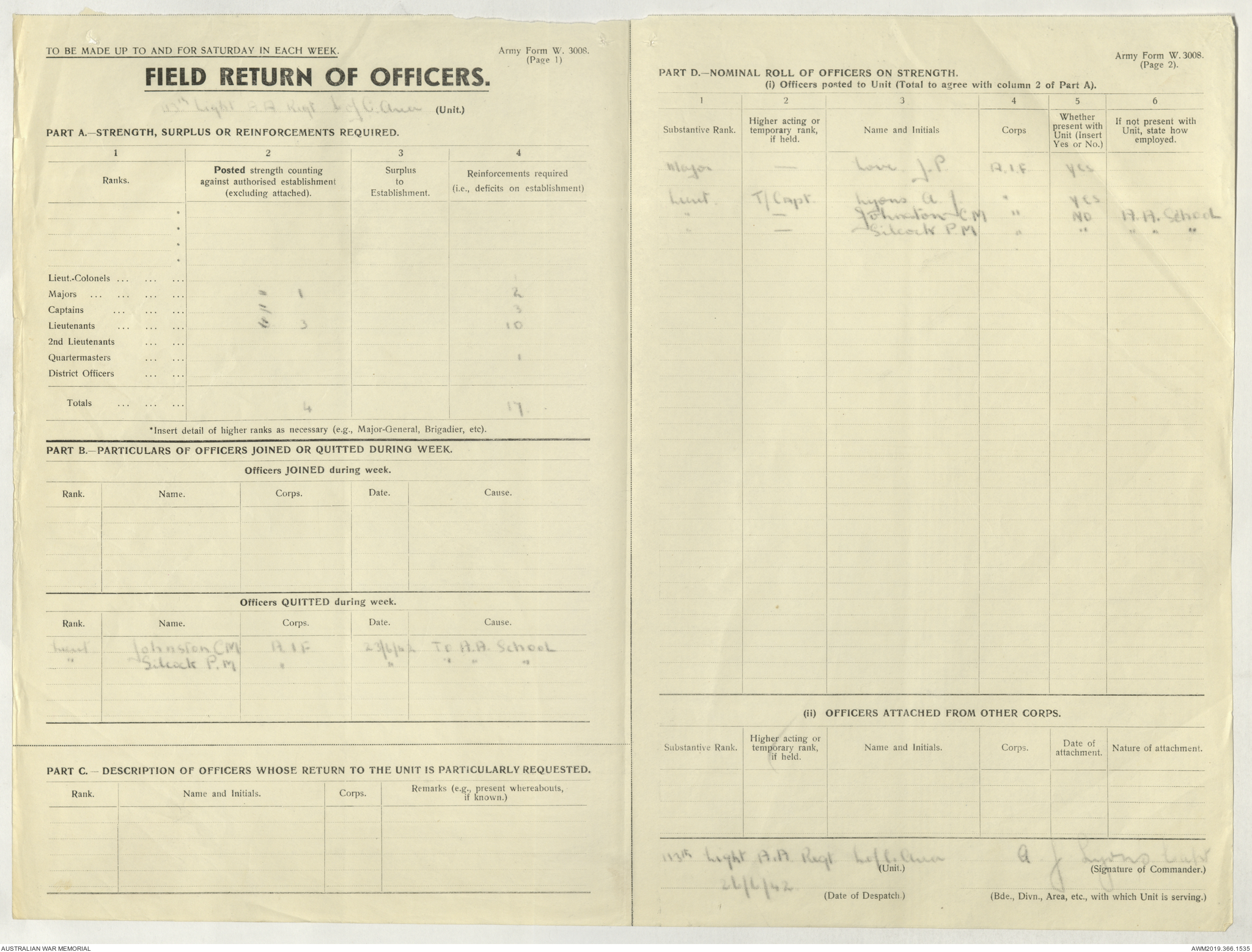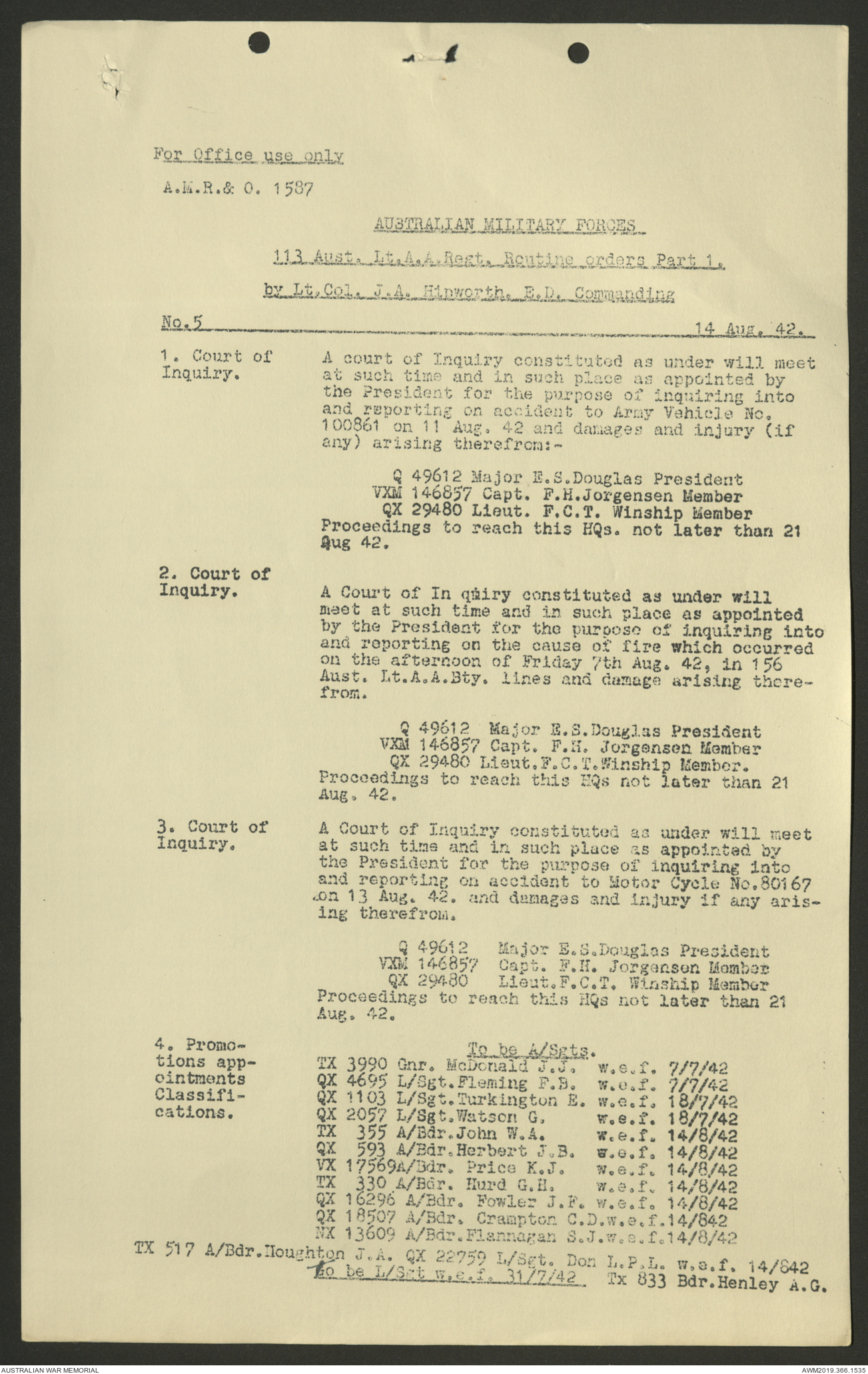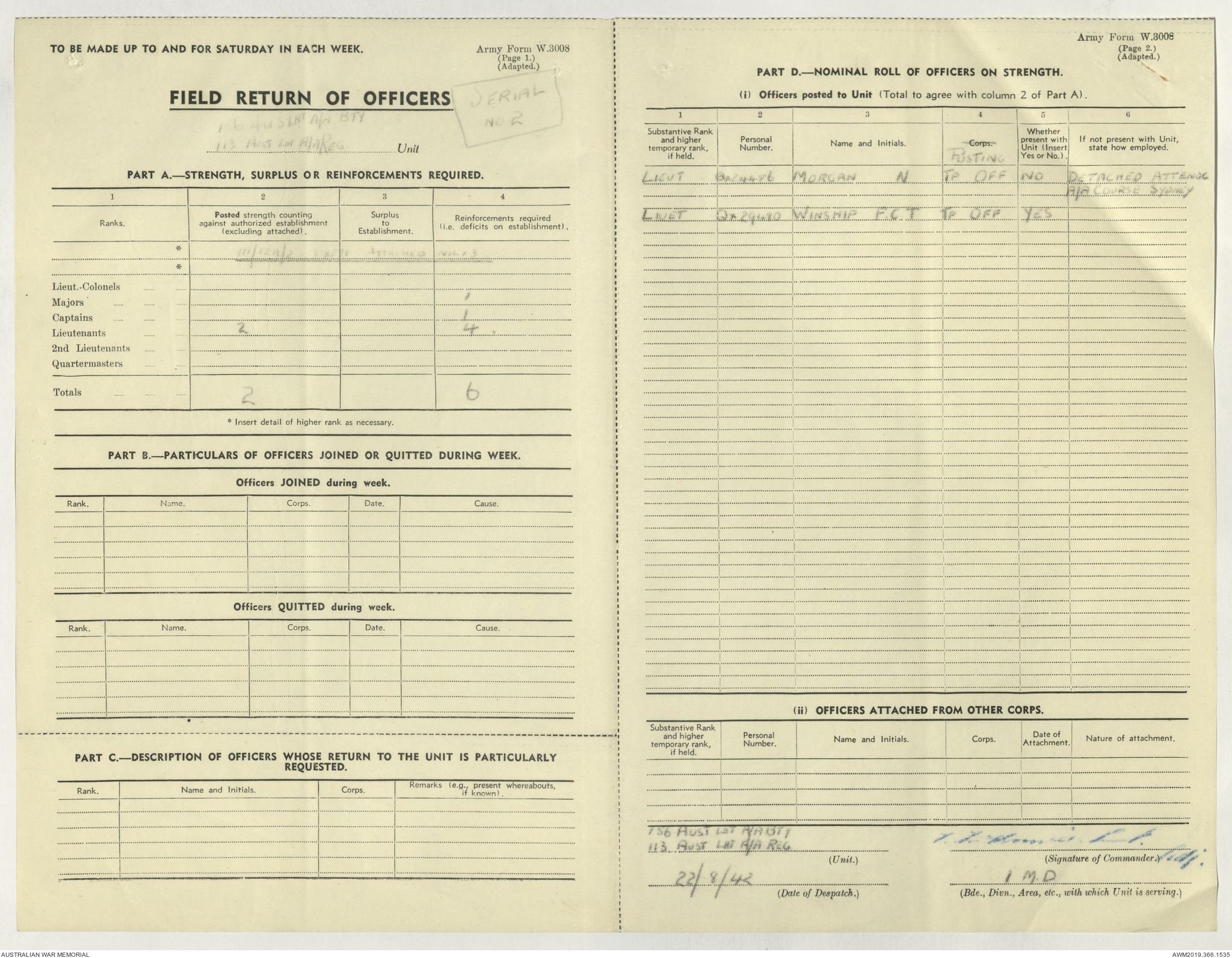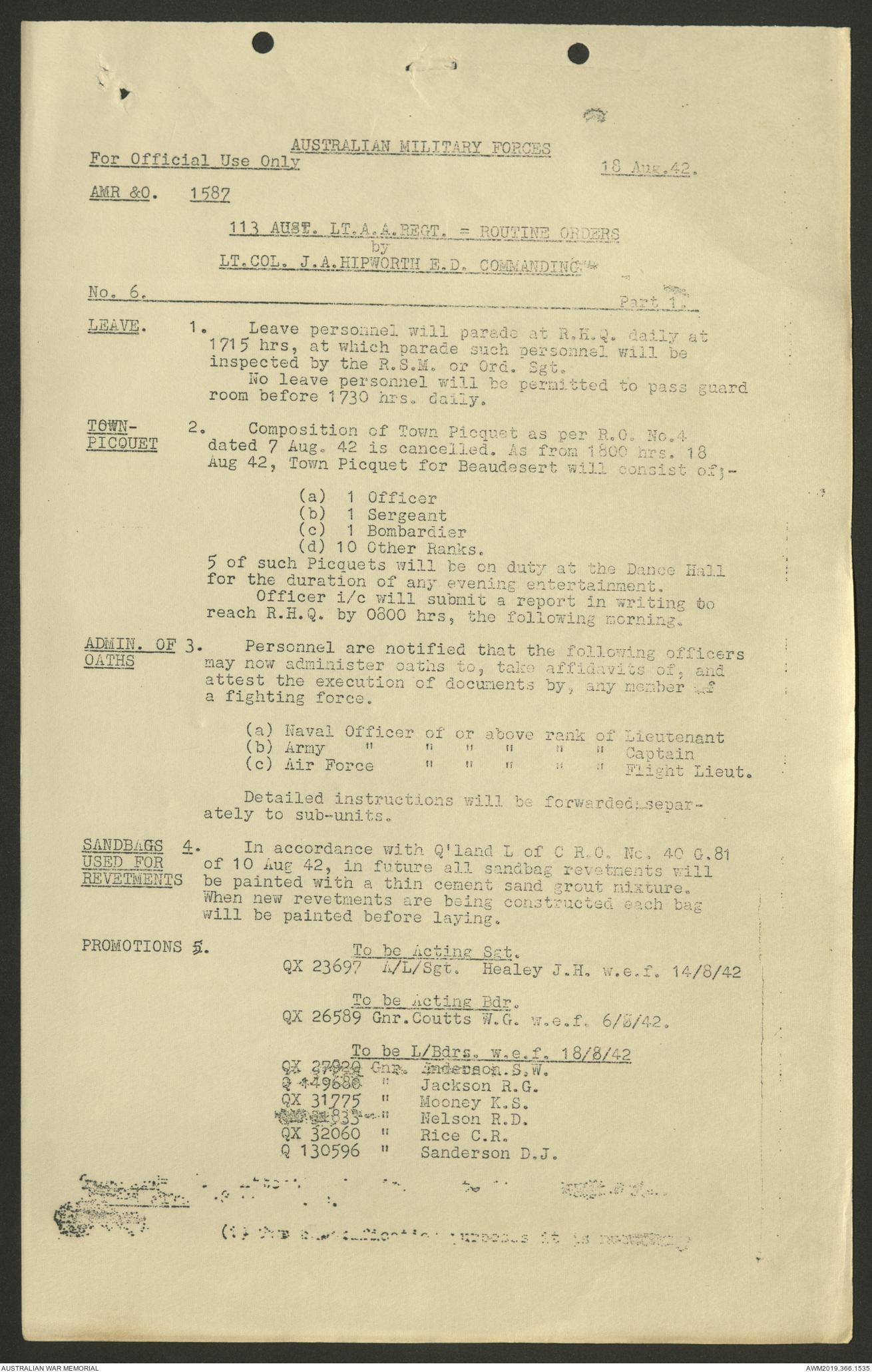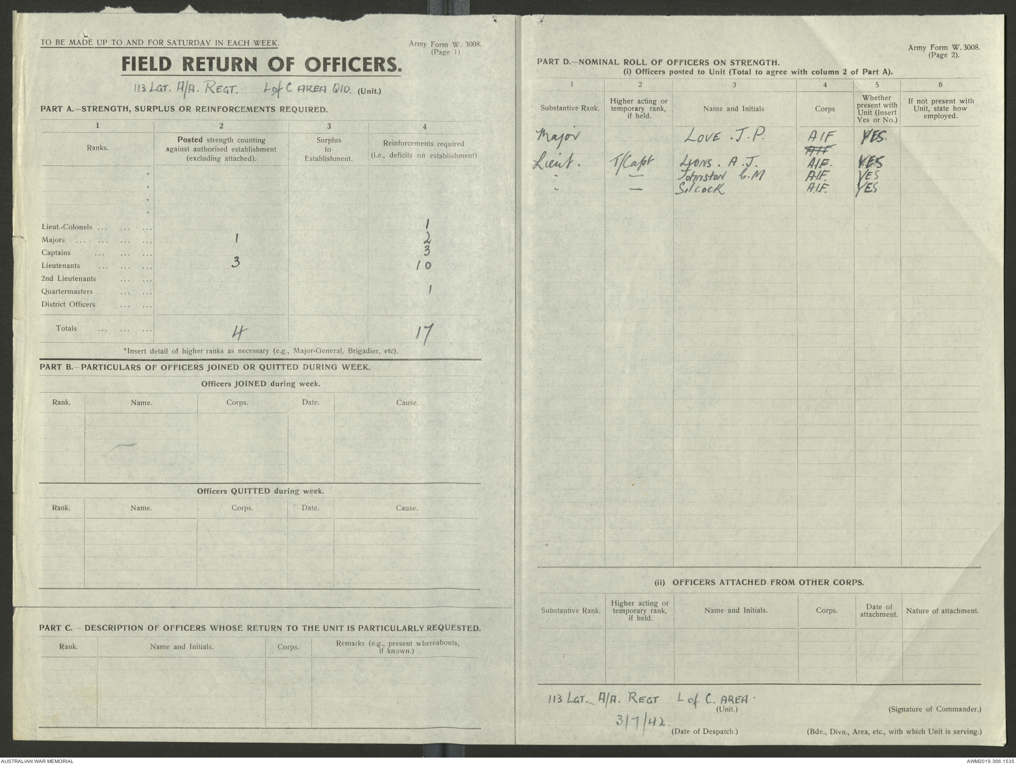 AWM52 4/11/9/1 - [Unit War Diaries, 1939-45 War] 113 Australian Light Anti-Aircraft Regiment, June - August 1942
