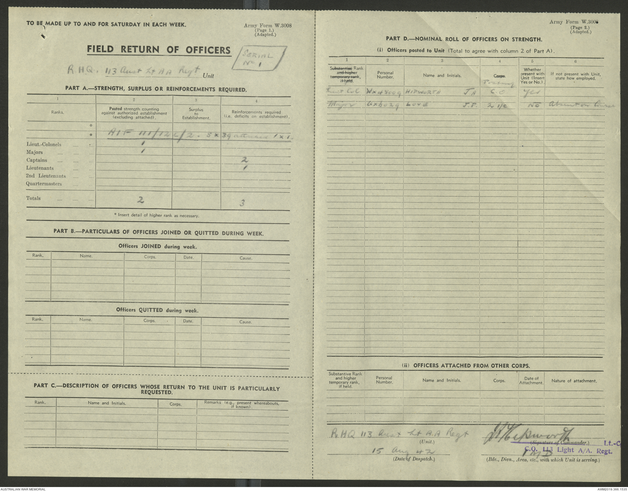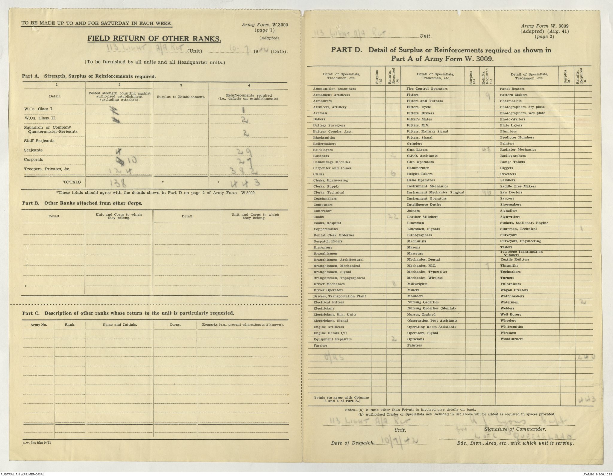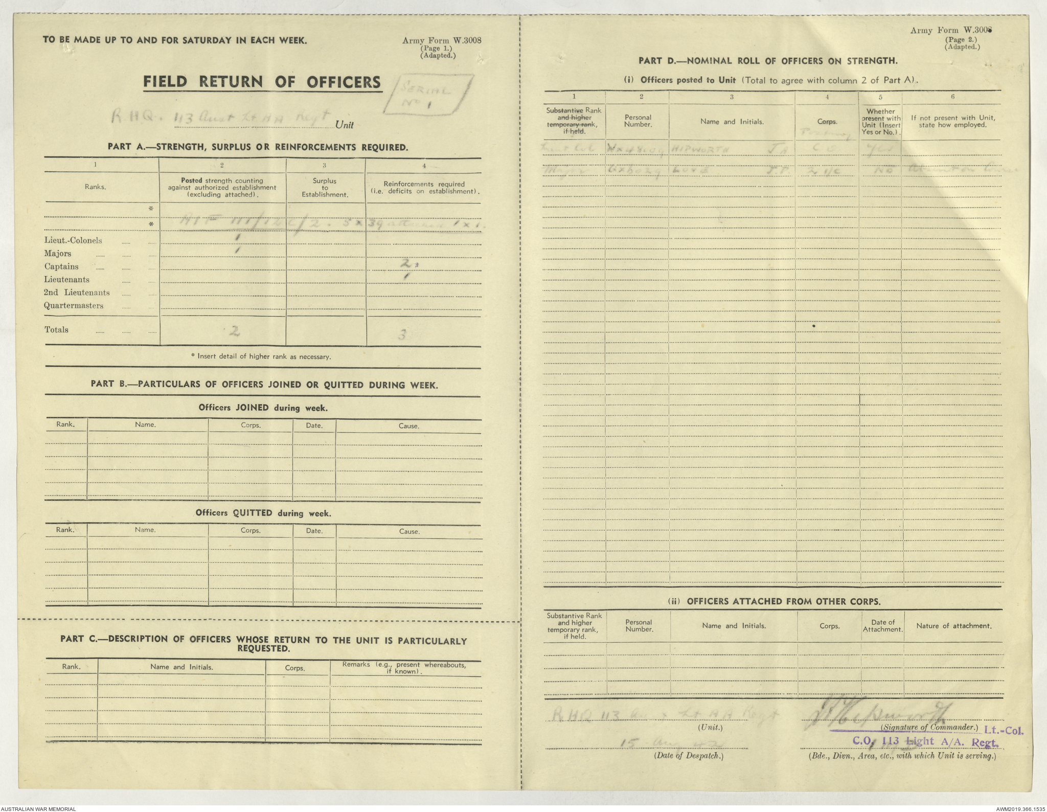 - AWM52 4/11/9 - 113 Australian Light Anti-Aircraft Regiment