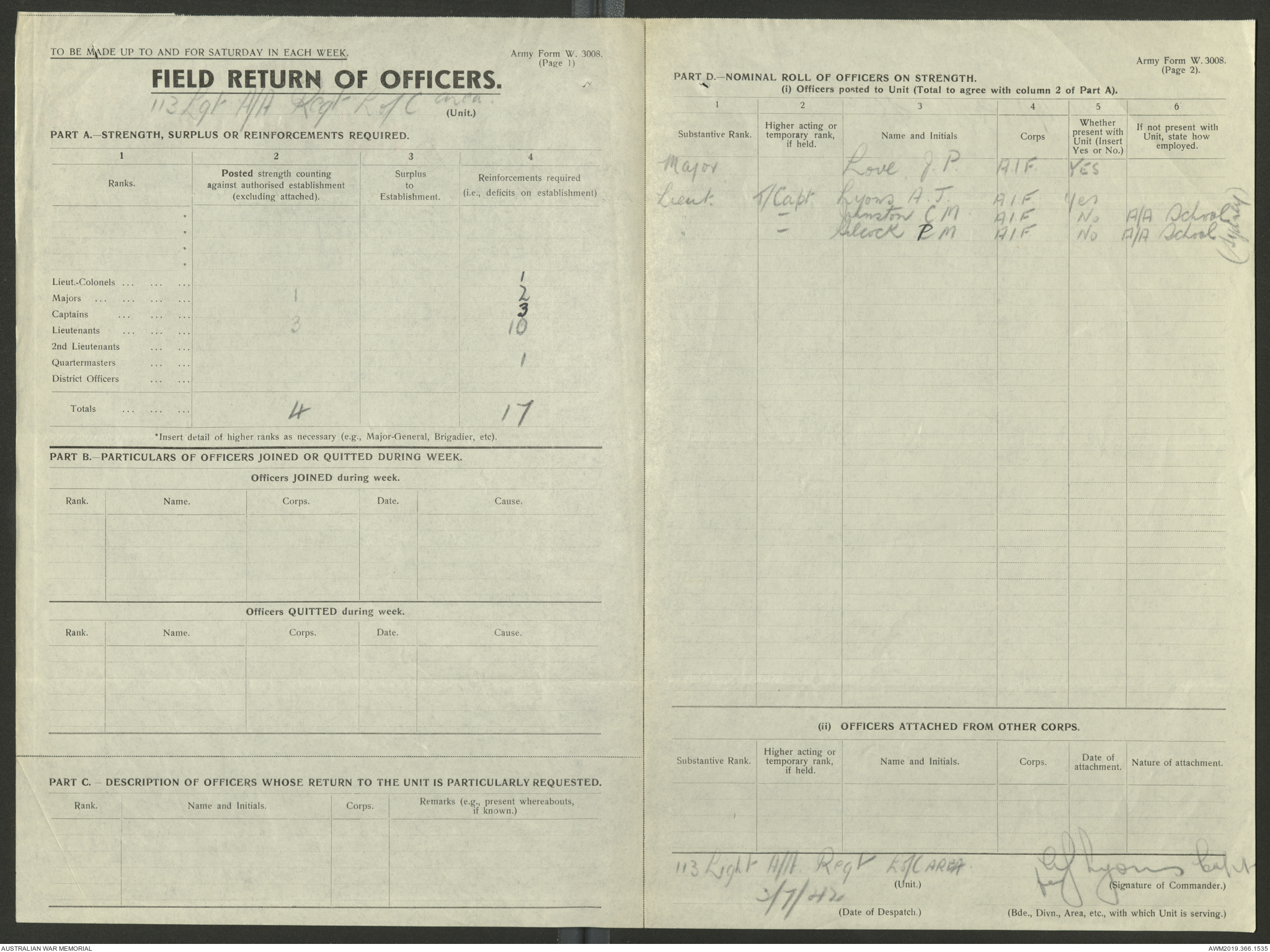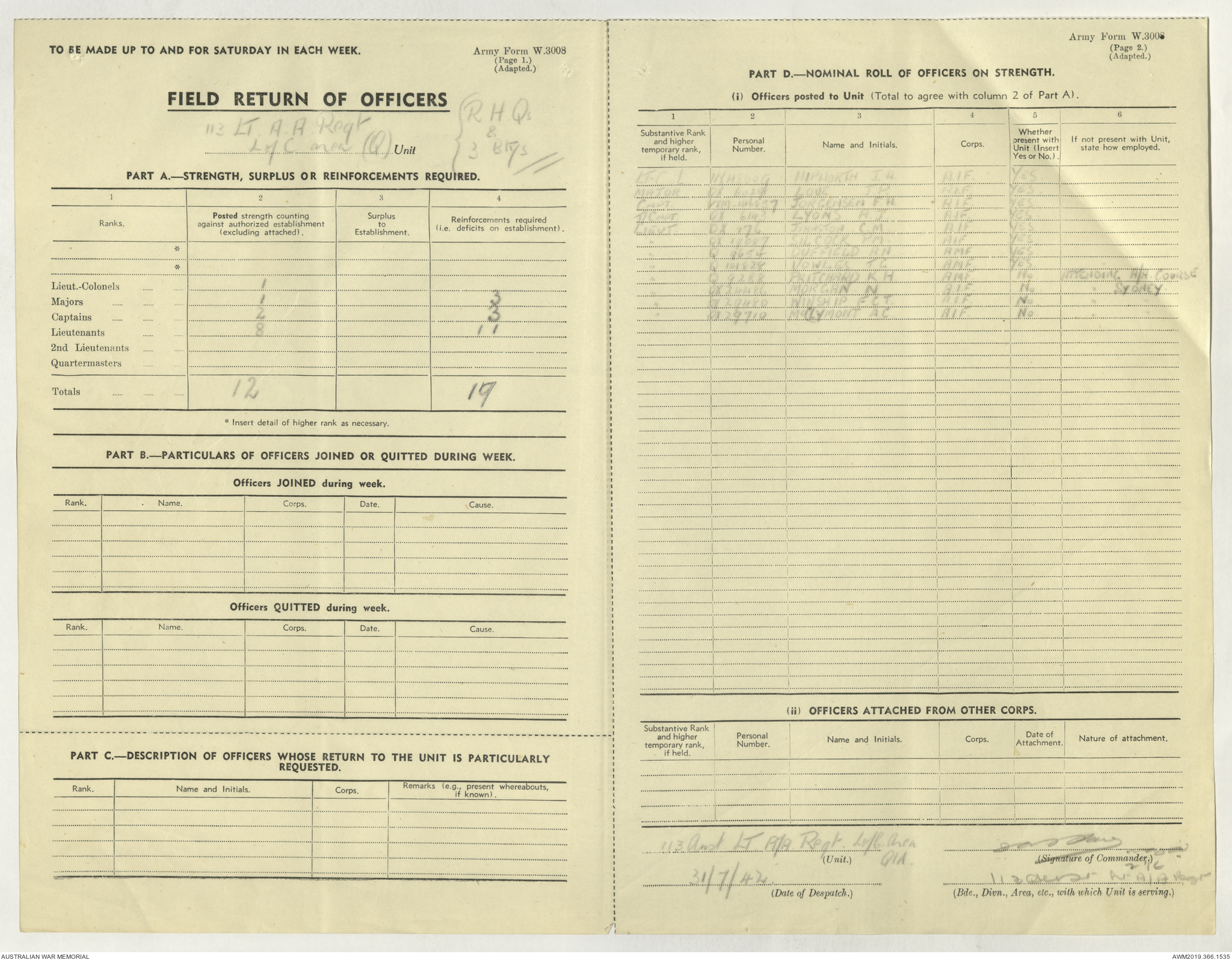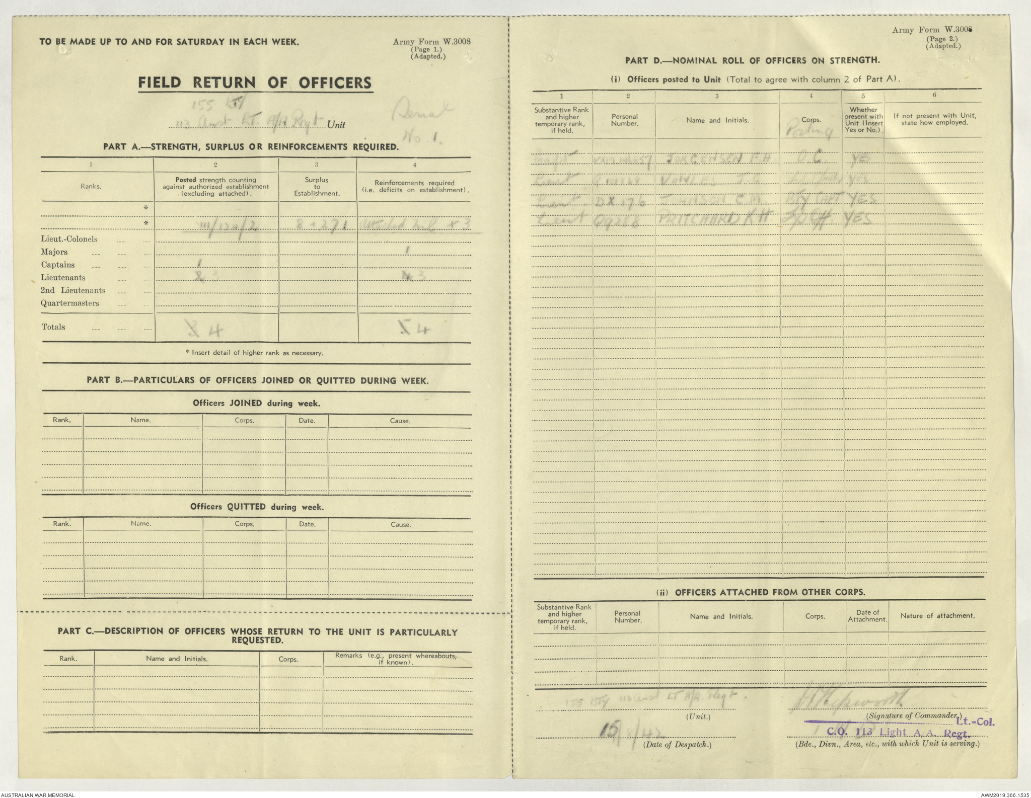 - AWM52 4/11/9 - 113 Australian Light Anti-Aircraft Regiment