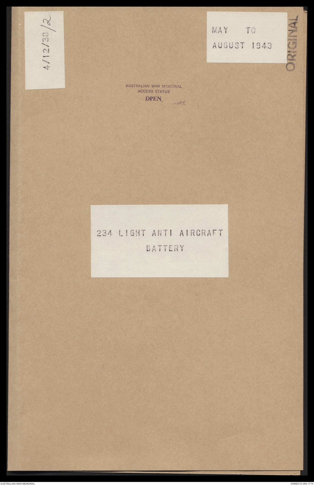 | Collection number | AWM52 4/12/38/2 |