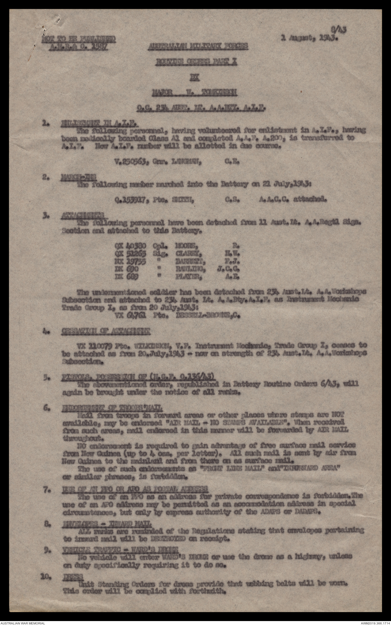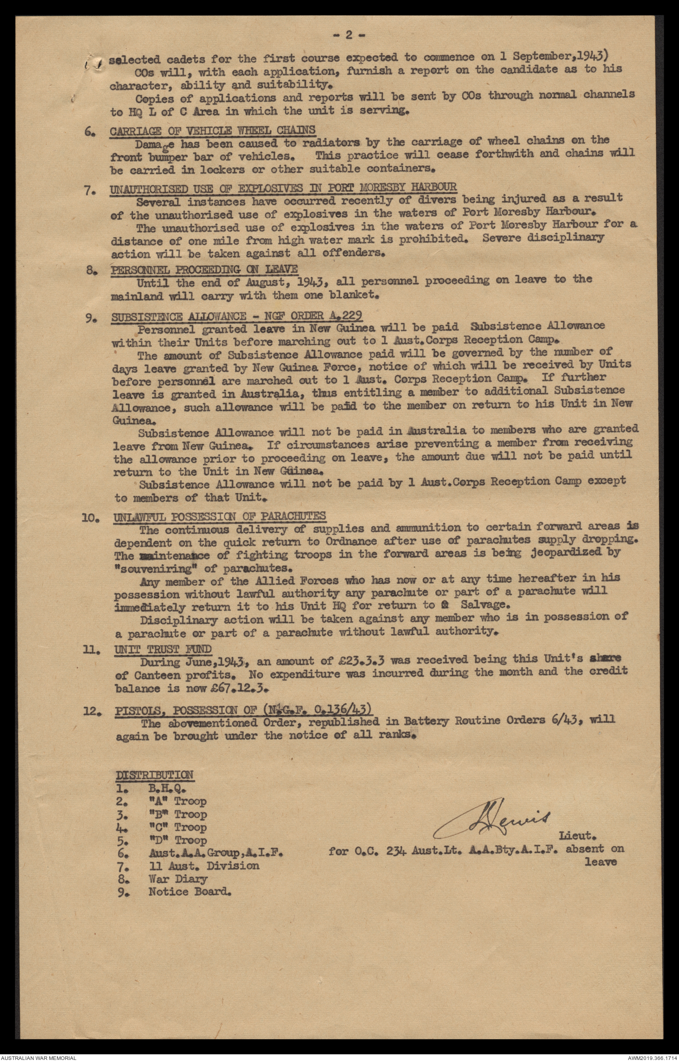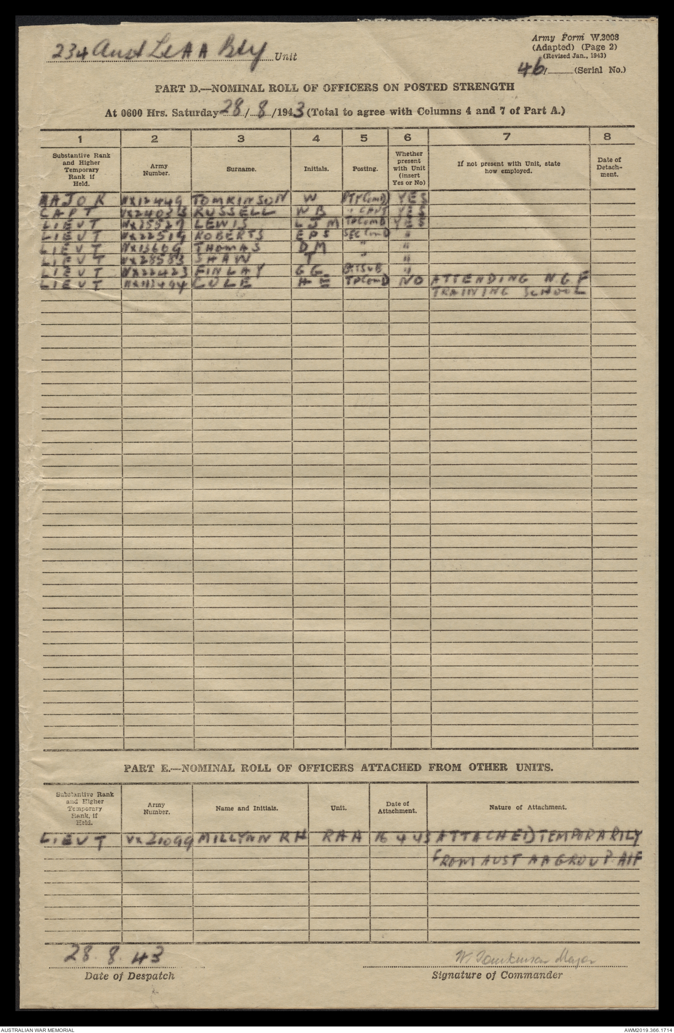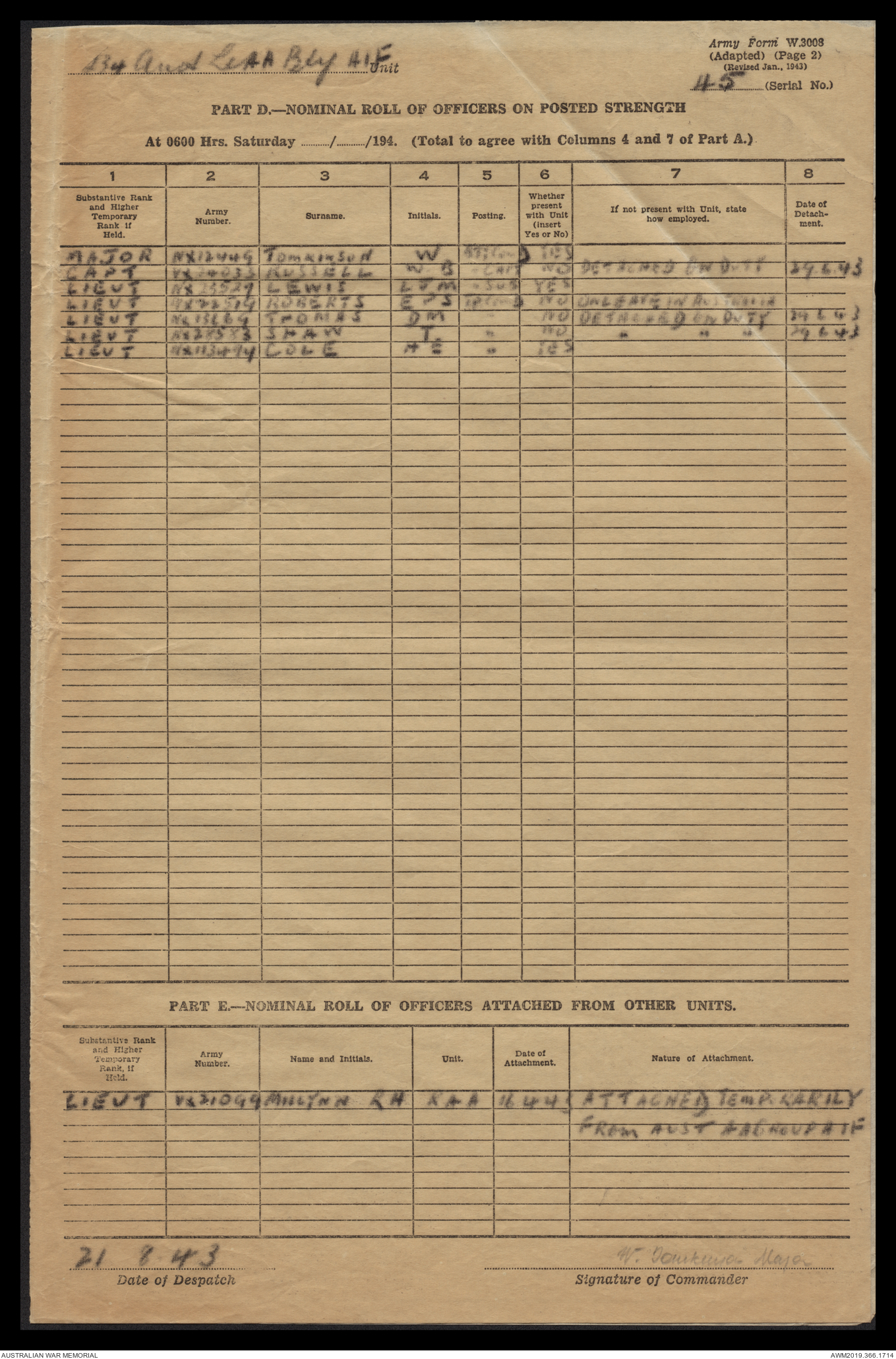 AWM52 4/12/38/2 - [Unit War Diaries, 1939-45 War] 234 Australian Light Anti-Aircraft Battery AIF, May - August 1943