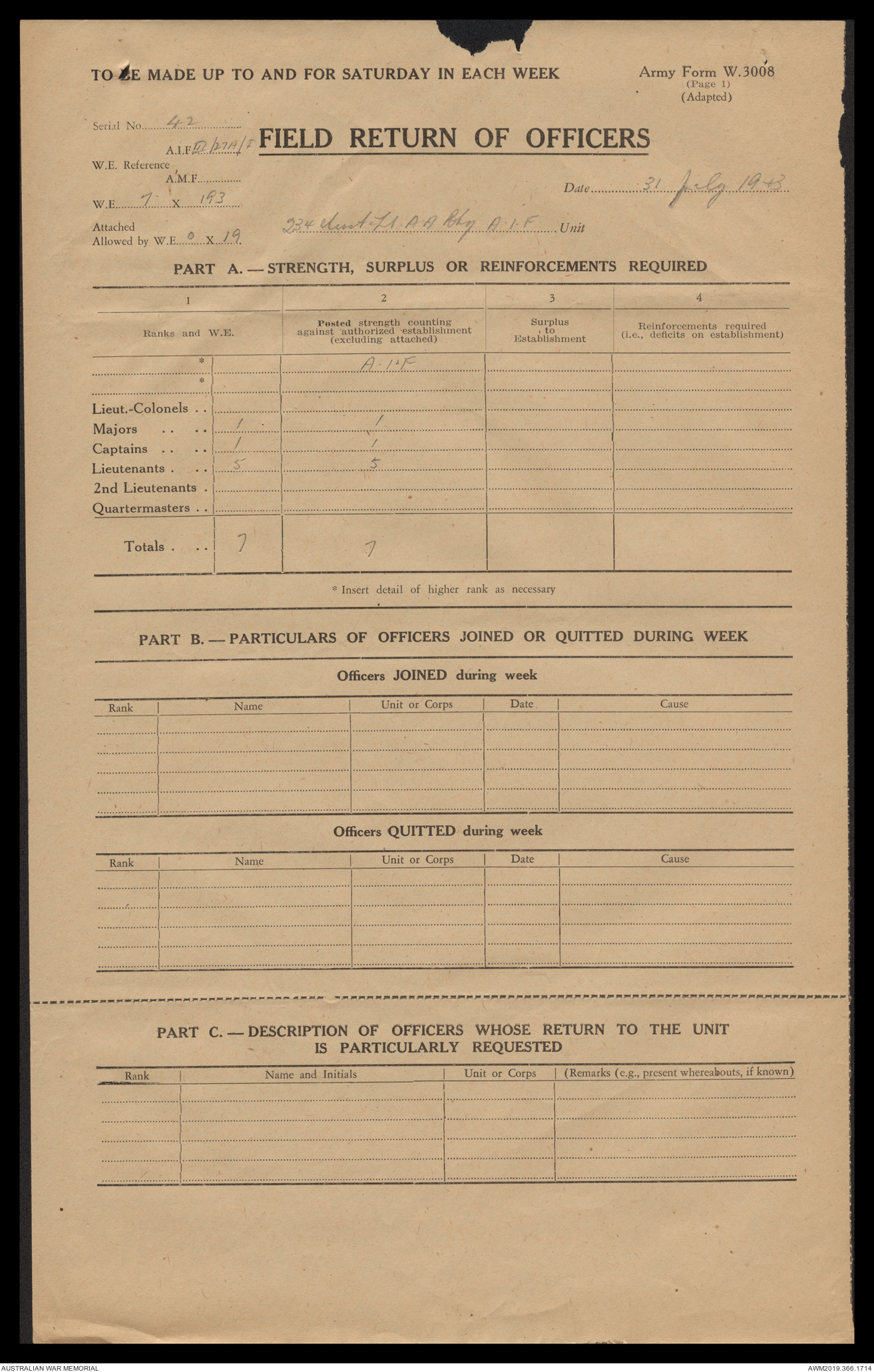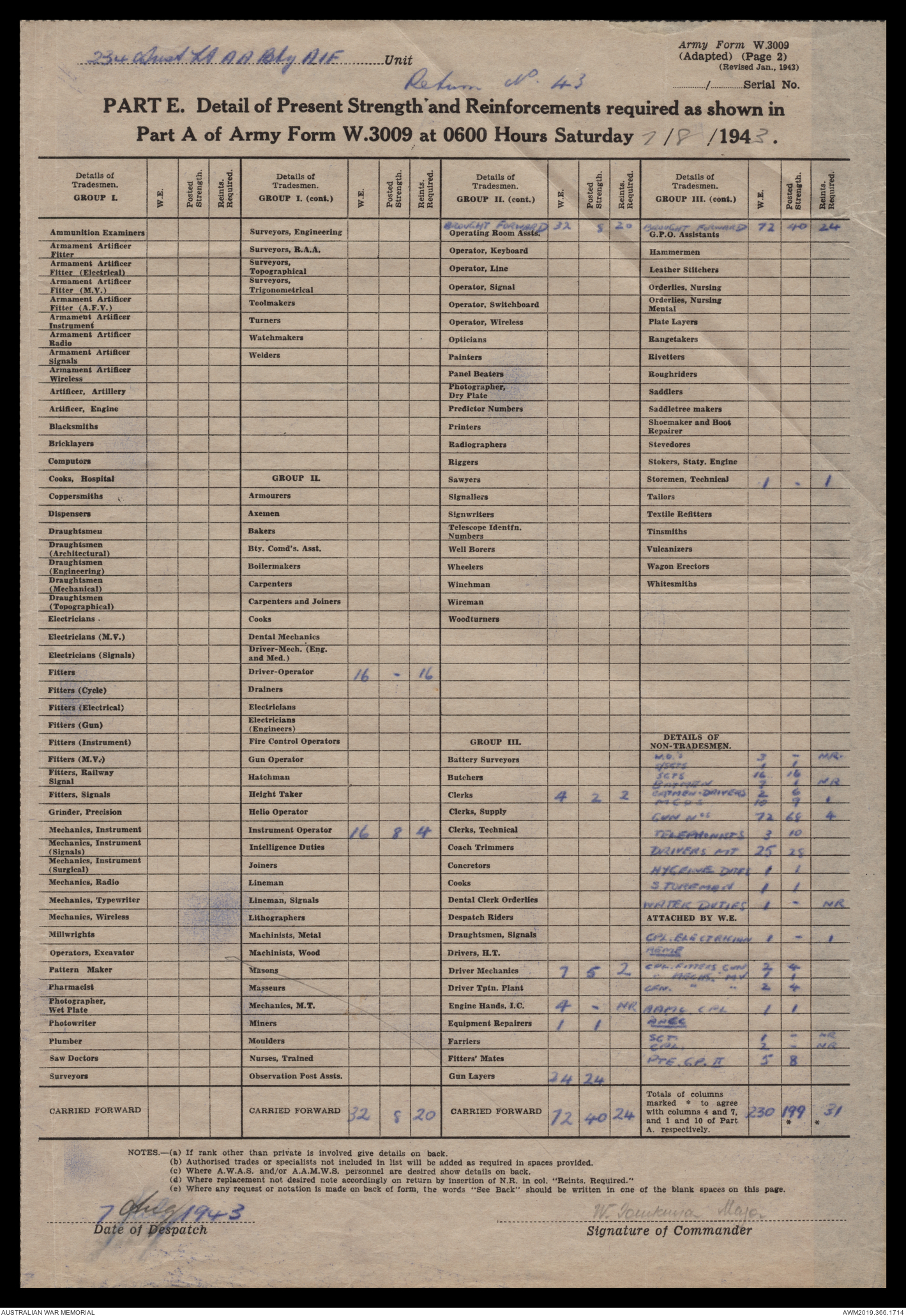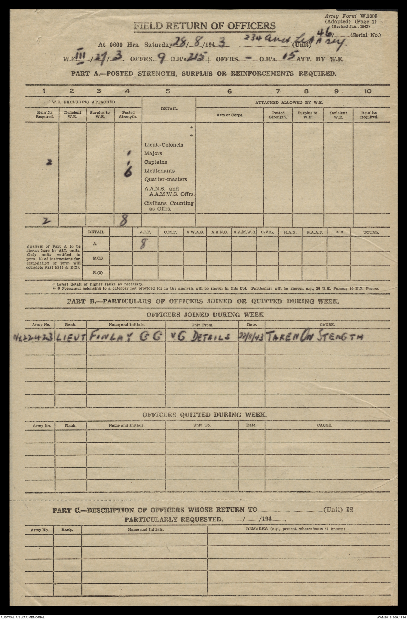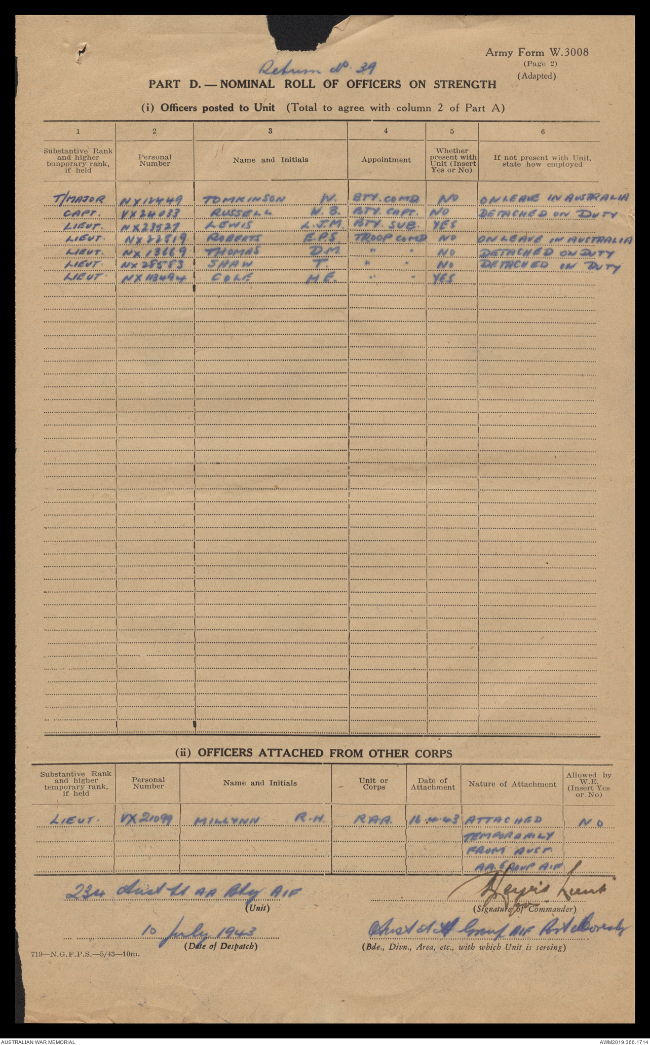 AWM52 4/12/38/2 - [Unit War Diaries, 1939-45 War] 234 Australian Light Anti-Aircraft Battery AIF, May - August 1943