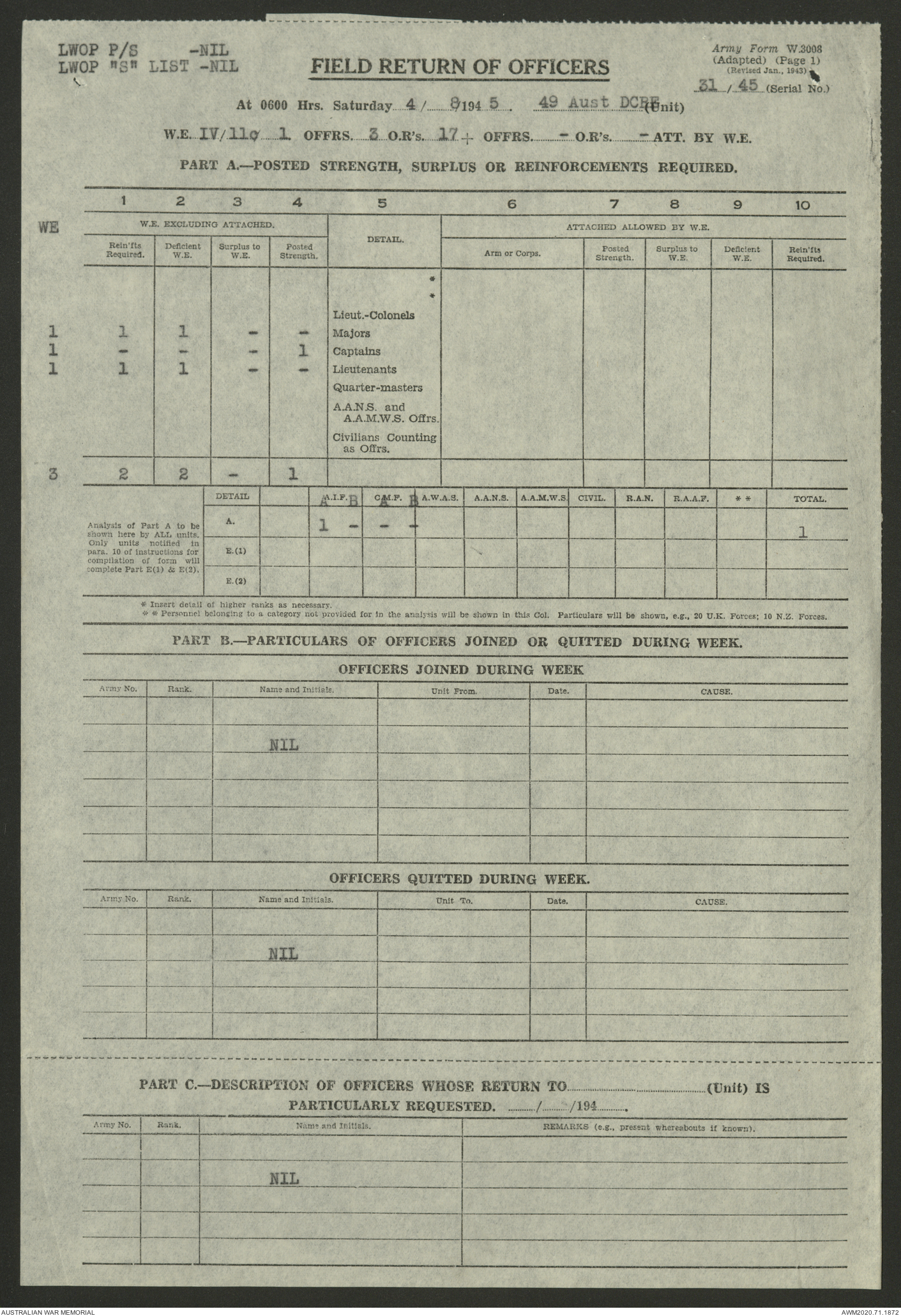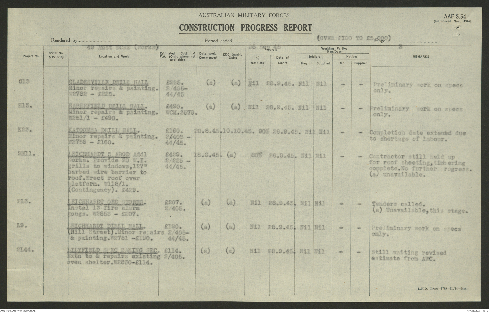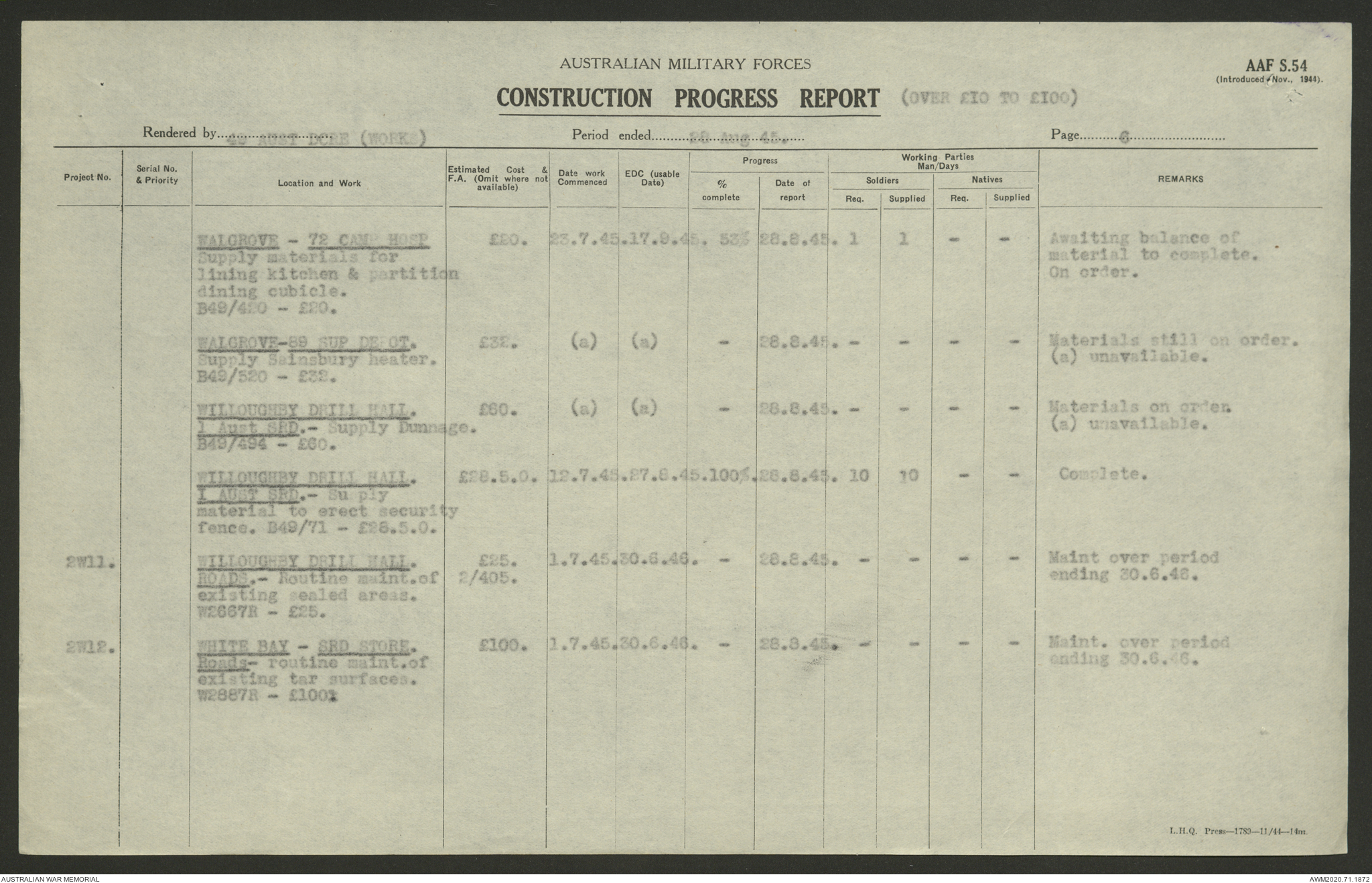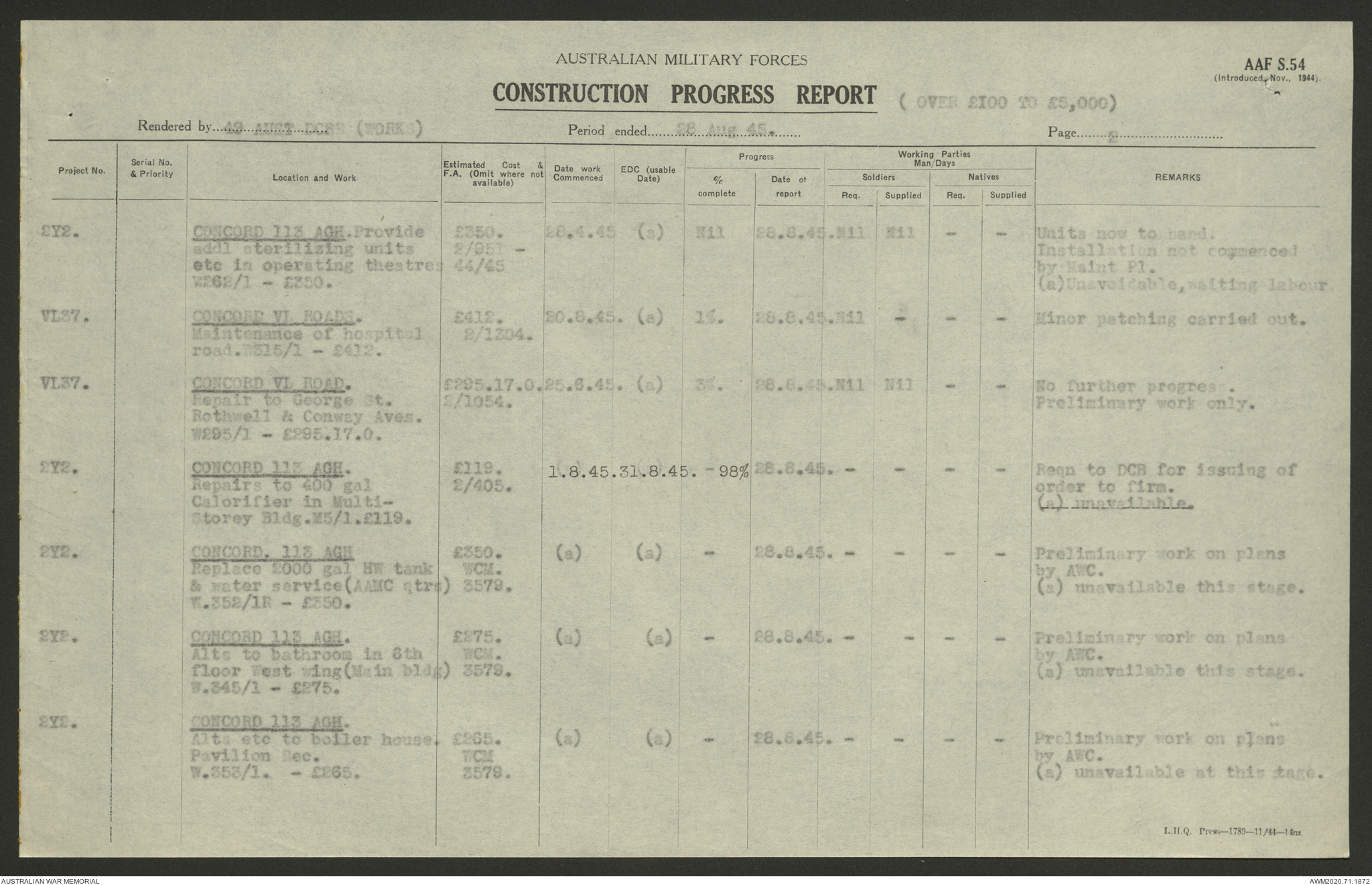 AWM52 5/8/10/4 - [Unit War Diaries, 1939-1945 War] 49 Australian DCRE [Deputy Commander Royal Engineers] Works, August - October 1945