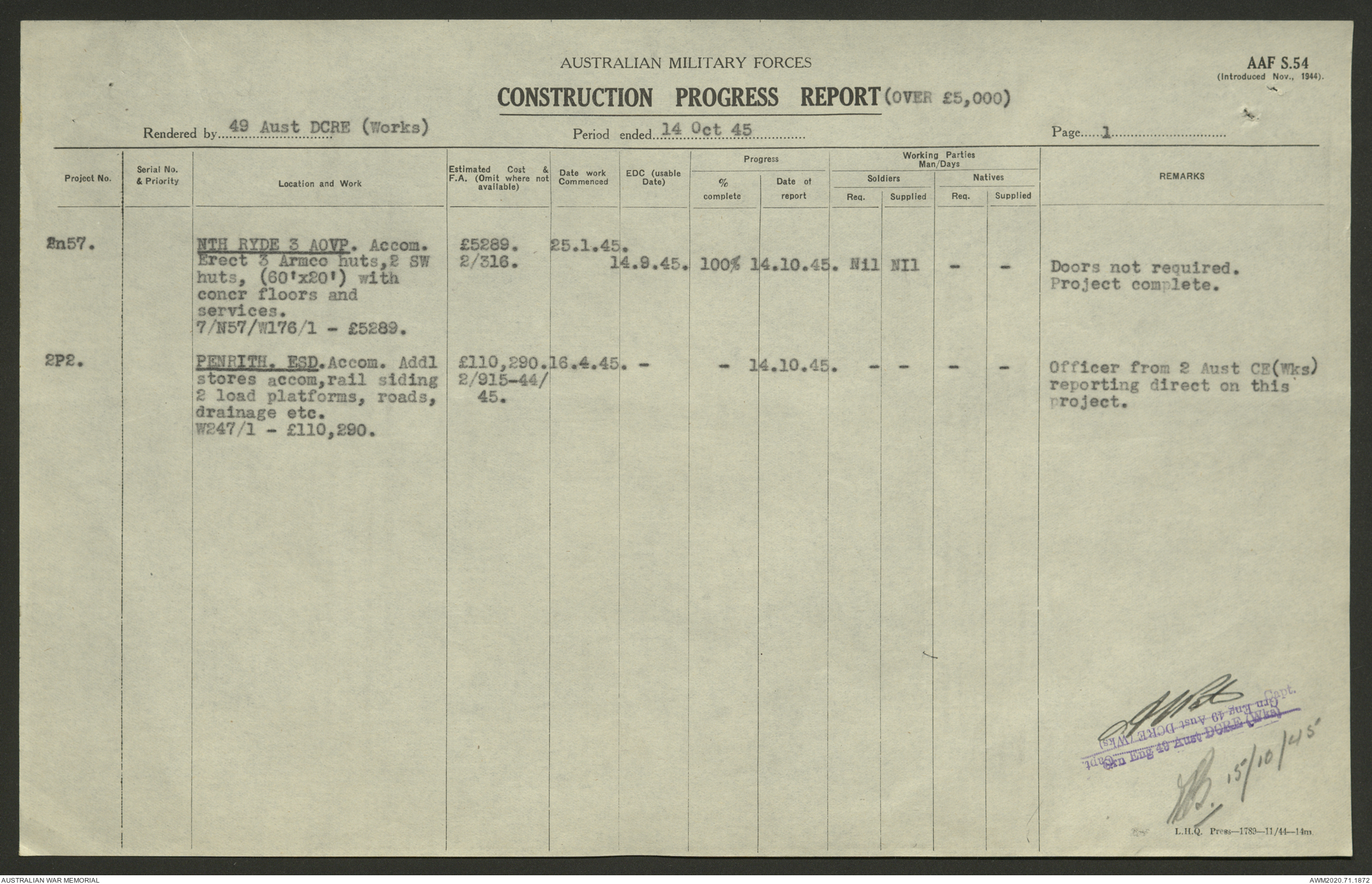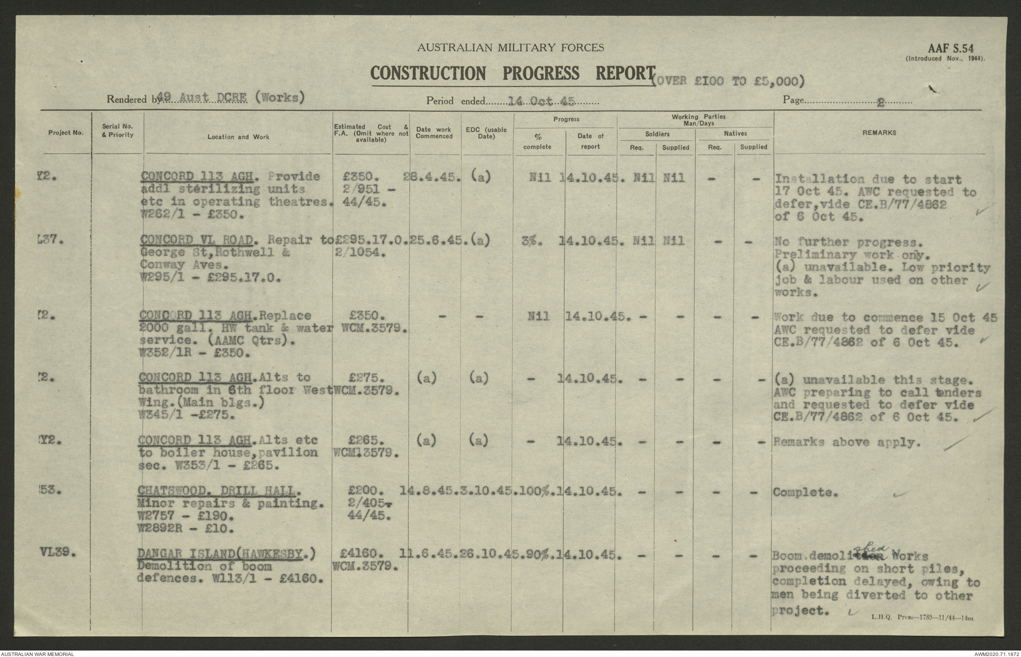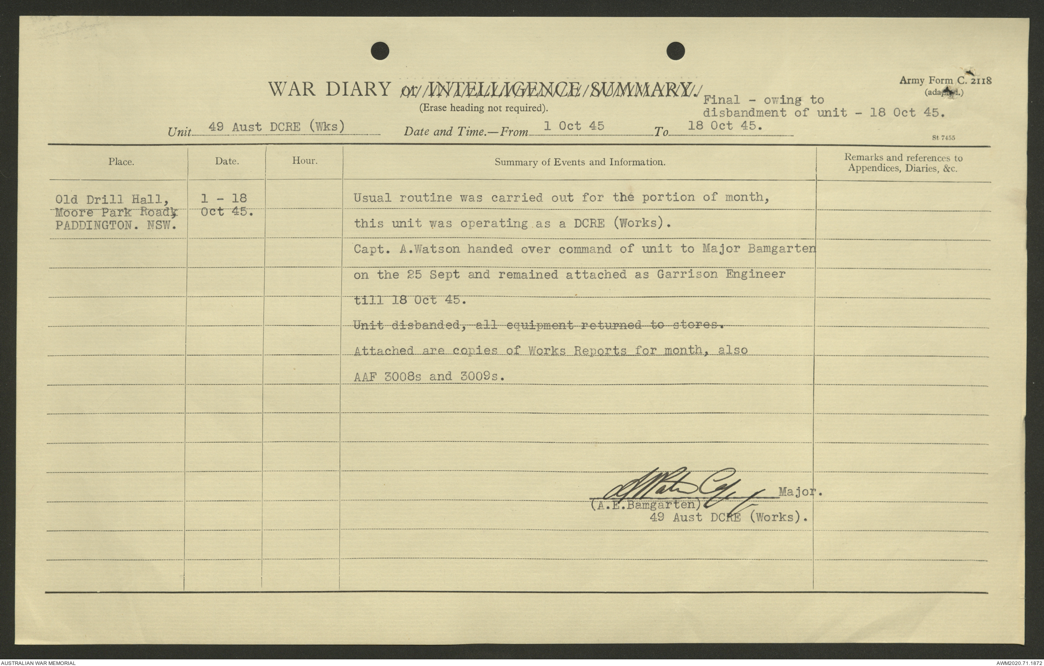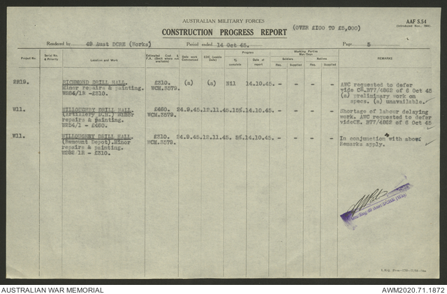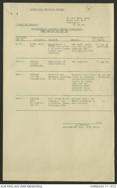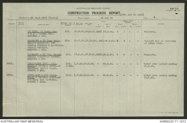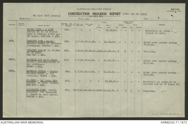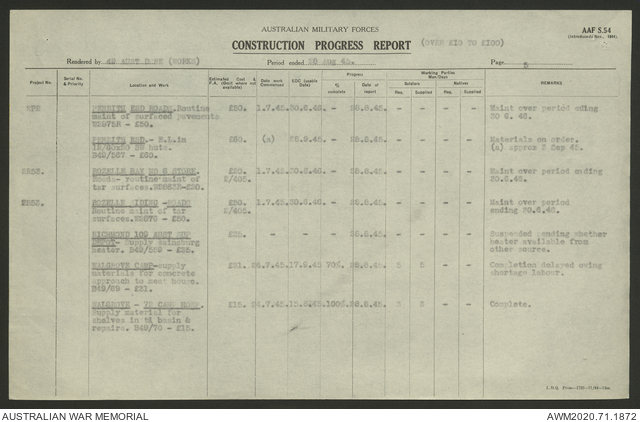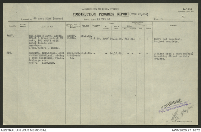 - AWM52 5/8/10 - 49 Australian Deputy Commander Royal Engineers Works