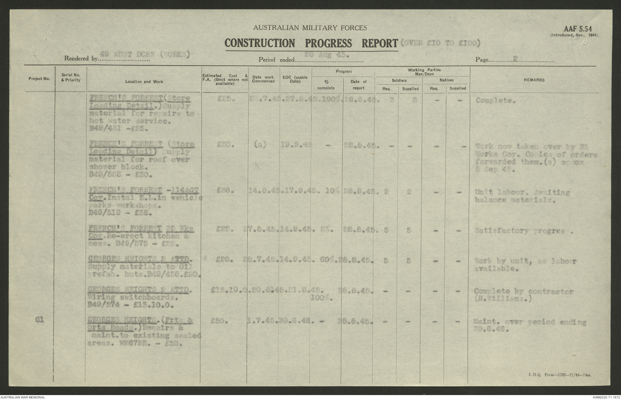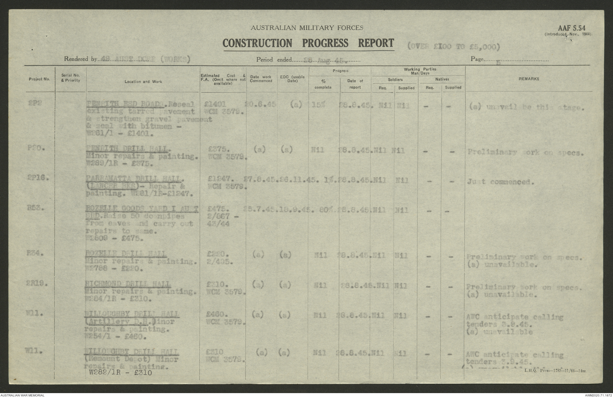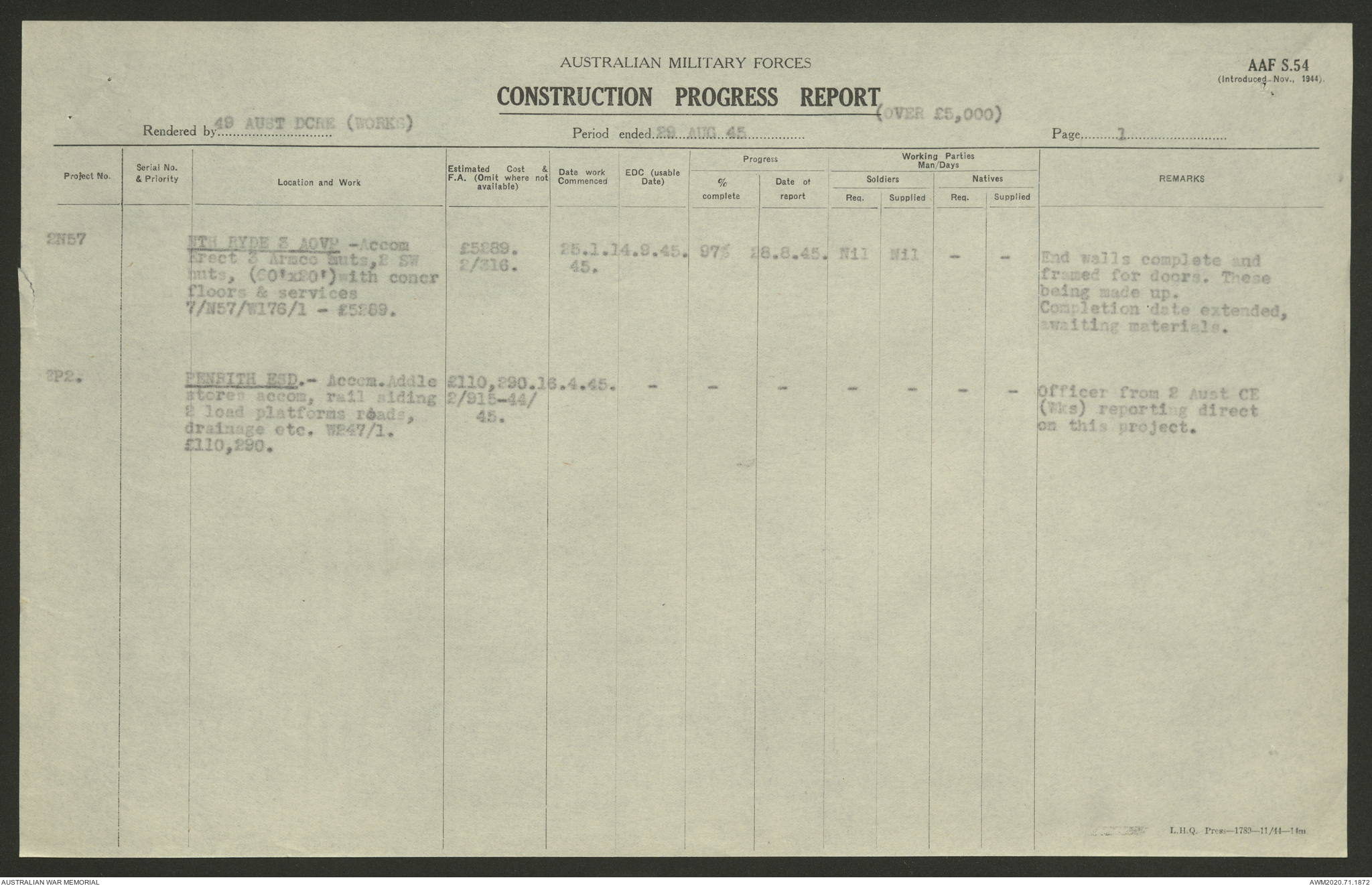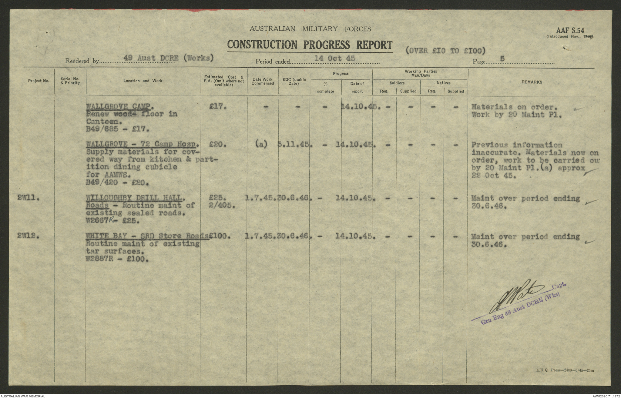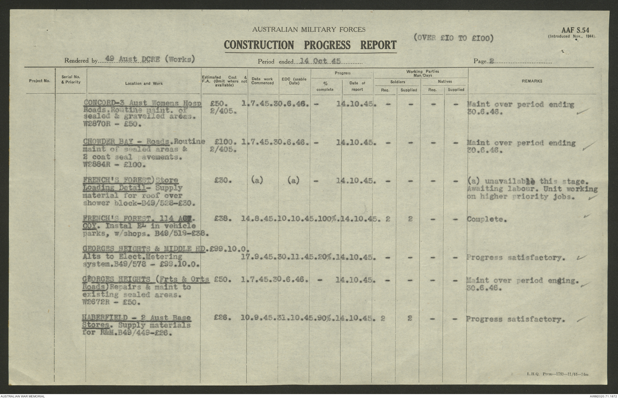 - AWM52 5/8/10 - 49 Australian Deputy Commander Royal Engineers Works