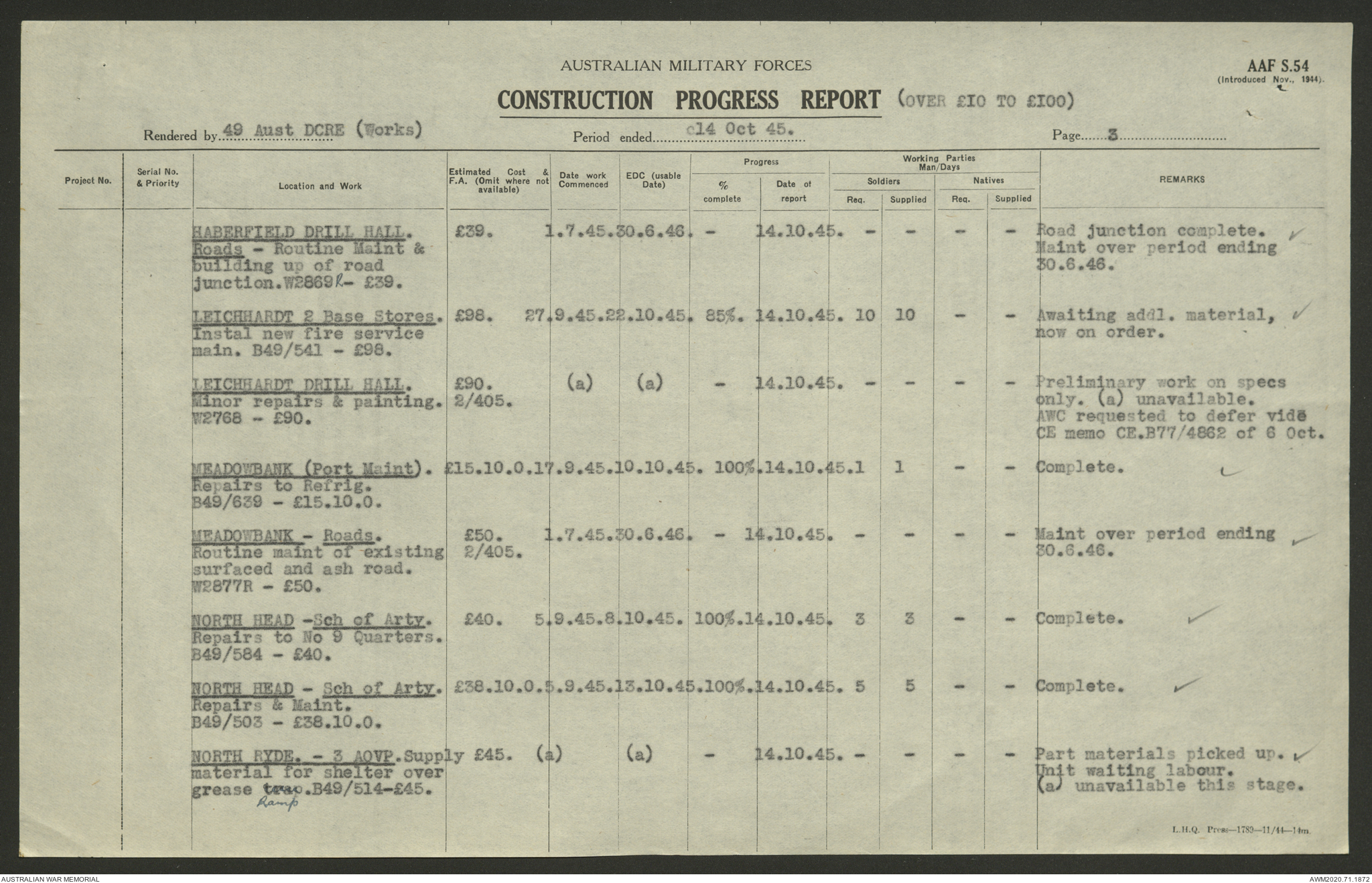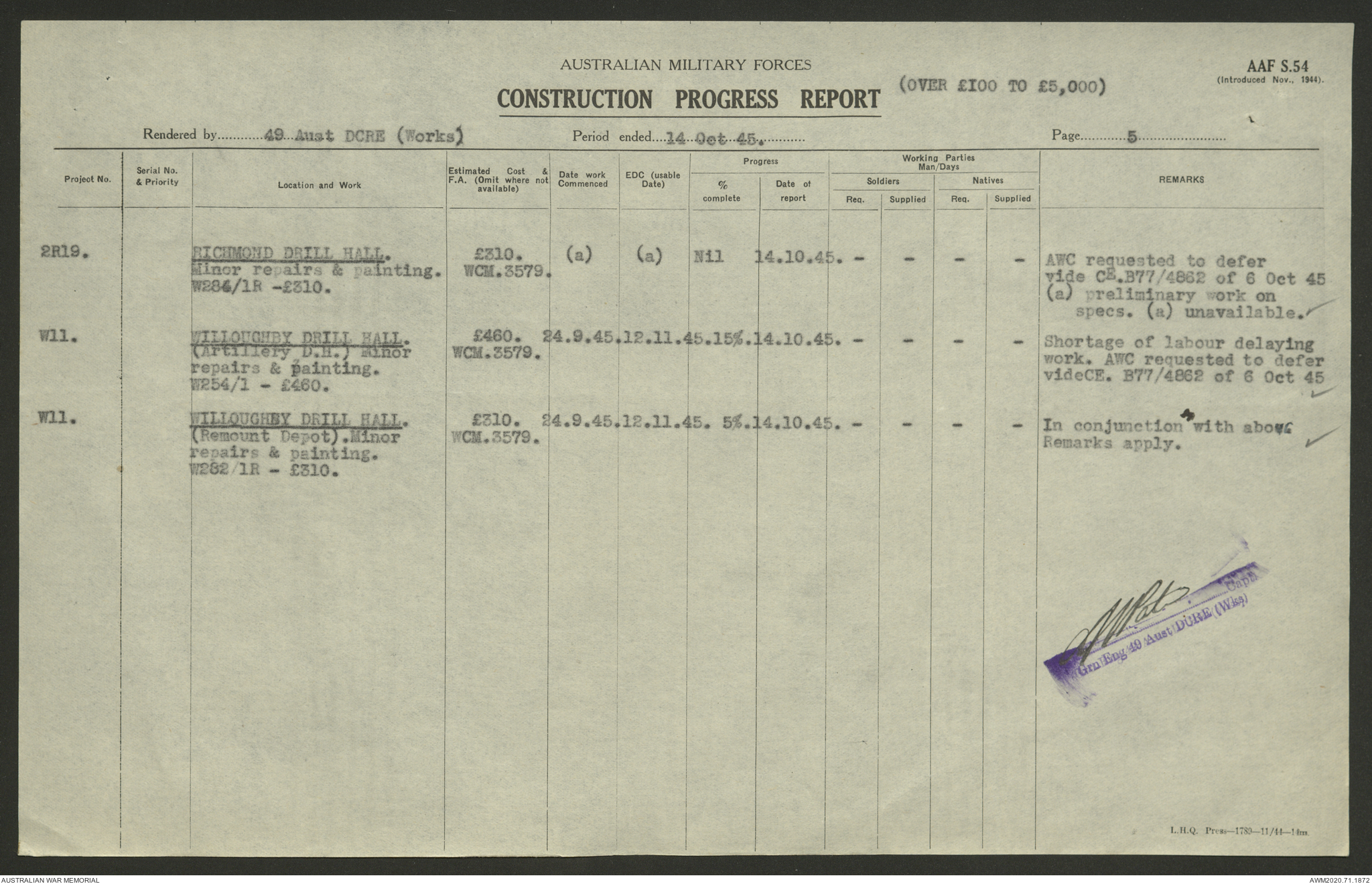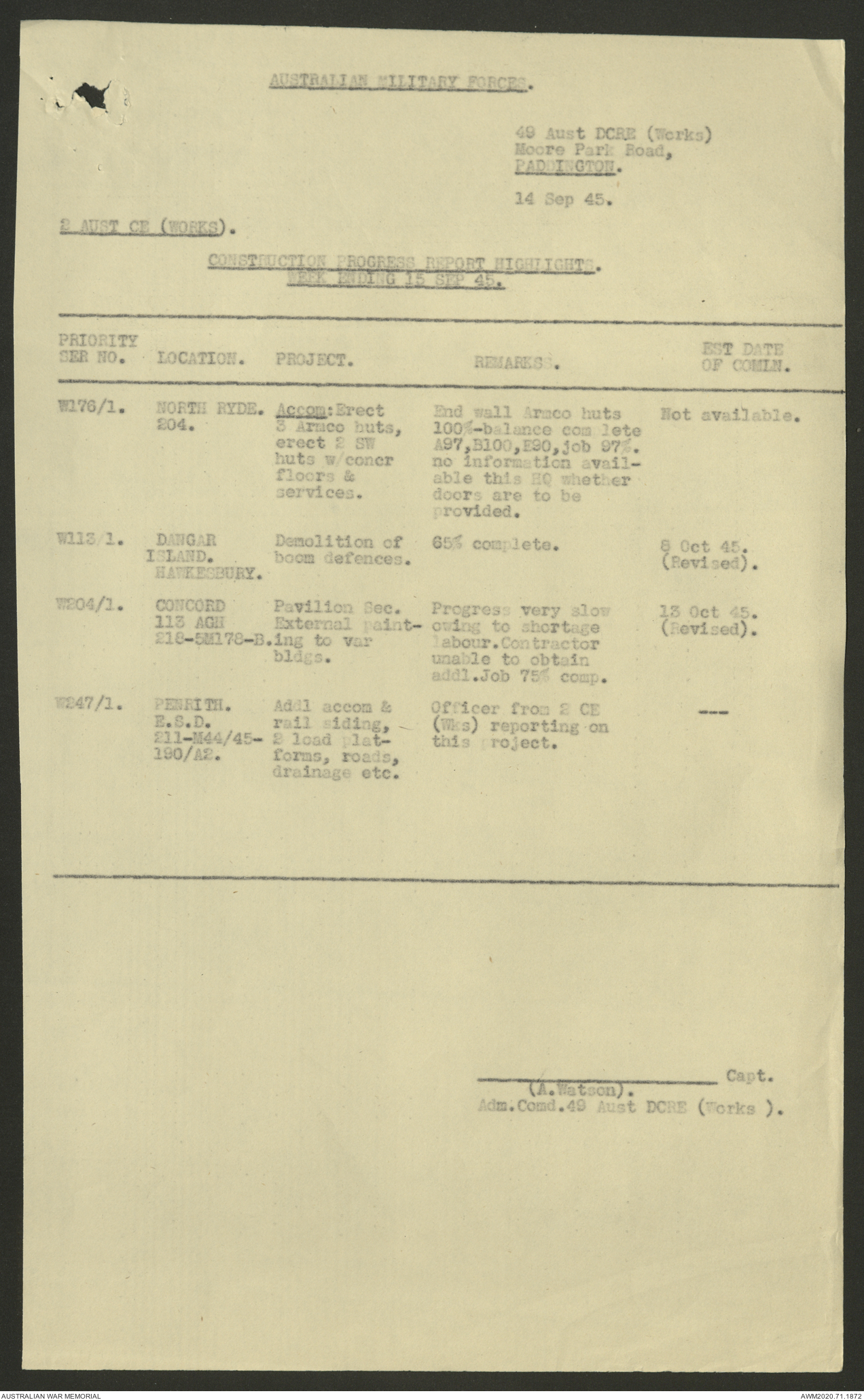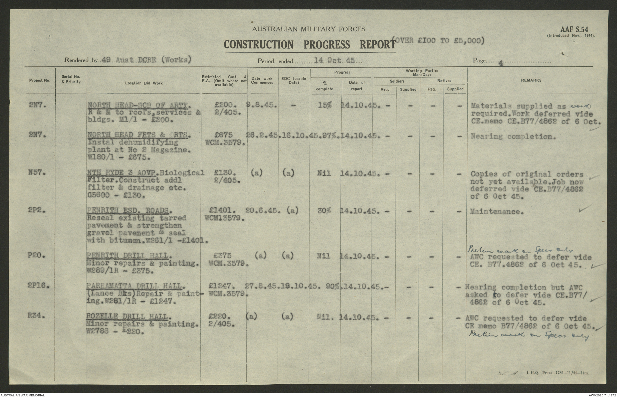- AWM52 5/8/10 - 49 Australian Deputy Commander Royal Engineers Works