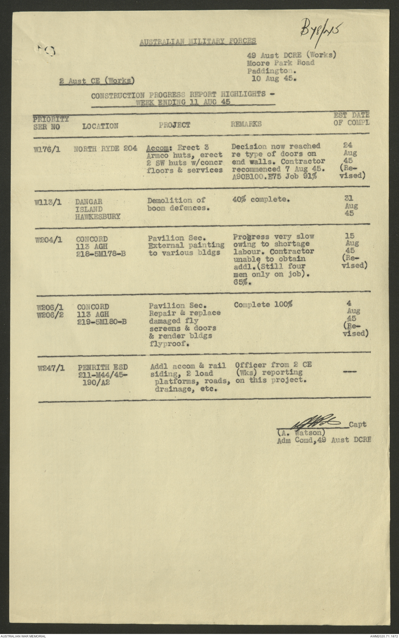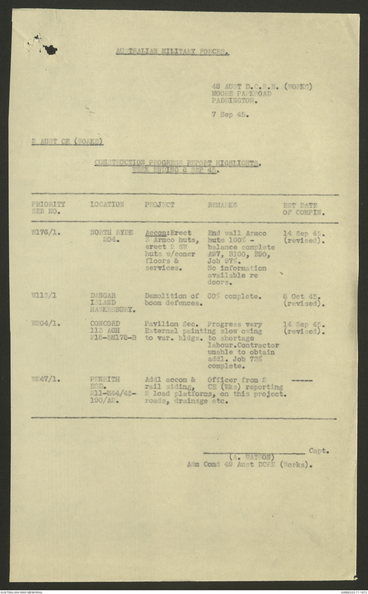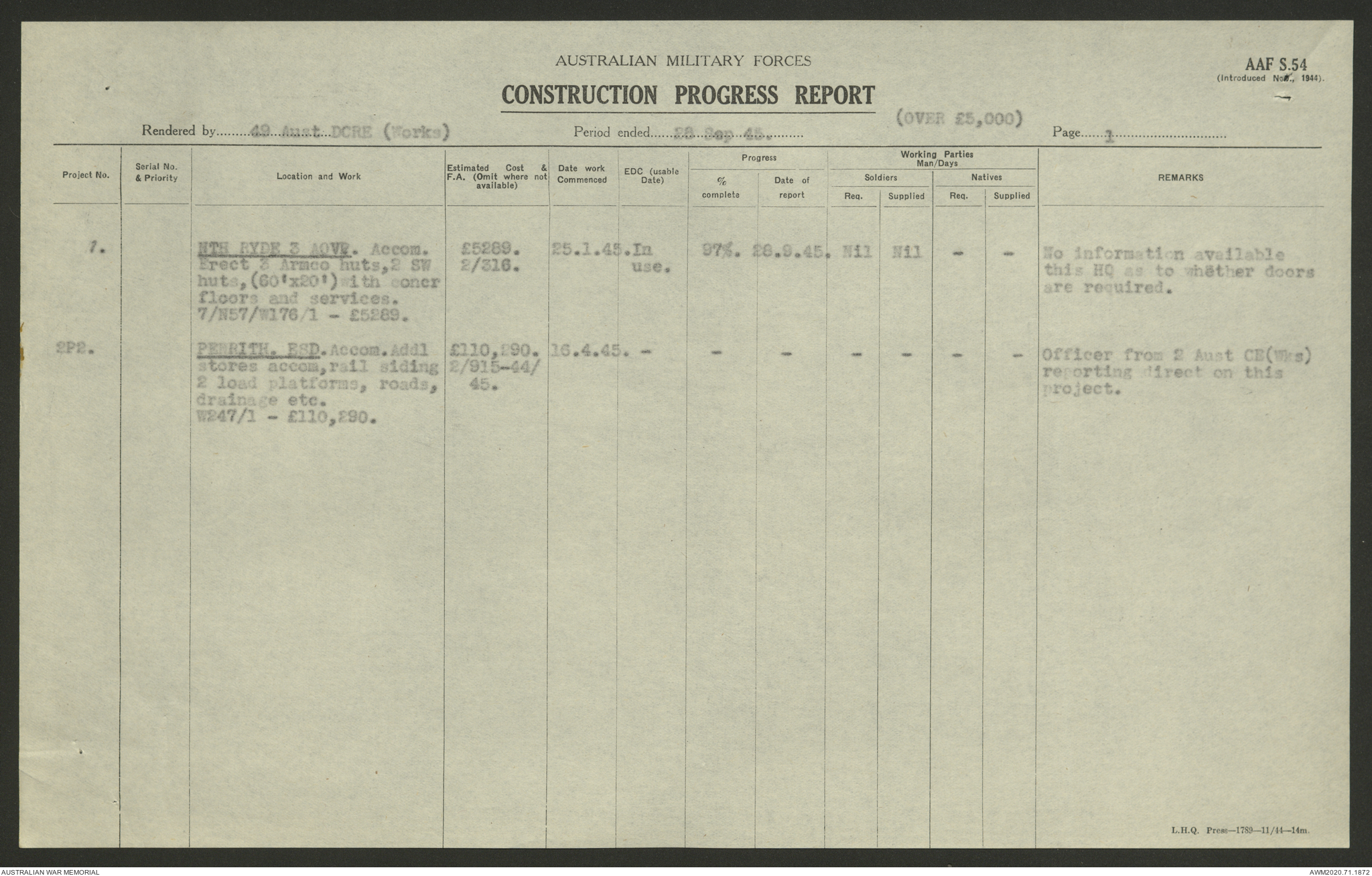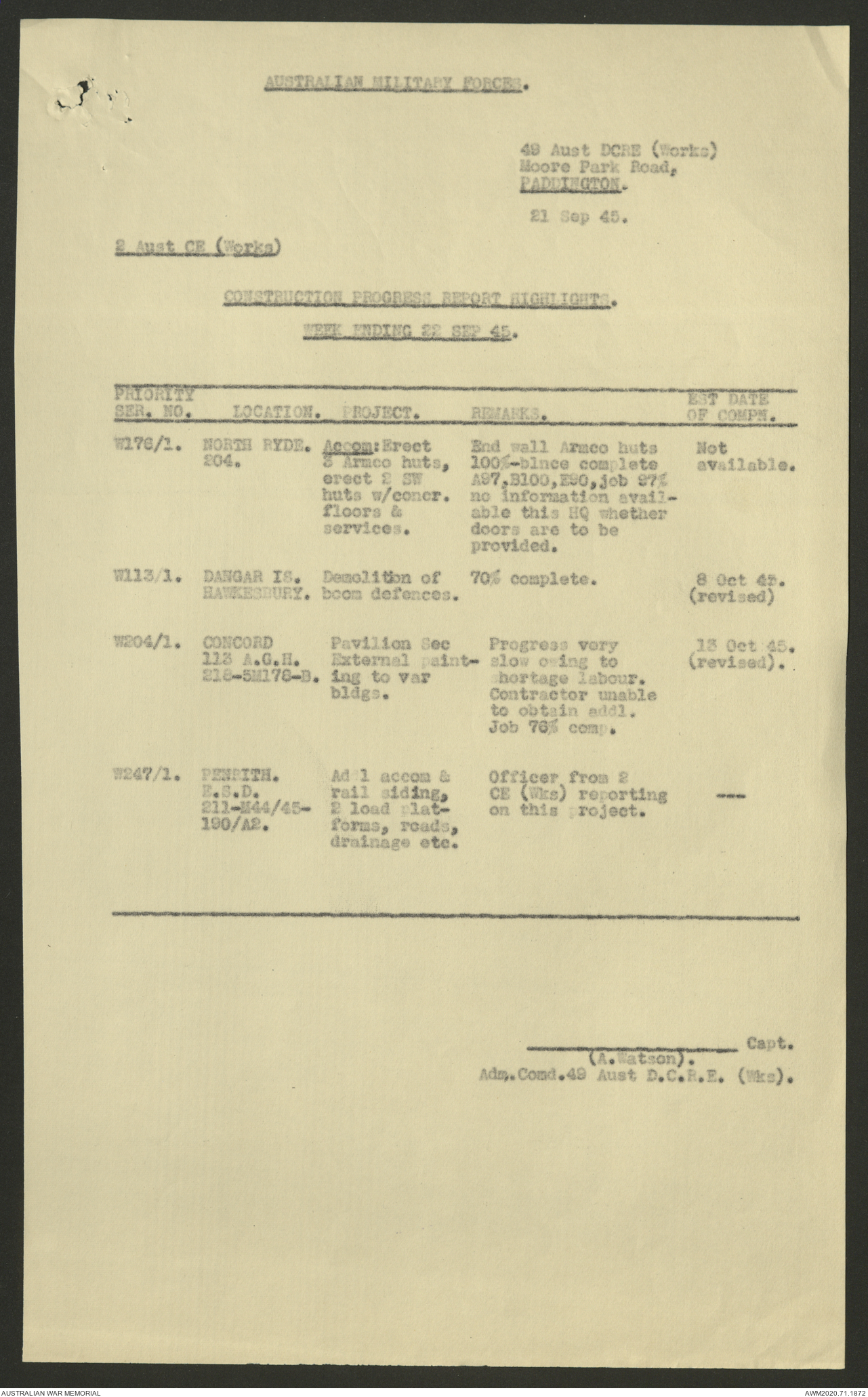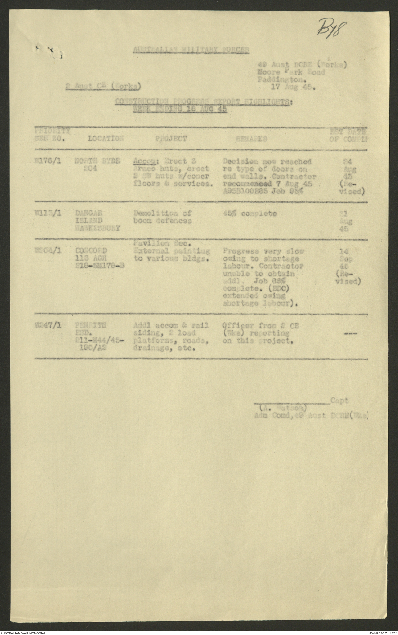 - AWM52 5/8/10 - 49 Australian Deputy Commander Royal Engineers Works