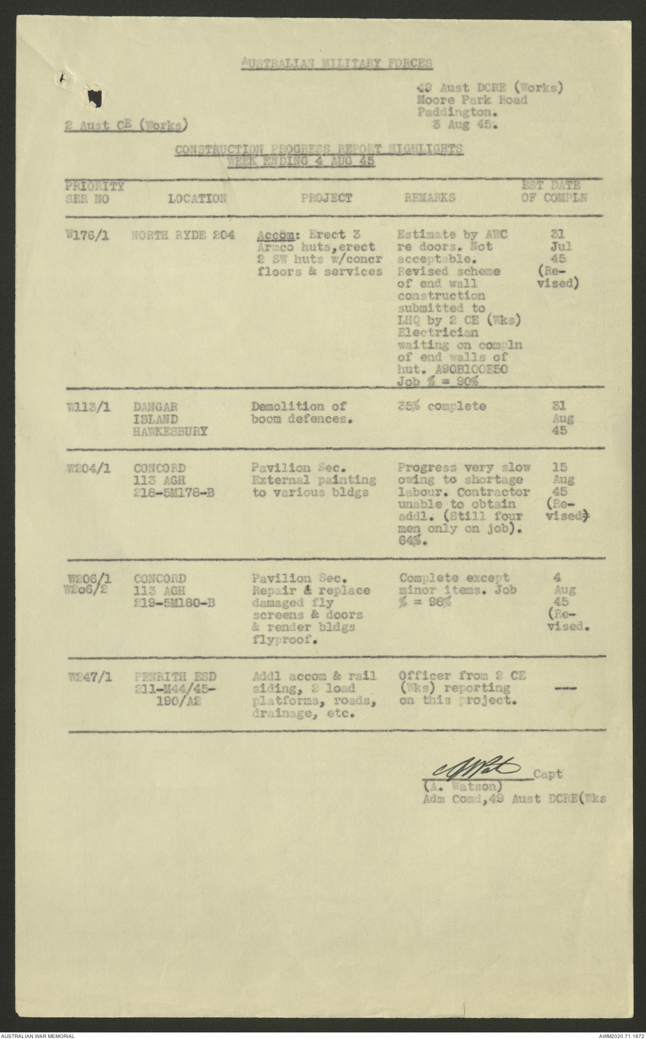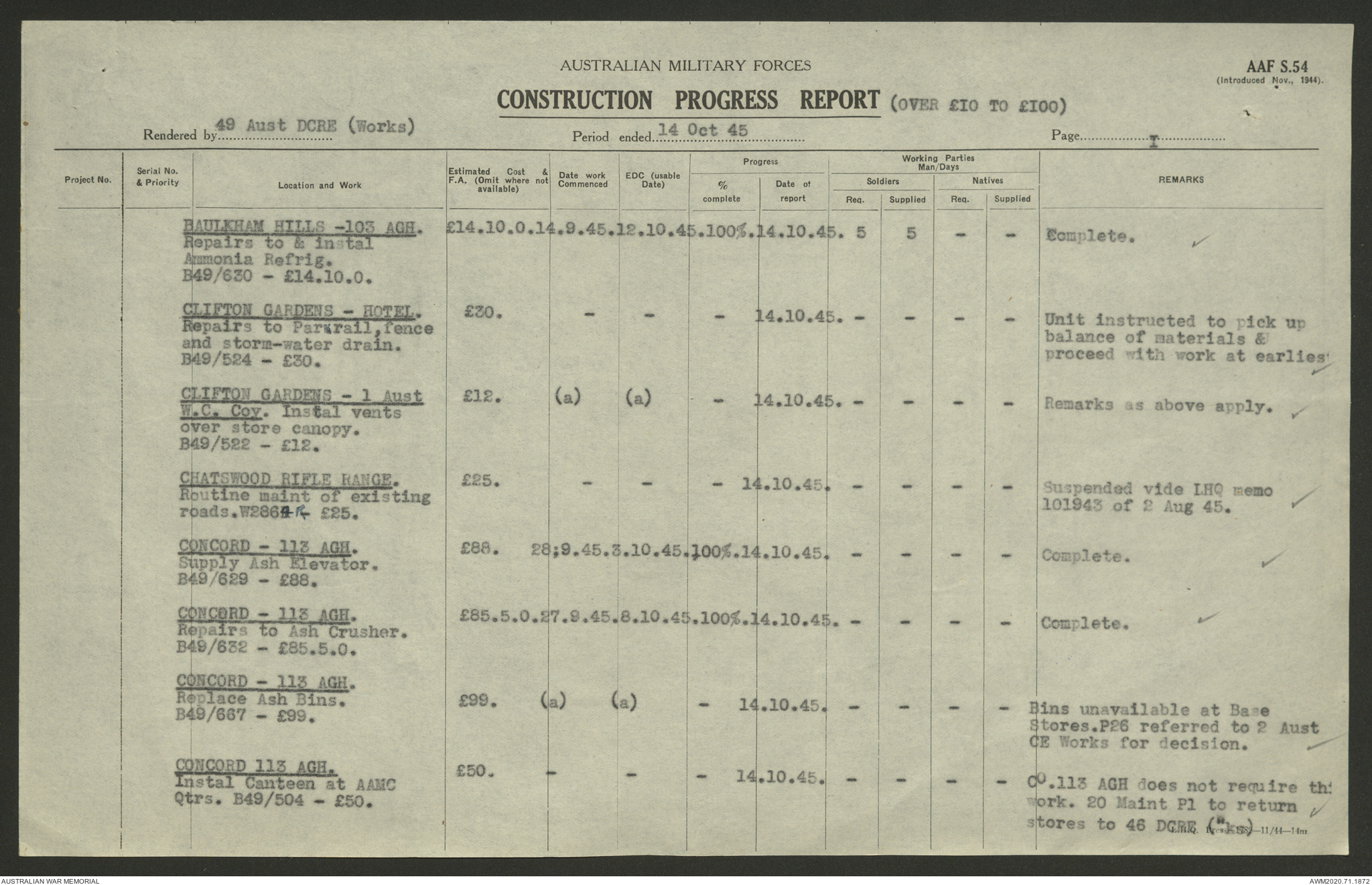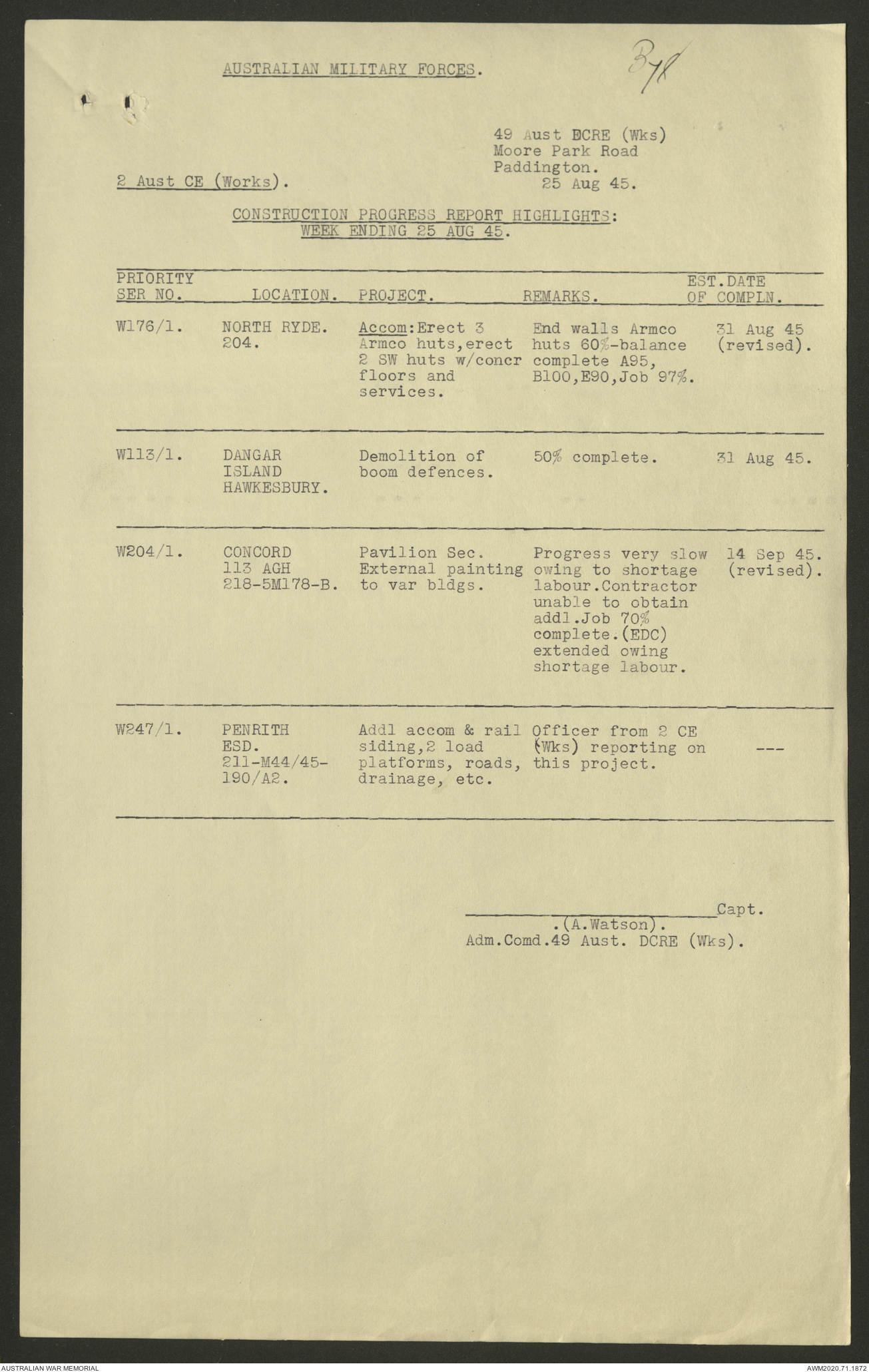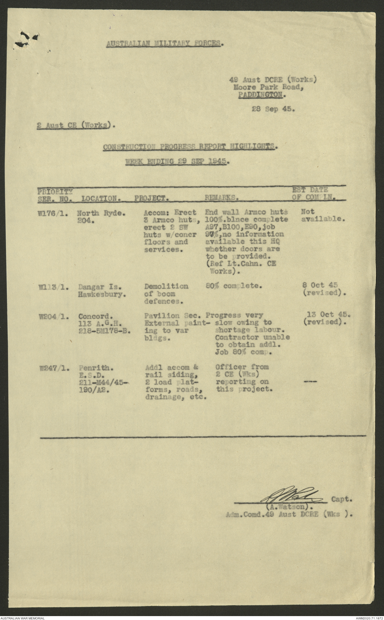 - AWM52 5/8/10 - 49 Australian Deputy Commander Royal Engineers Works