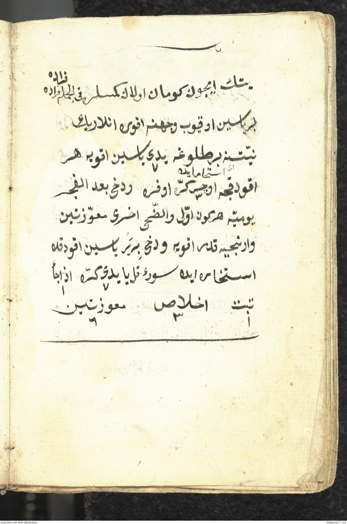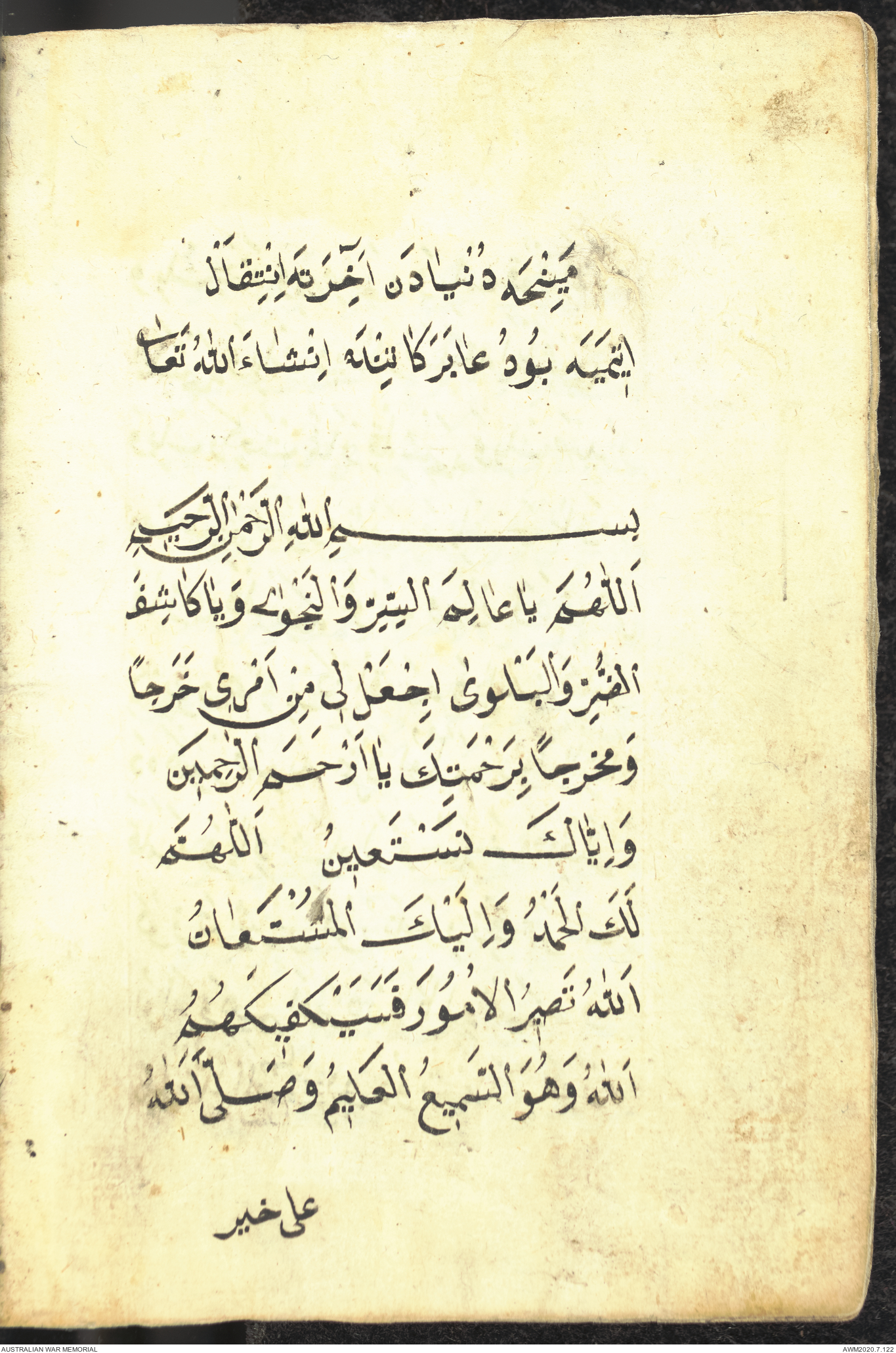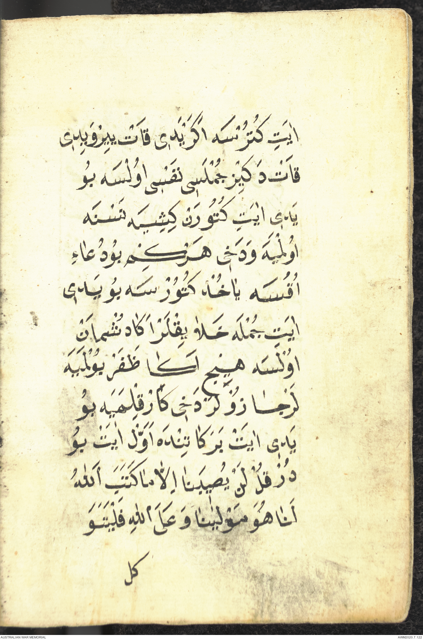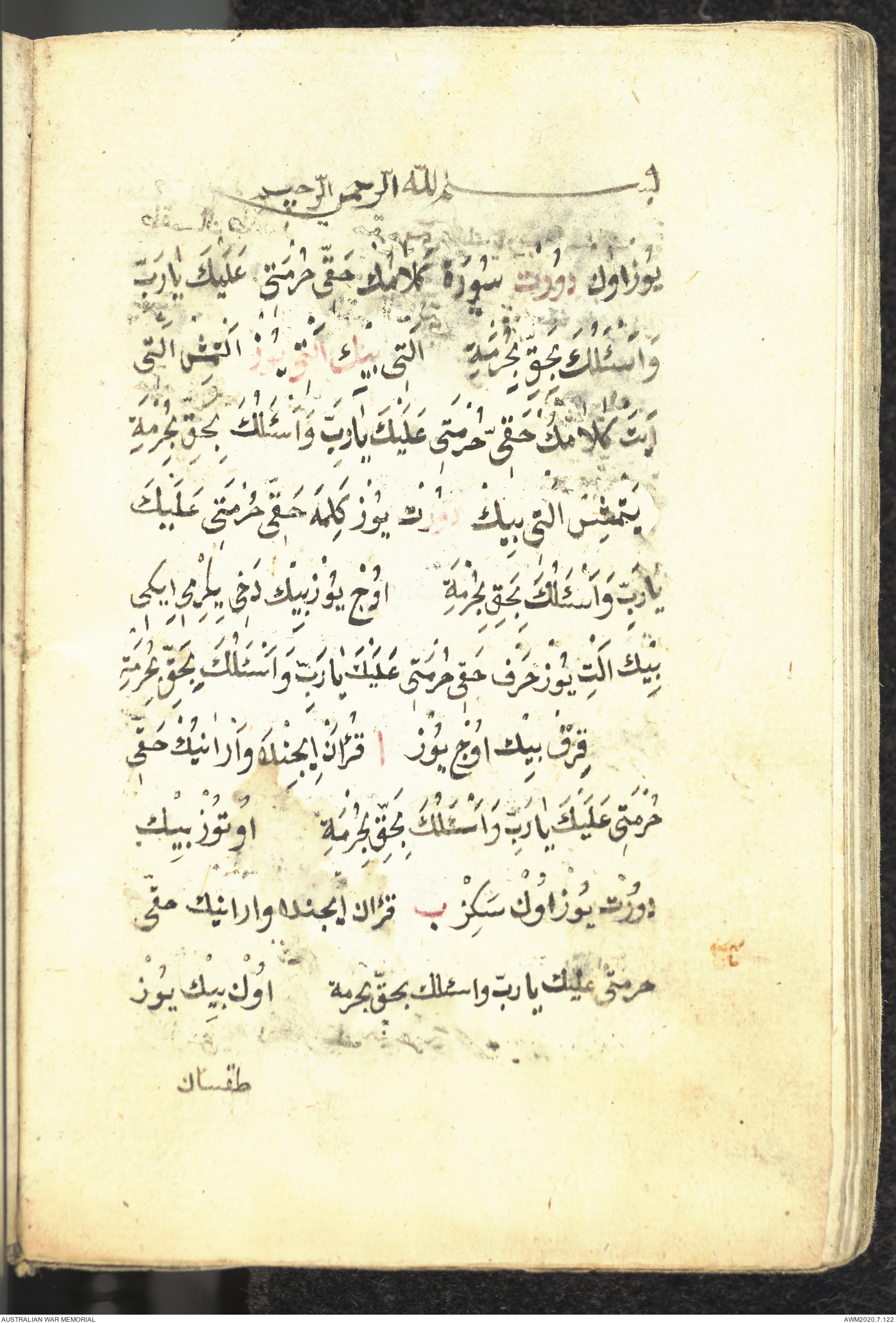 Wallet 1 of 1 - Prayer book relating to an unknown Turkish soldier who served at Gallipoli, 1915