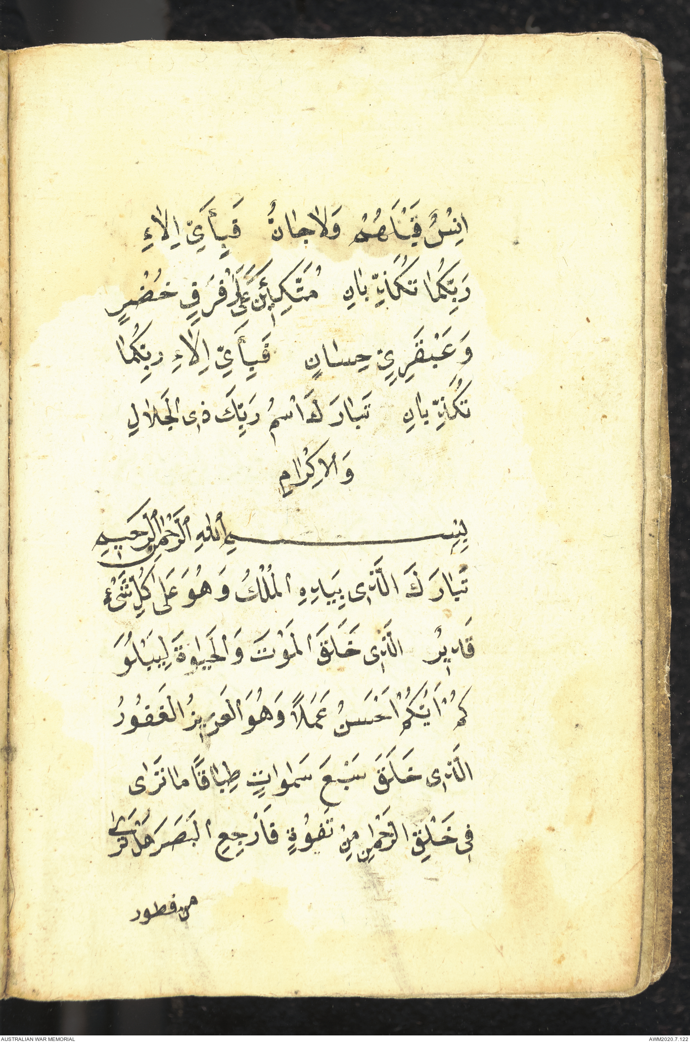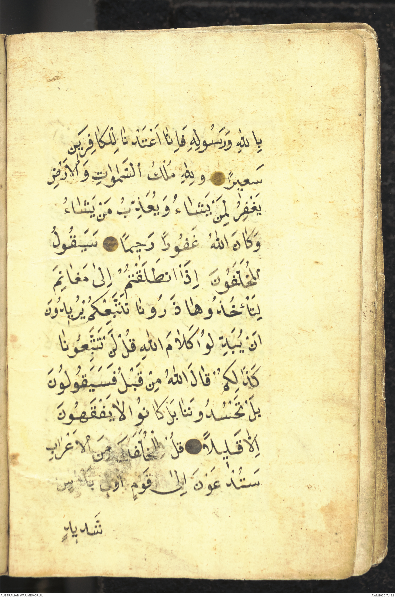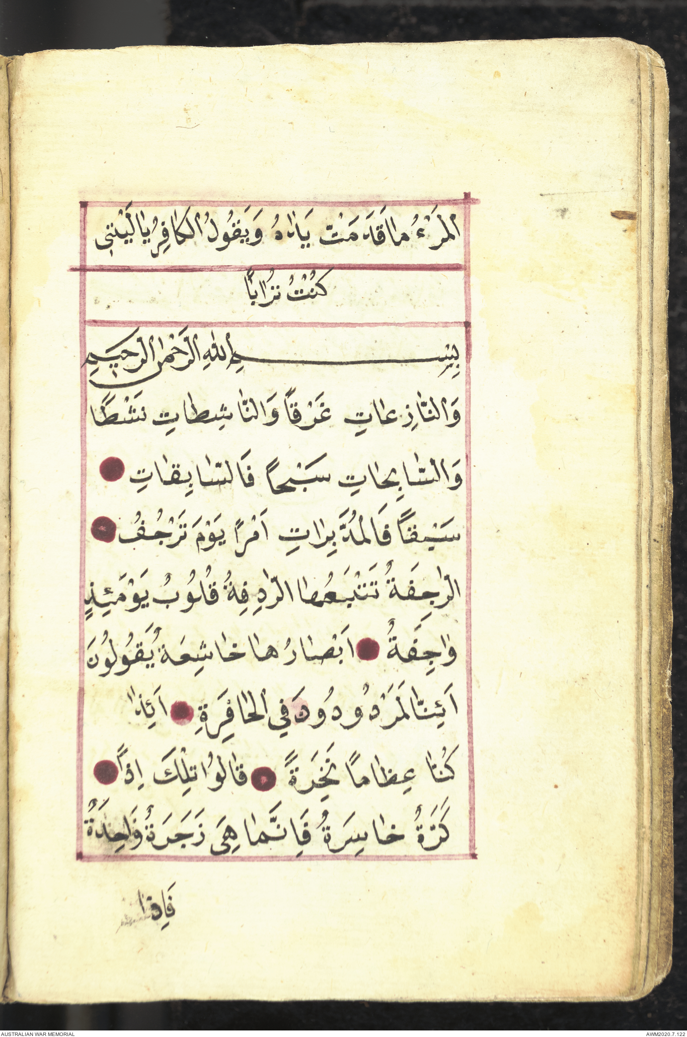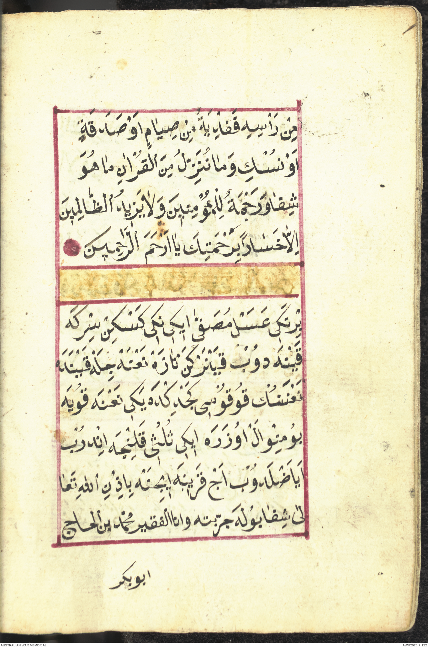 Wallet 1 of 1 - Prayer book relating to an unknown Turkish soldier who served at Gallipoli, 1915