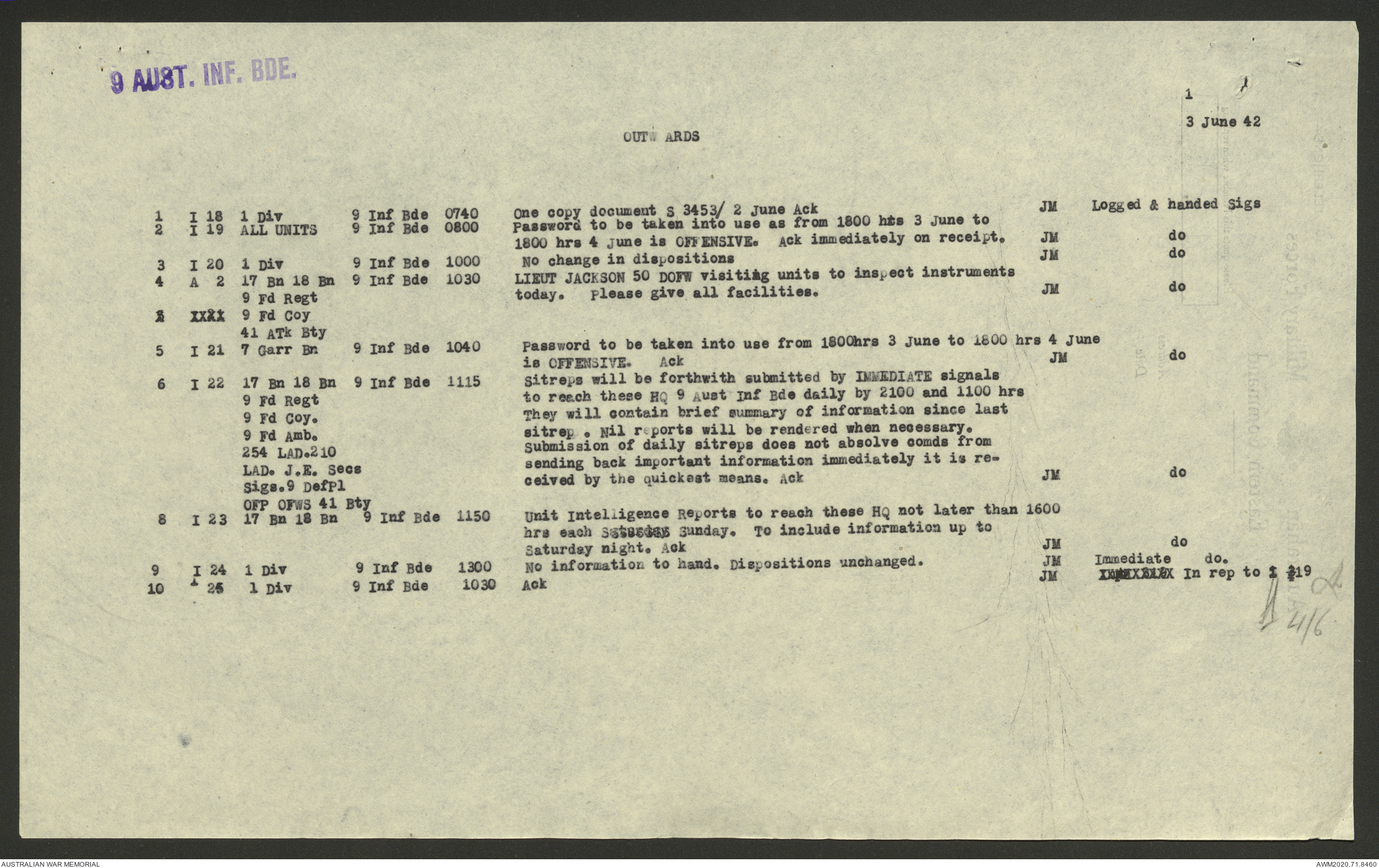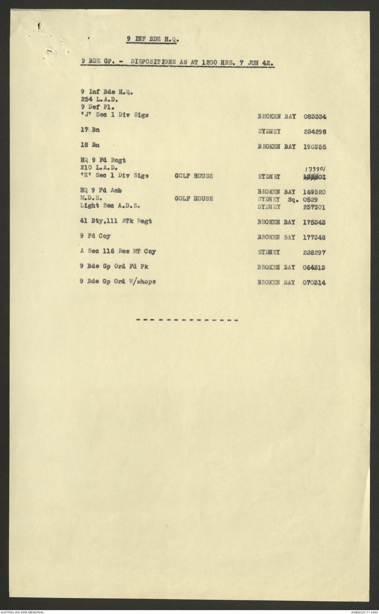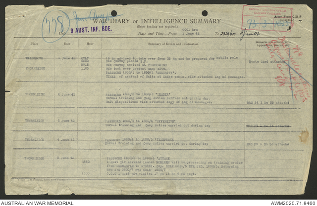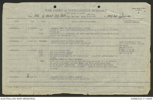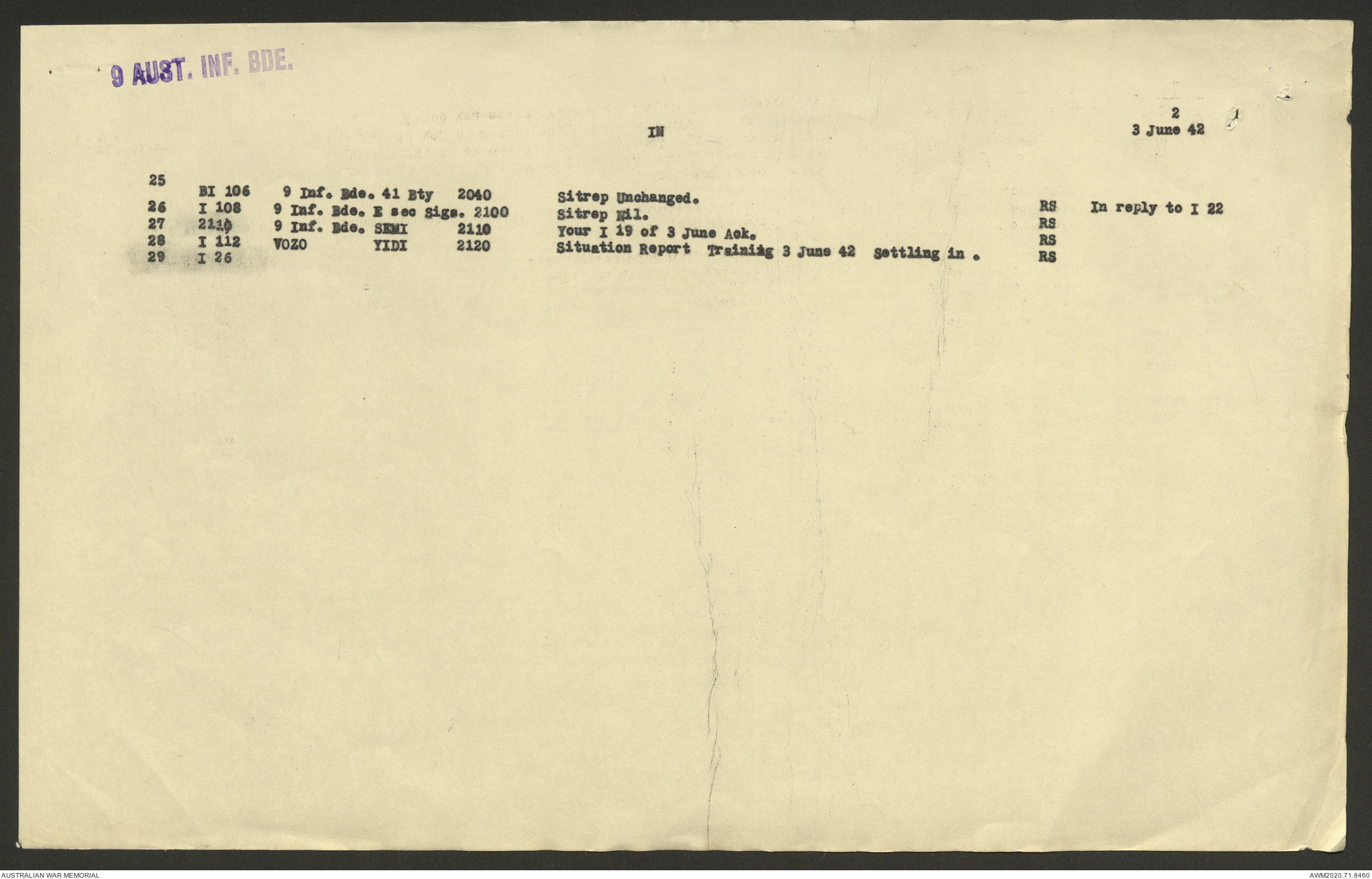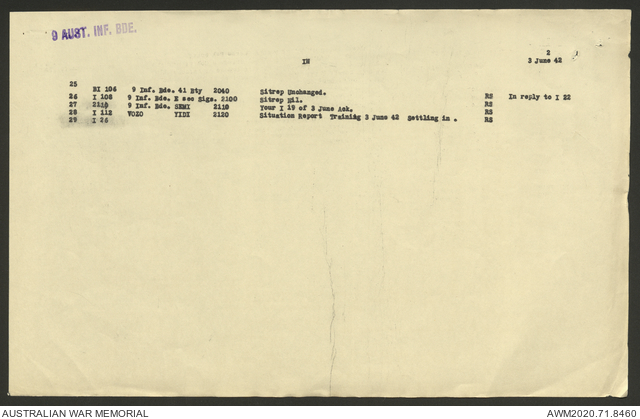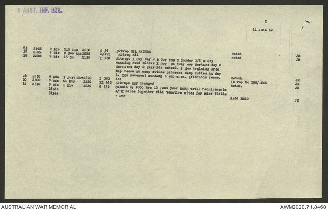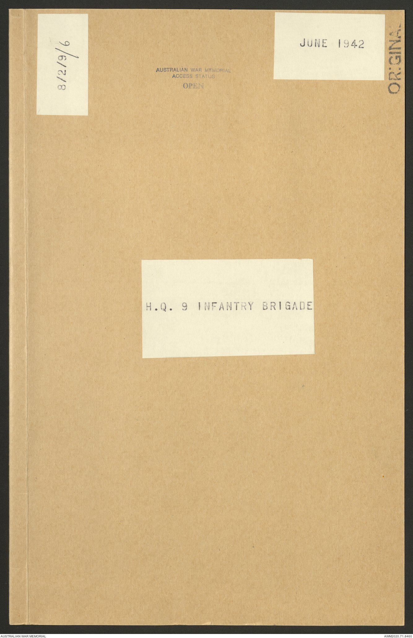 AWM52 8/2/9/6 - [Unit War Diaries, 1939-45 War] HQ 9 Australian Infantry Brigade, June 1942