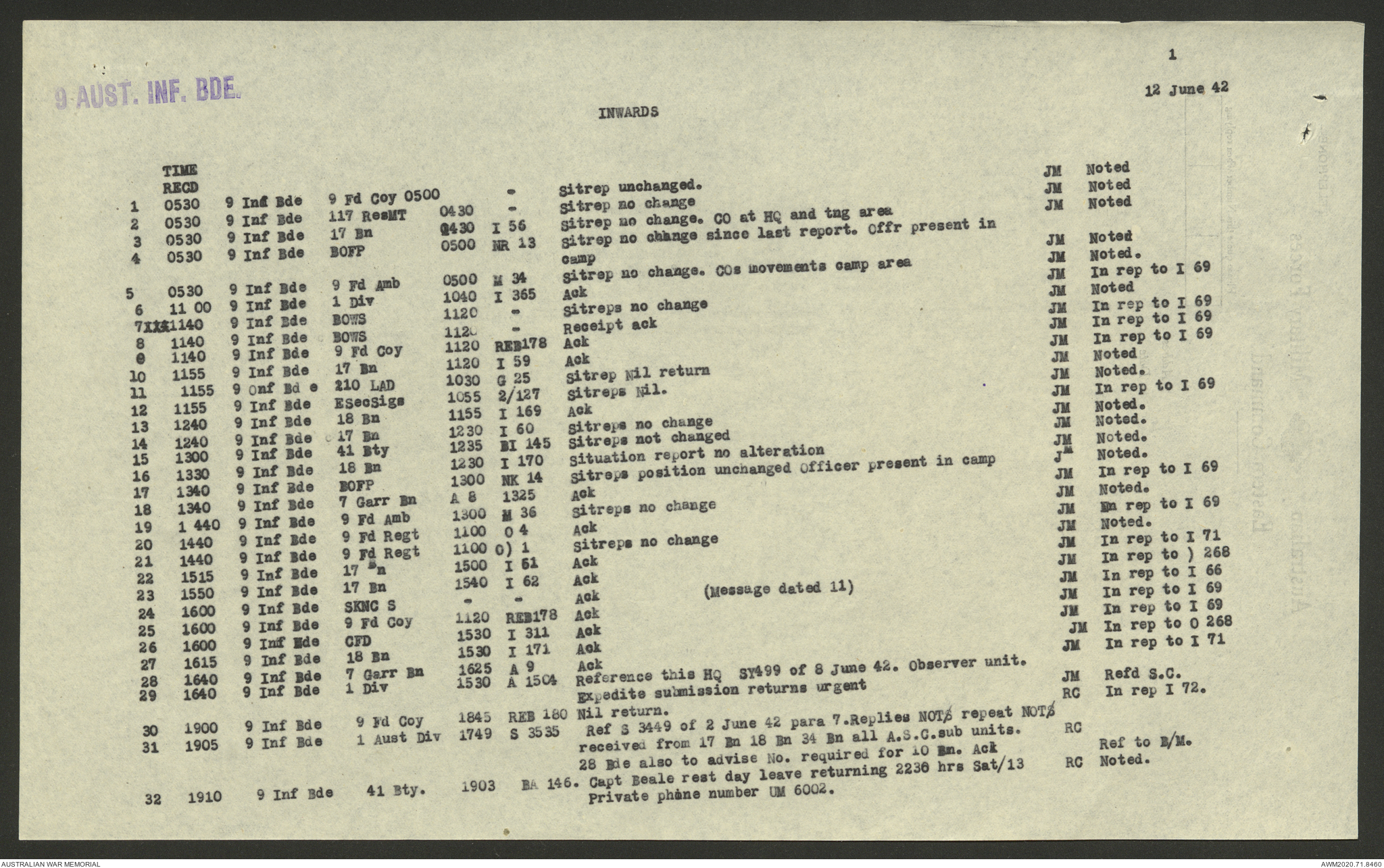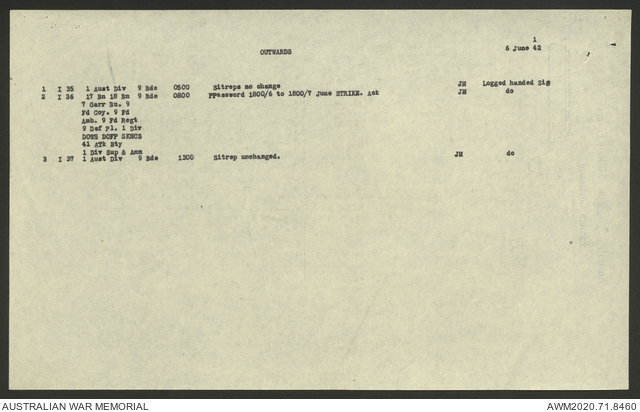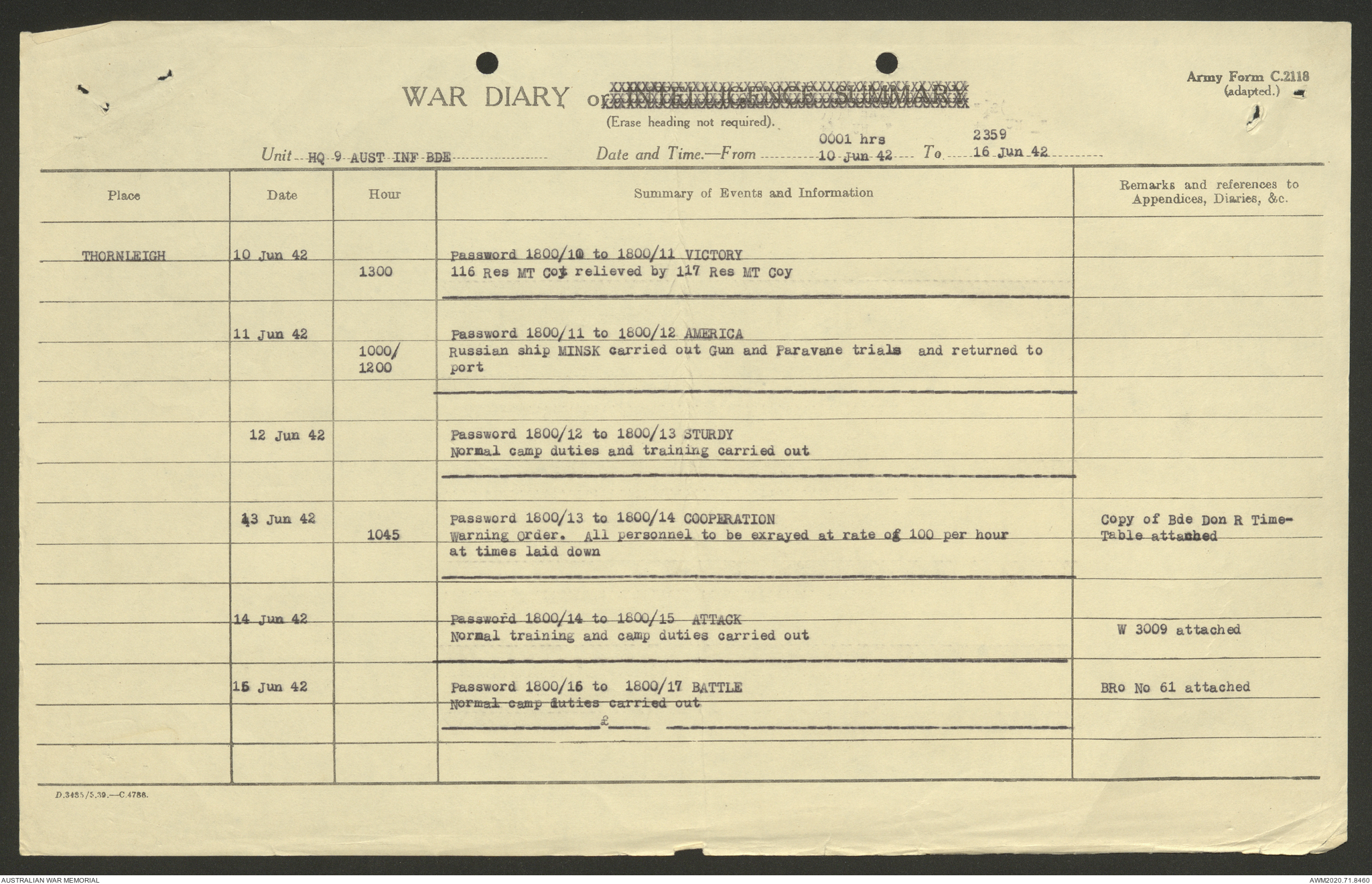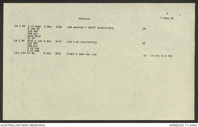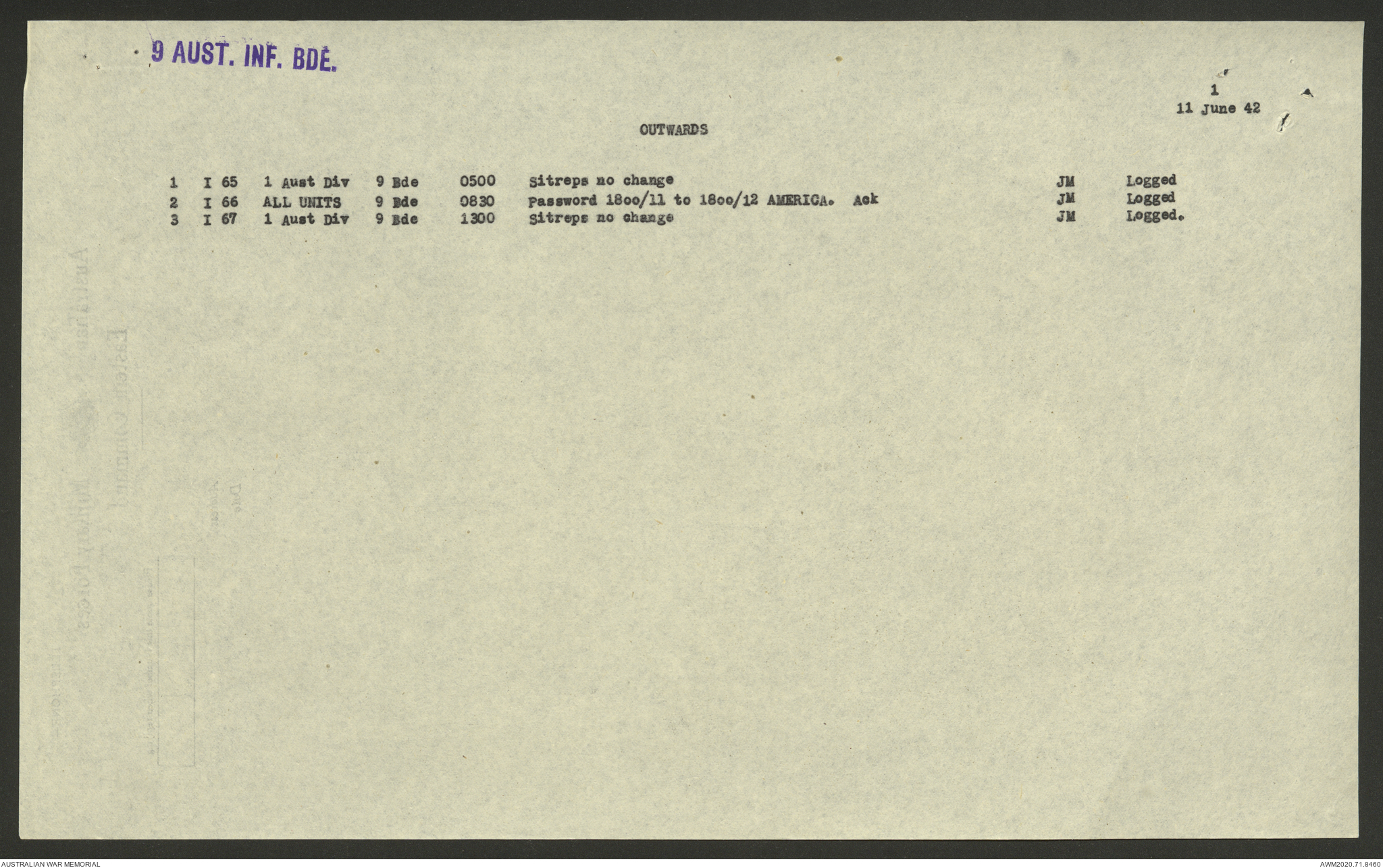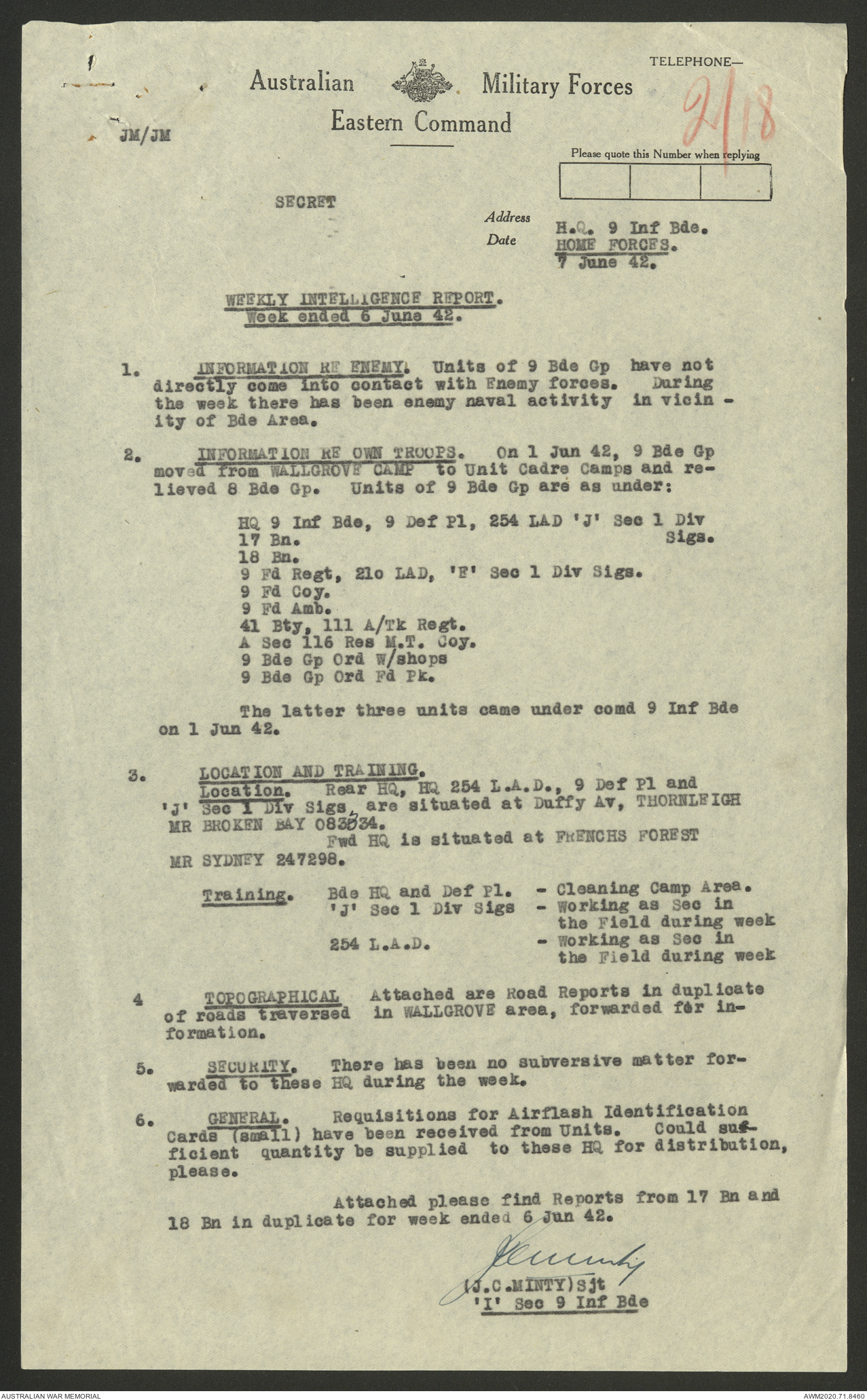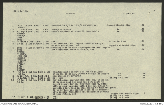 AWM52 8/2/9/6 - [Unit War Diaries, 1939-45 War] HQ 9 Australian Infantry Brigade, June 1942