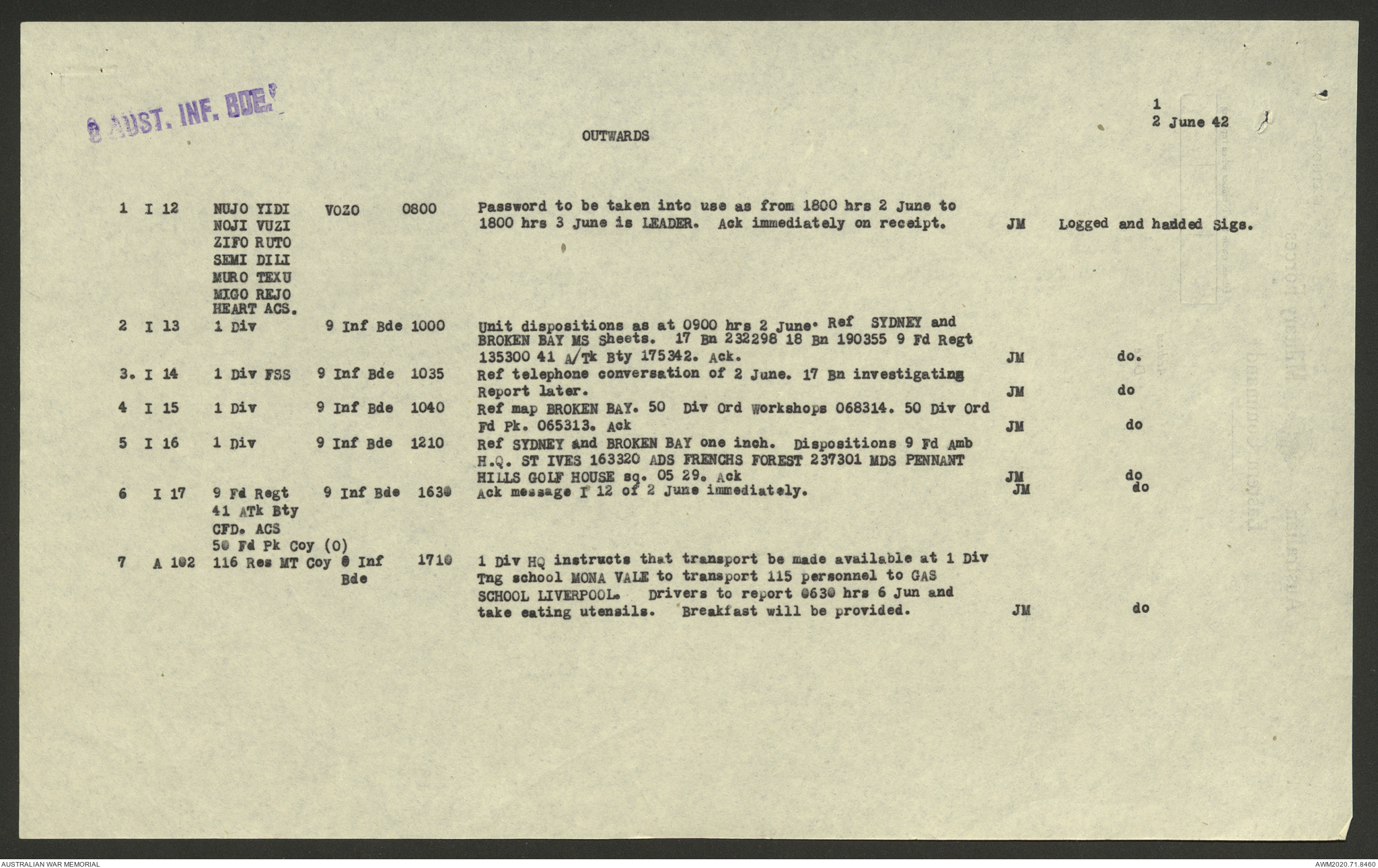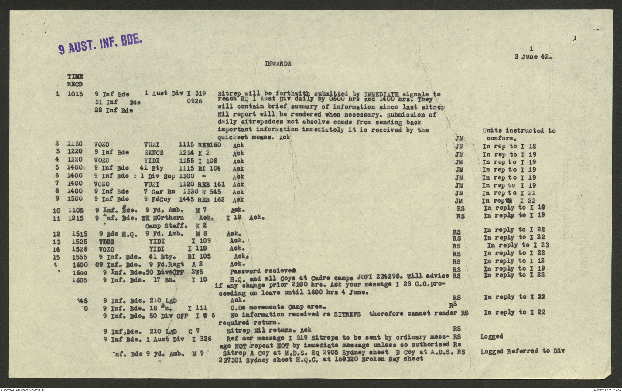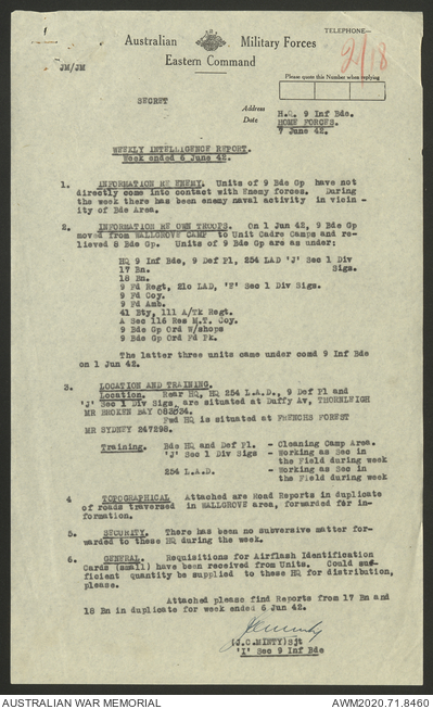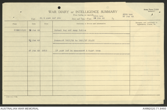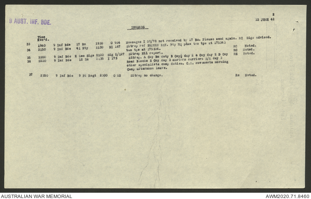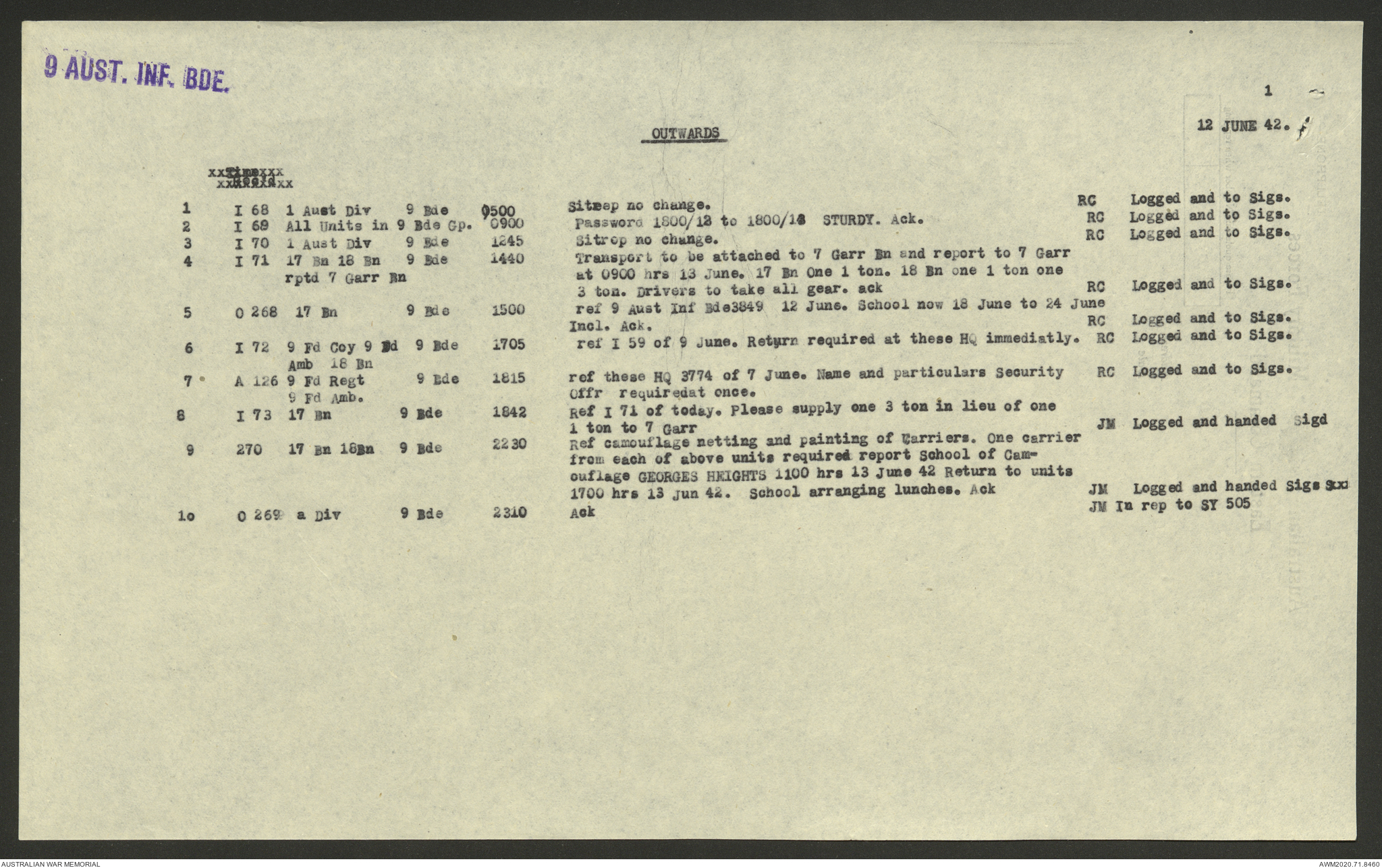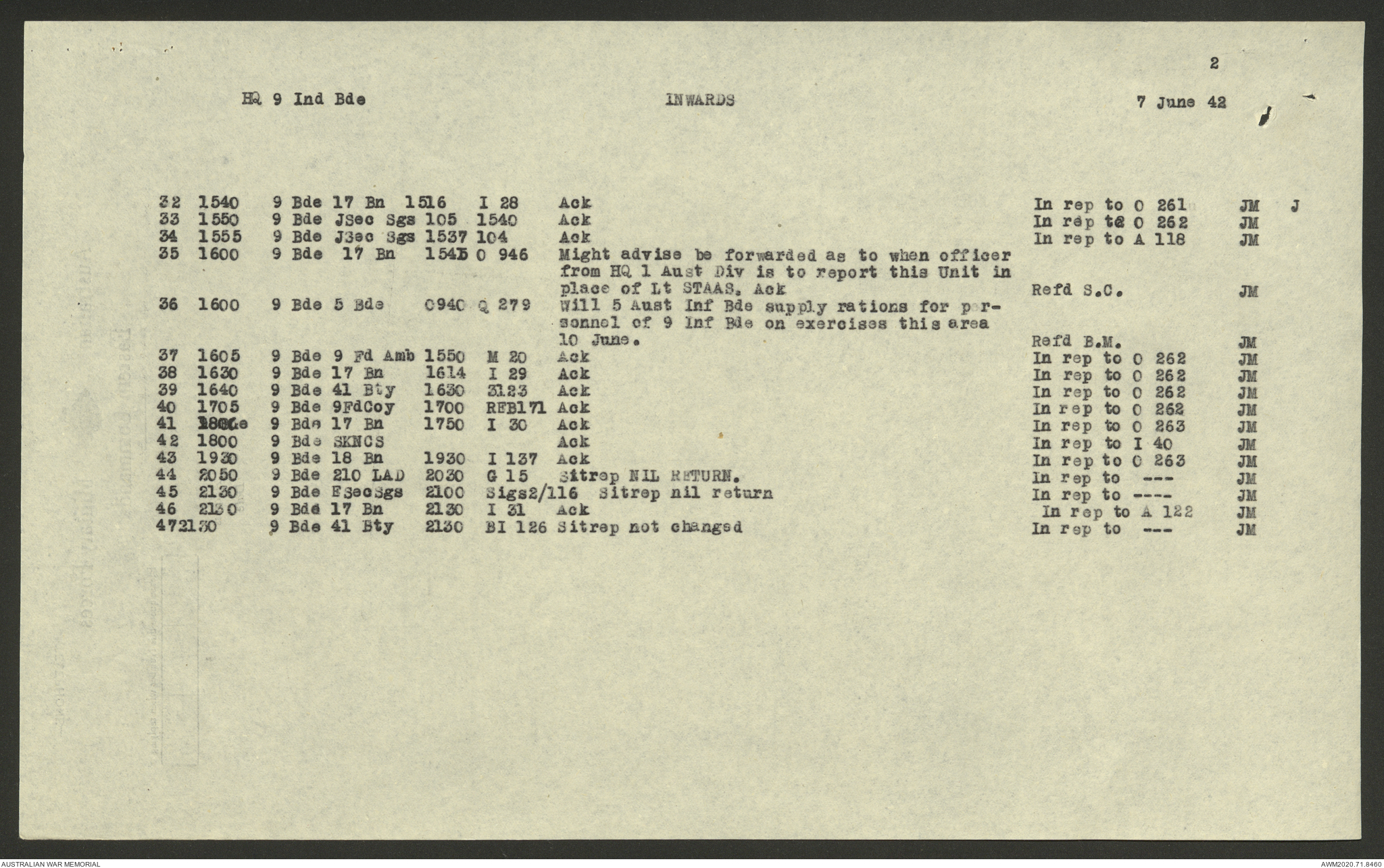 AWM52 8/2/9/6 - [Unit War Diaries, 1939-45 War] HQ 9 Australian Infantry Brigade, June 1942