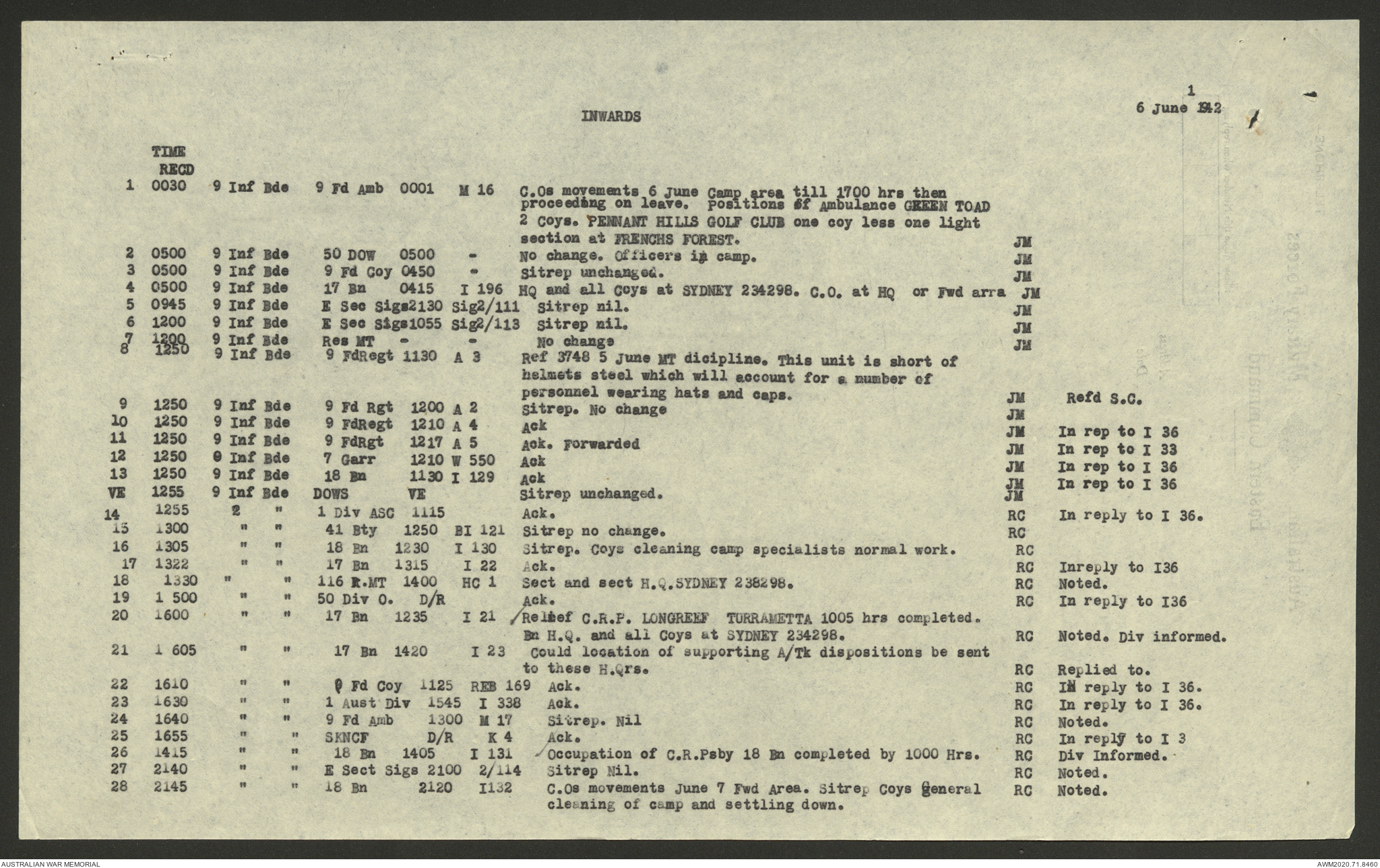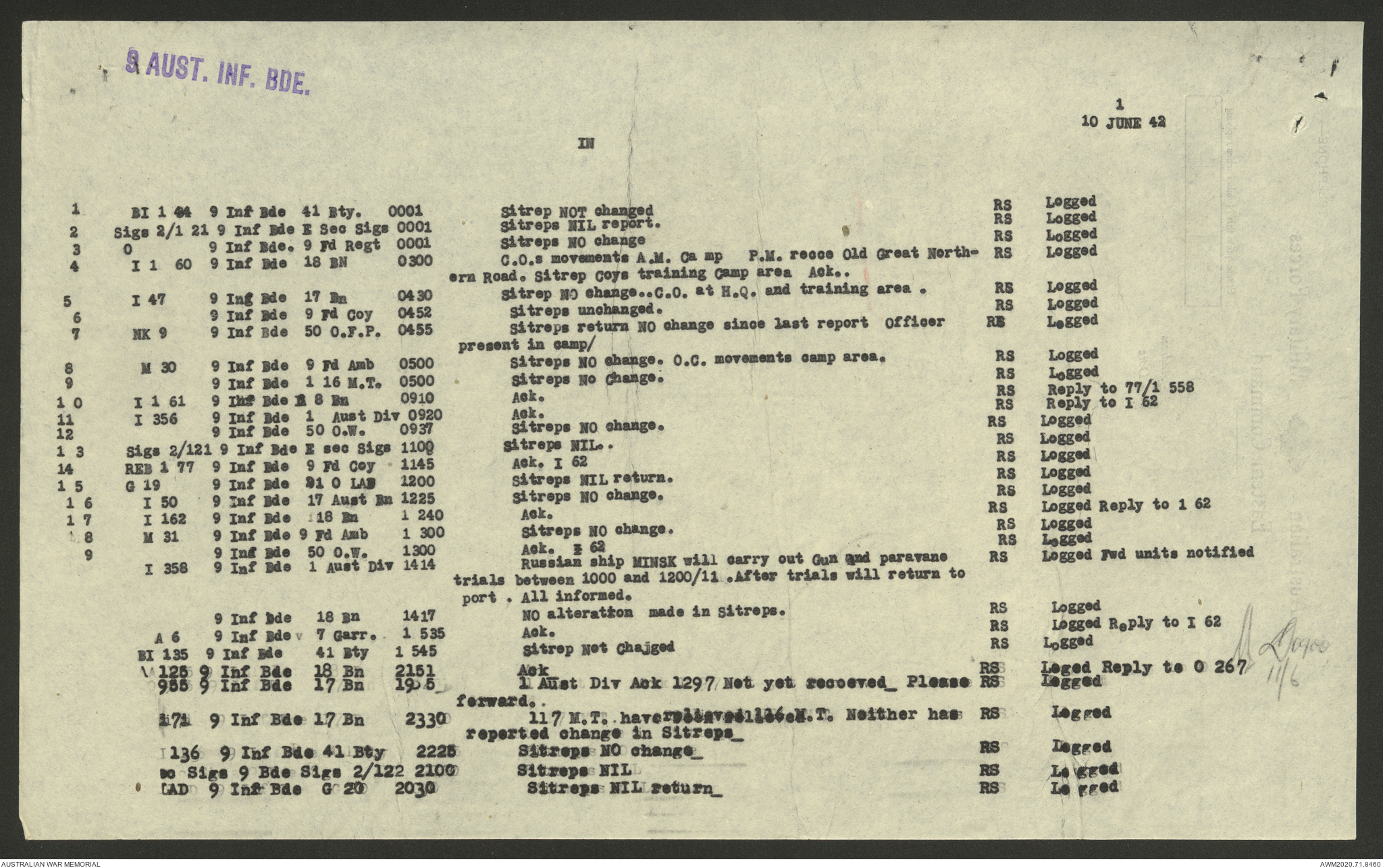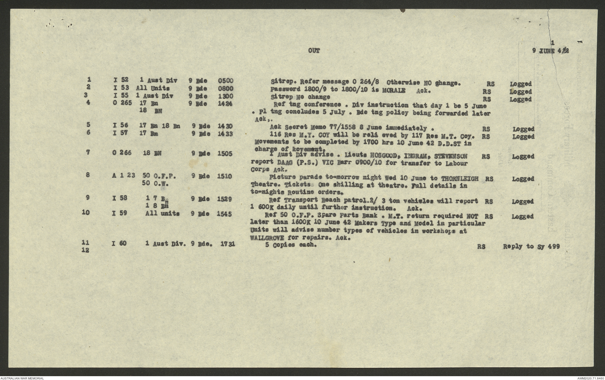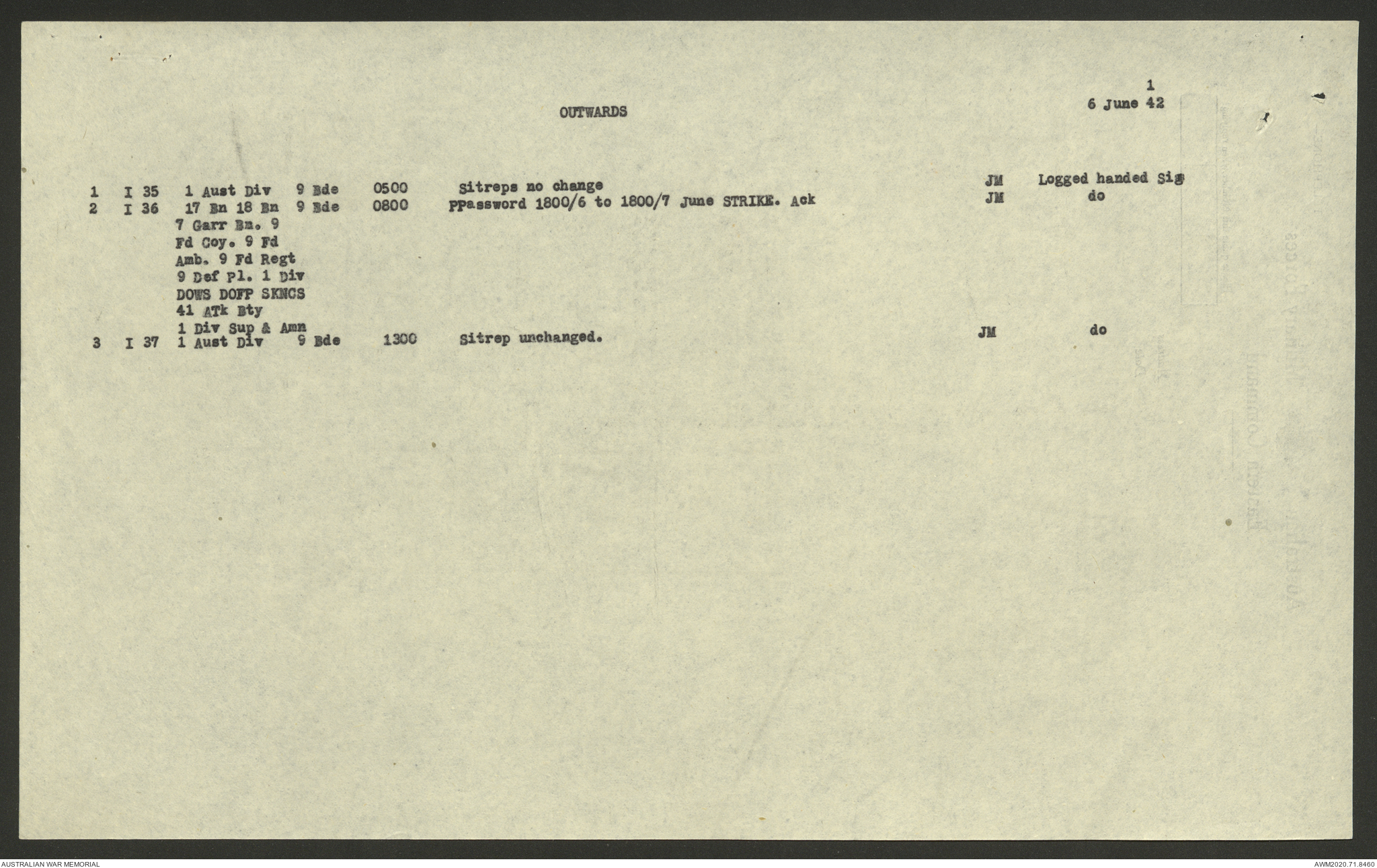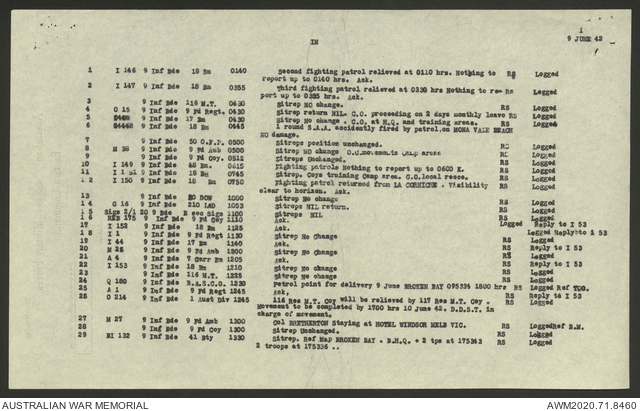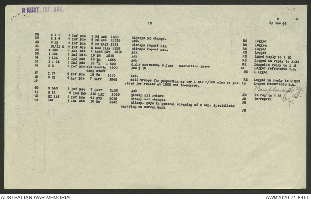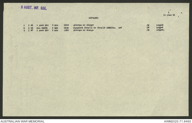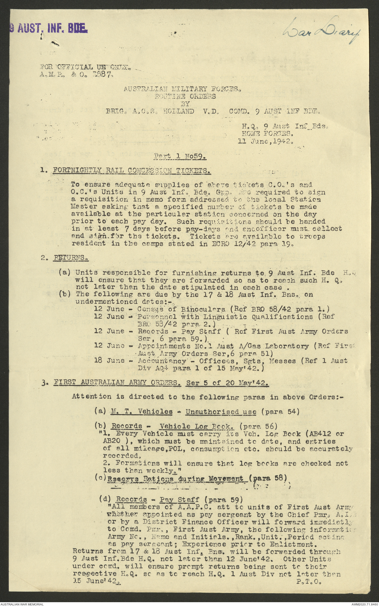 AWM52 8/2/9/6 - [Unit War Diaries, 1939-45 War] HQ 9 Australian Infantry Brigade, June 1942