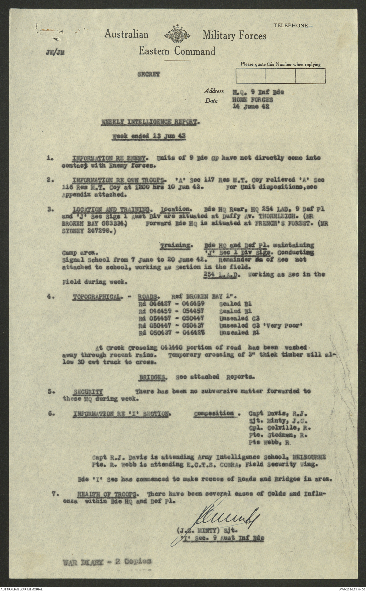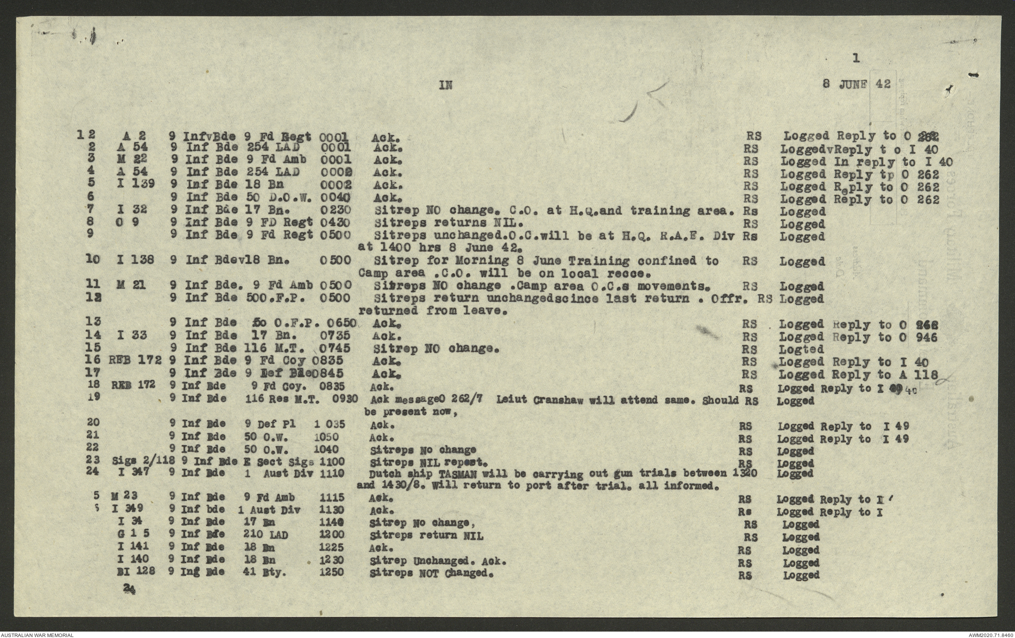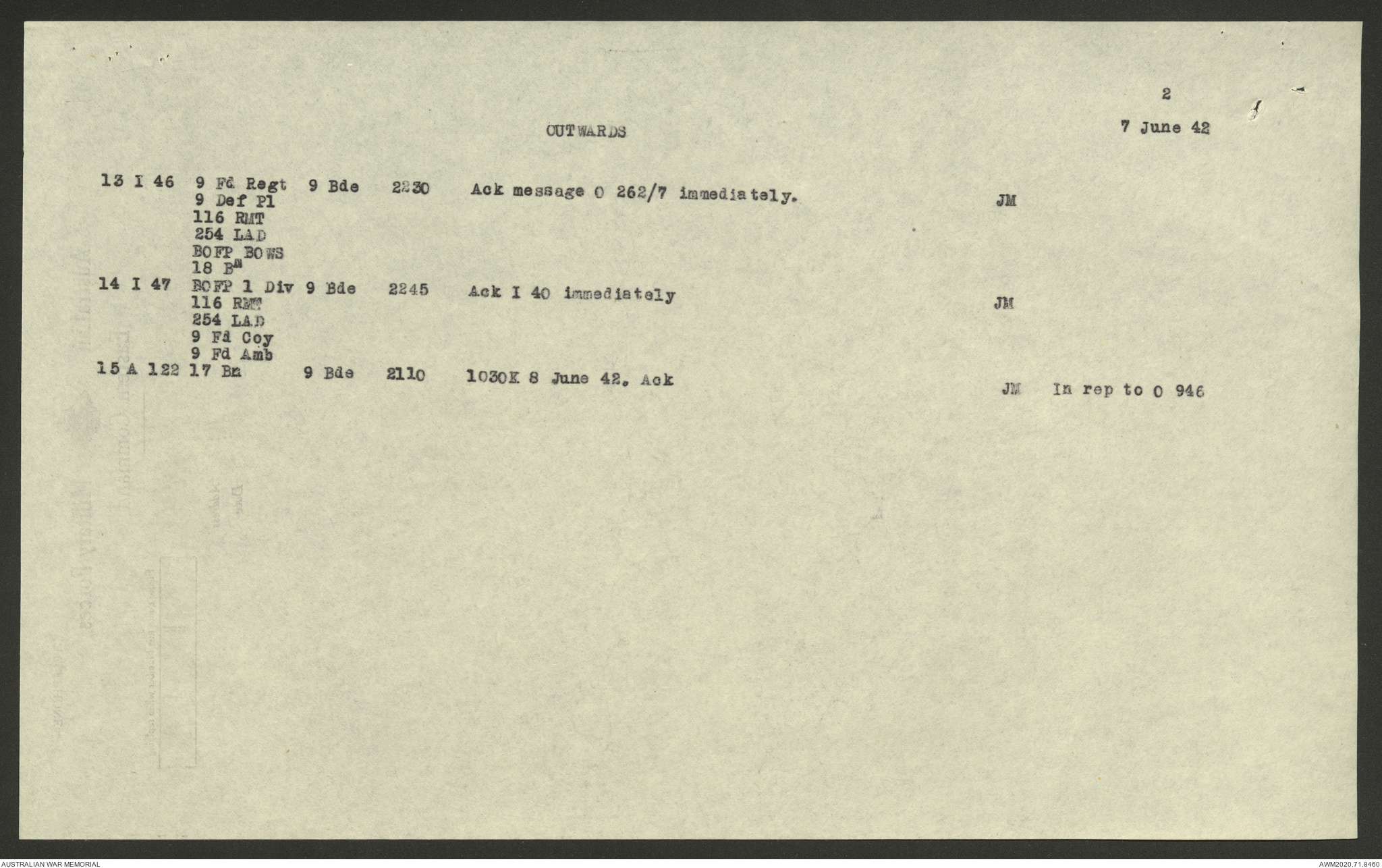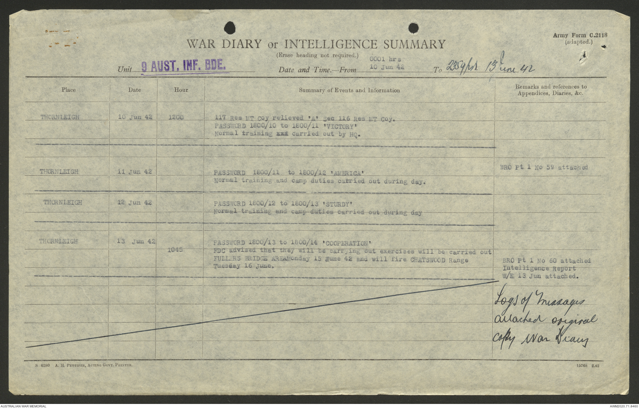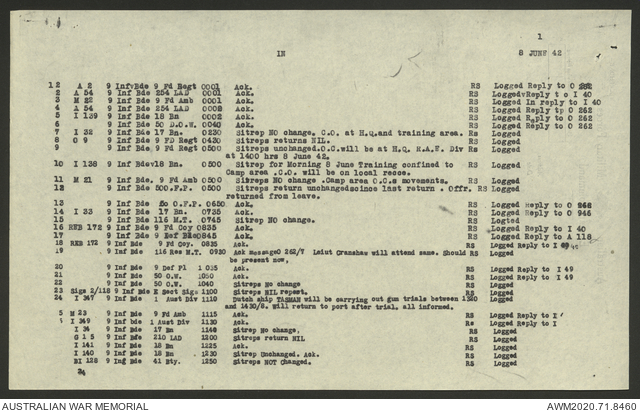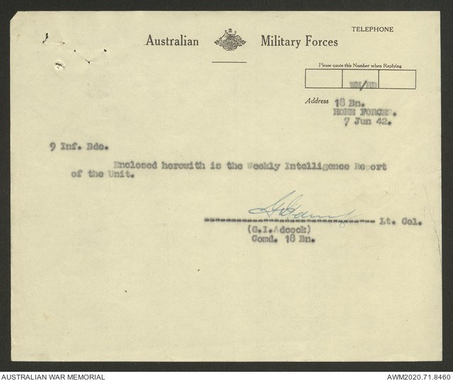 AWM52 8/2/9/6 - [Unit War Diaries, 1939-45 War] HQ 9 Australian Infantry Brigade, June 1942