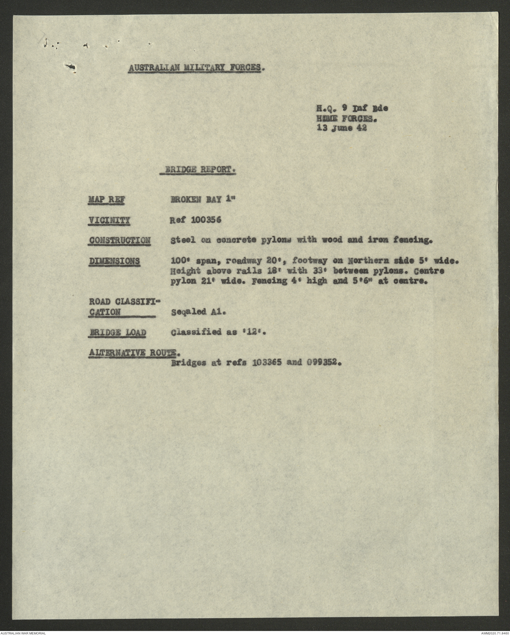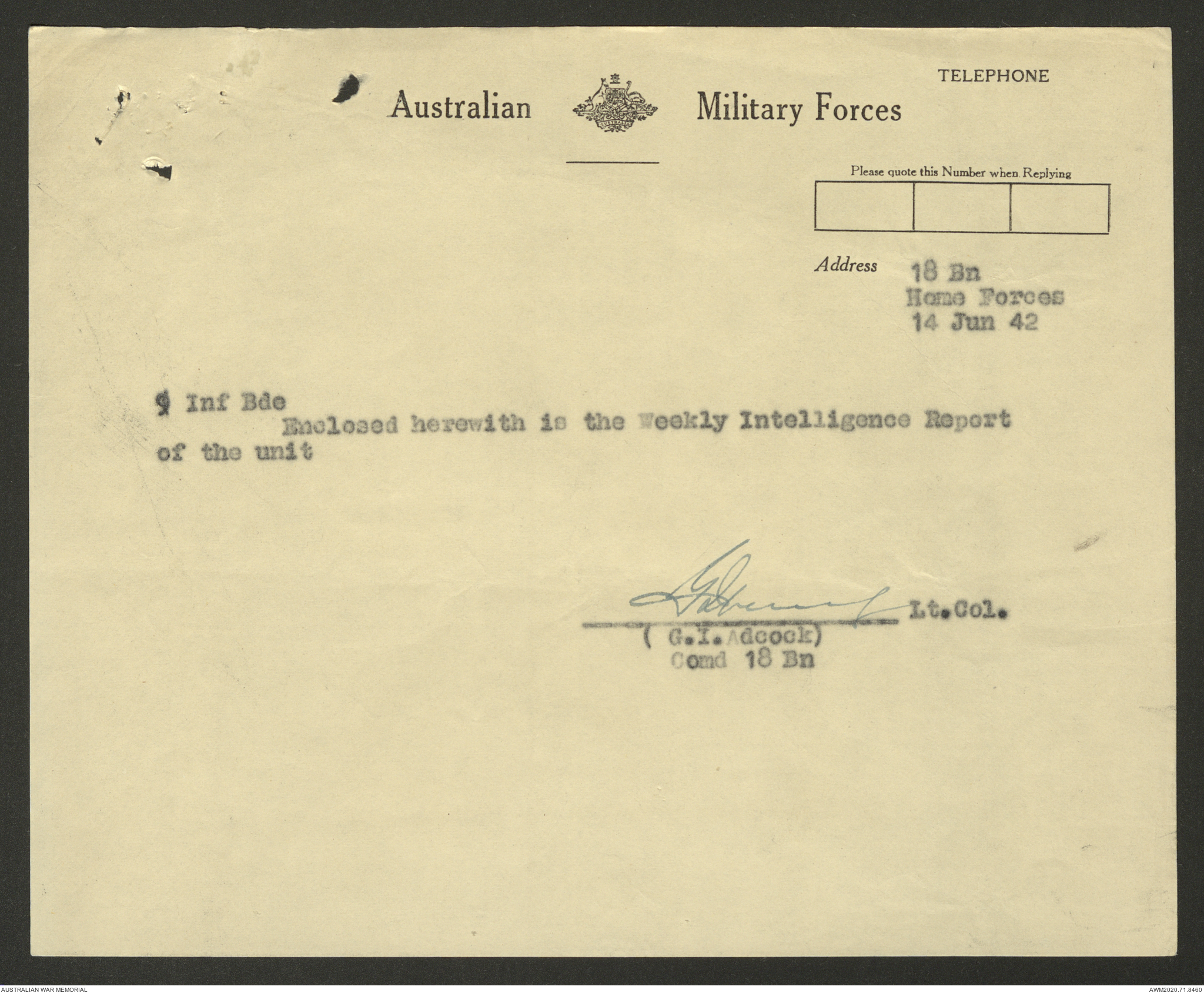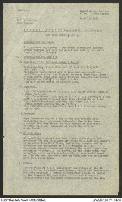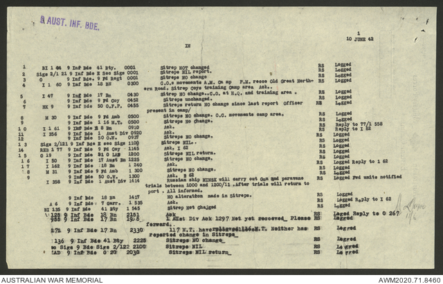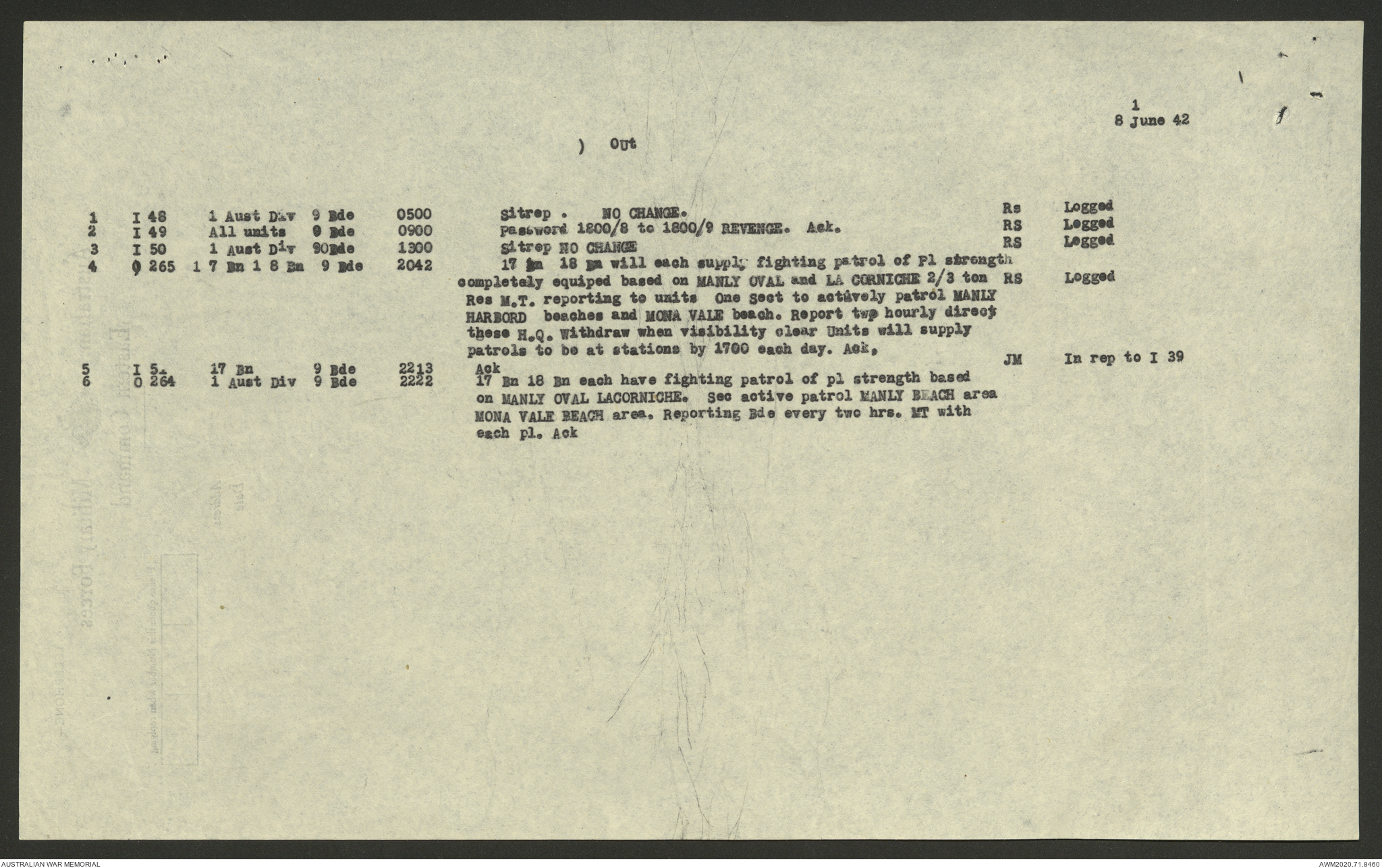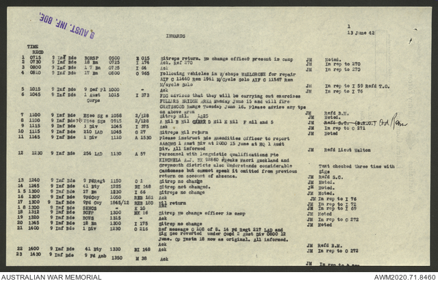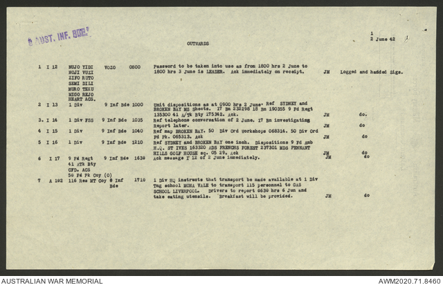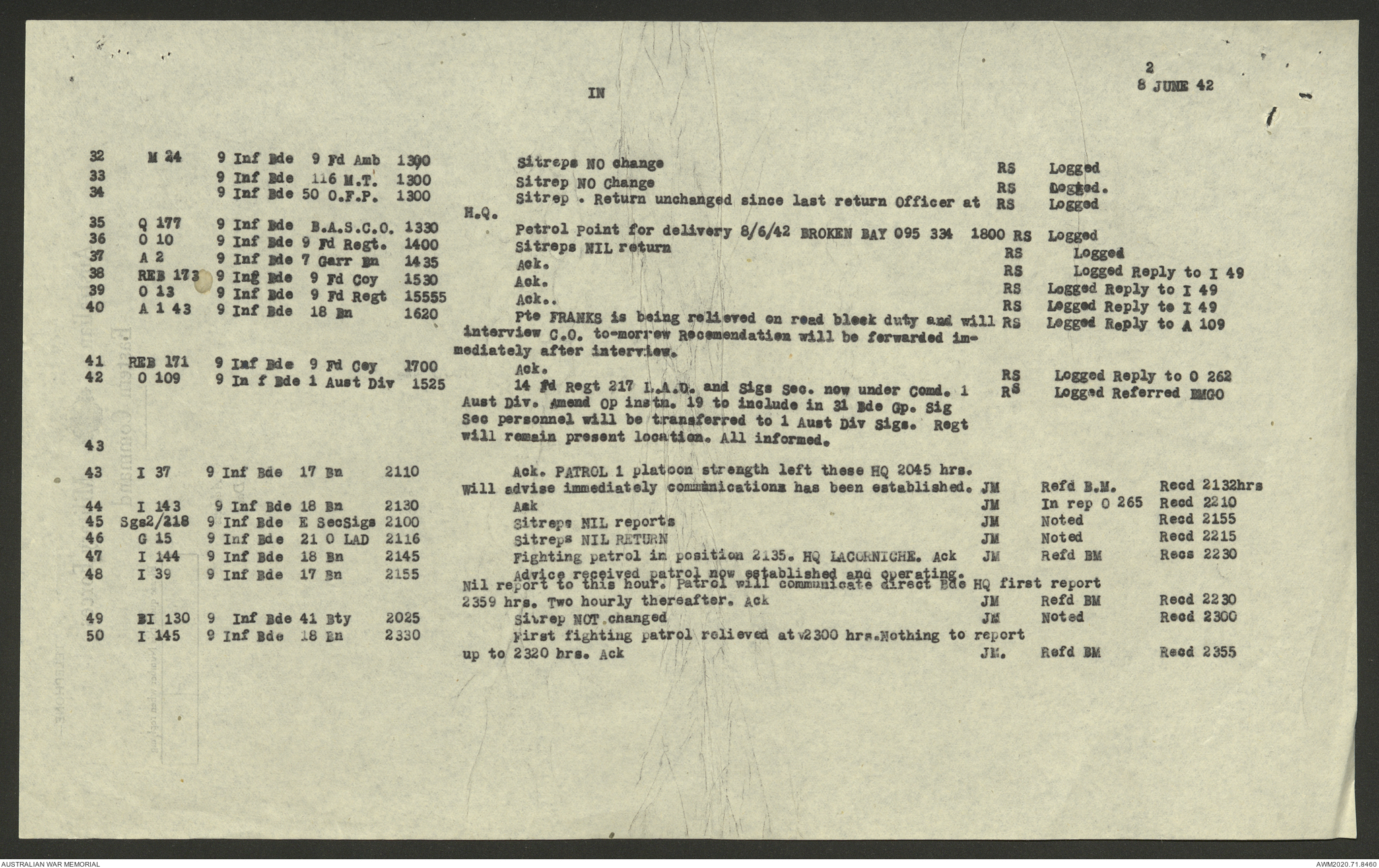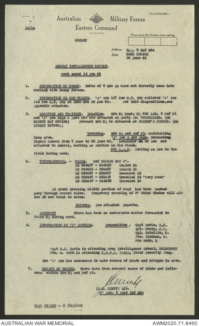 AWM52 8/2/9/6 - [Unit War Diaries, 1939-45 War] HQ 9 Australian Infantry Brigade, June 1942