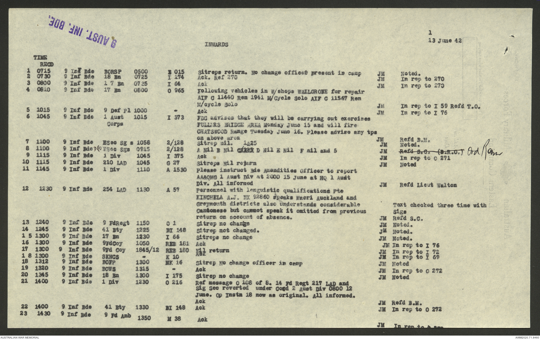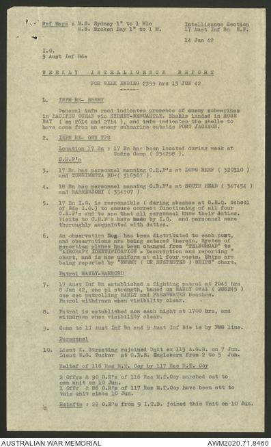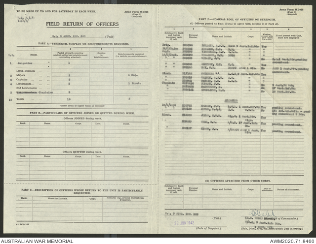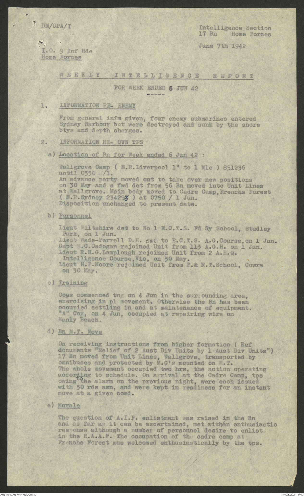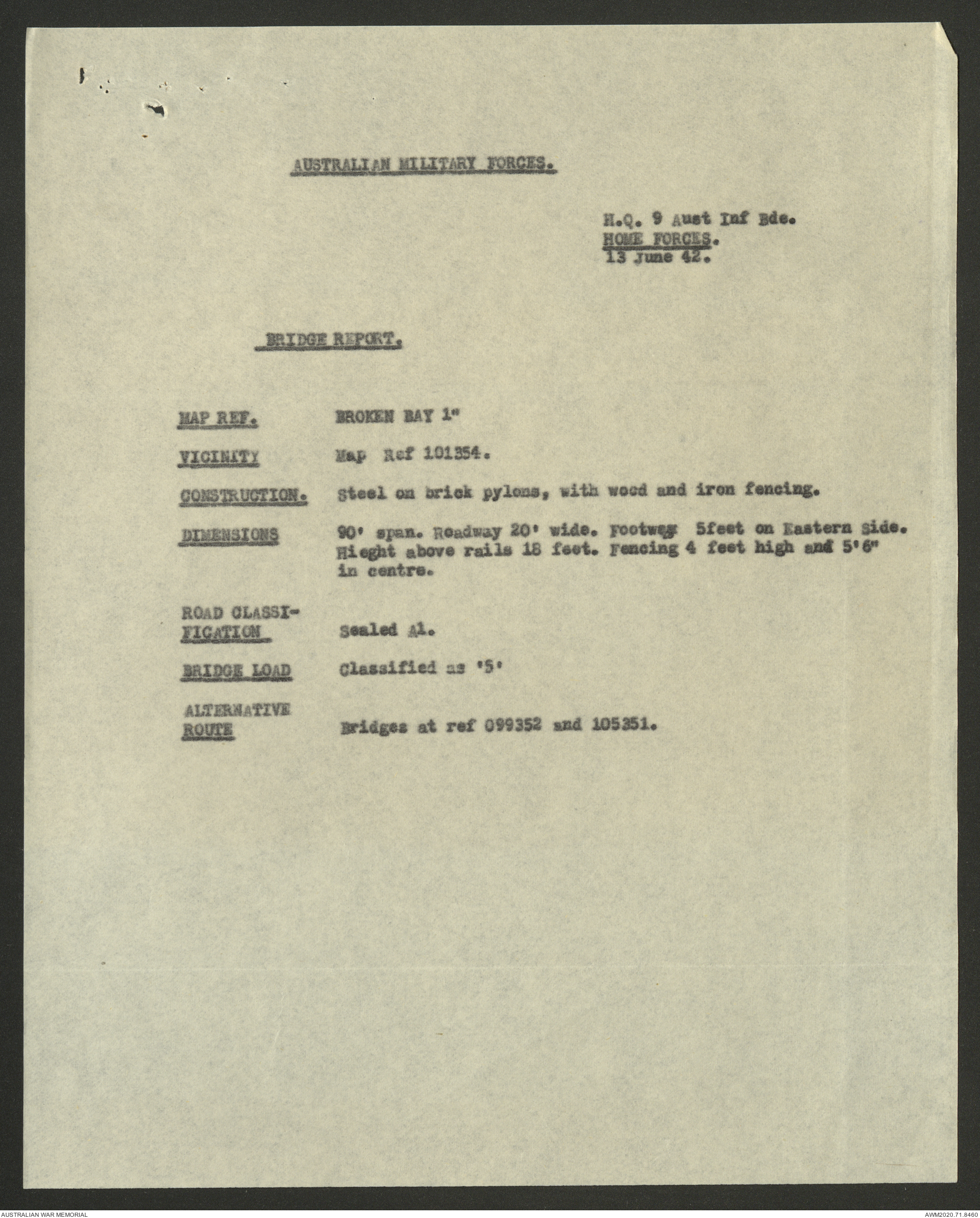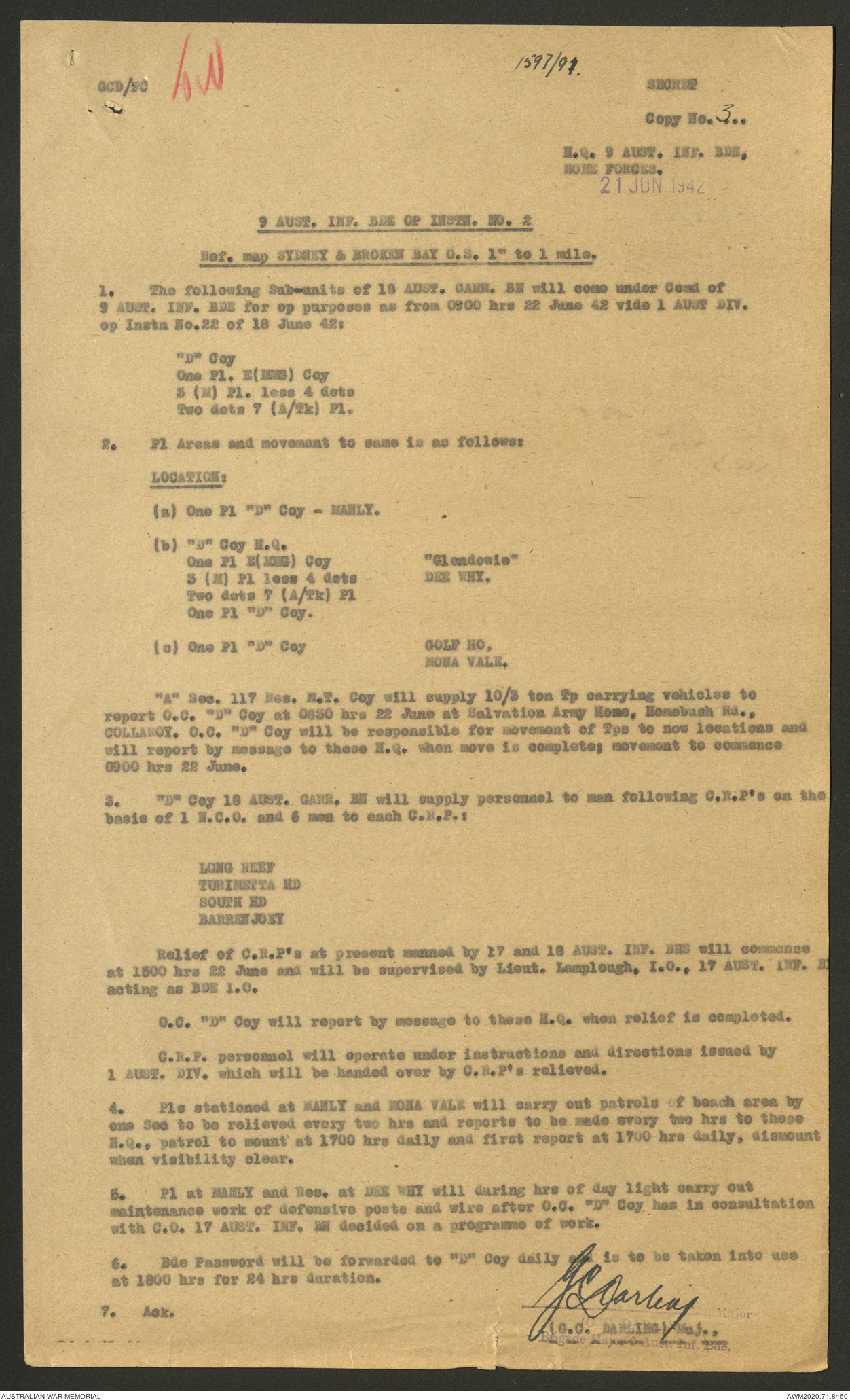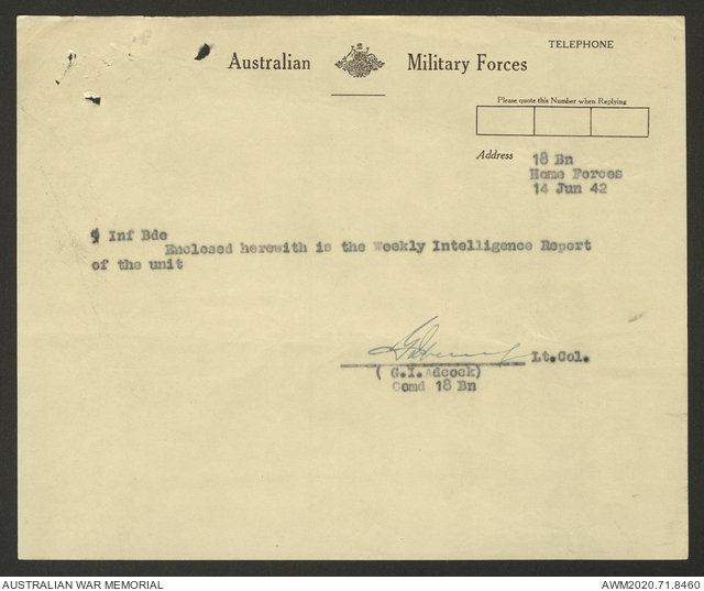 AWM52 8/2/9/6 - [Unit War Diaries, 1939-45 War] HQ 9 Australian Infantry Brigade, June 1942