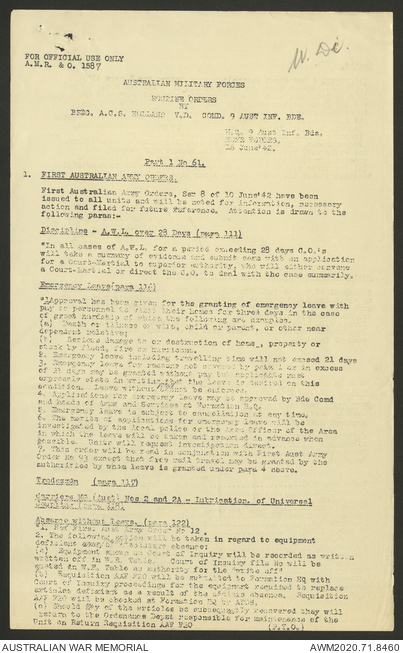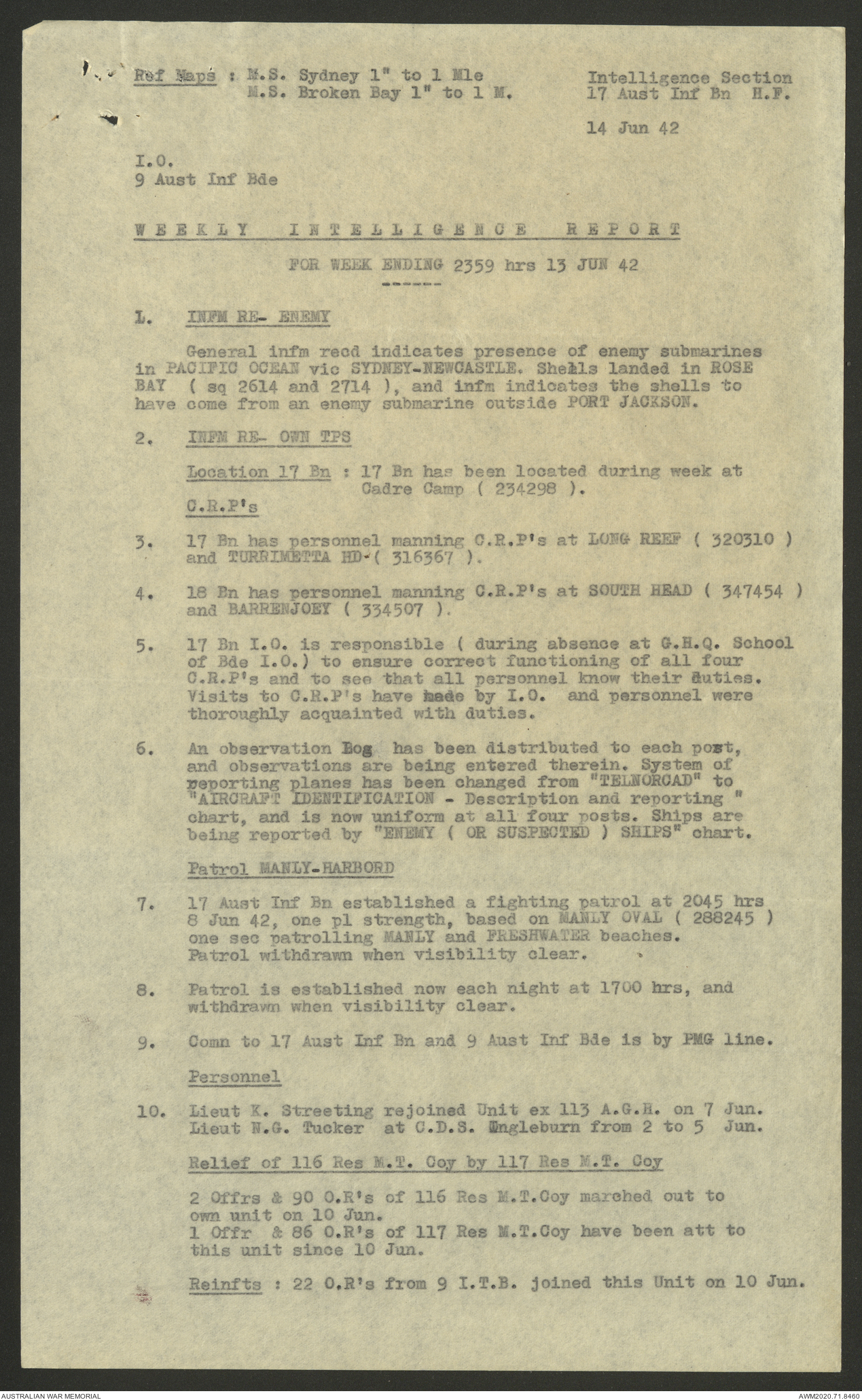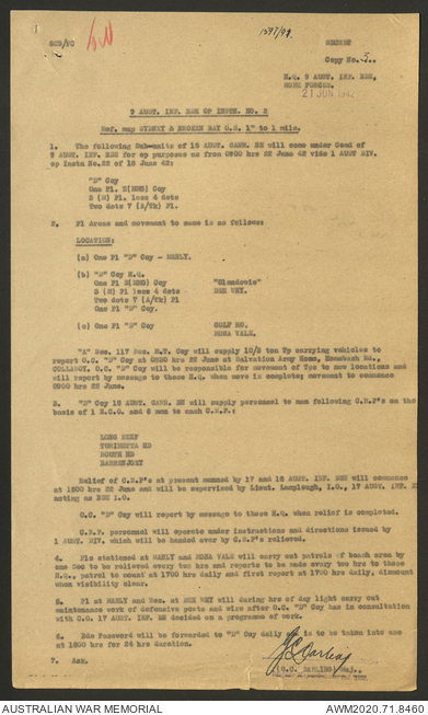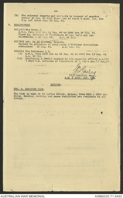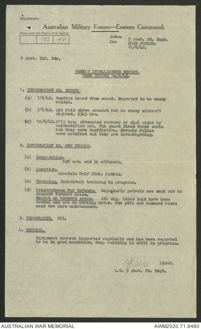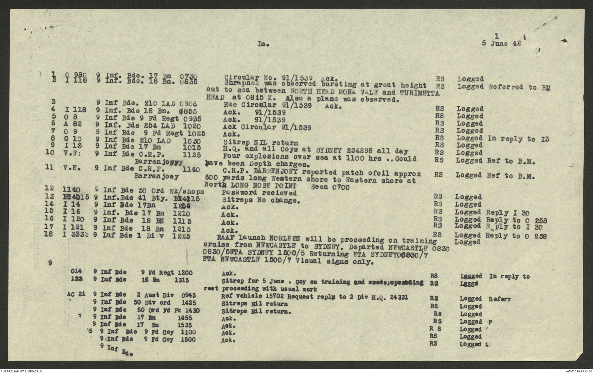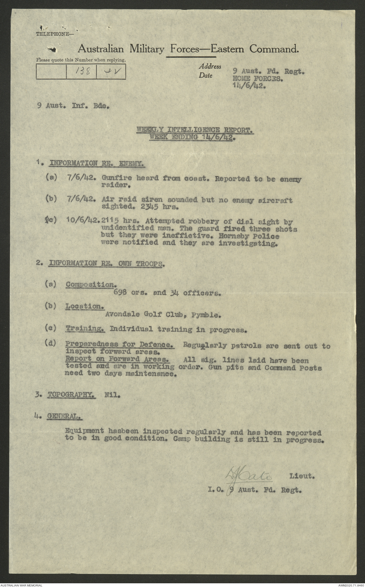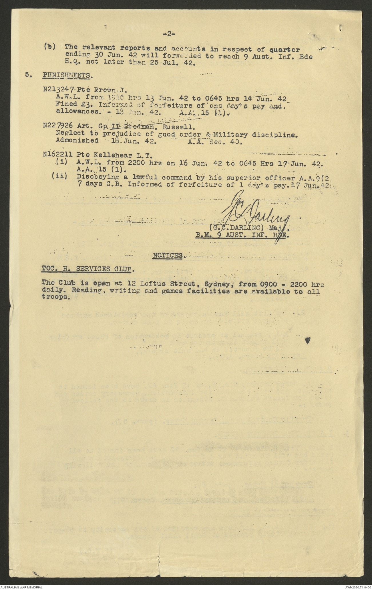 AWM52 8/2/9/6 - [Unit War Diaries, 1939-45 War] HQ 9 Australian Infantry Brigade, June 1942
