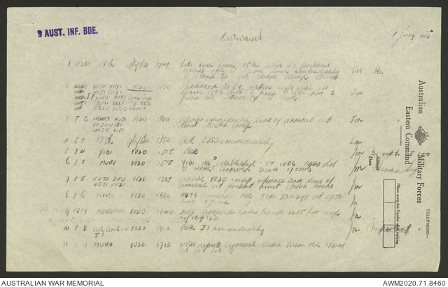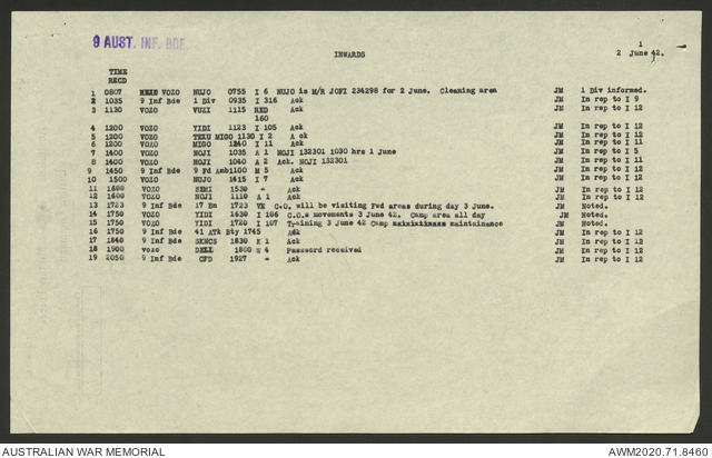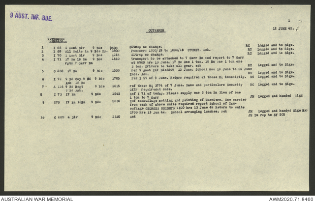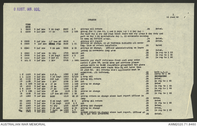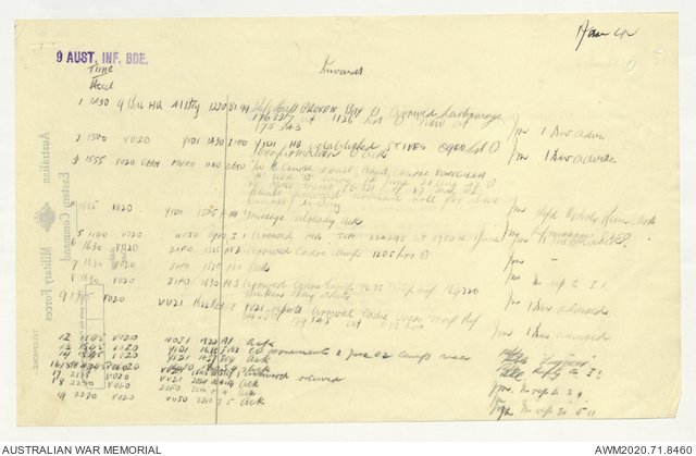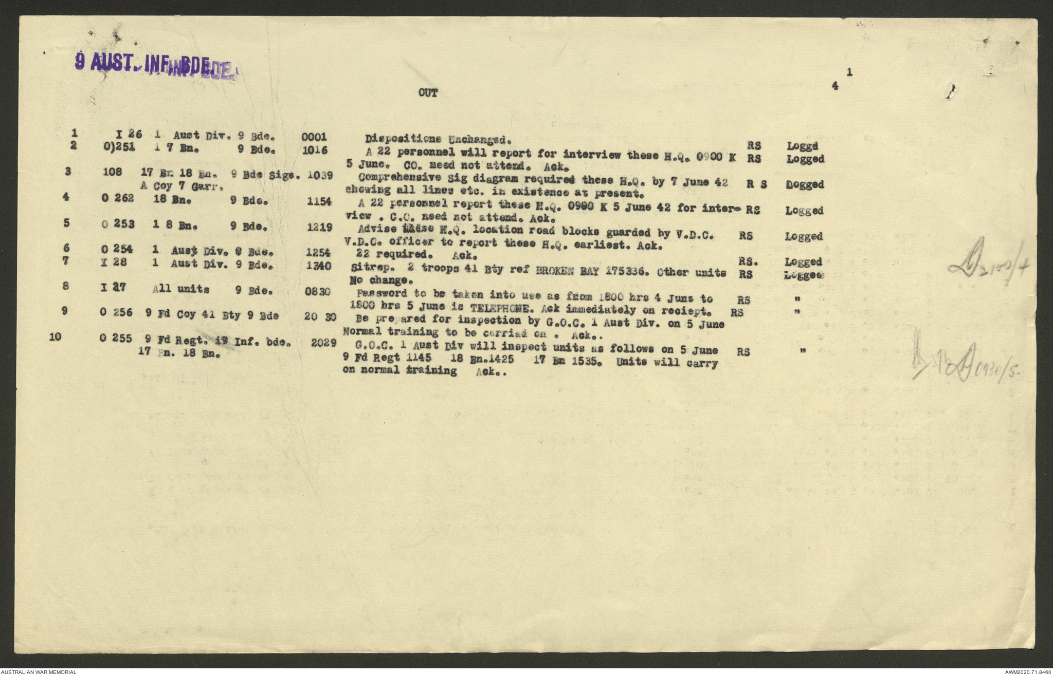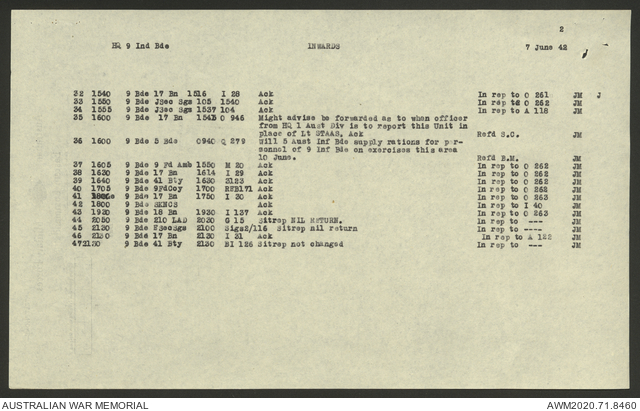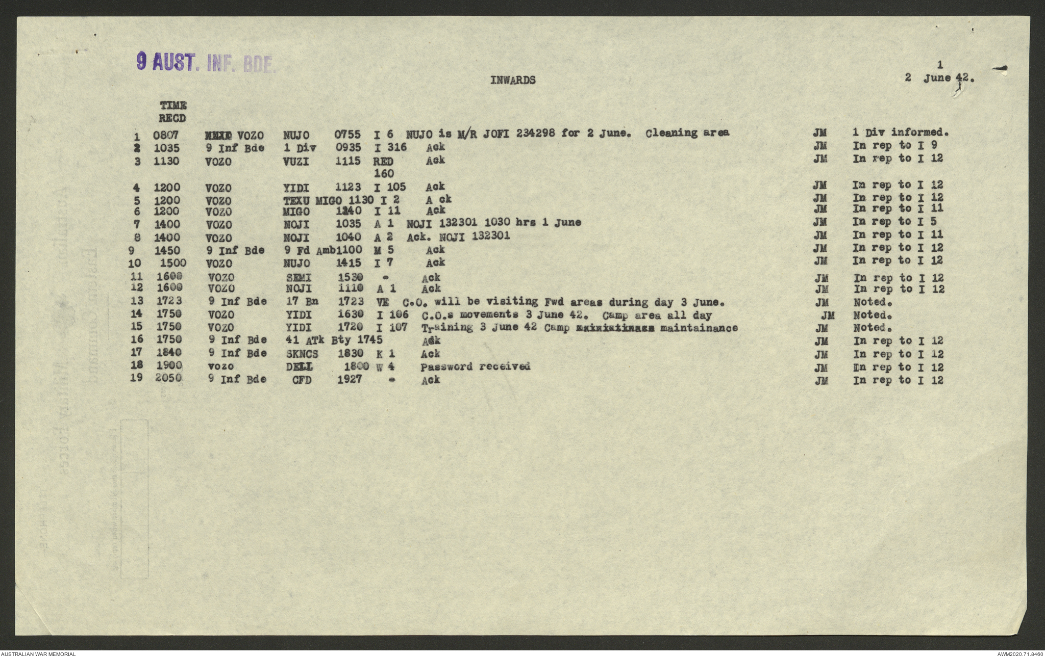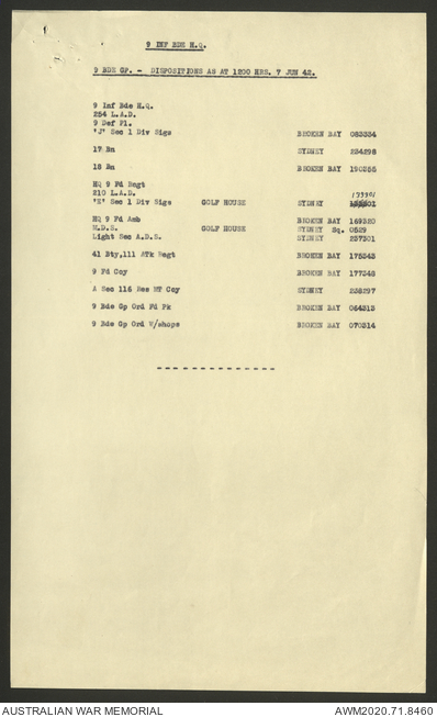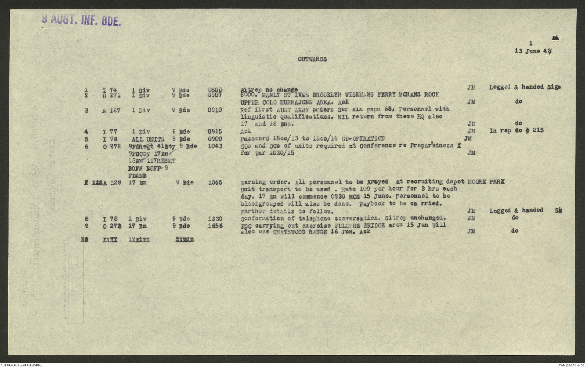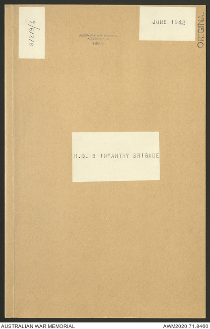 - AWM52 8/2/9 - Headquarters, 9 Infantry Brigade