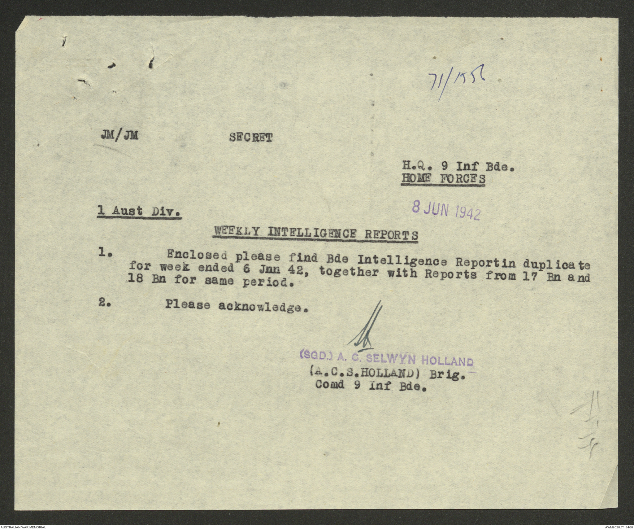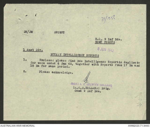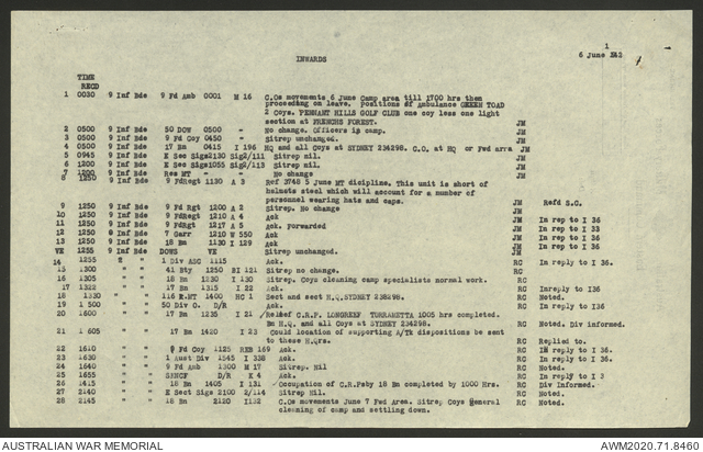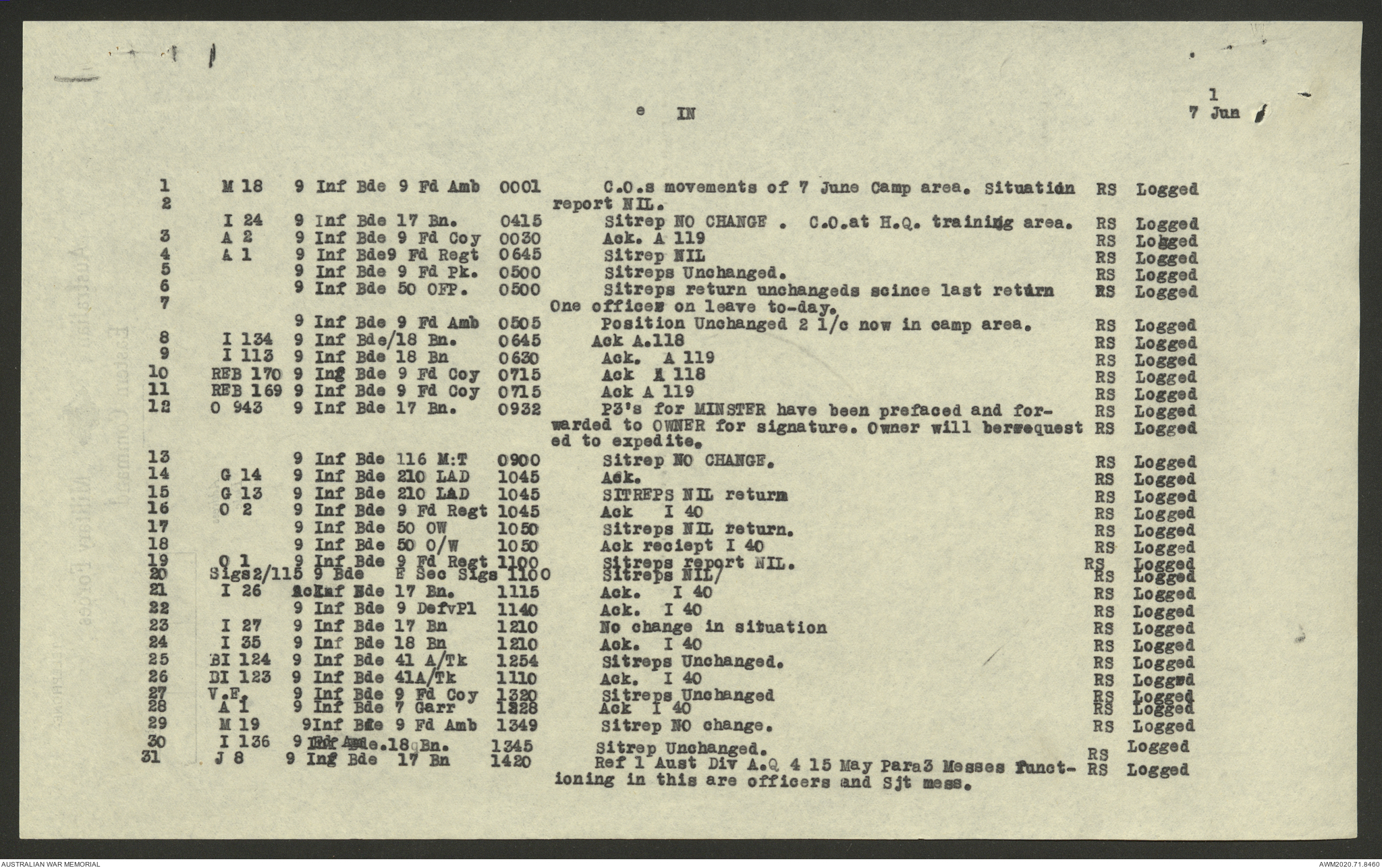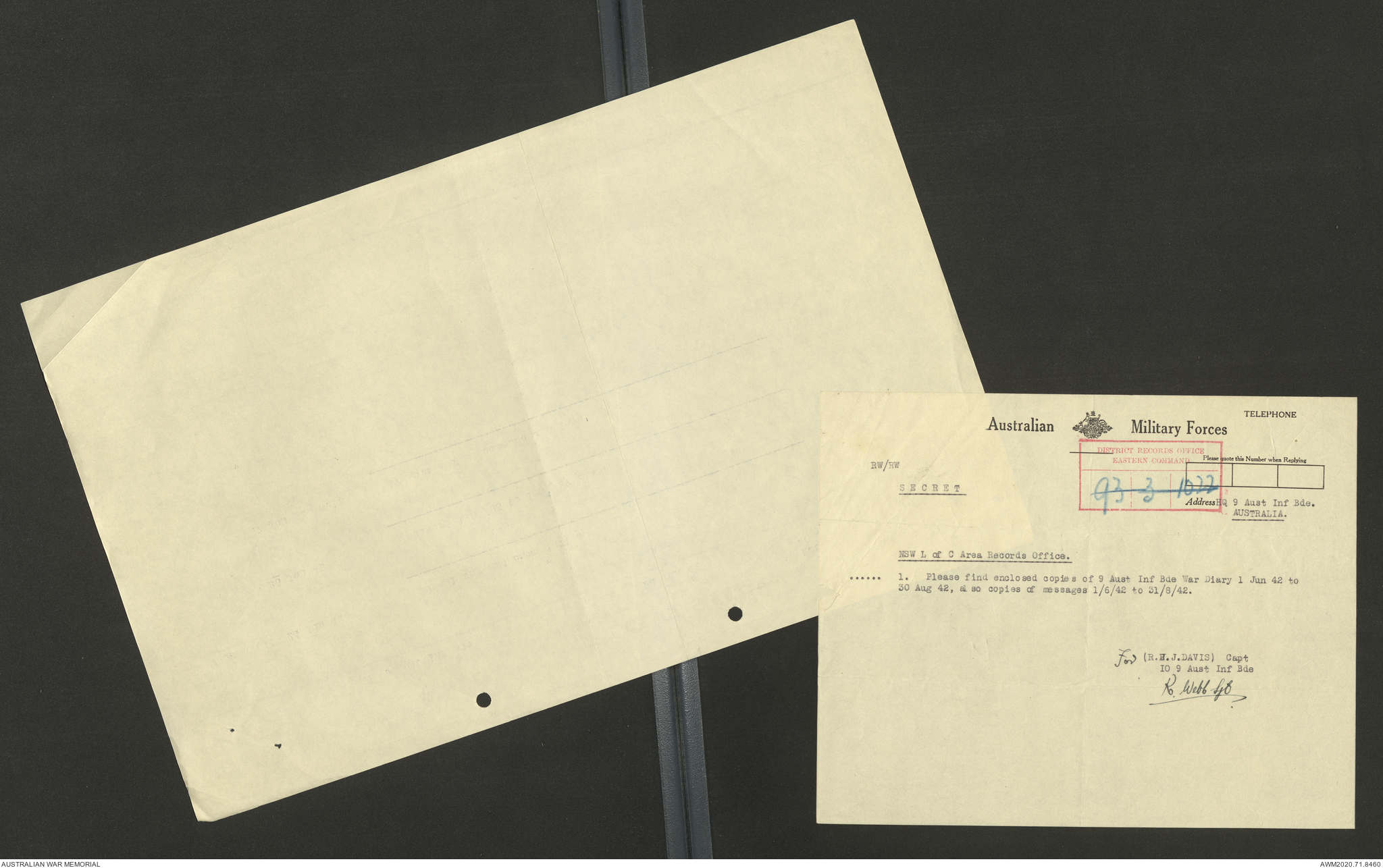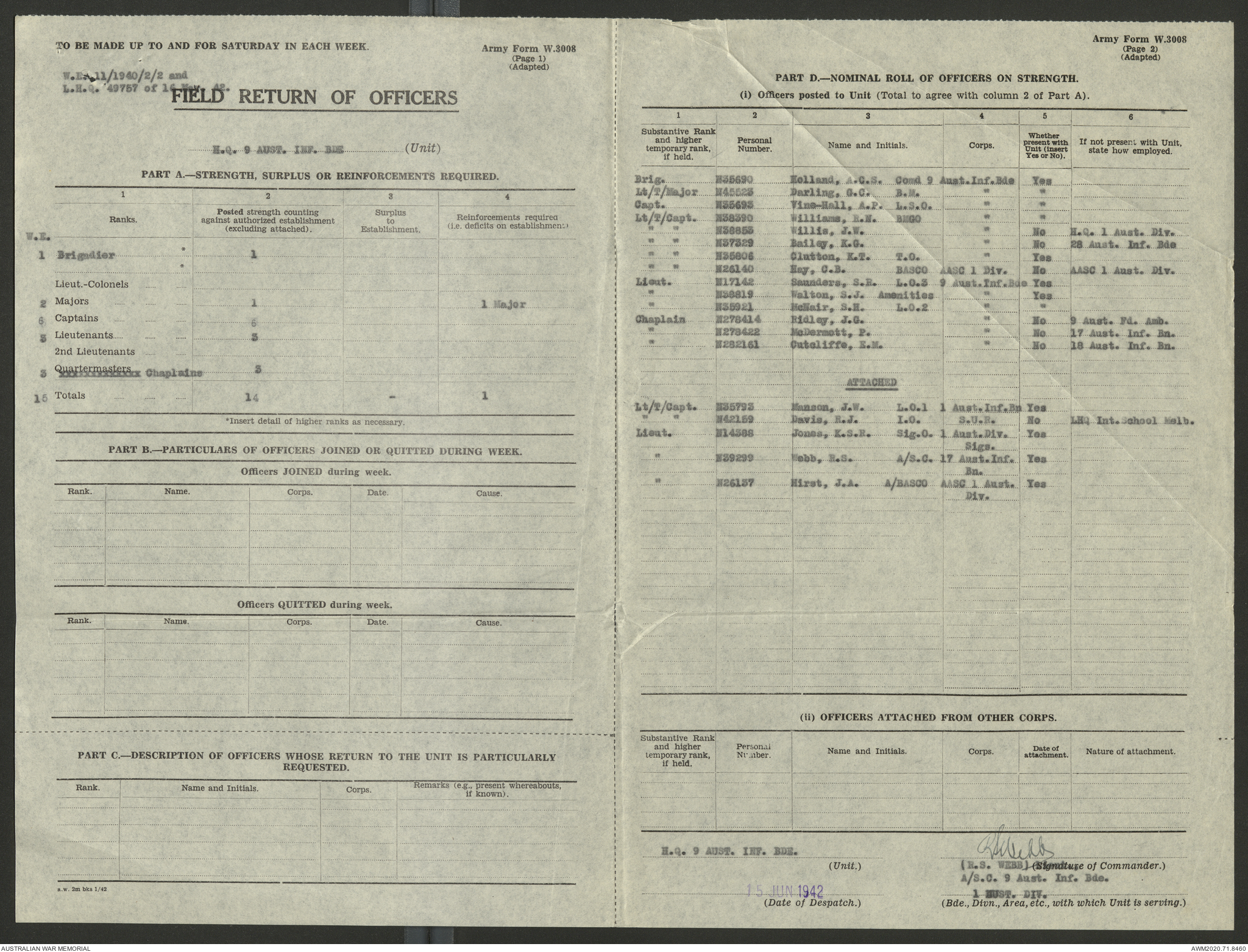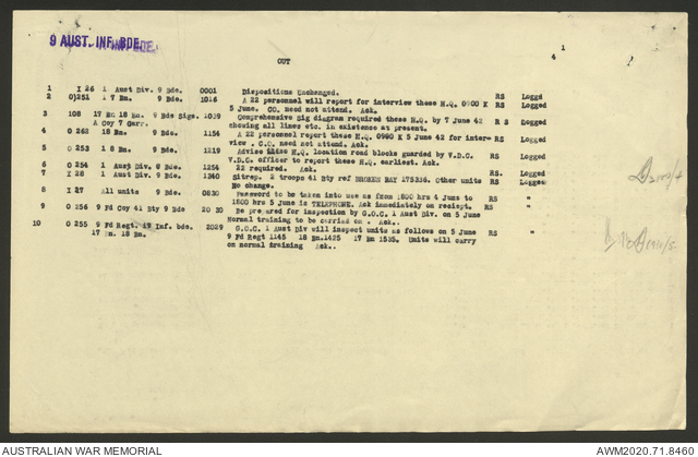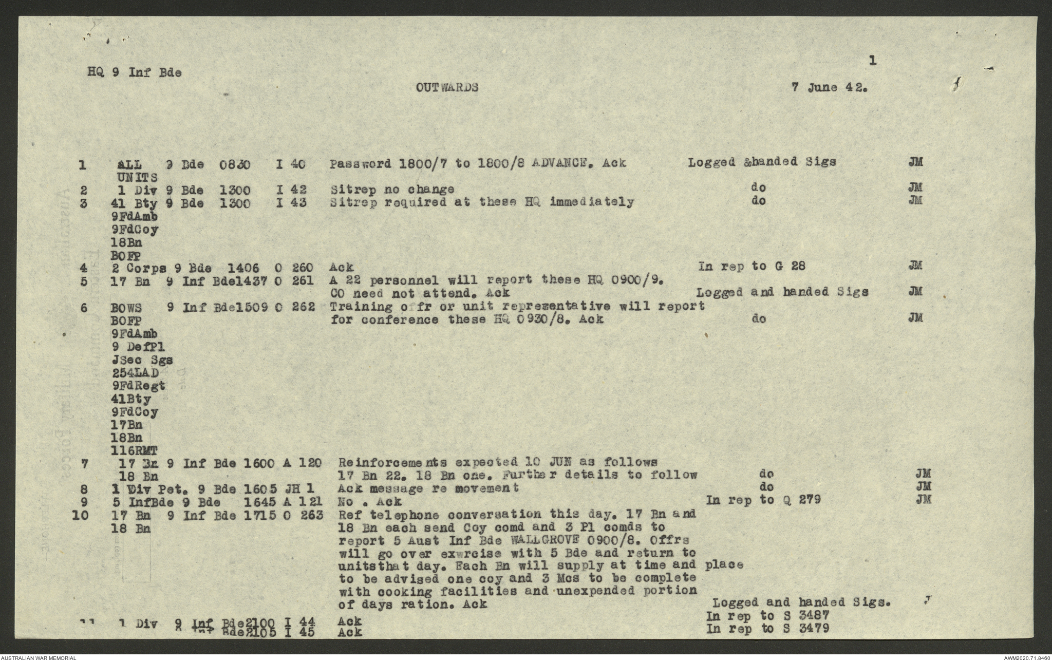 - AWM52 8/2/9 - Headquarters, 9 Infantry Brigade
