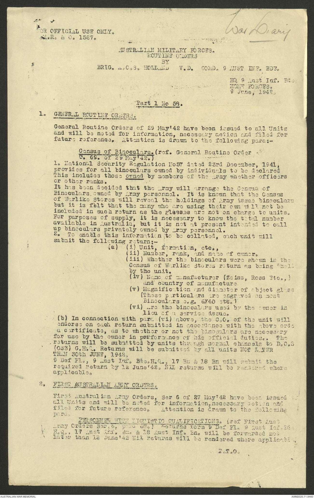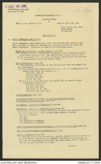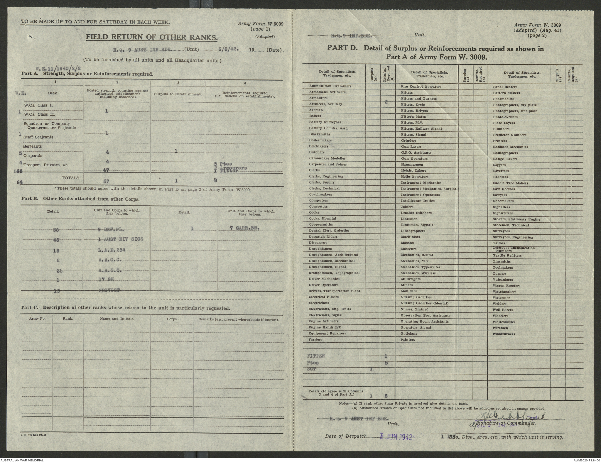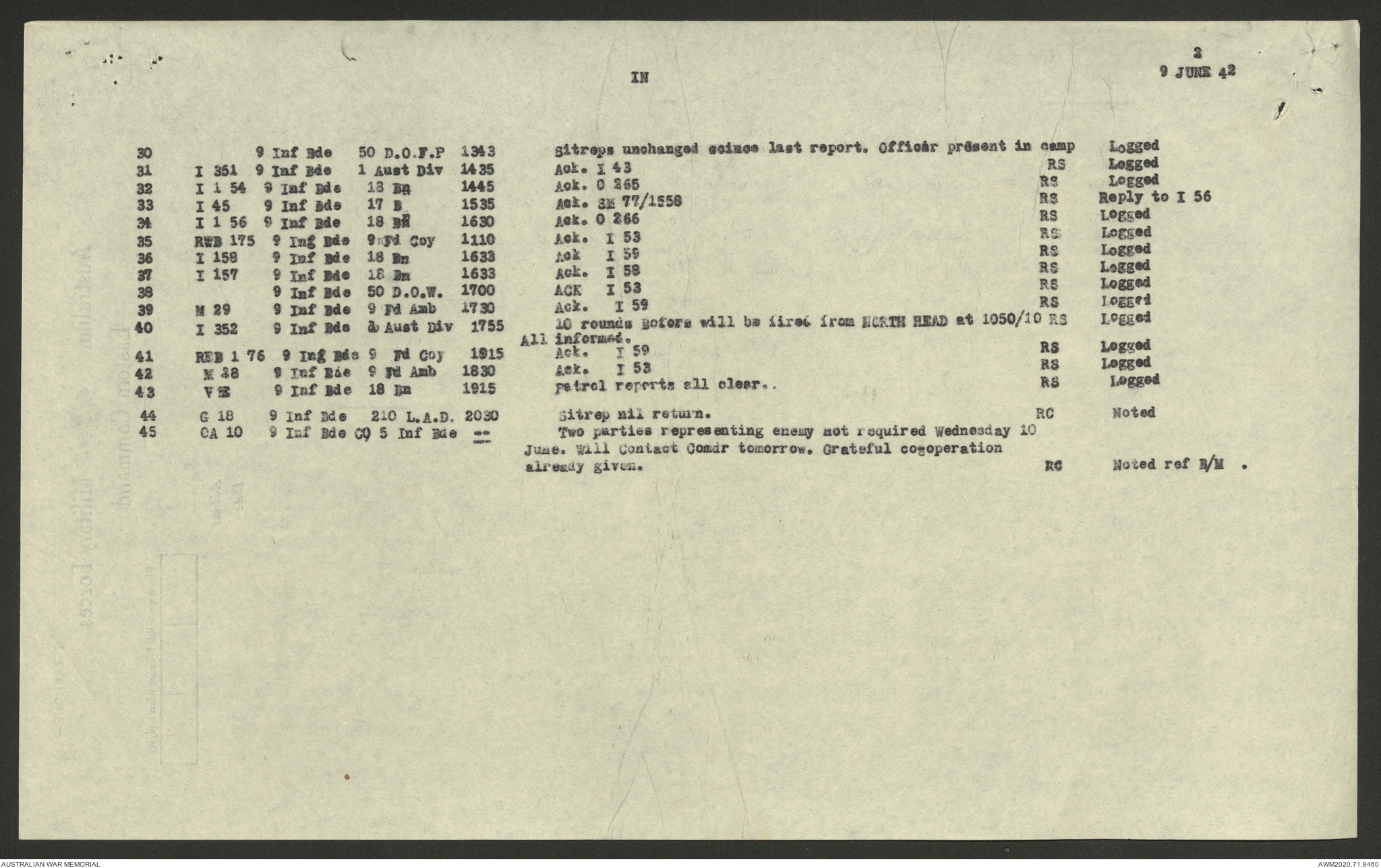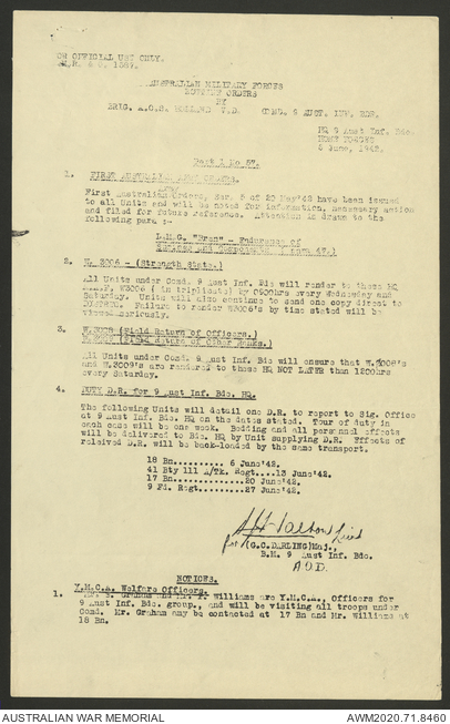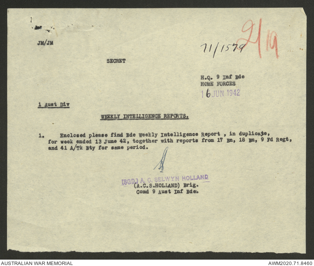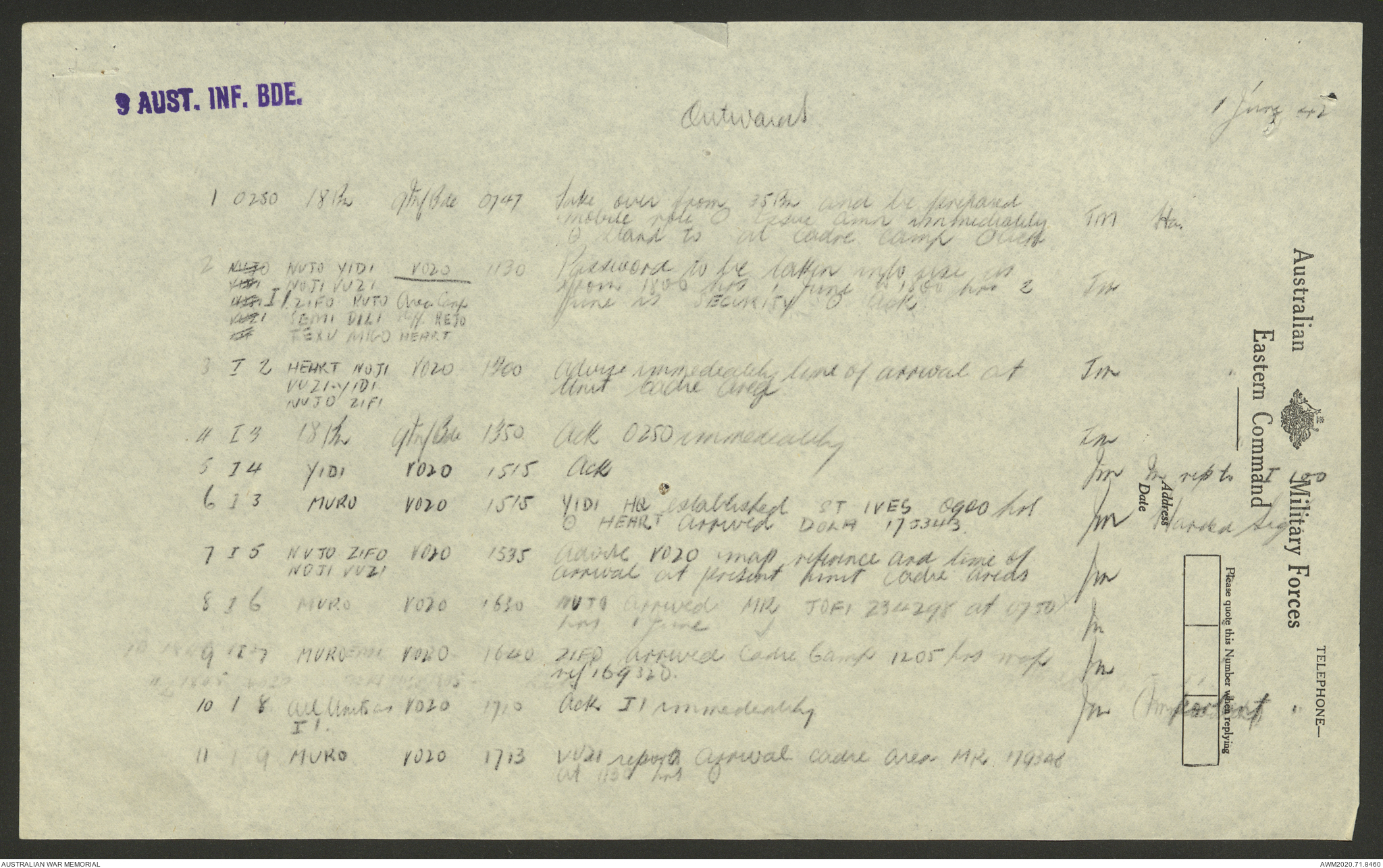 - AWM52 8/2/9 - Headquarters, 9 Infantry Brigade