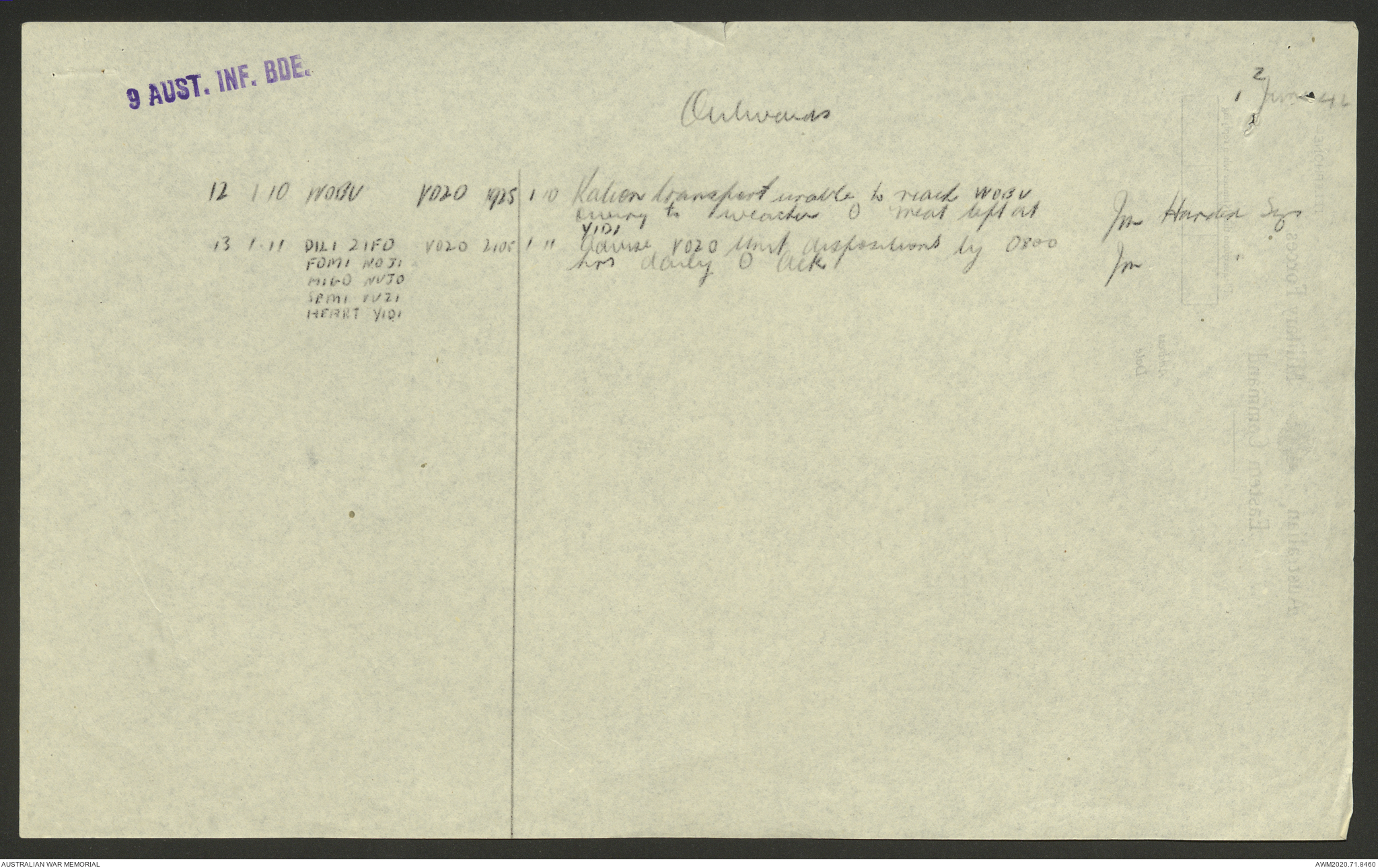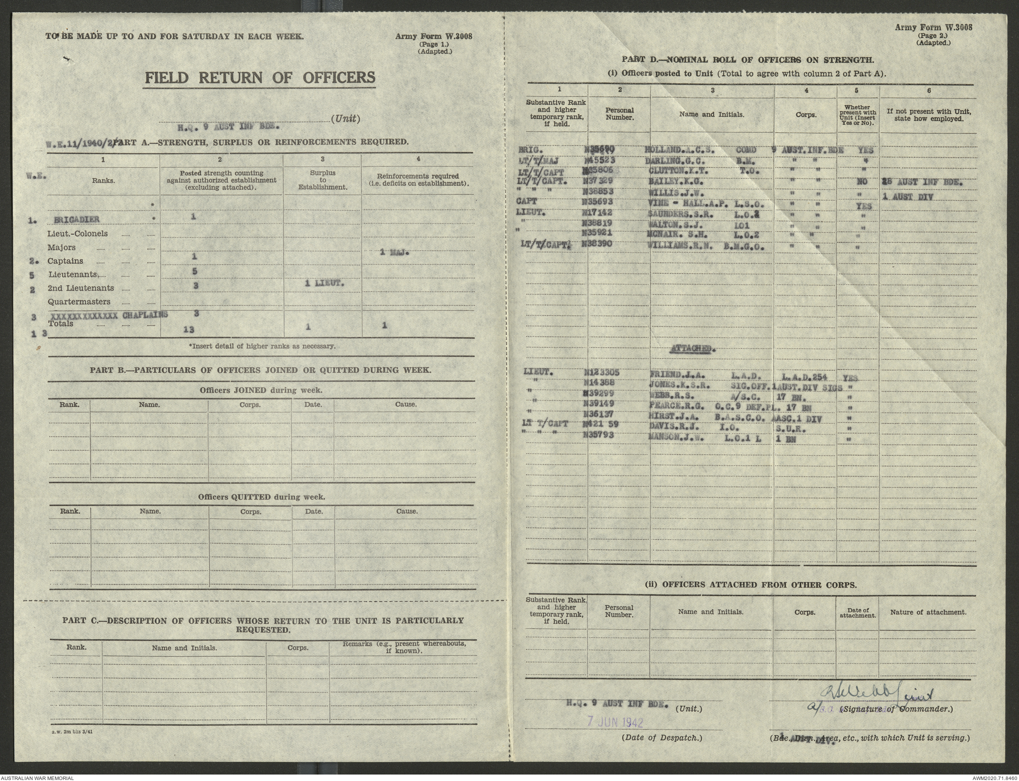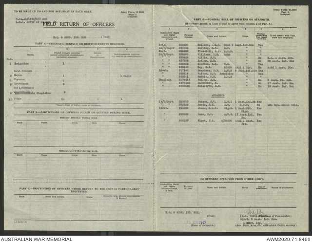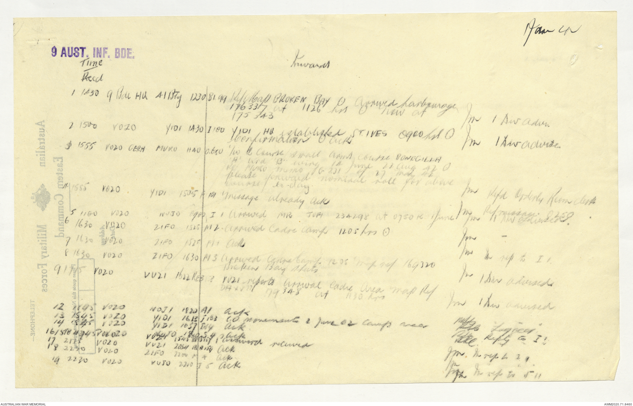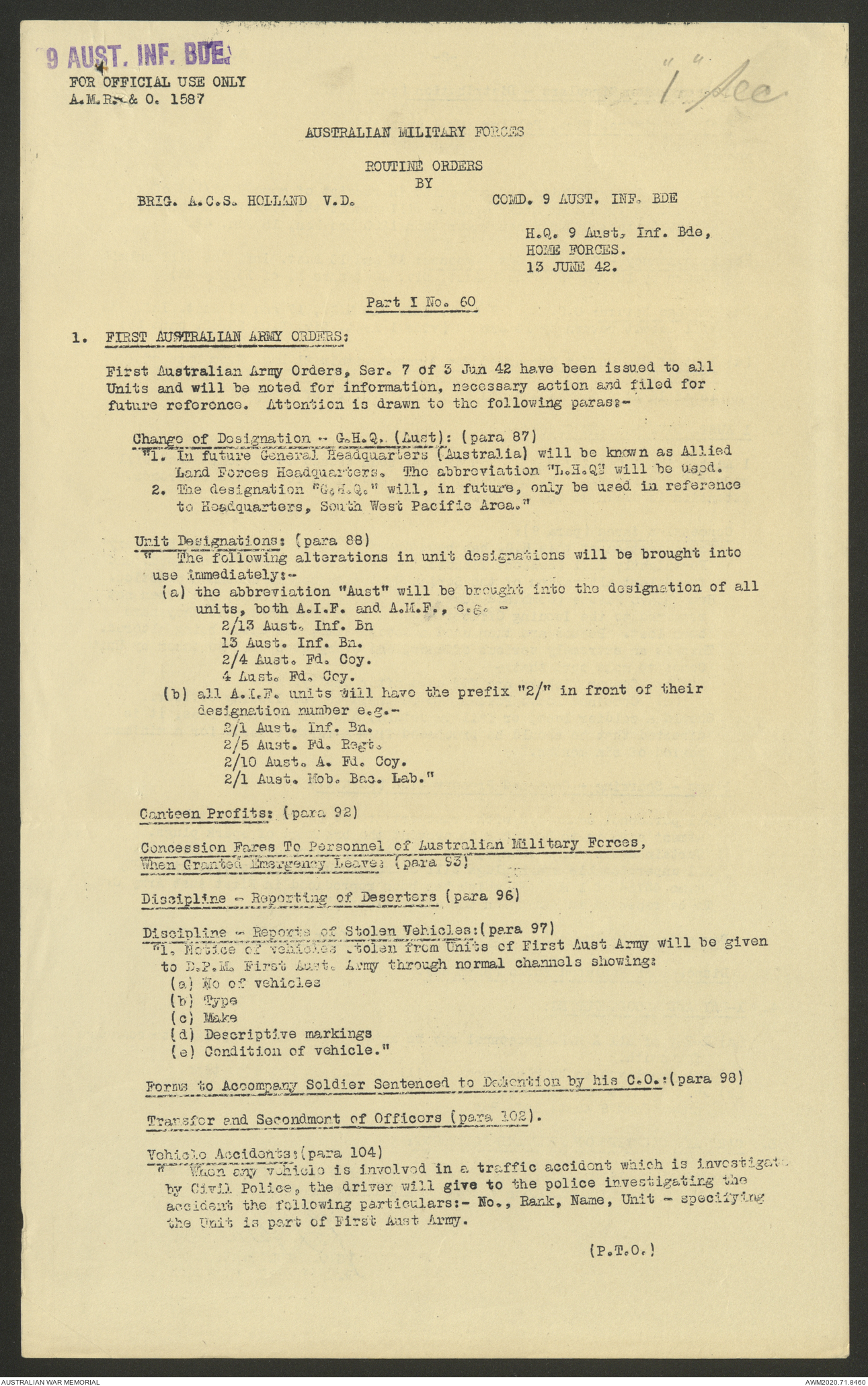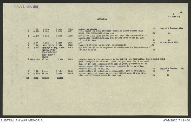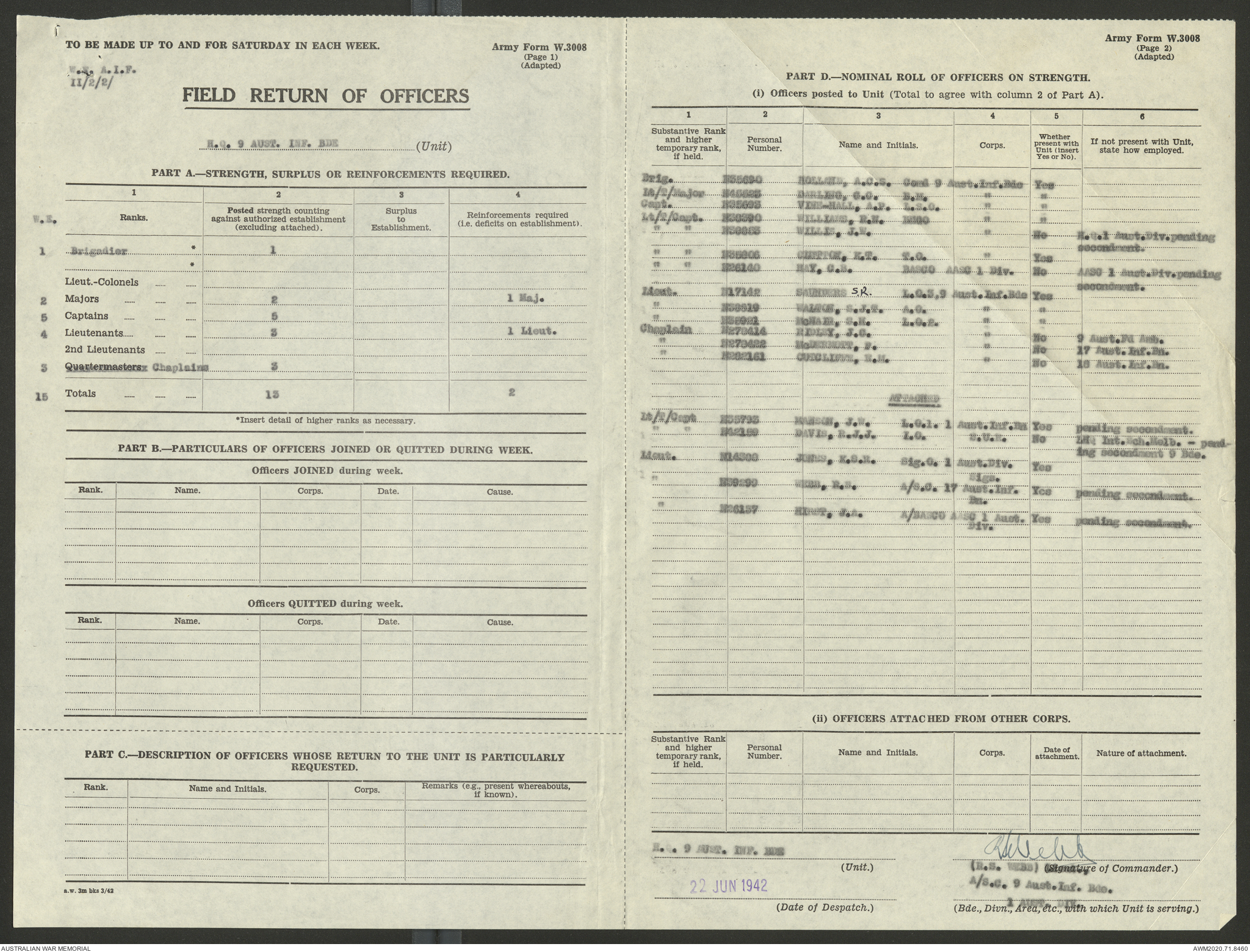 - AWM52 8/2/9 - Headquarters, 9 Infantry Brigade