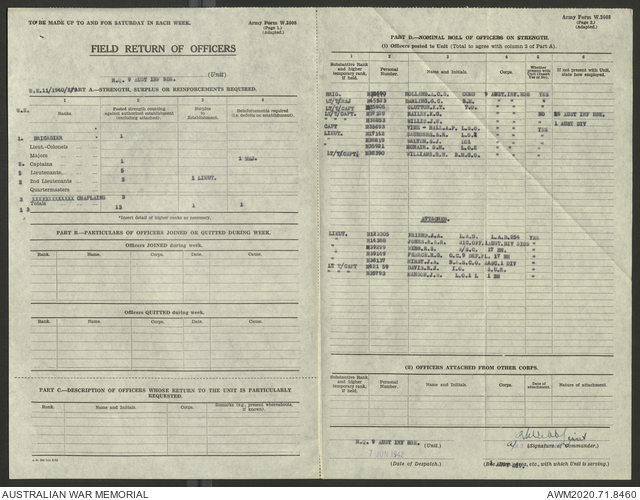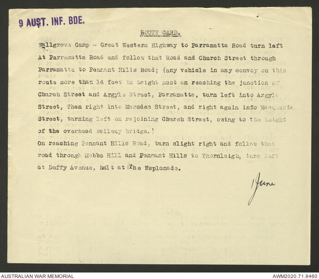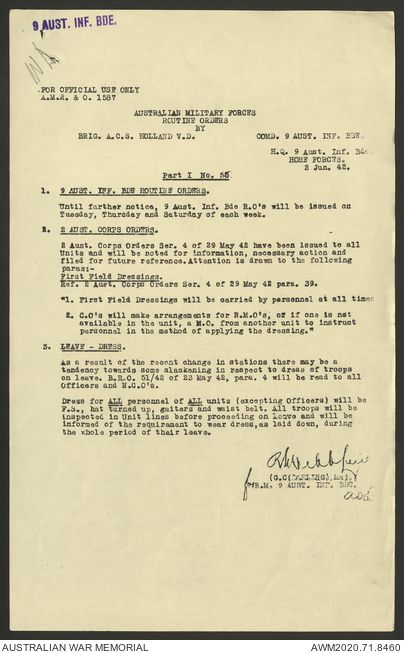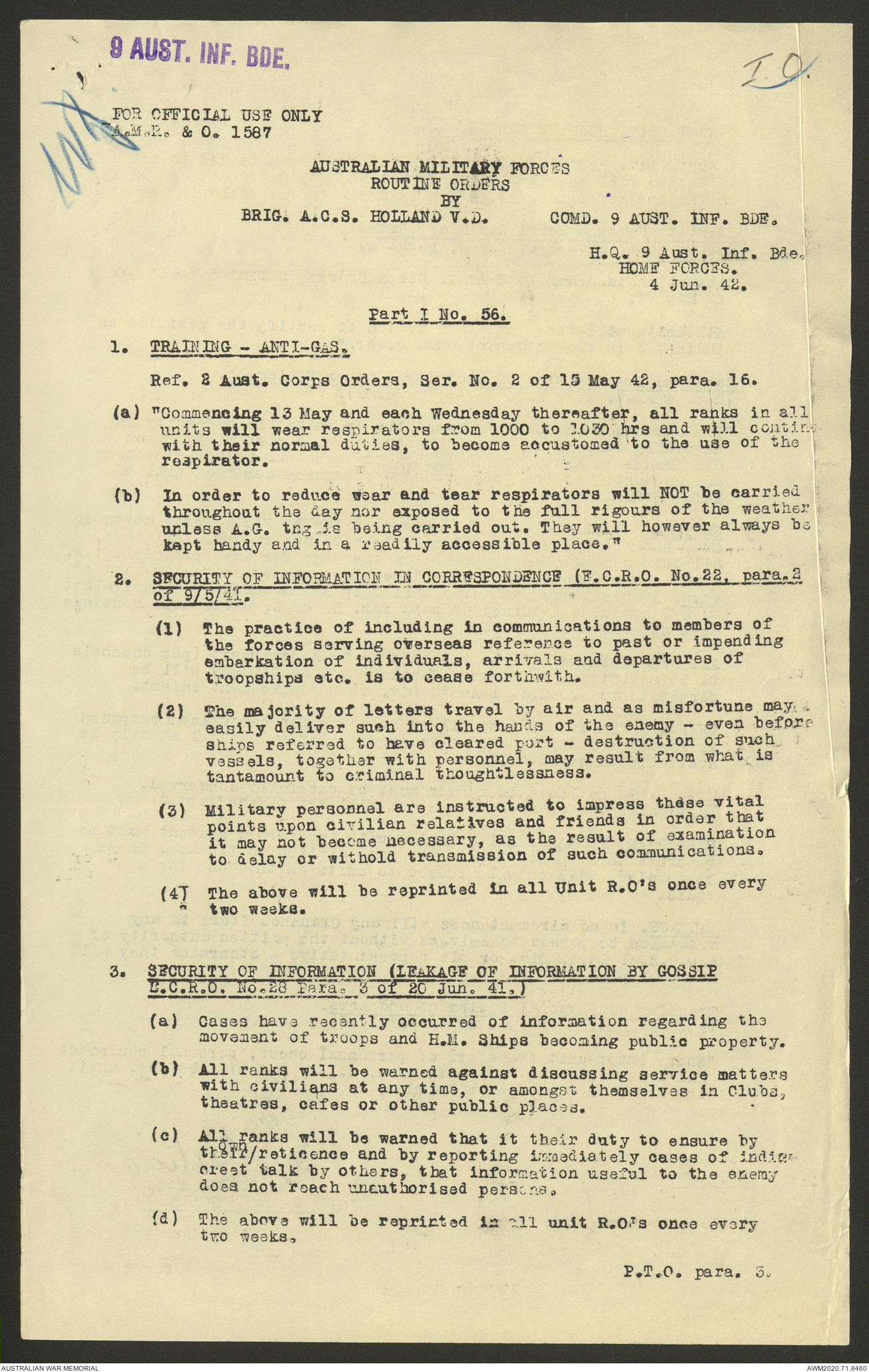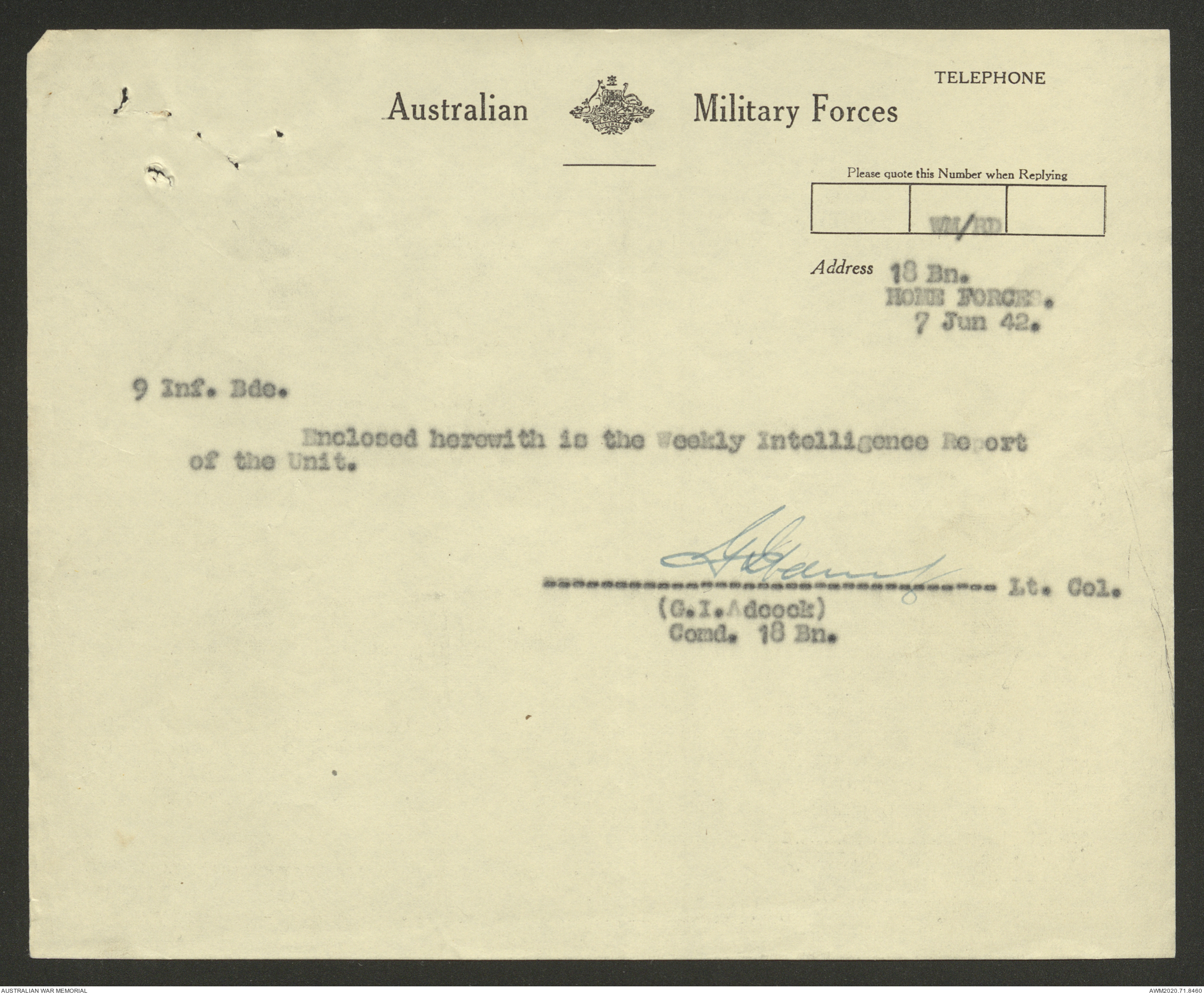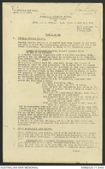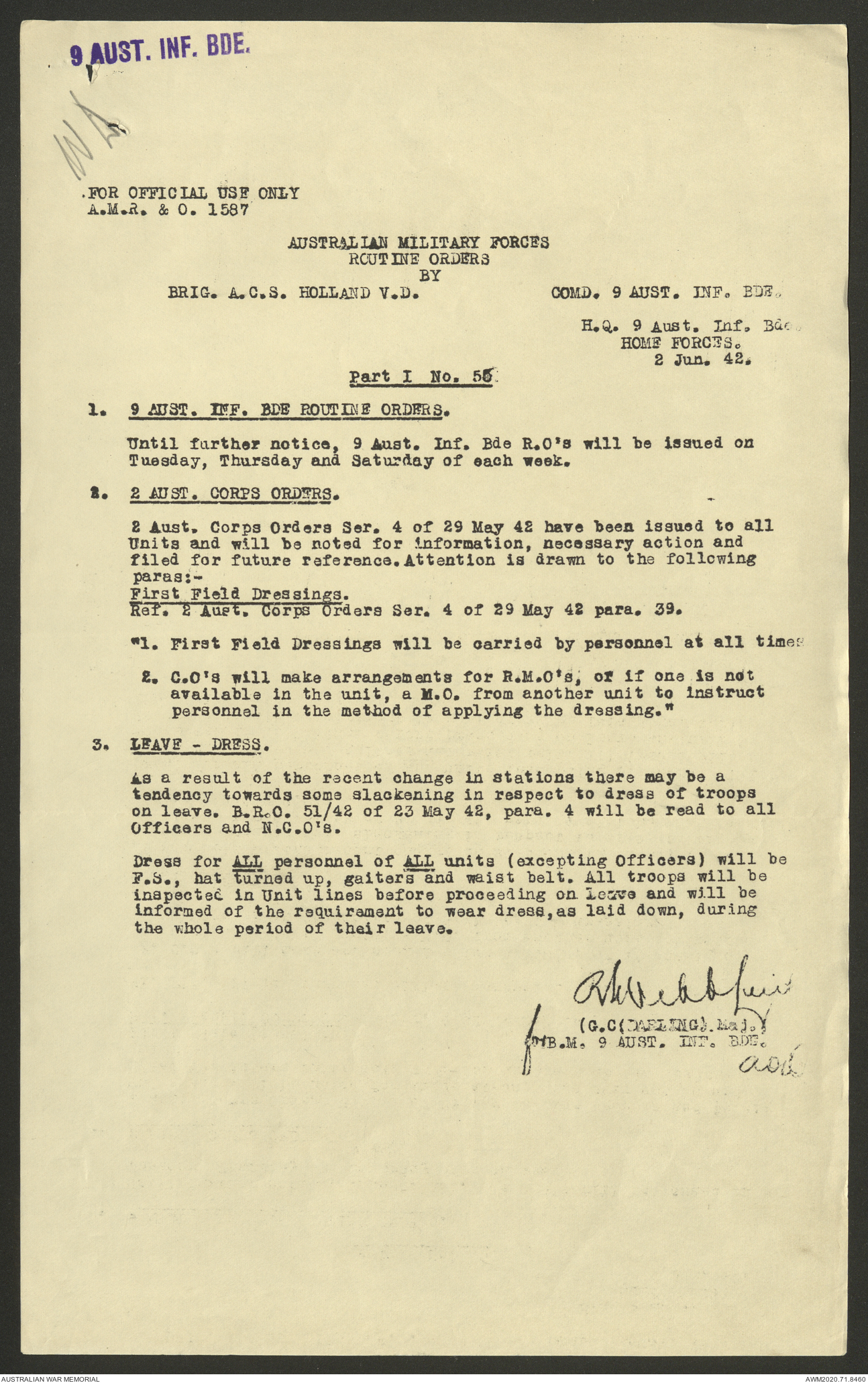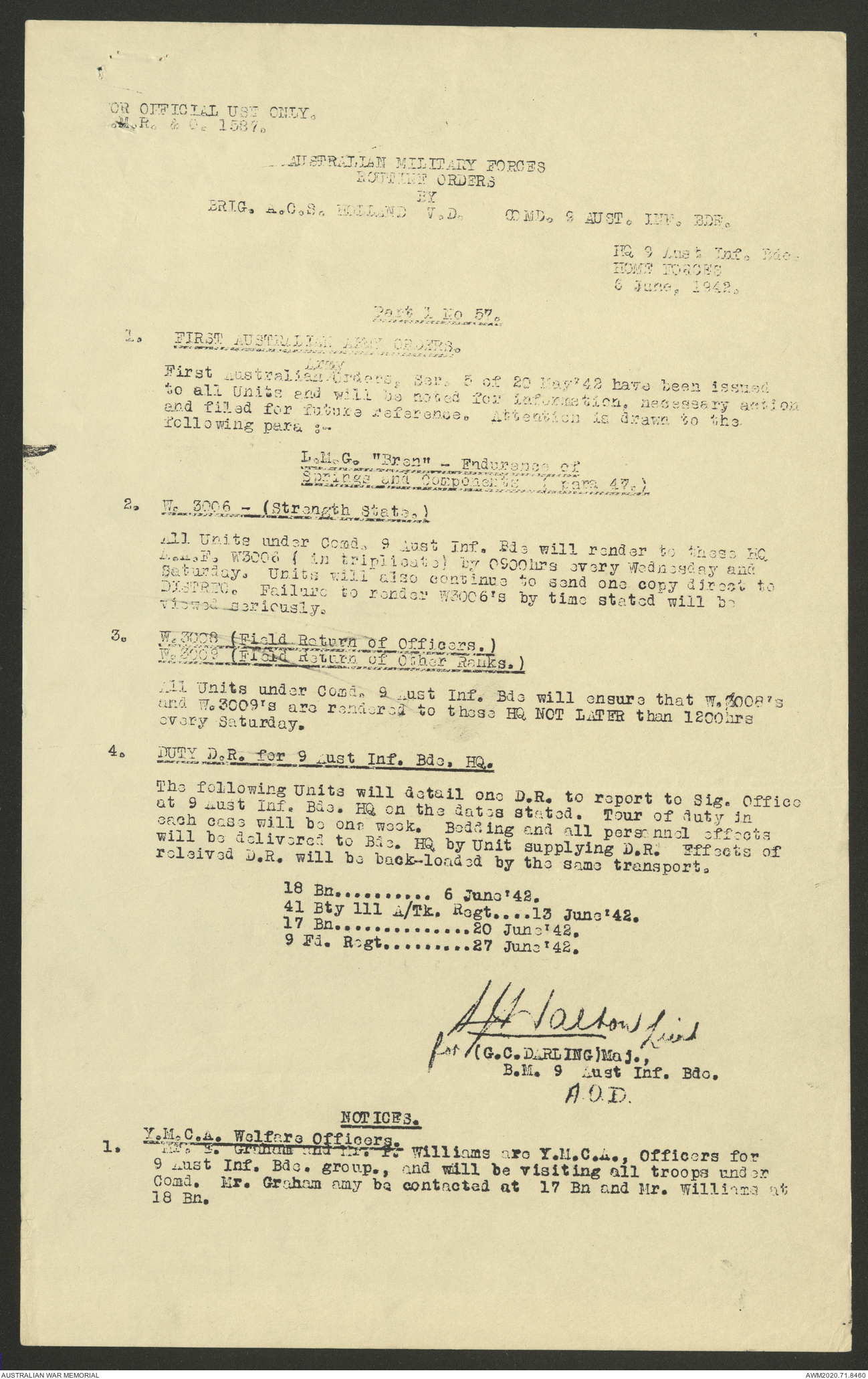 - AWM52 8/2/9 - Headquarters, 9 Infantry Brigade